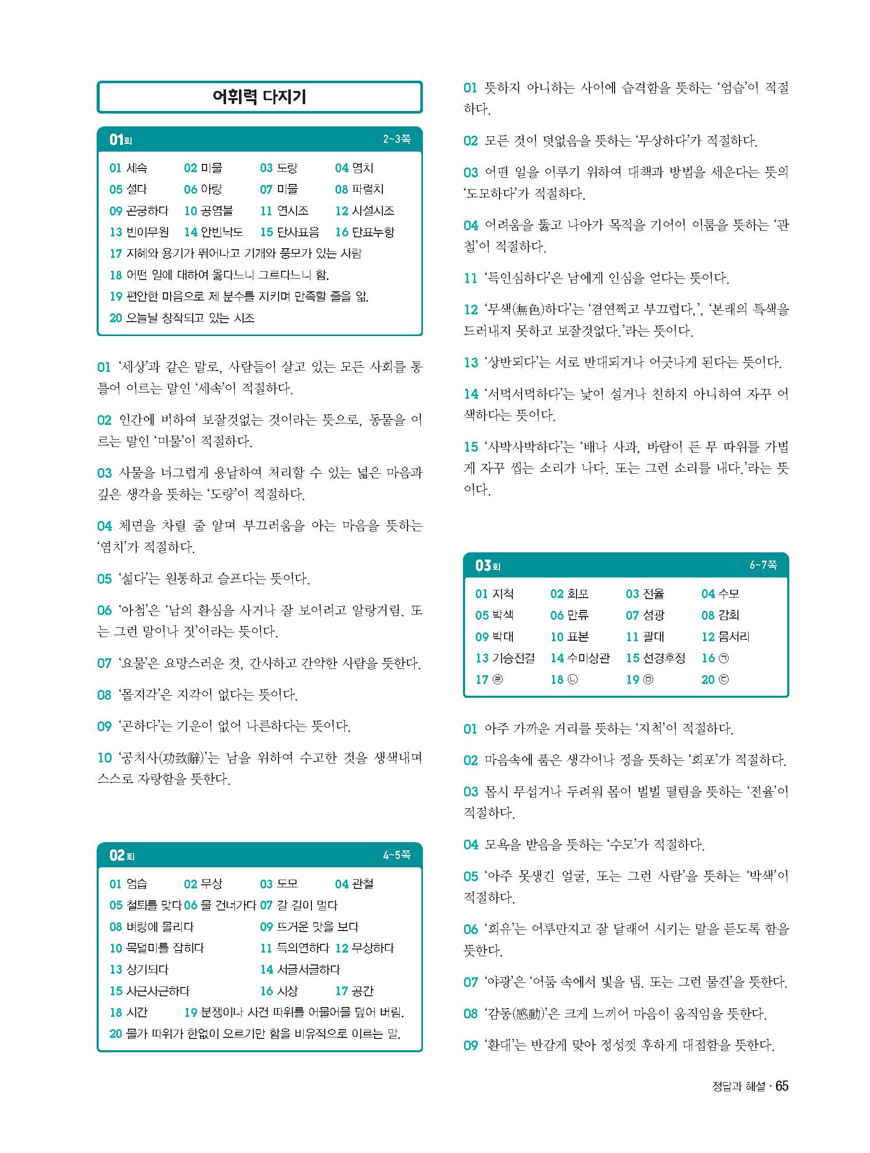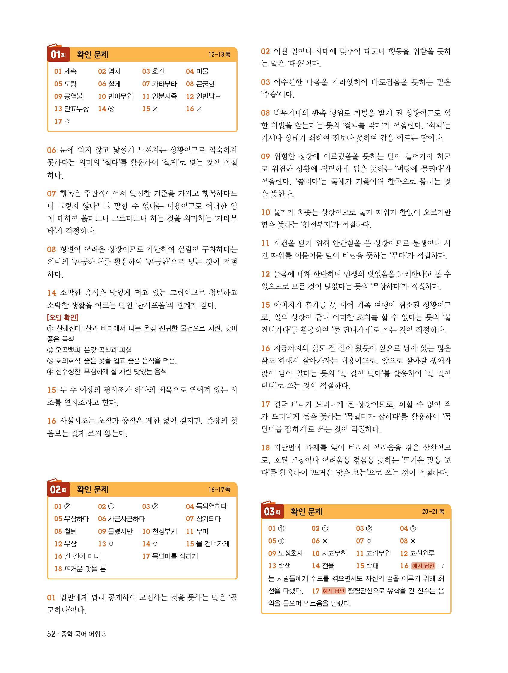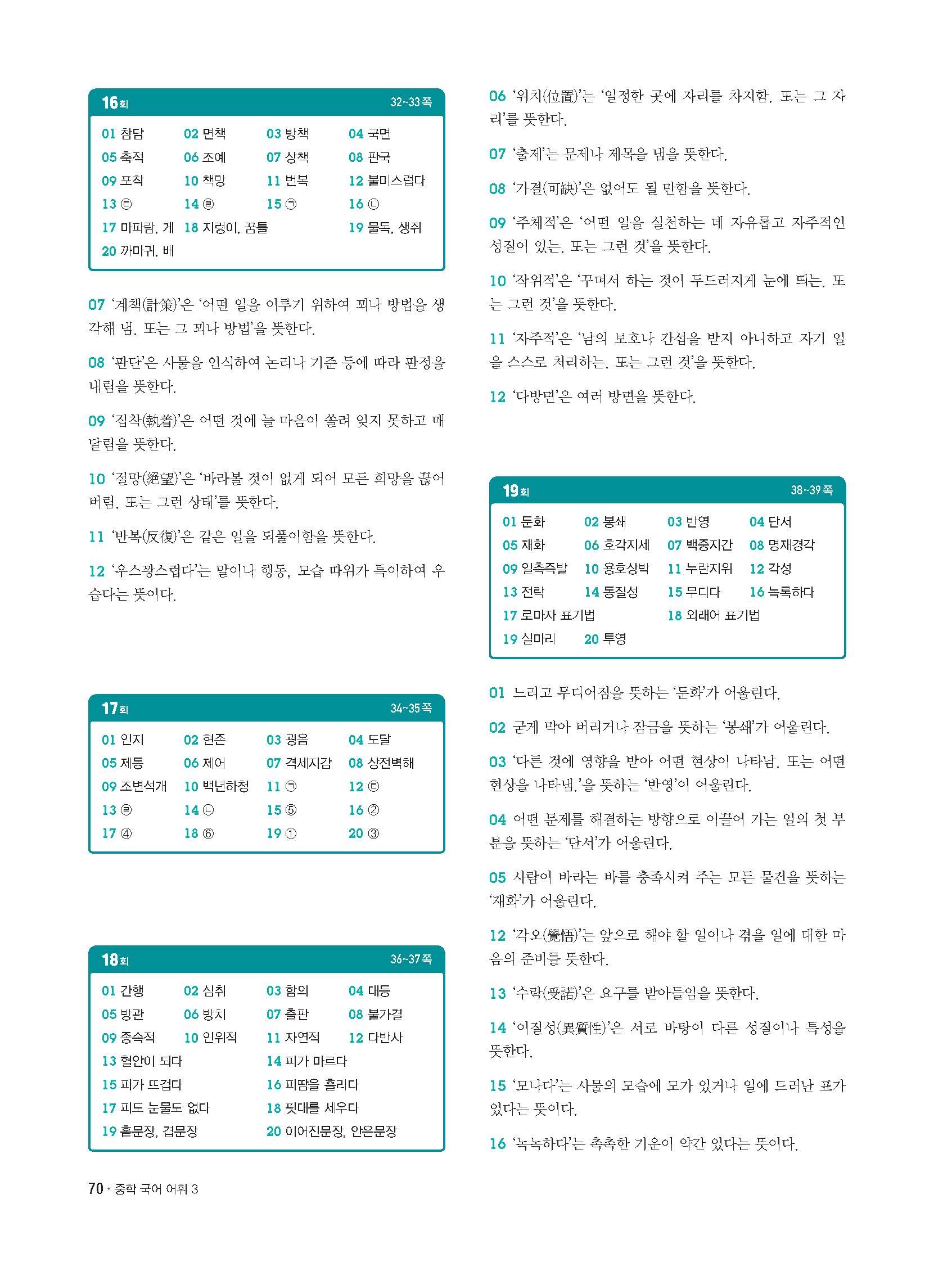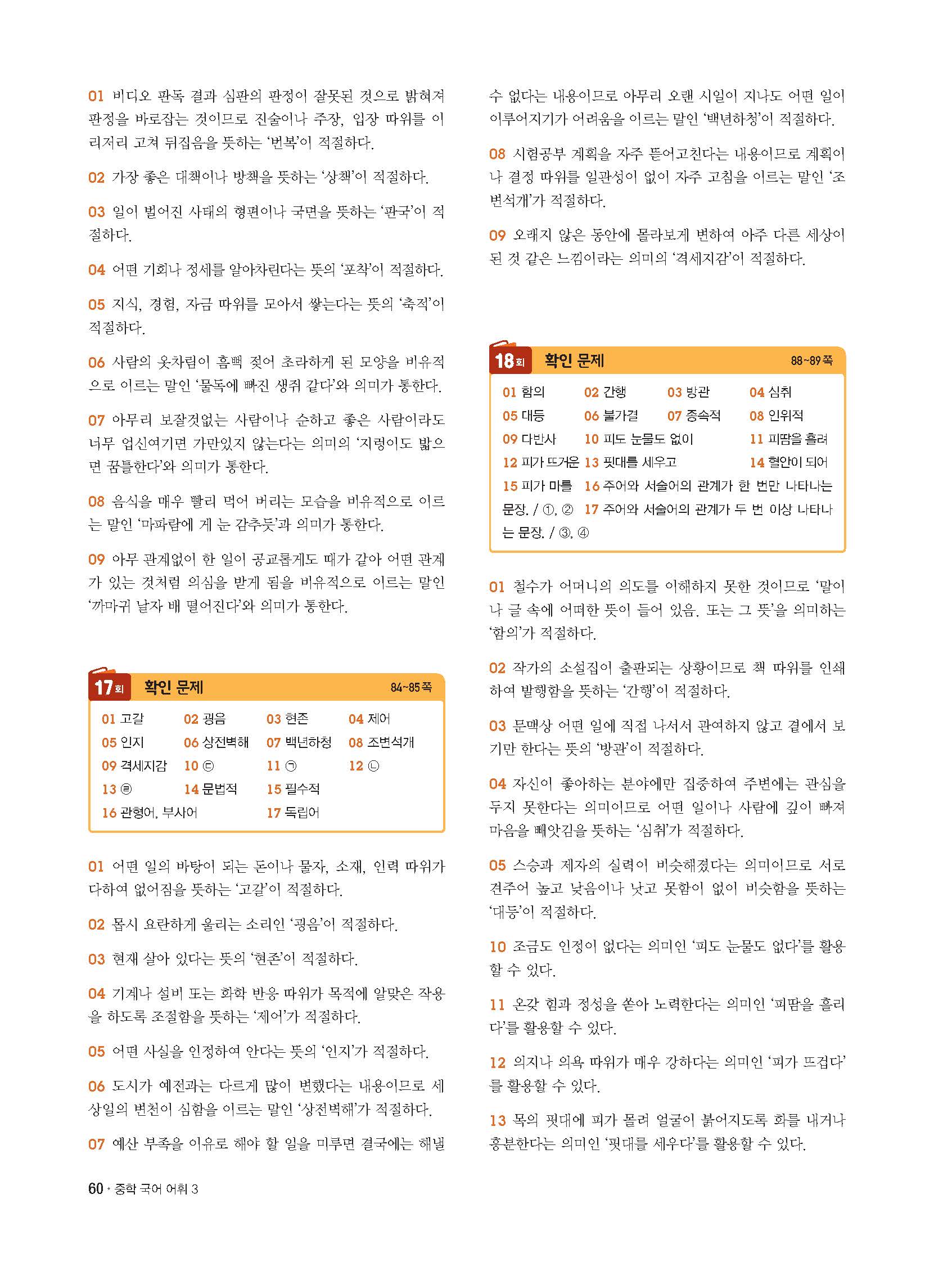빠작 중학국어 어휘 3권 답지 해설지 사진답지 빠른답지 모바일최적화