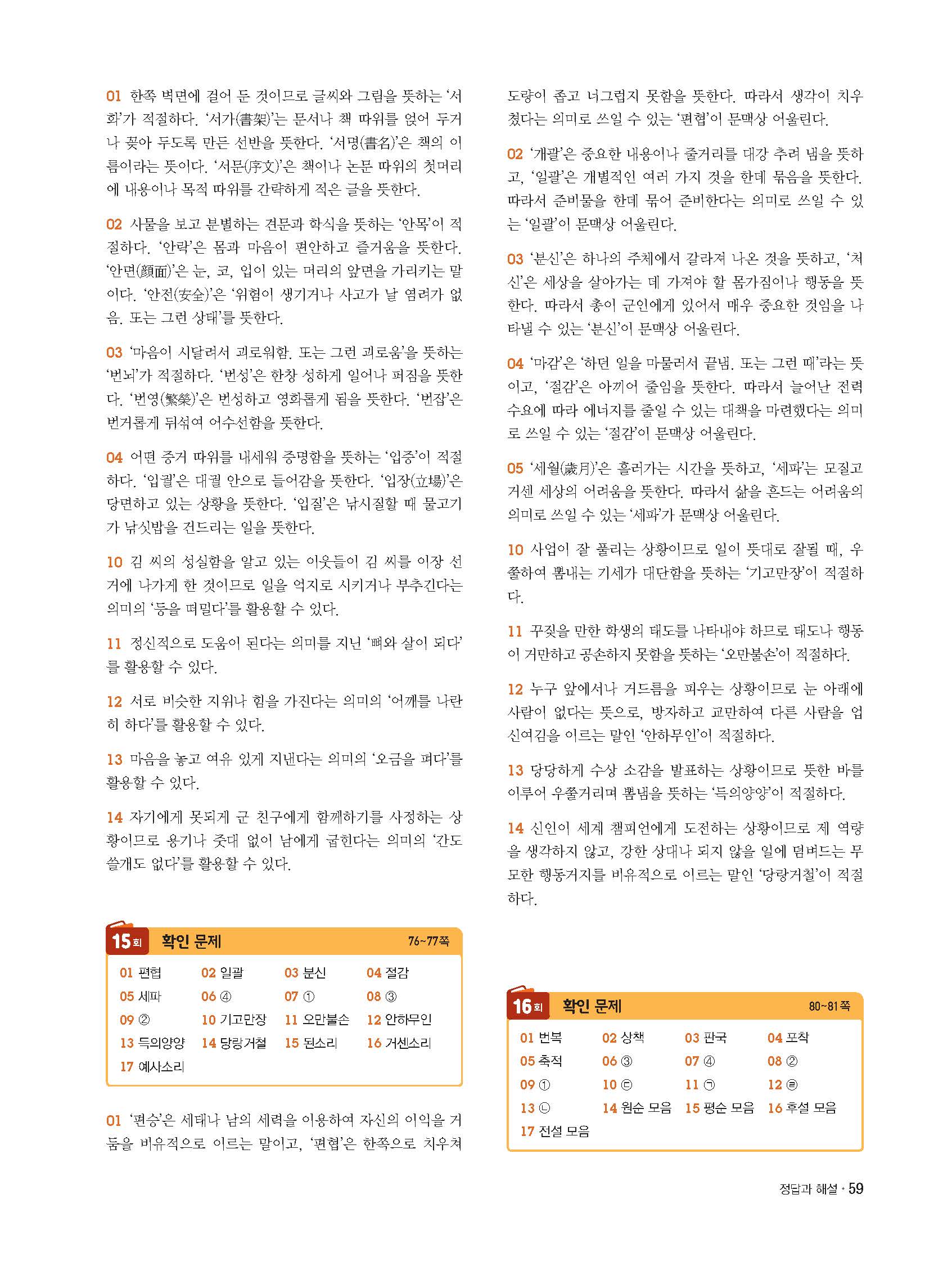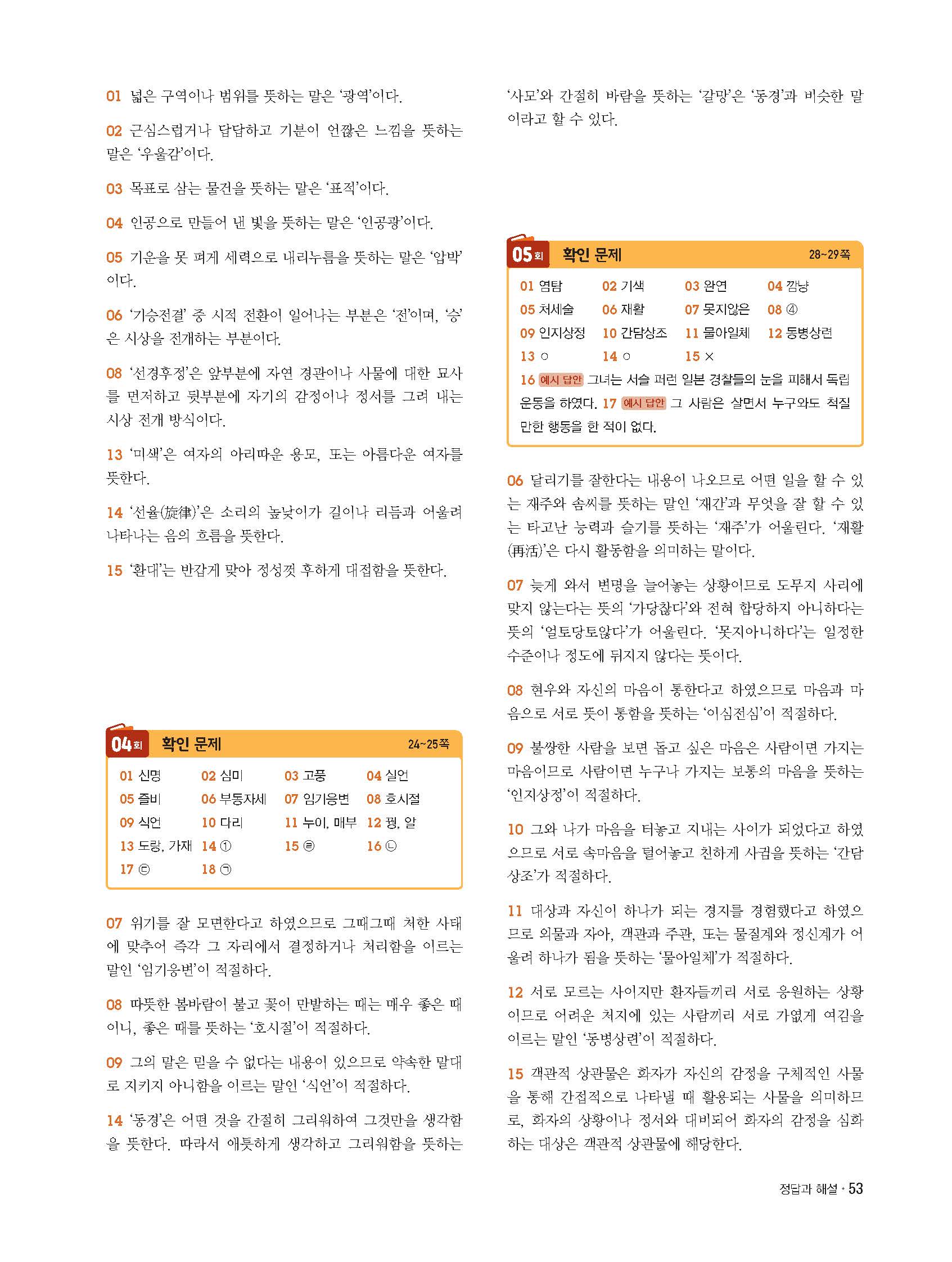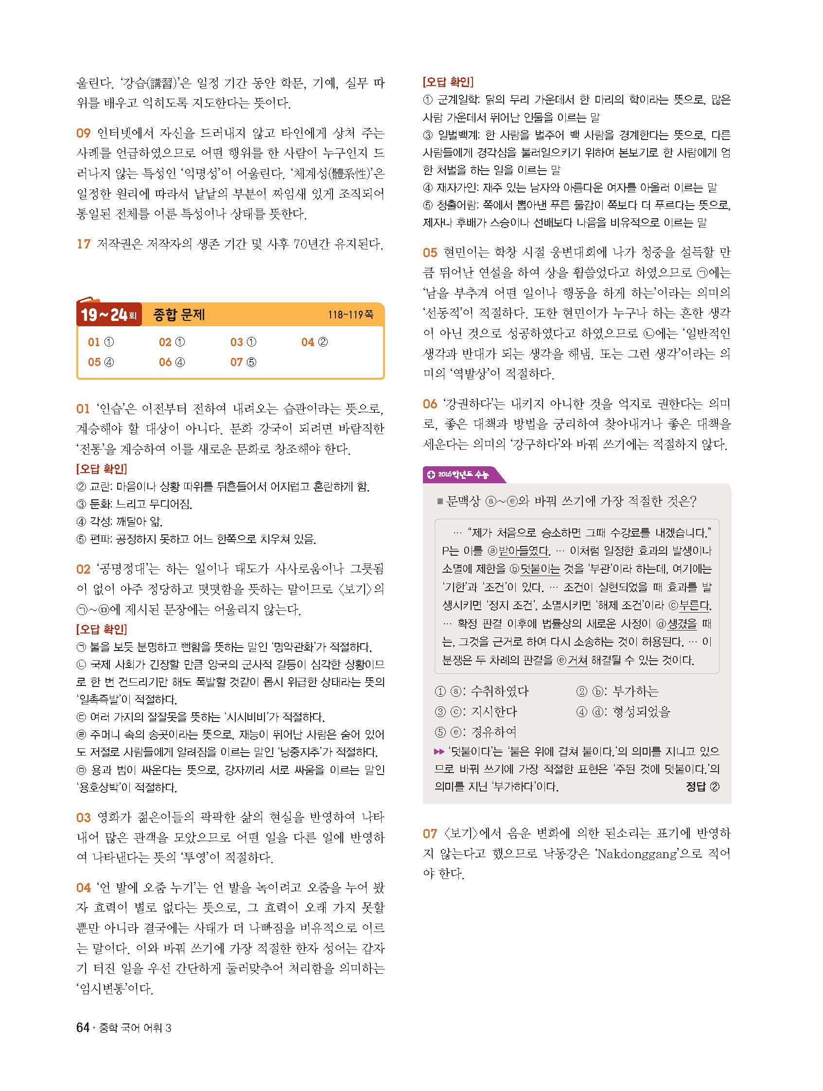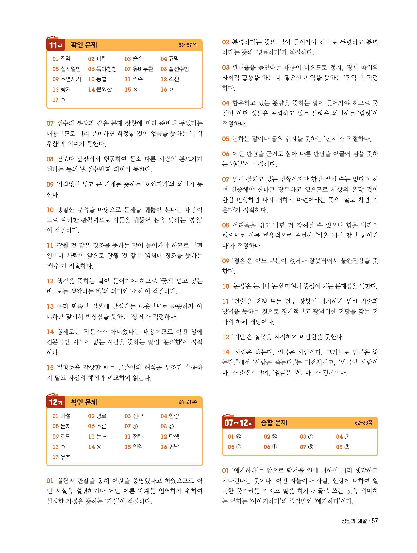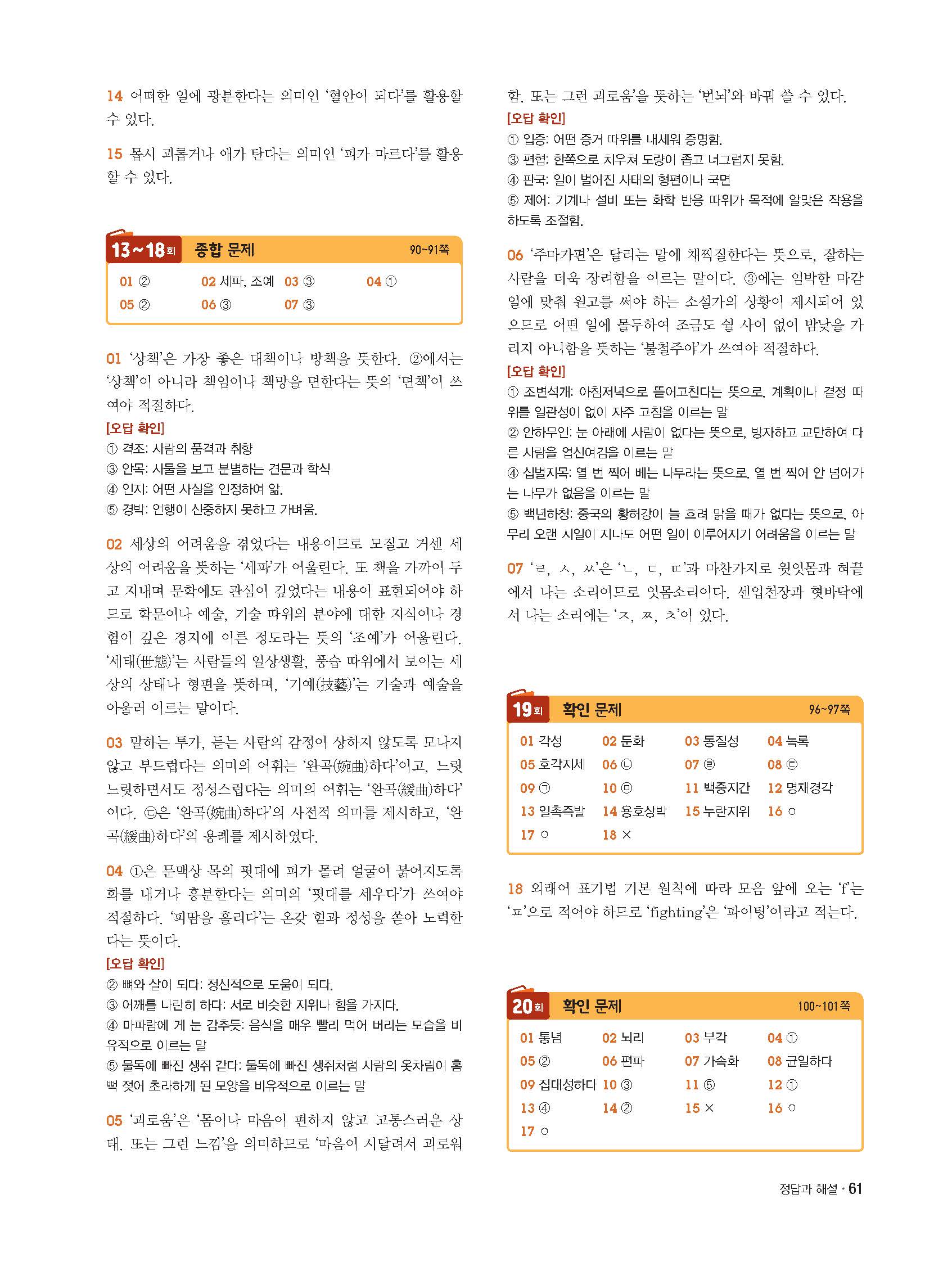 빠작 중학국어 어휘 3권 답지 해설지 사진답지 빠른답지 모바일최적화