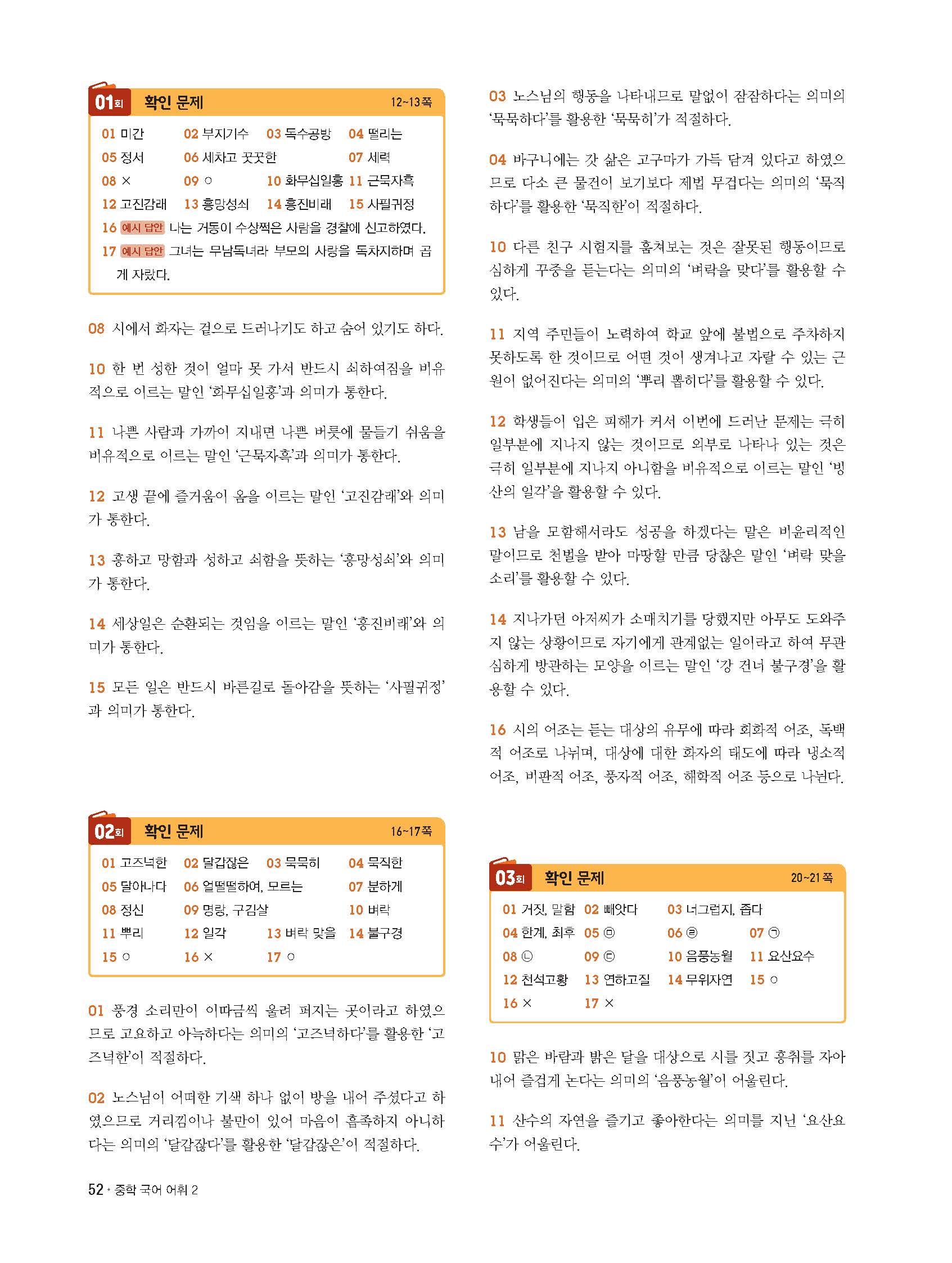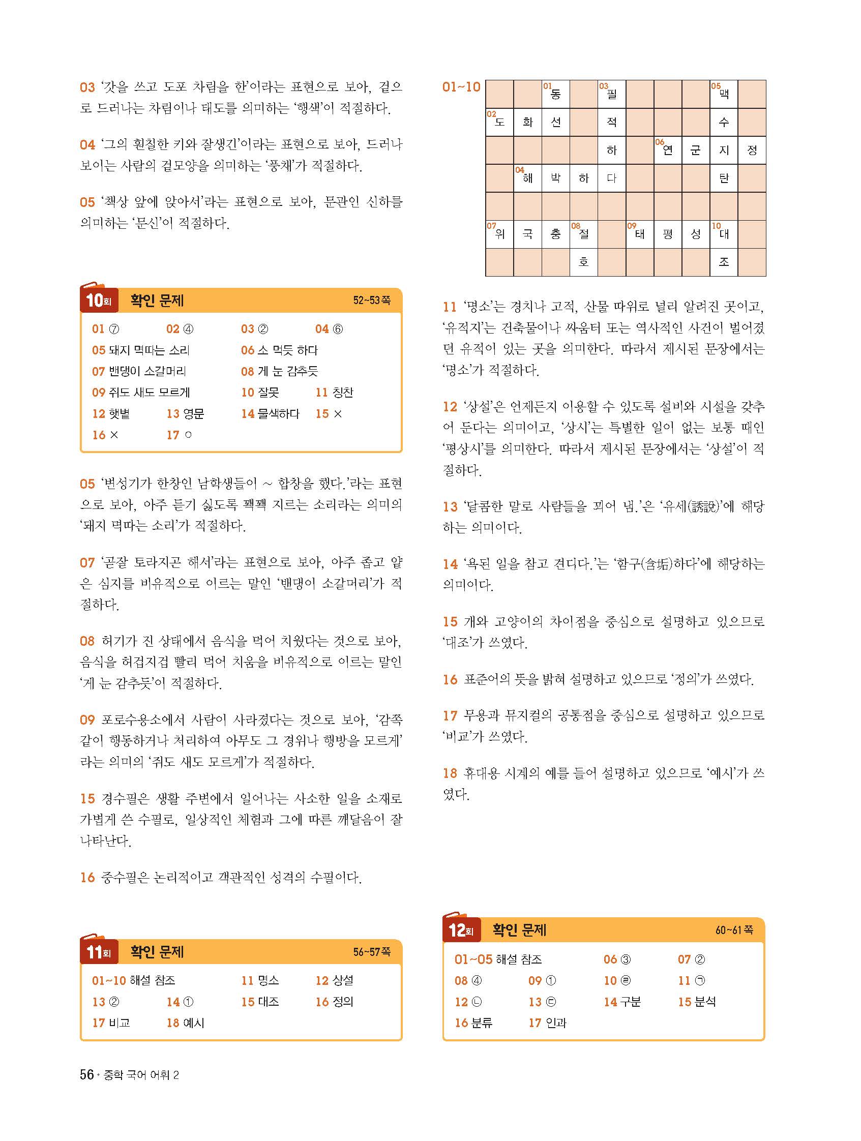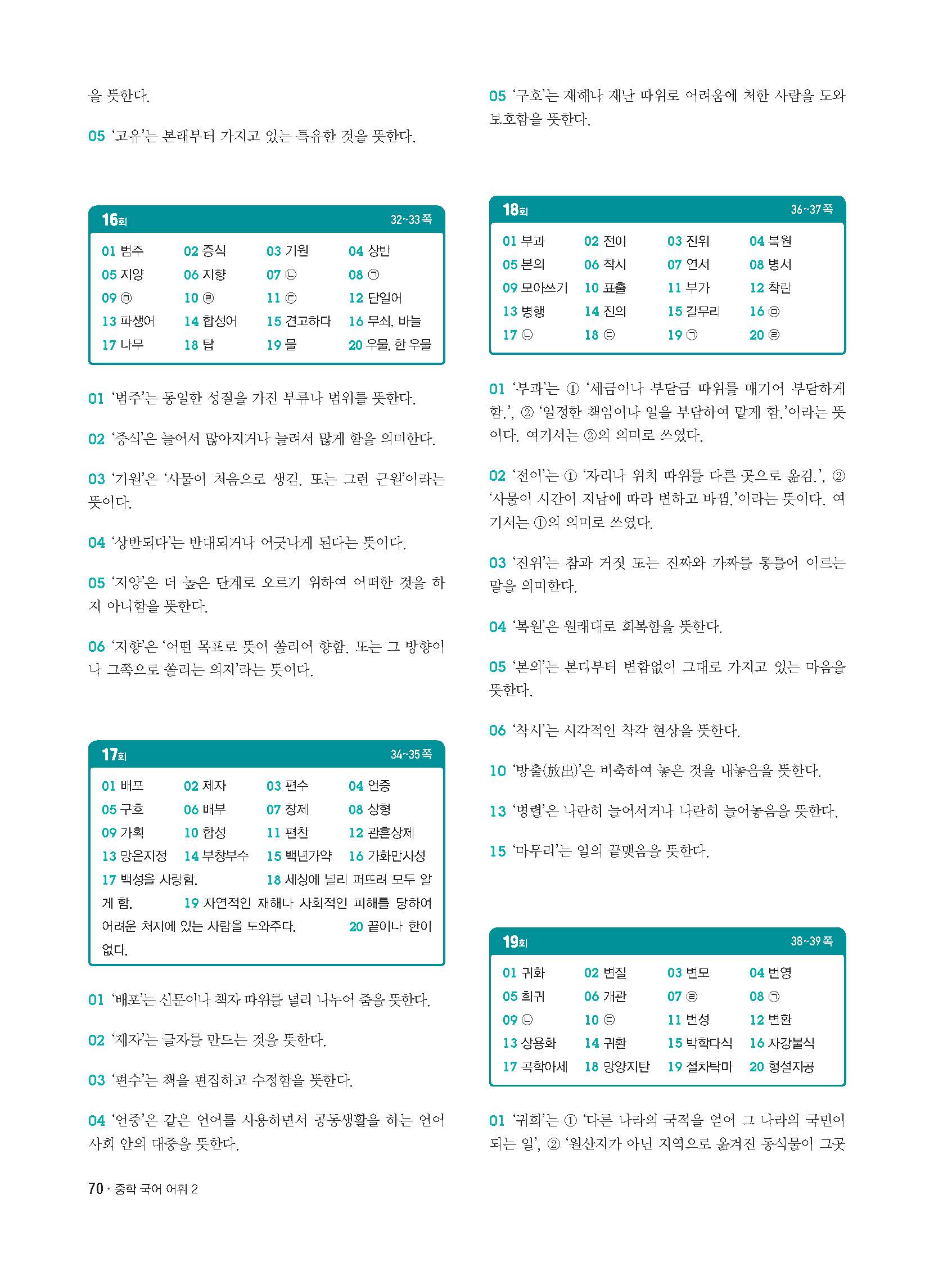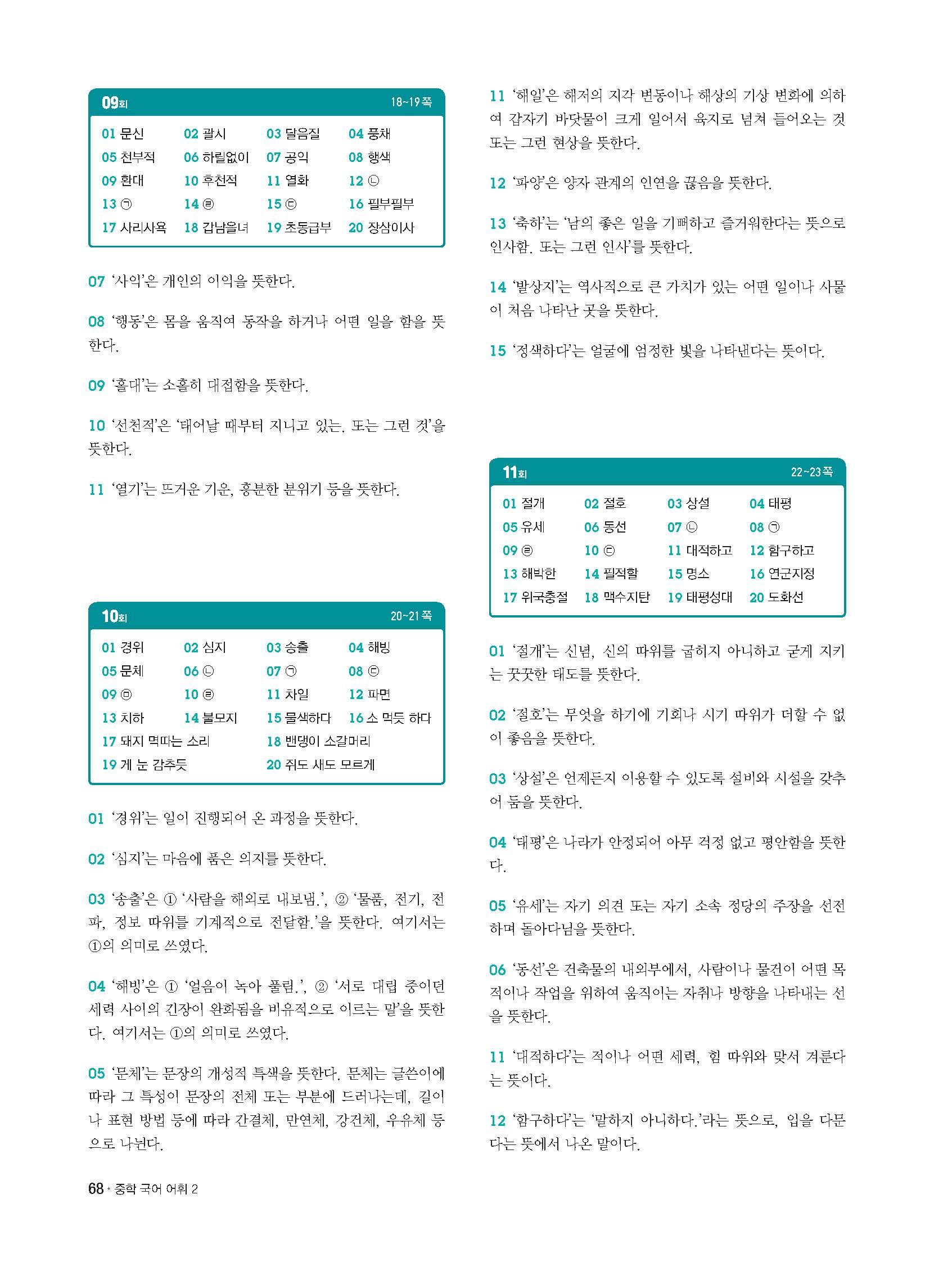 빠작 중학국어 어휘 2권 답지 해설지 사진답지 빠른답지 모바일최적화