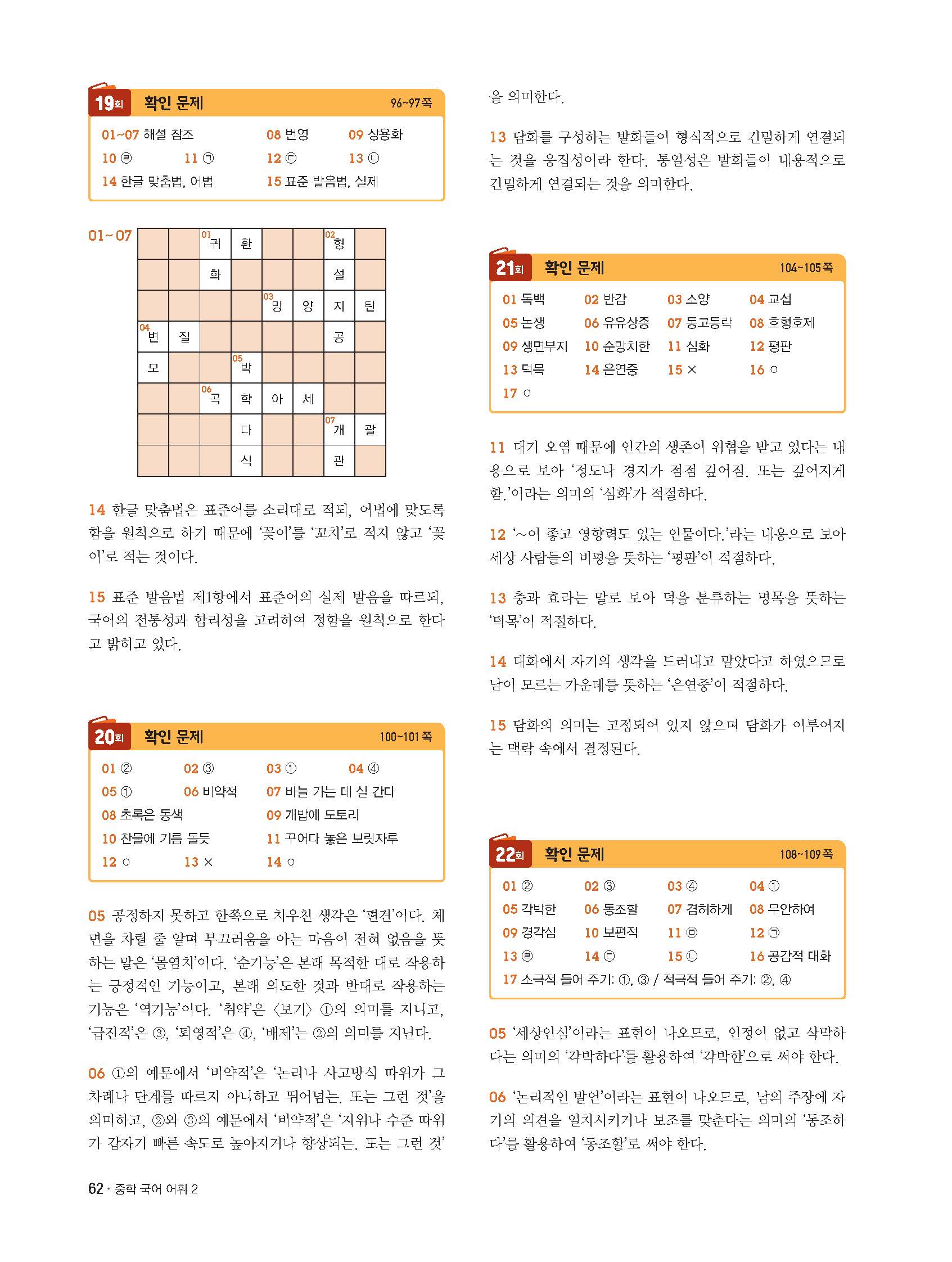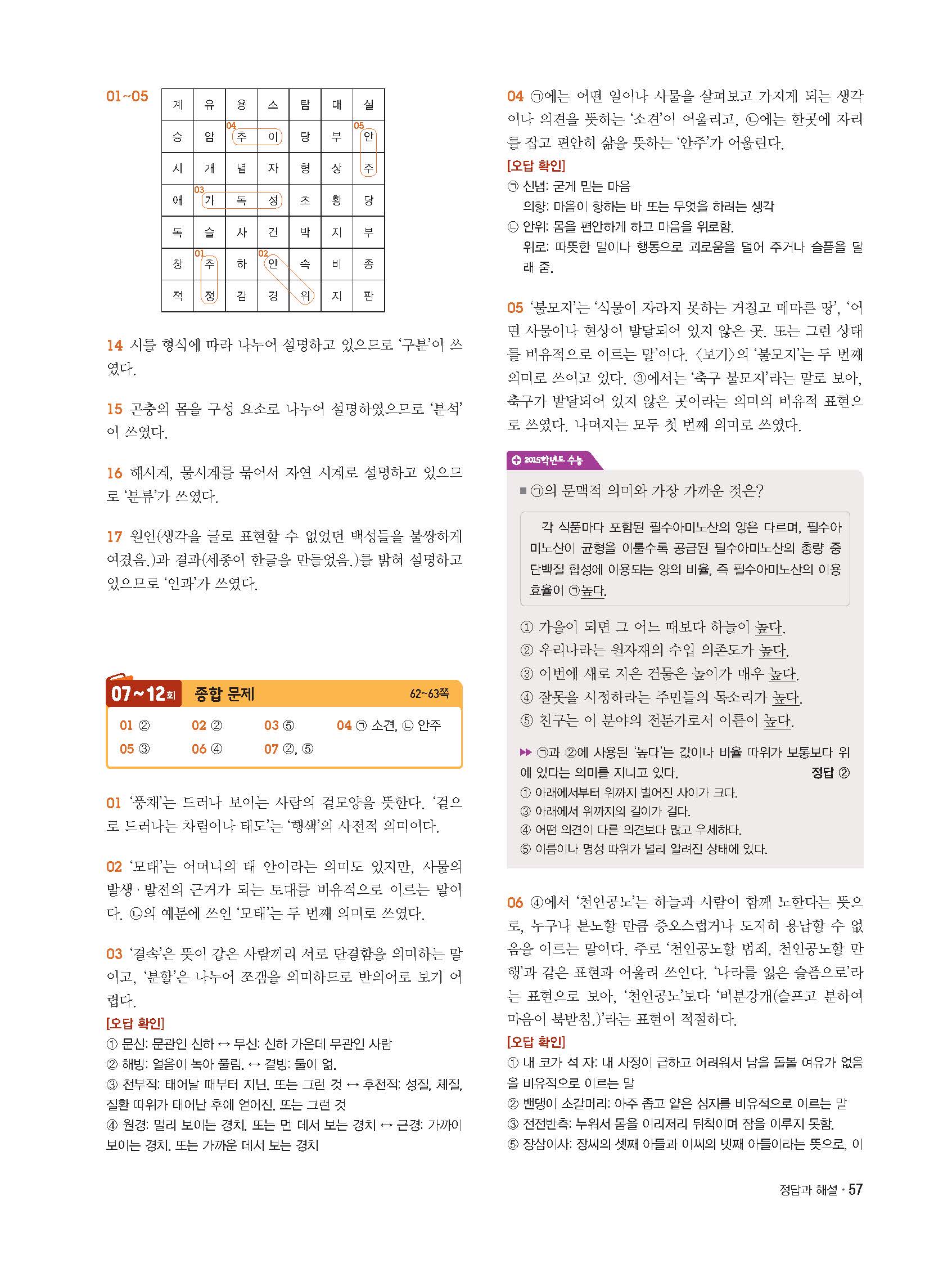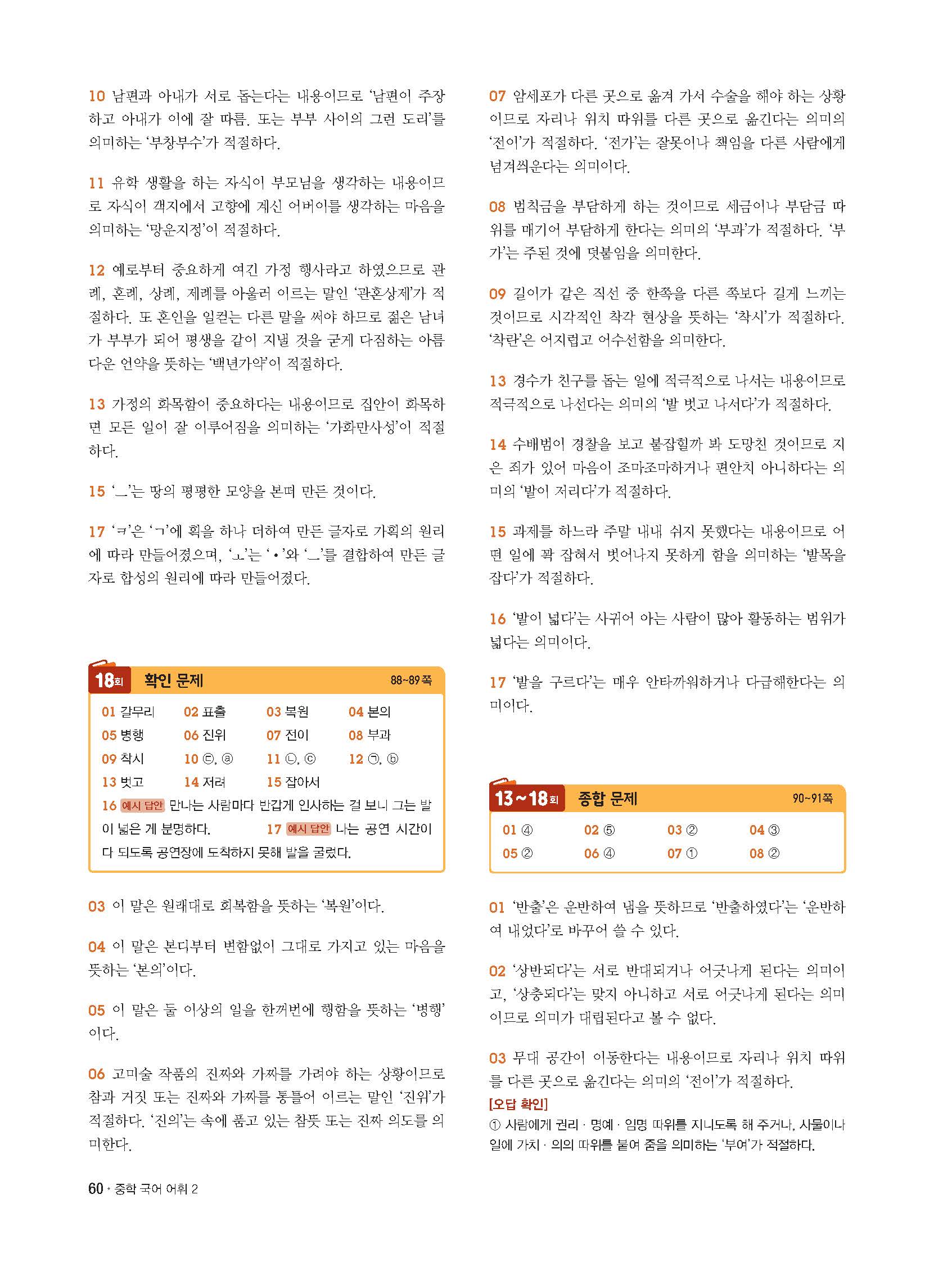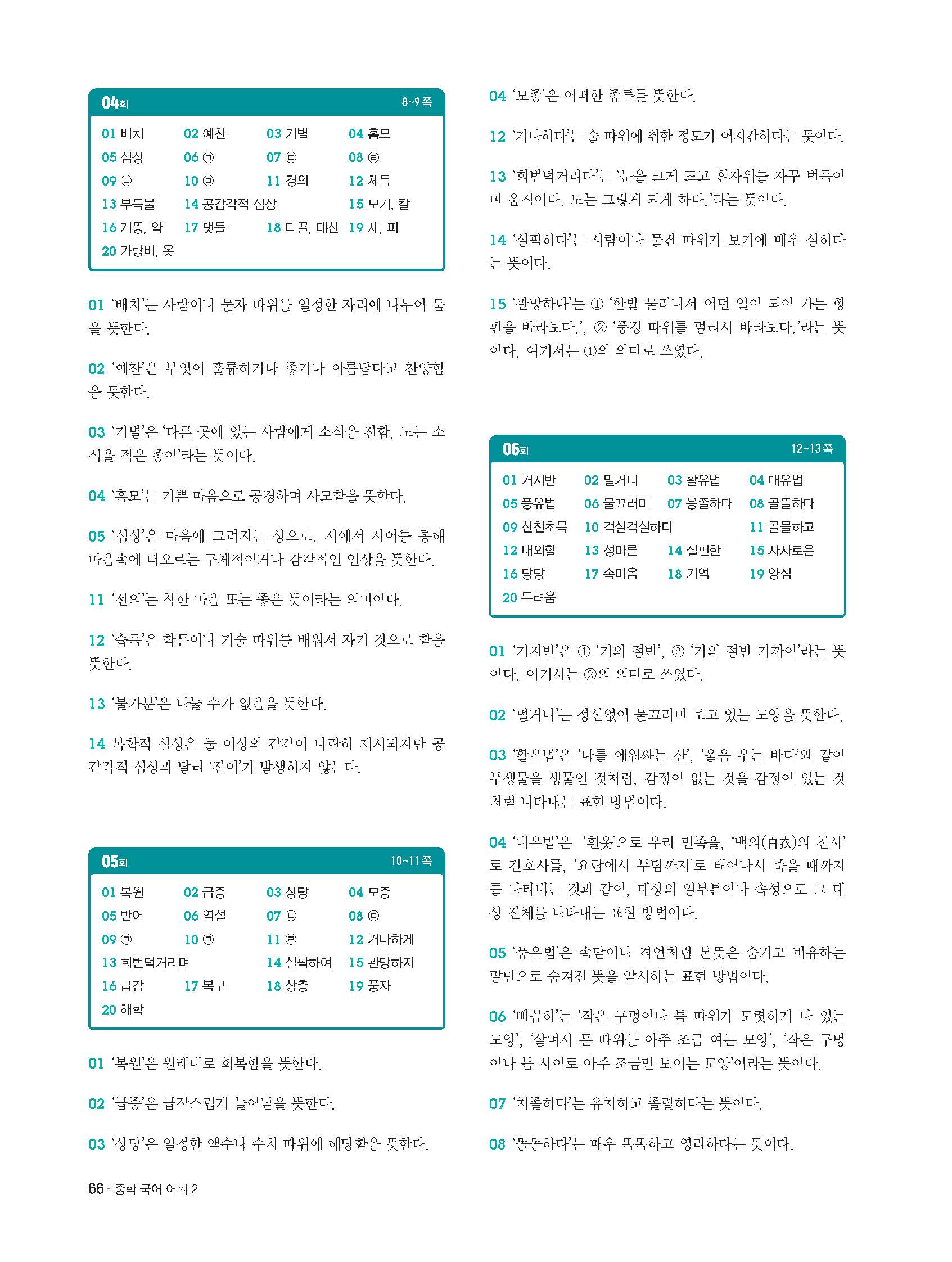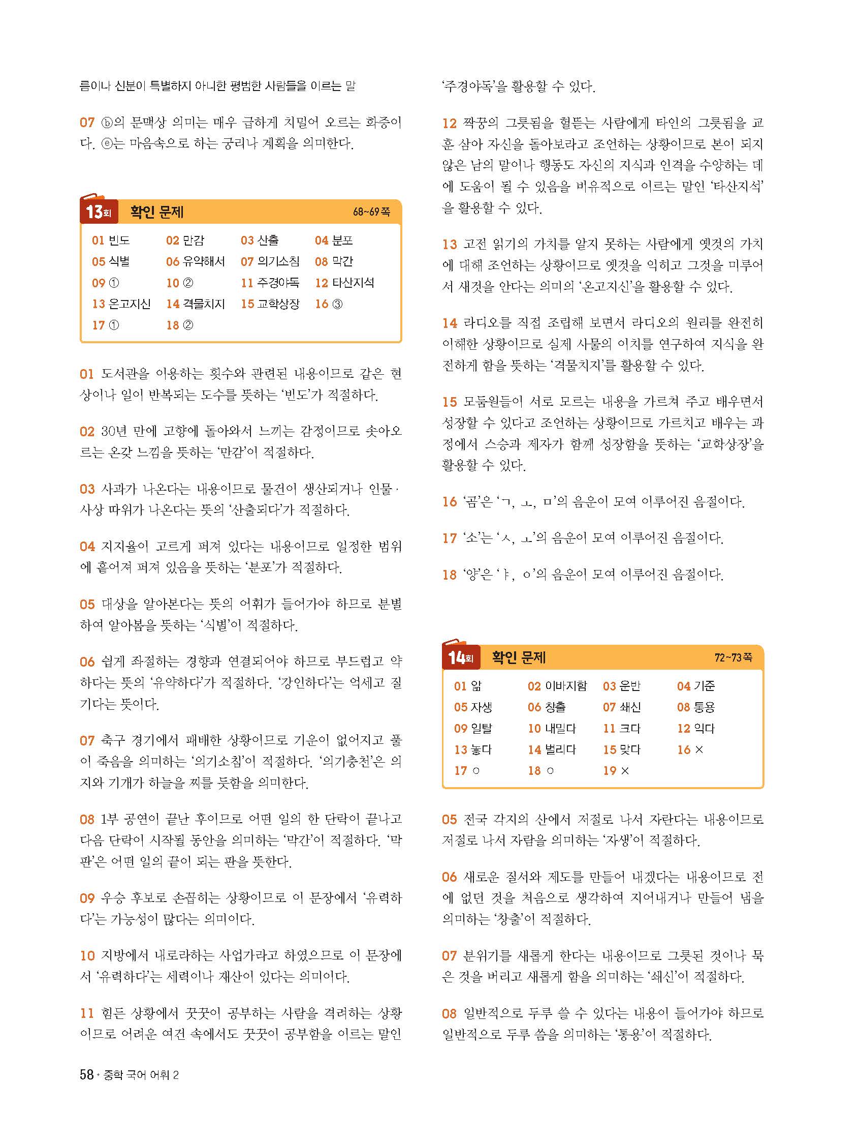 빠작 중학국어 어휘 2권 답지 해설지 사진답지 빠른답지 모바일최적화
