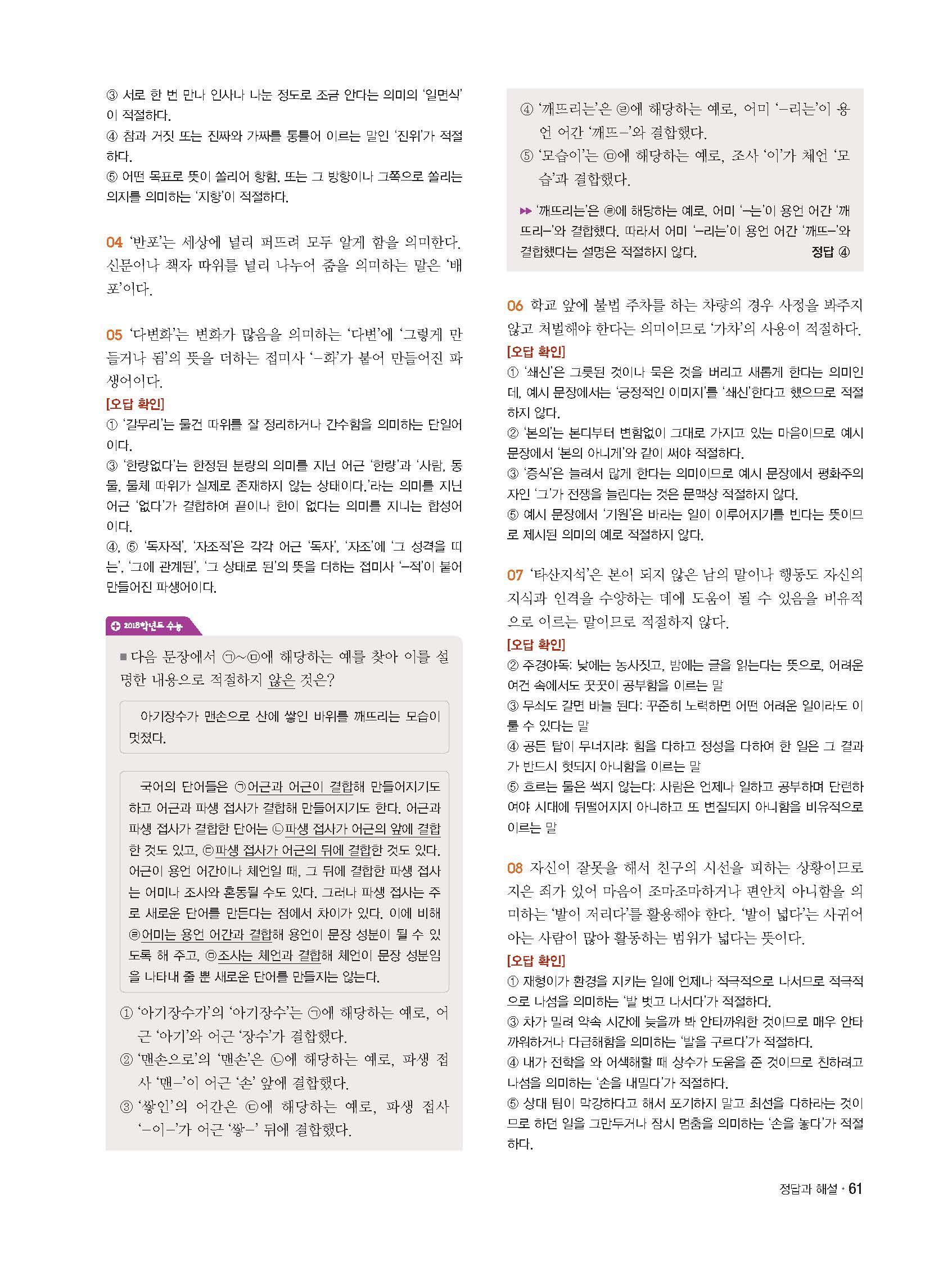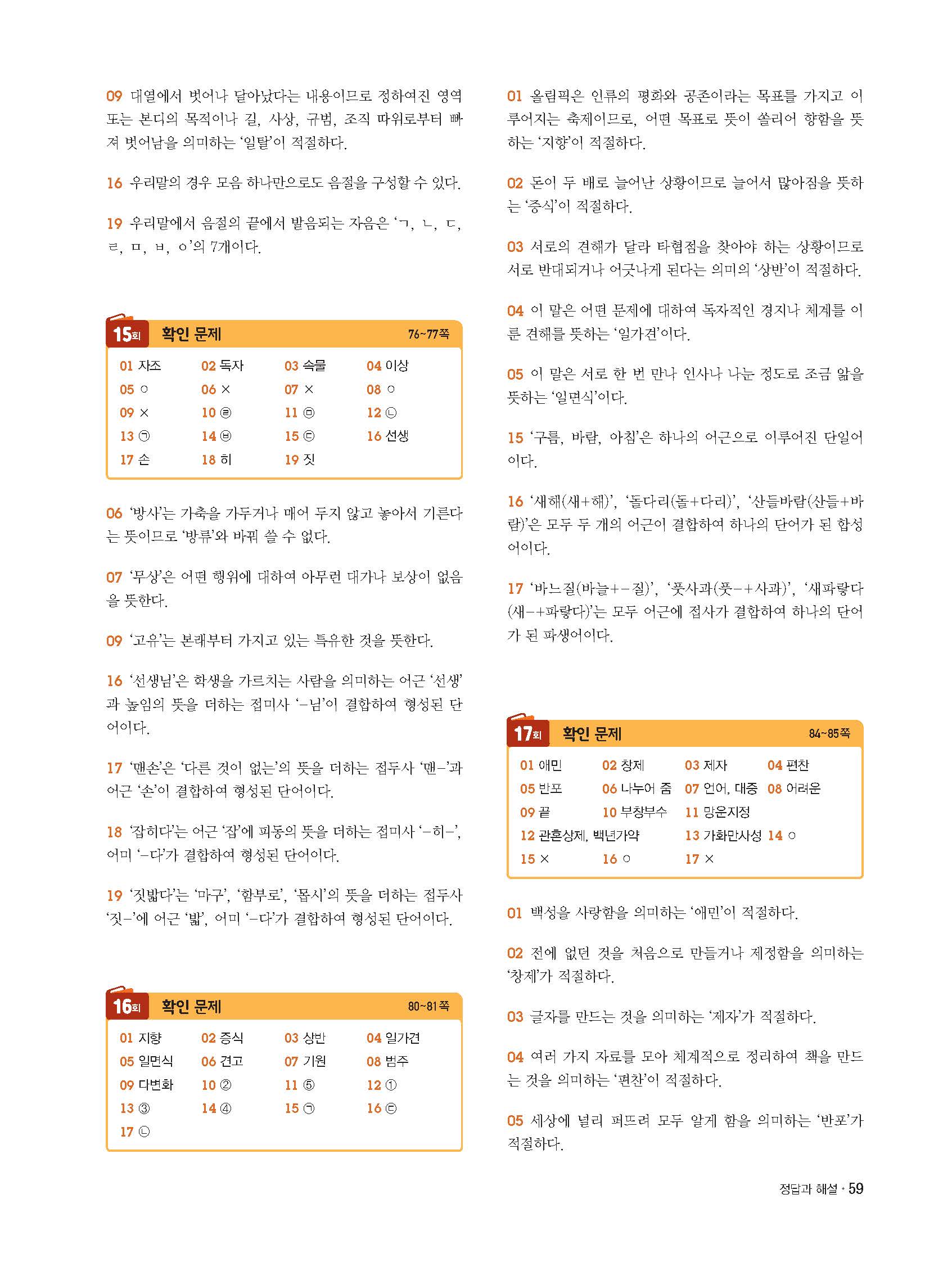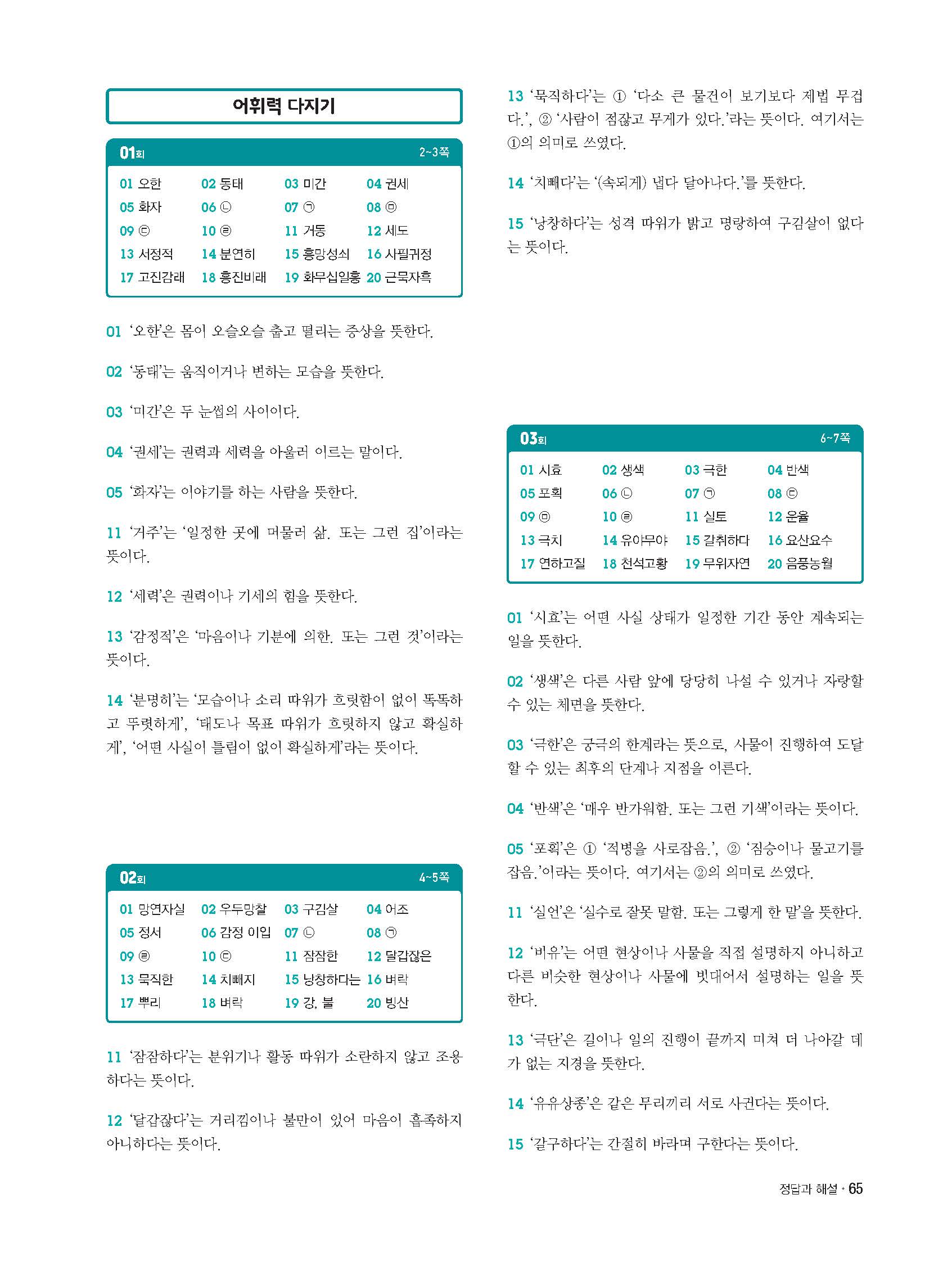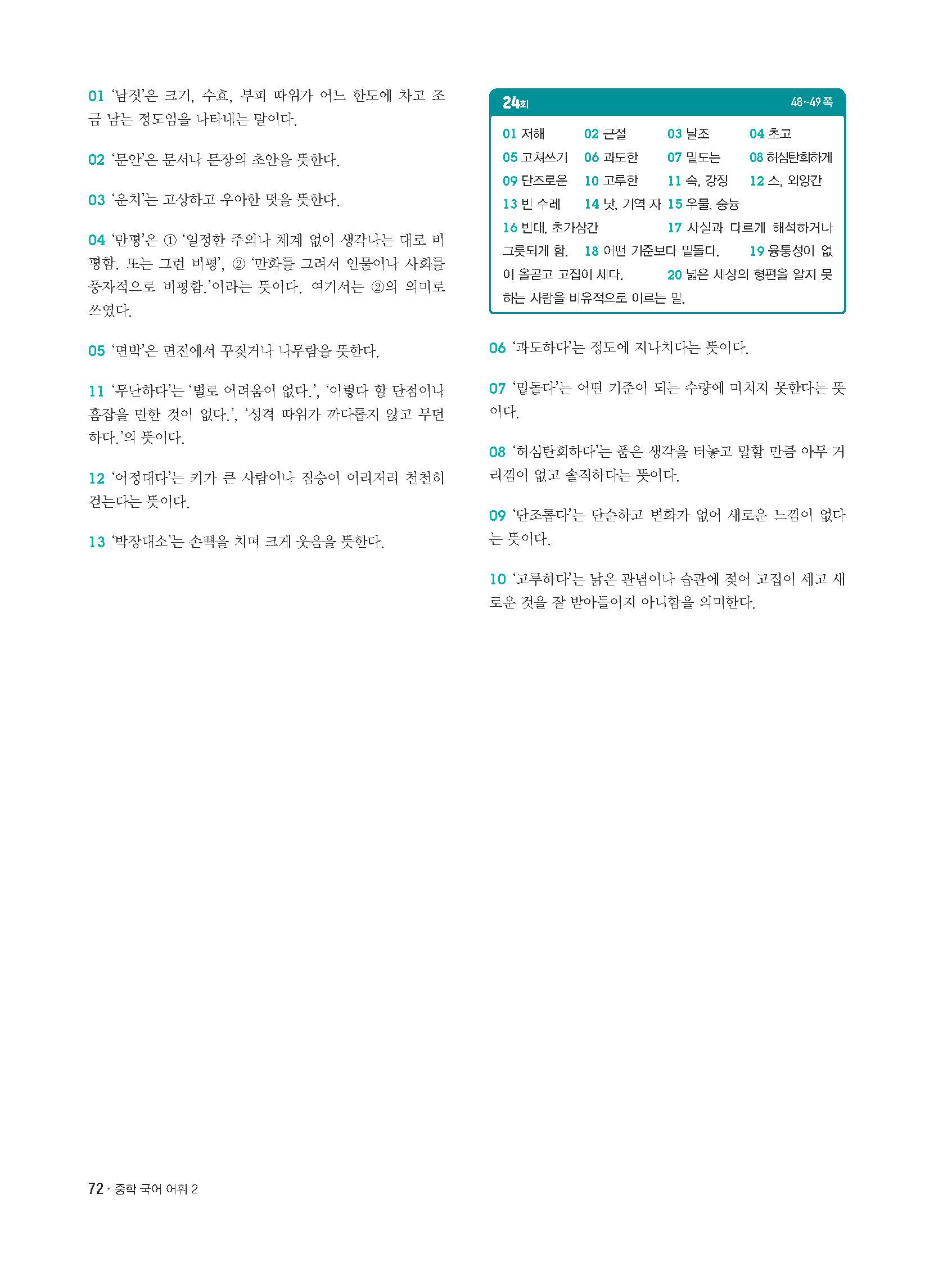 빠작 중학국어 어휘 2권 답지 해설지 사진답지 빠른답지 모바일최적화