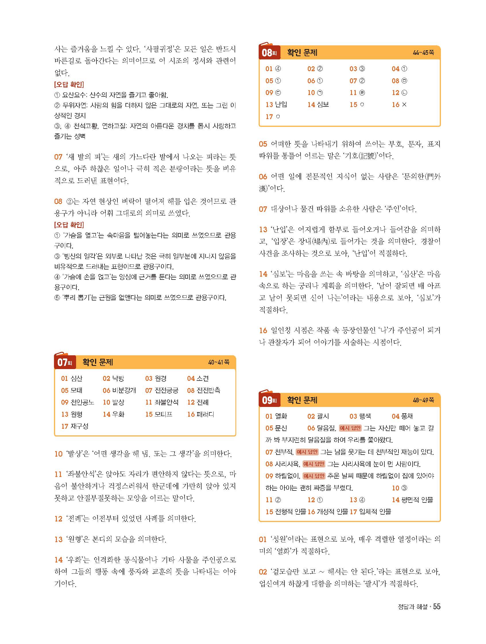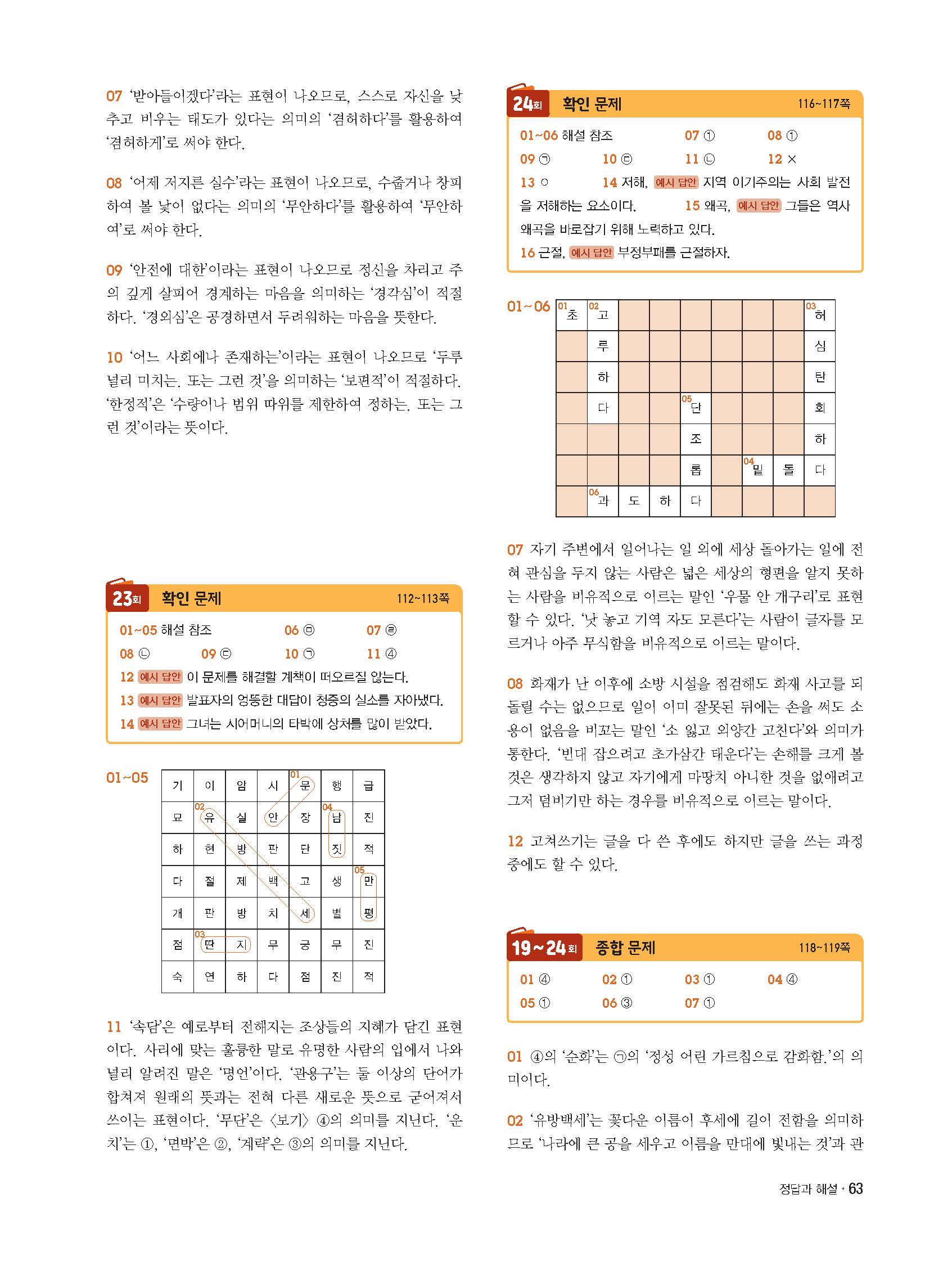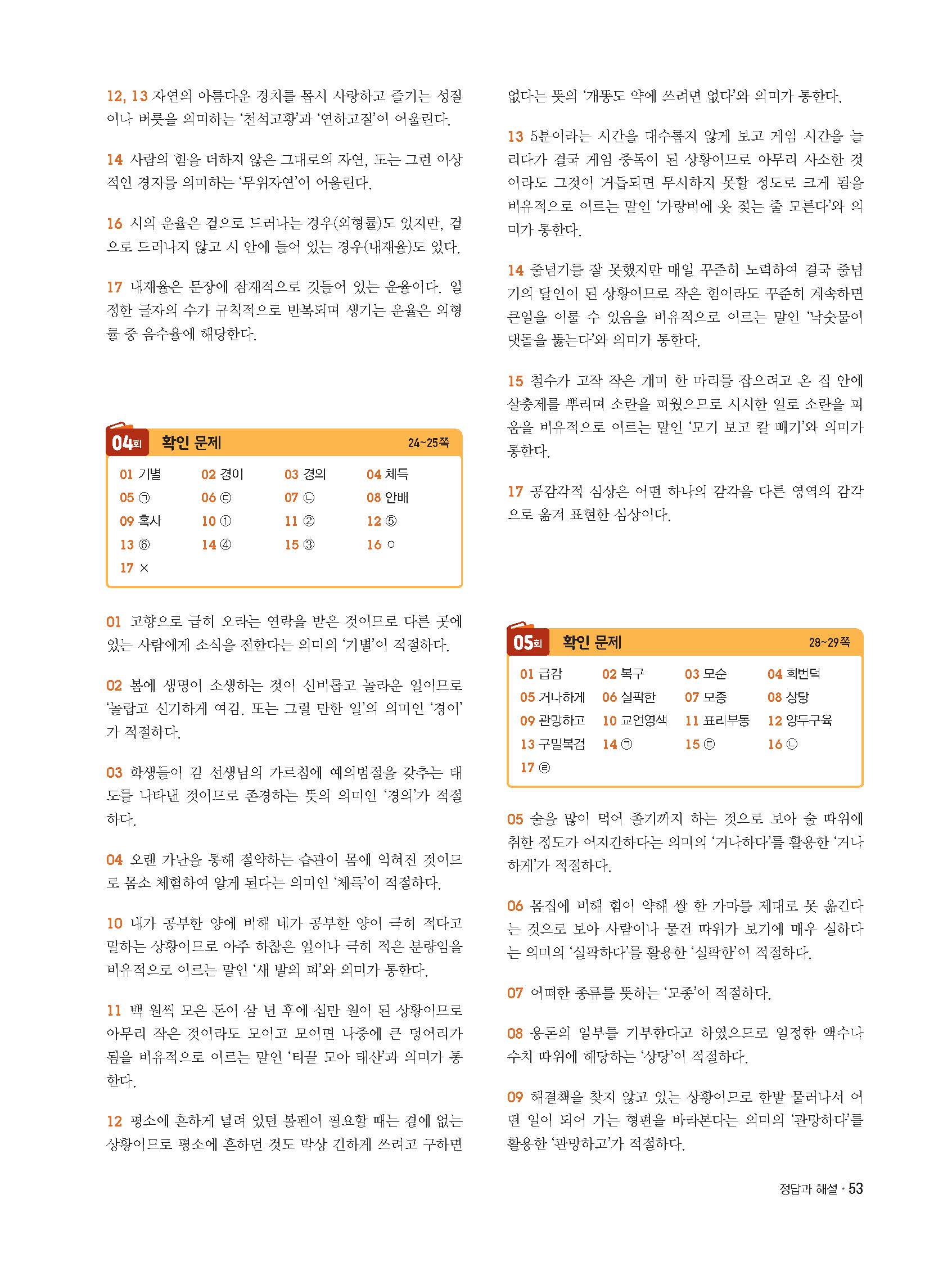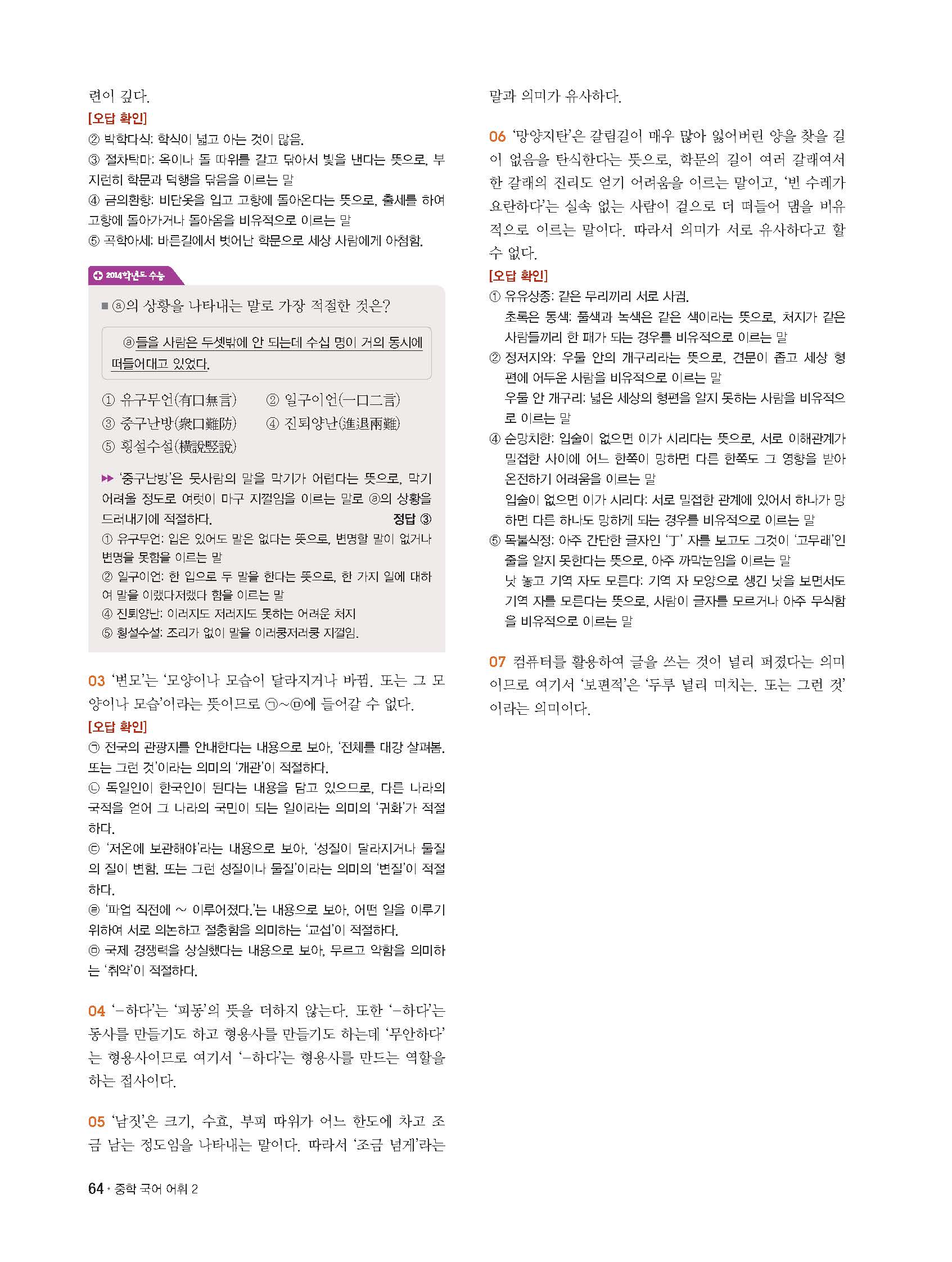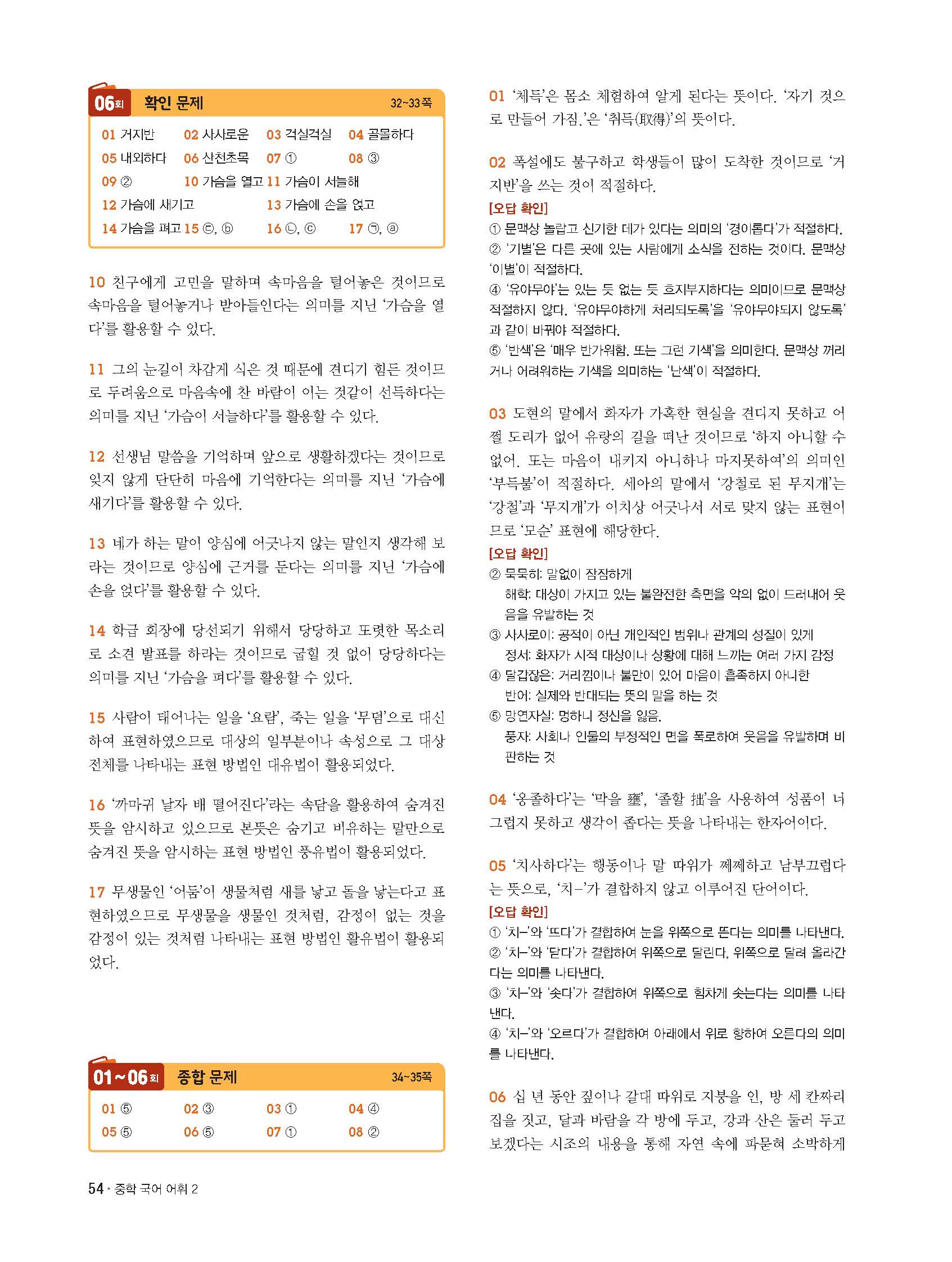 빠작 중학국어 어휘 2권 답지 해설지 사진답지 빠른답지 모바일최적화