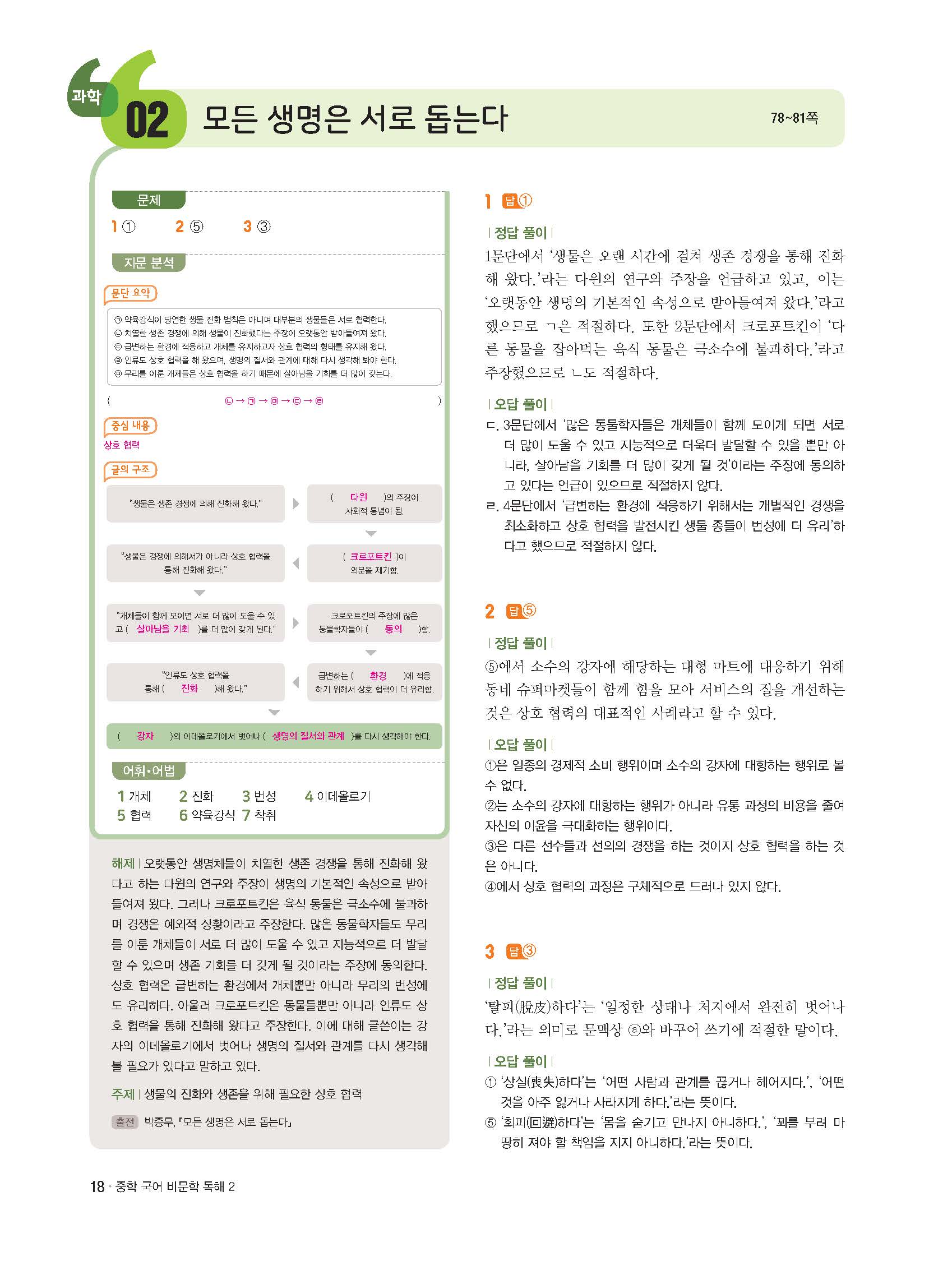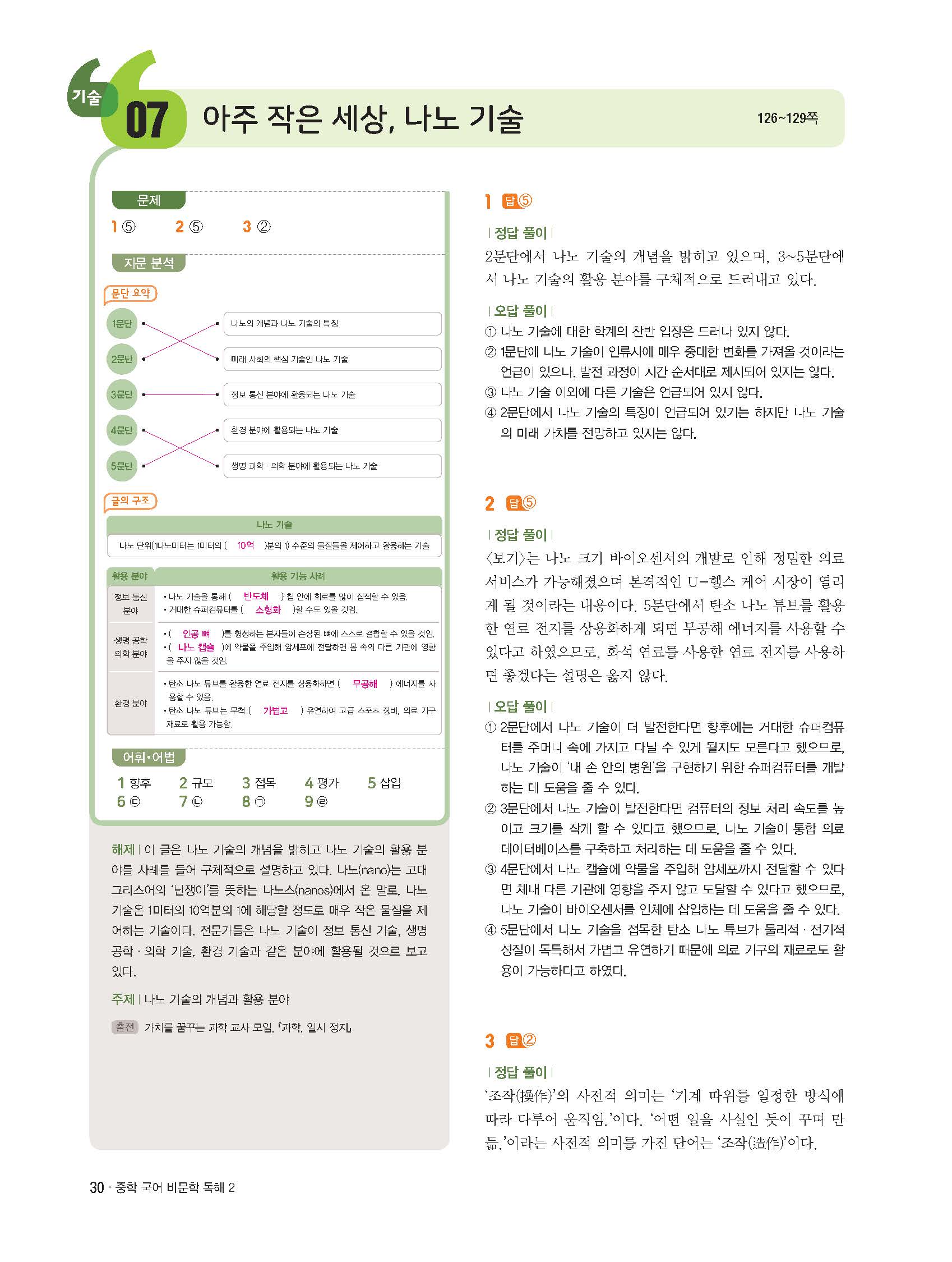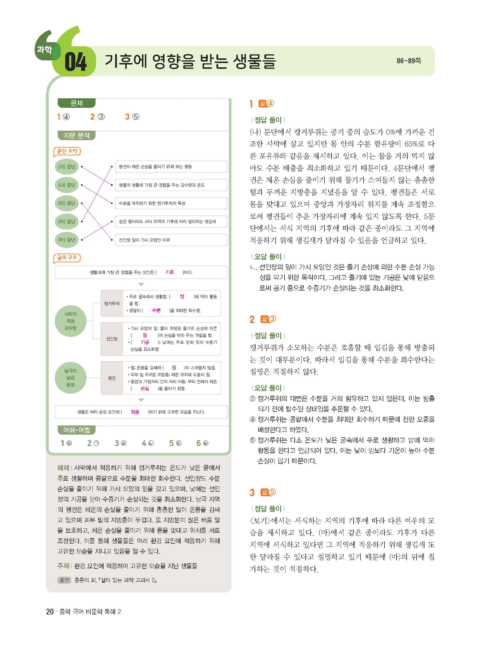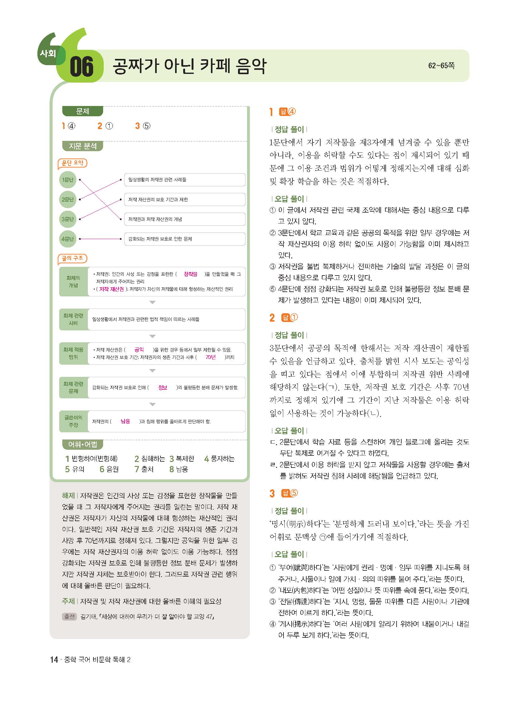빠작중등 국어비문학 독해 2권 답지 해설지 사진답지 빠른답지 모바일최적화