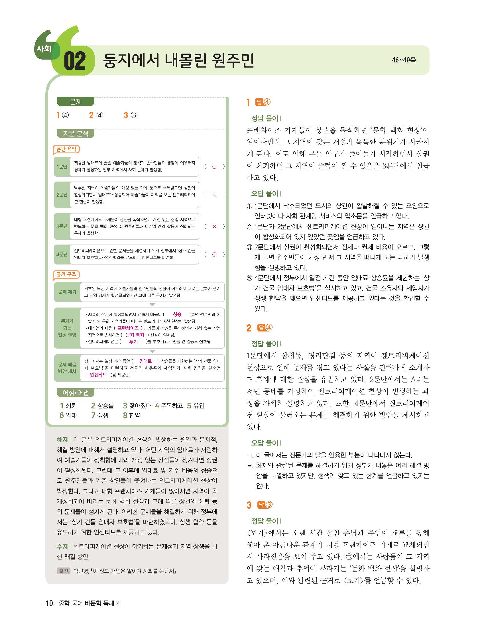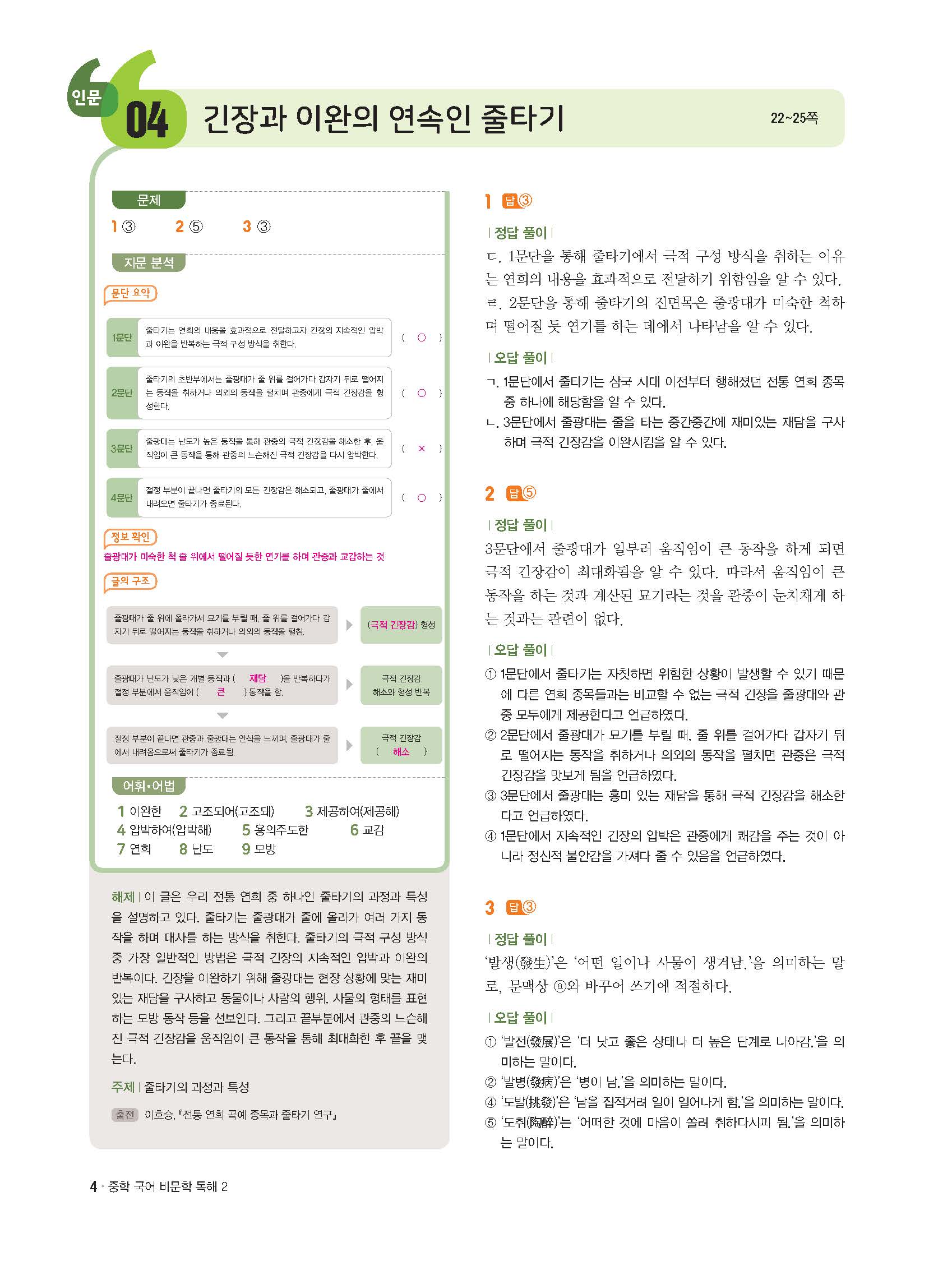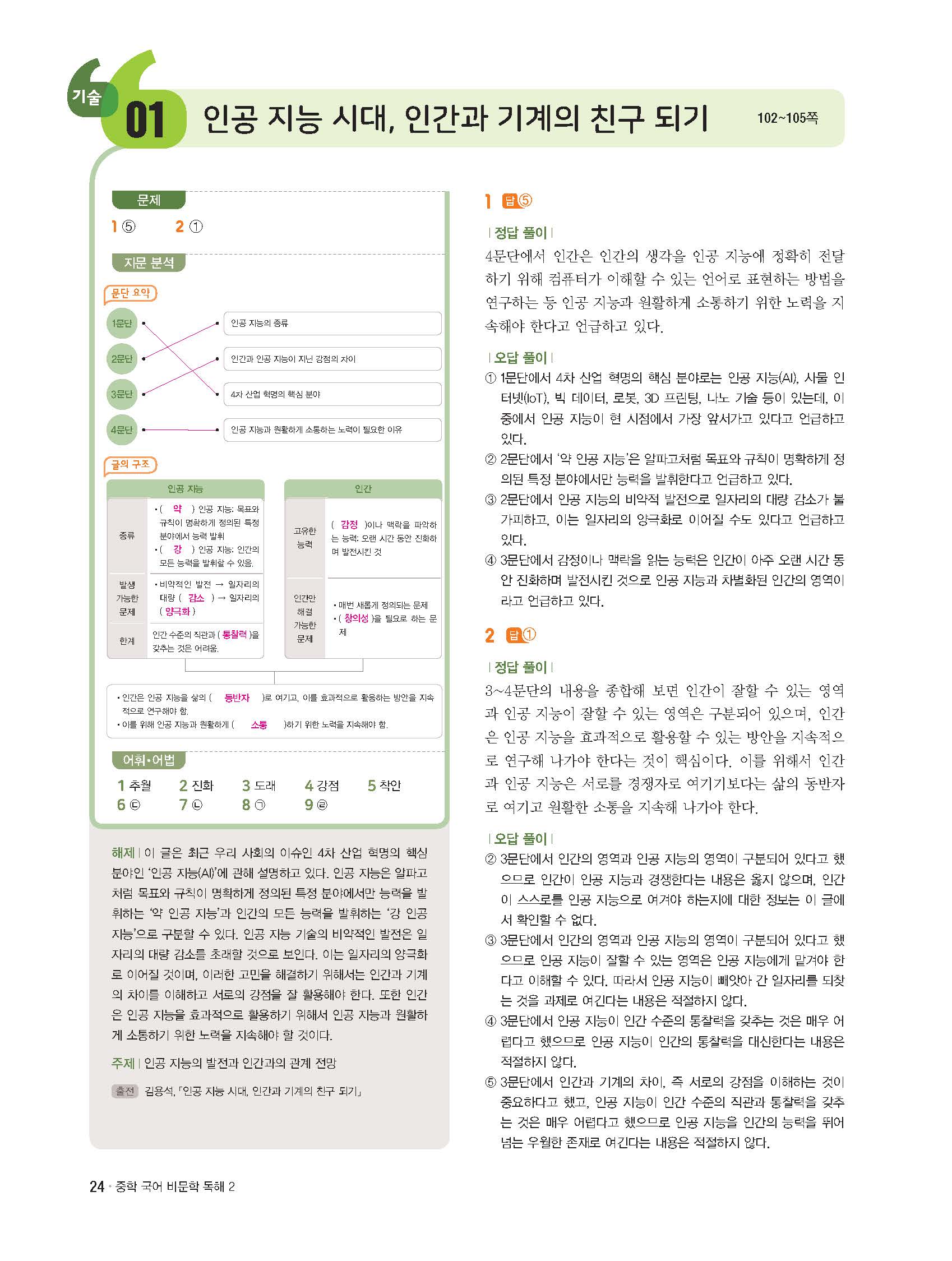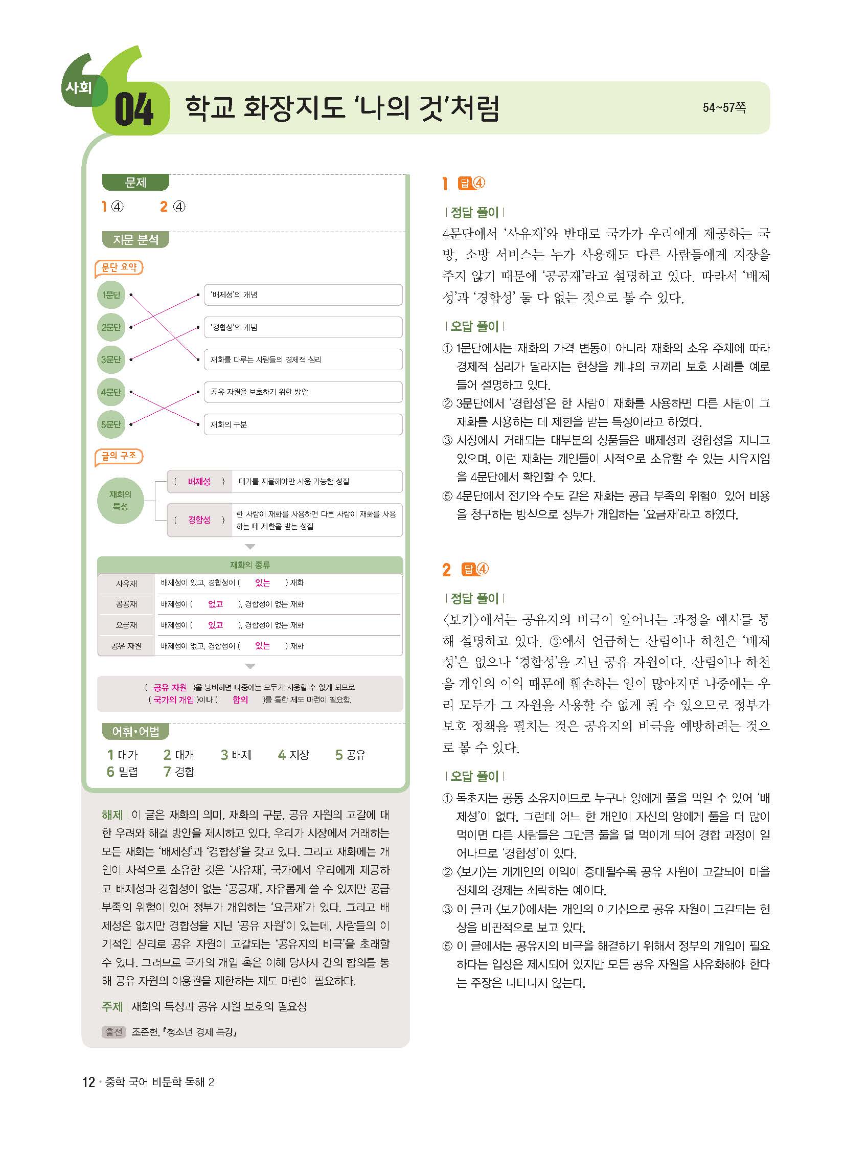 빠작중등 국어비문학 독해 2권 답지 해설지 사진답지 빠른답지 모바일최적화