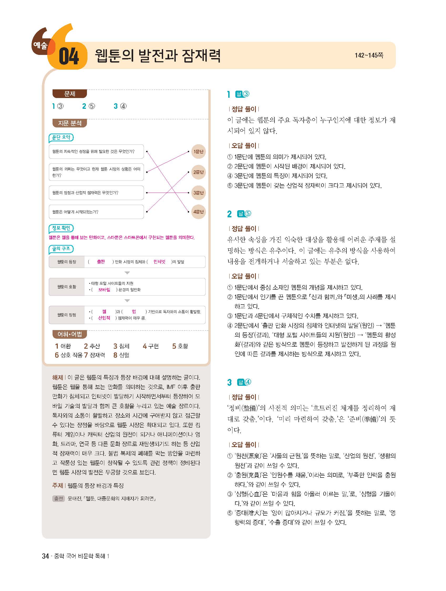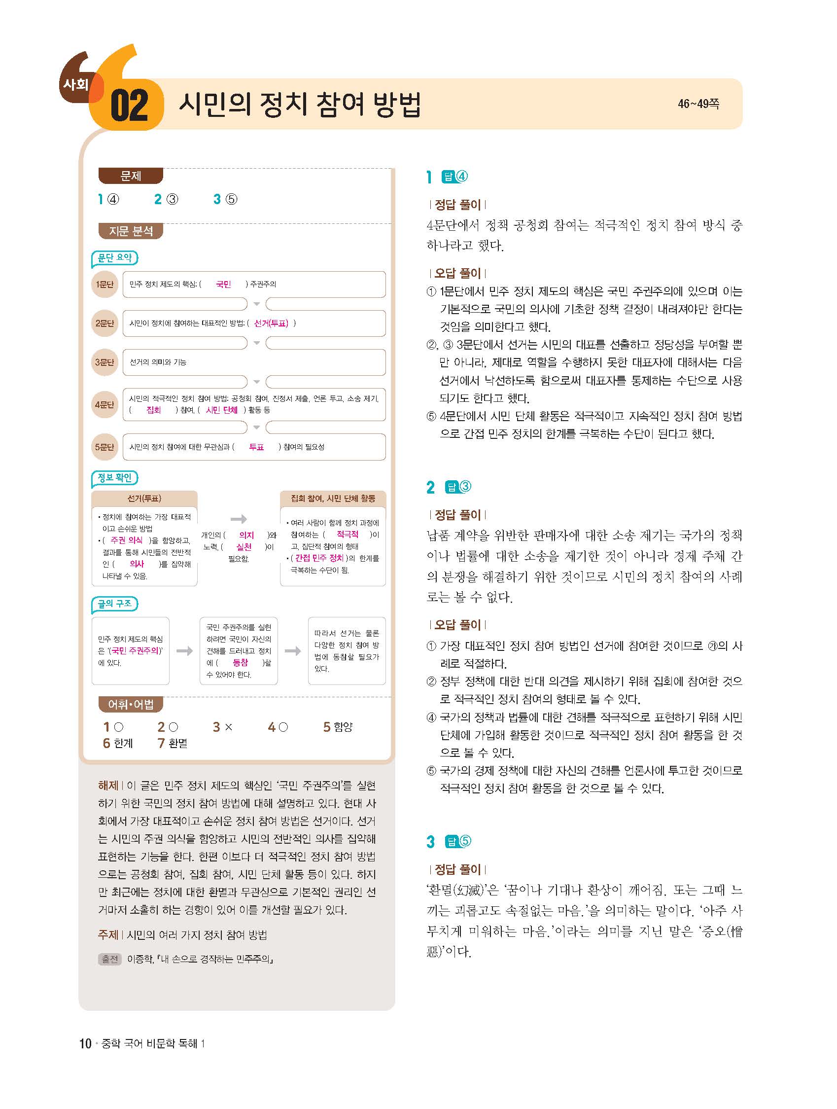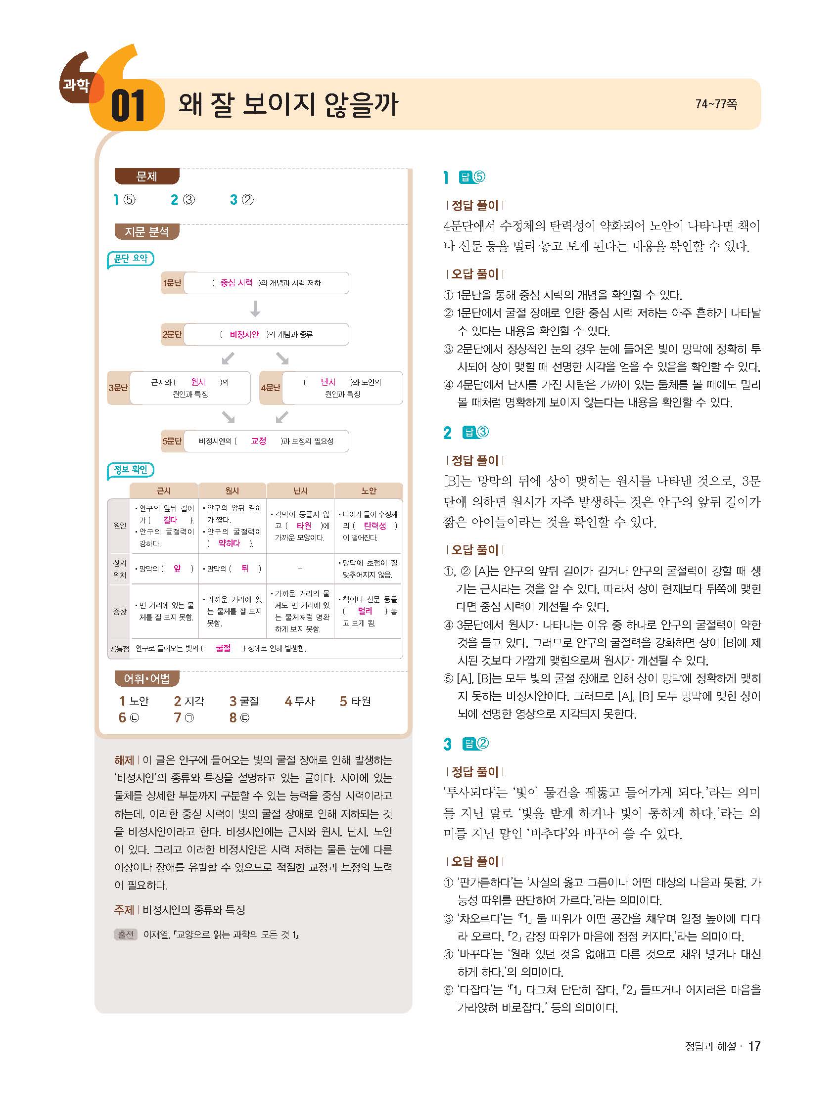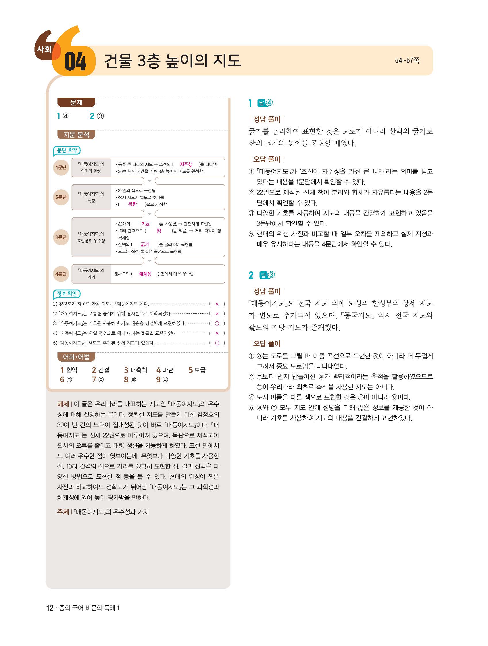 빠작중등 국어비문학 독해 1권 답지 해설지 사진답지 빠른답지 모바일최적화