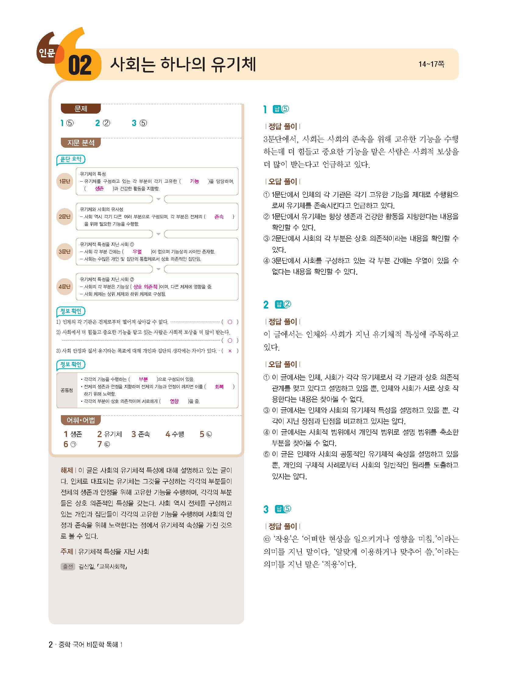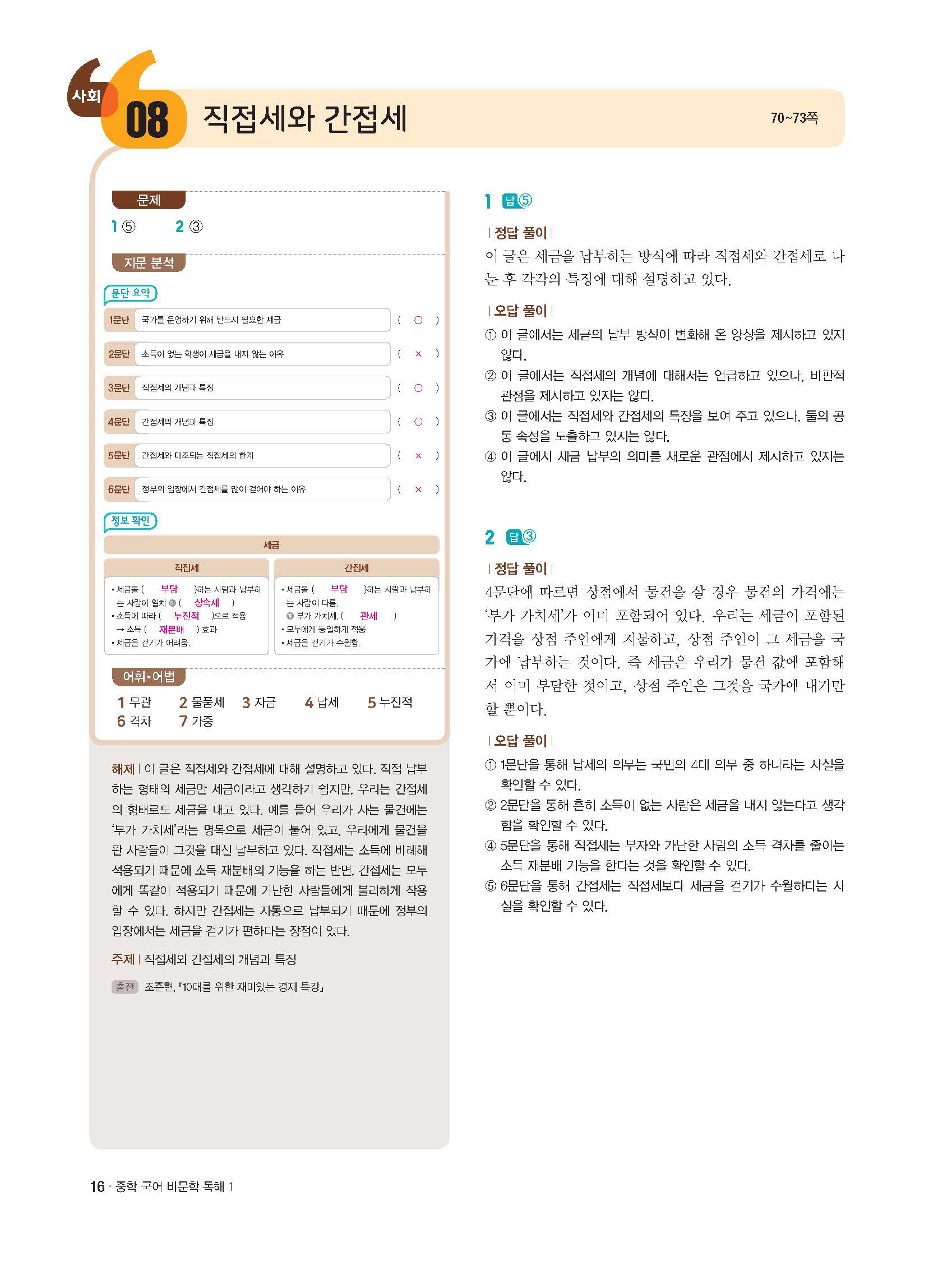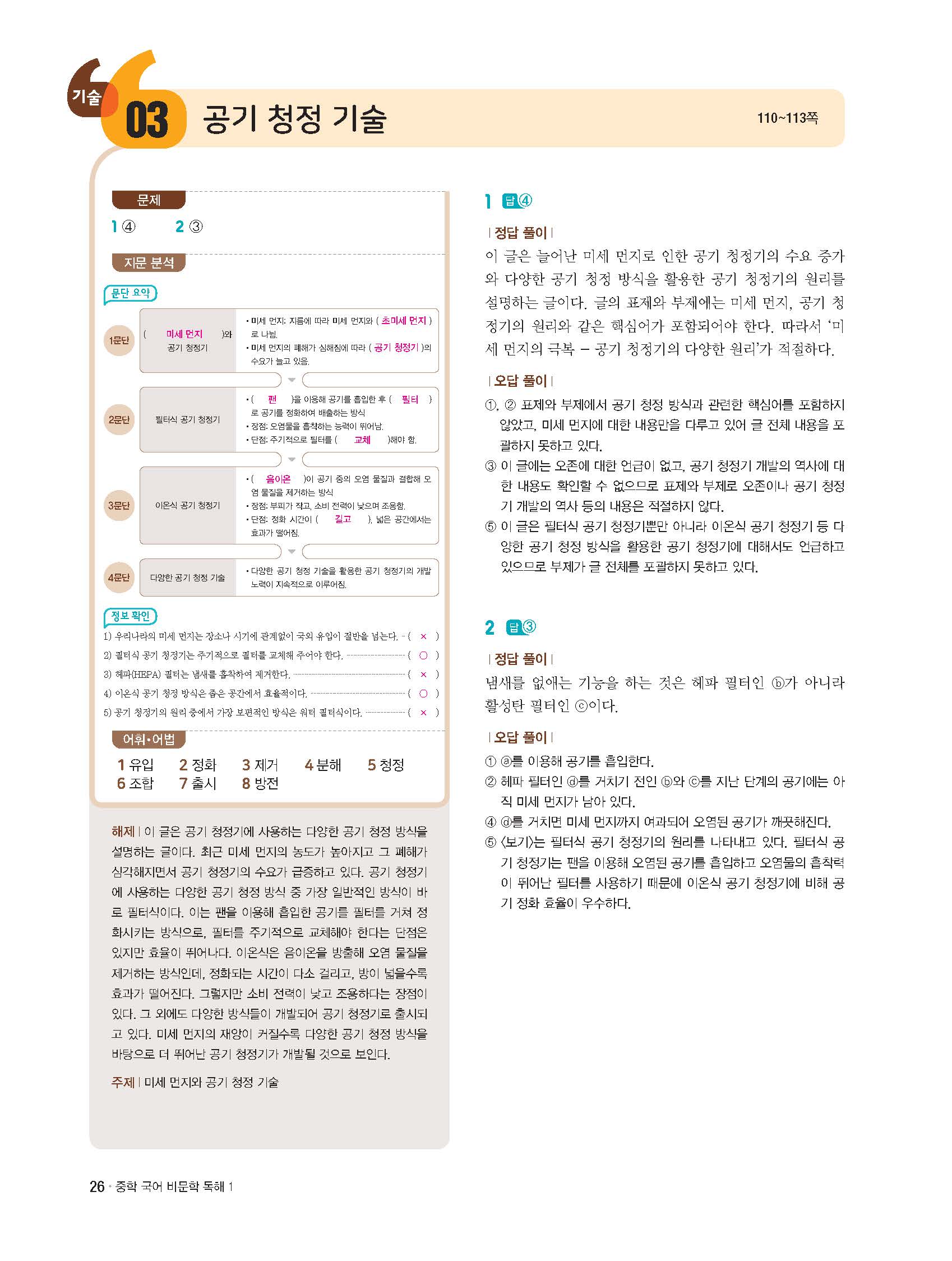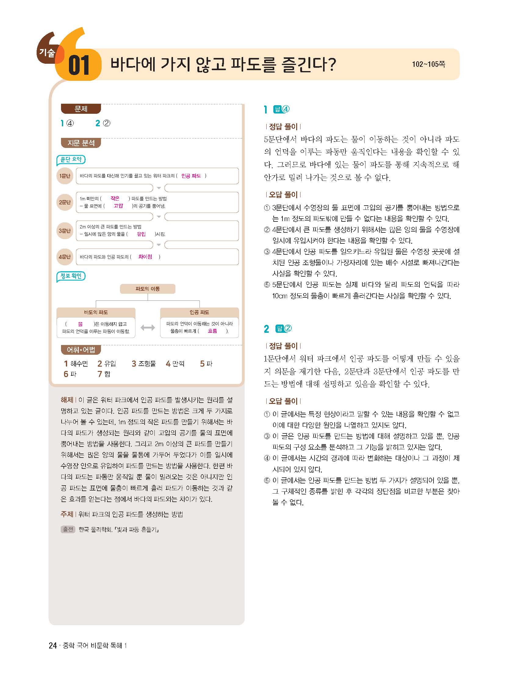 빠작중등 국어비문학 독해 1권 답지 해설지 사진답지 빠른답지 모바일최적화