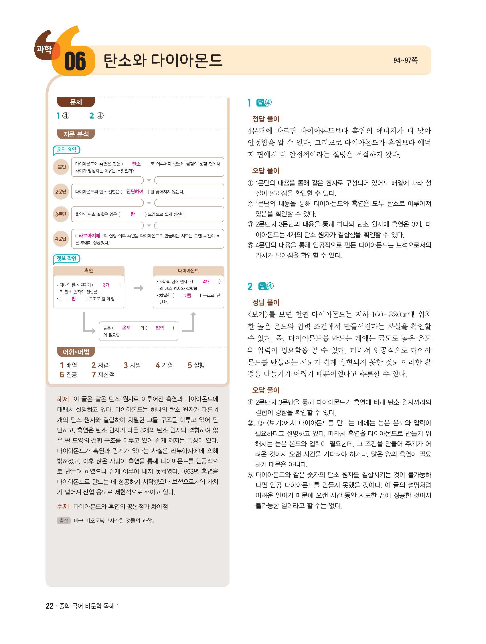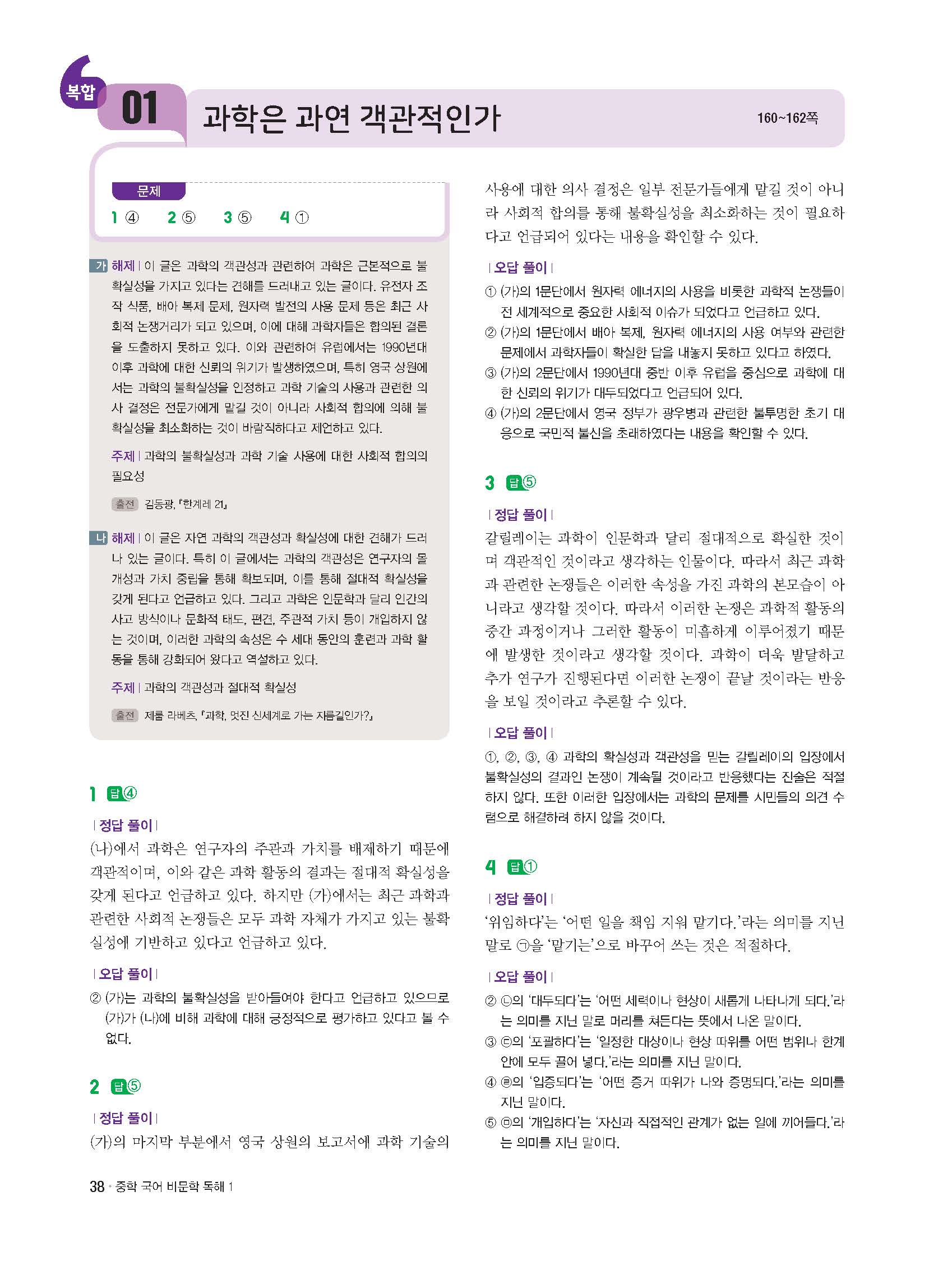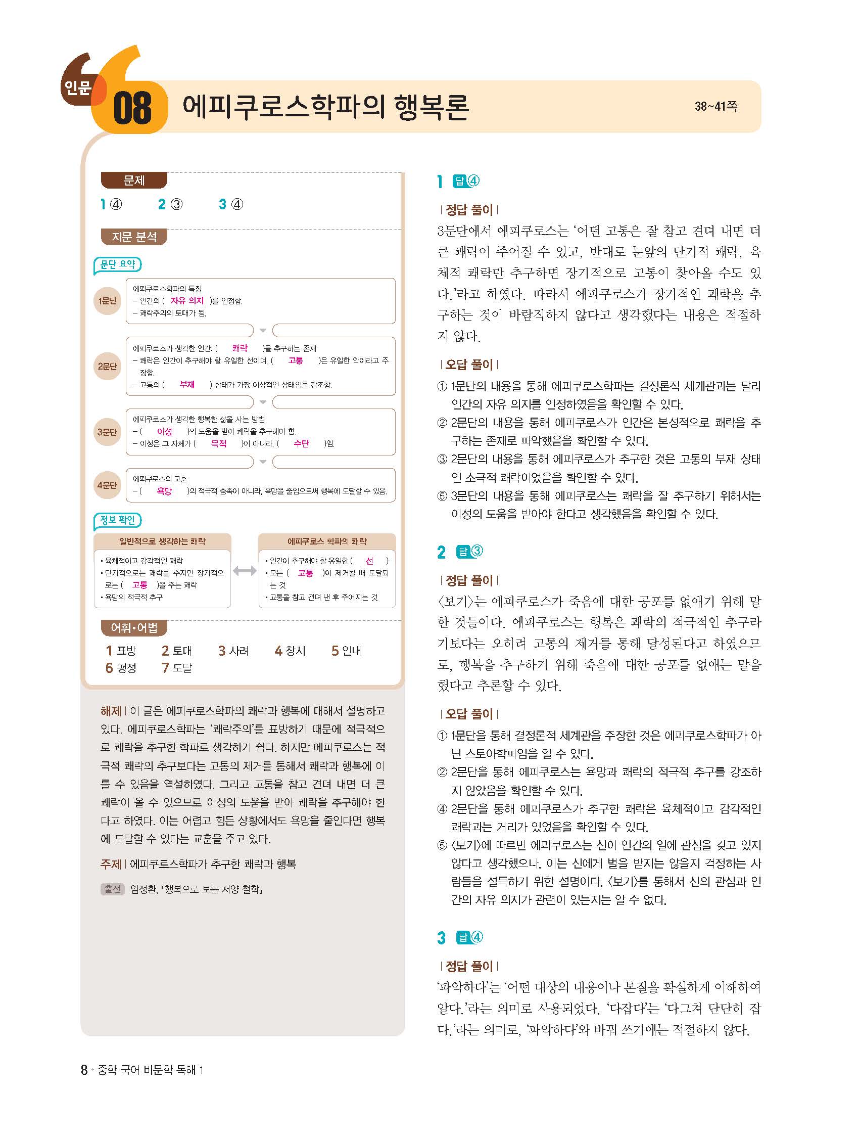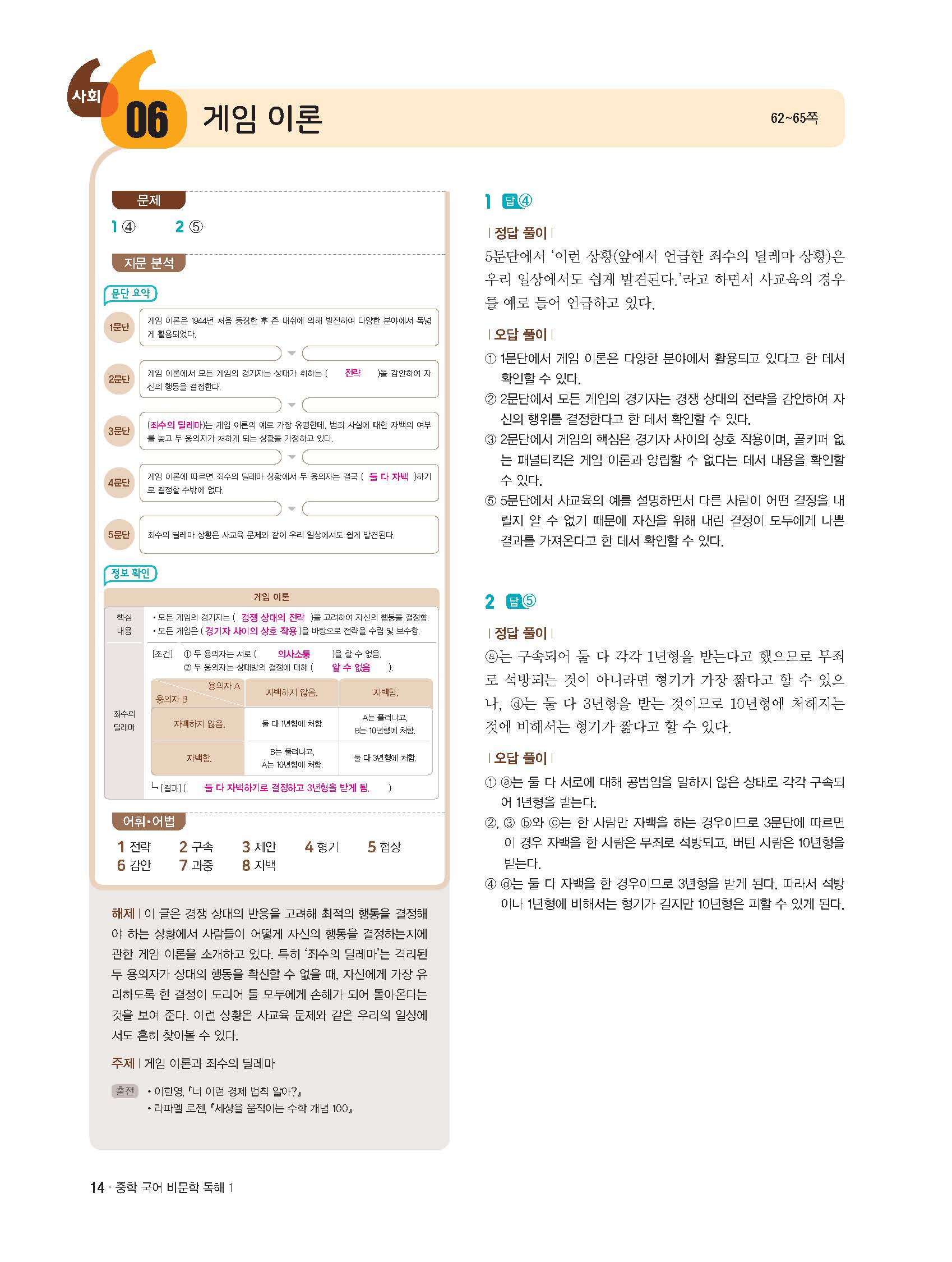 빠작중등 국어비문학 독해 1권 답지 해설지 사진답지 빠른답지 모바일최적화