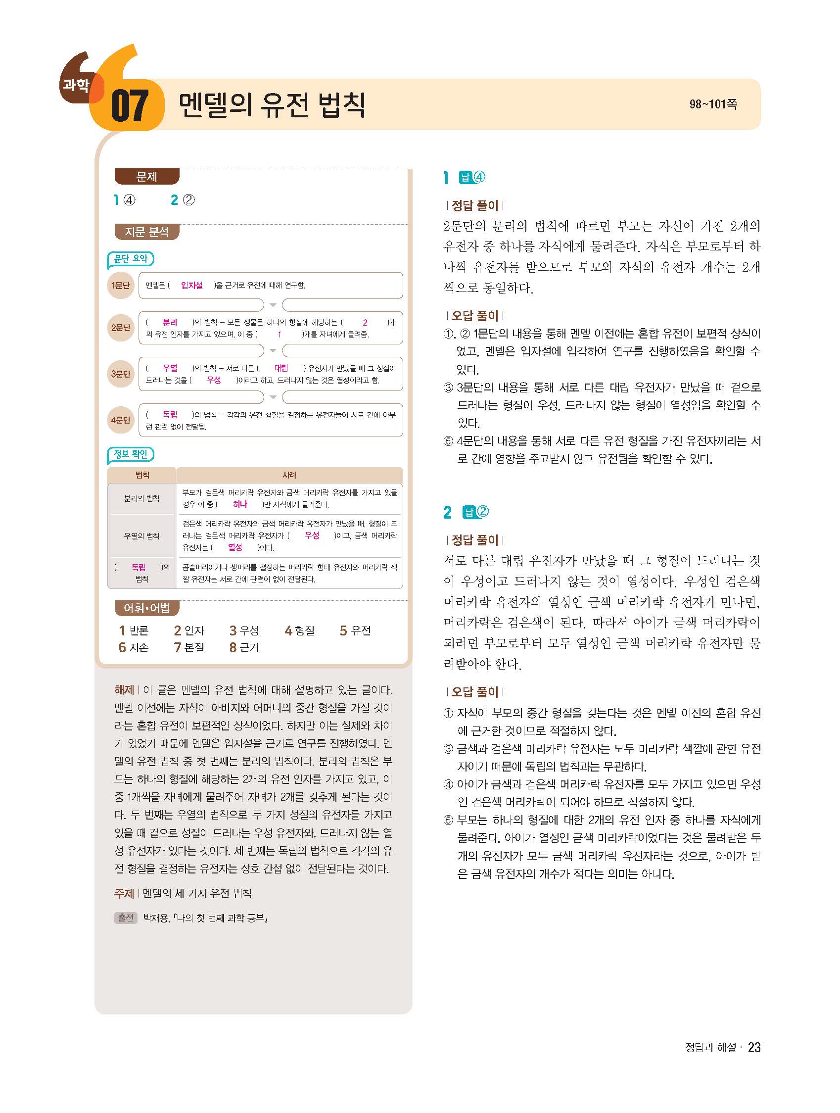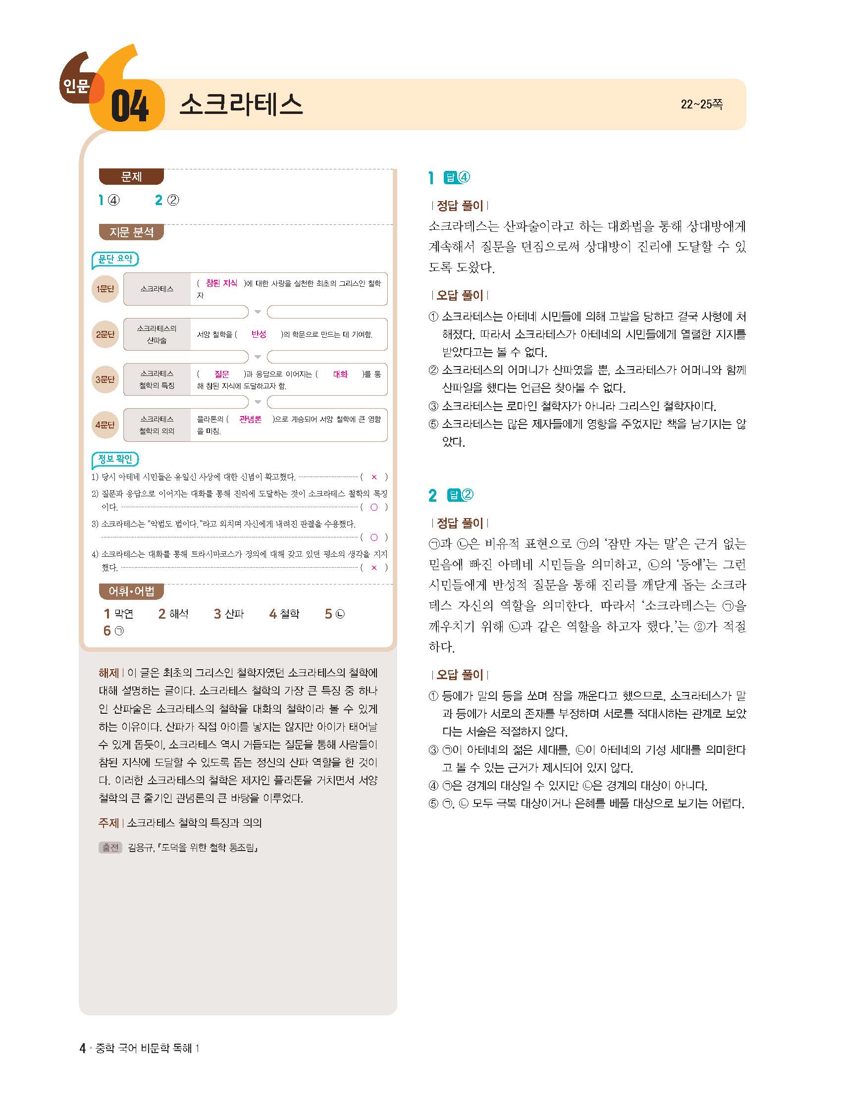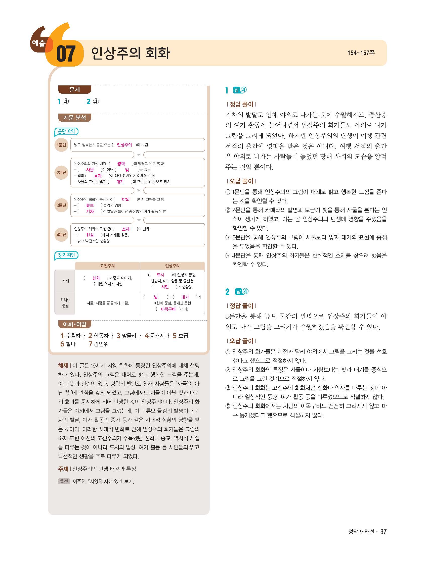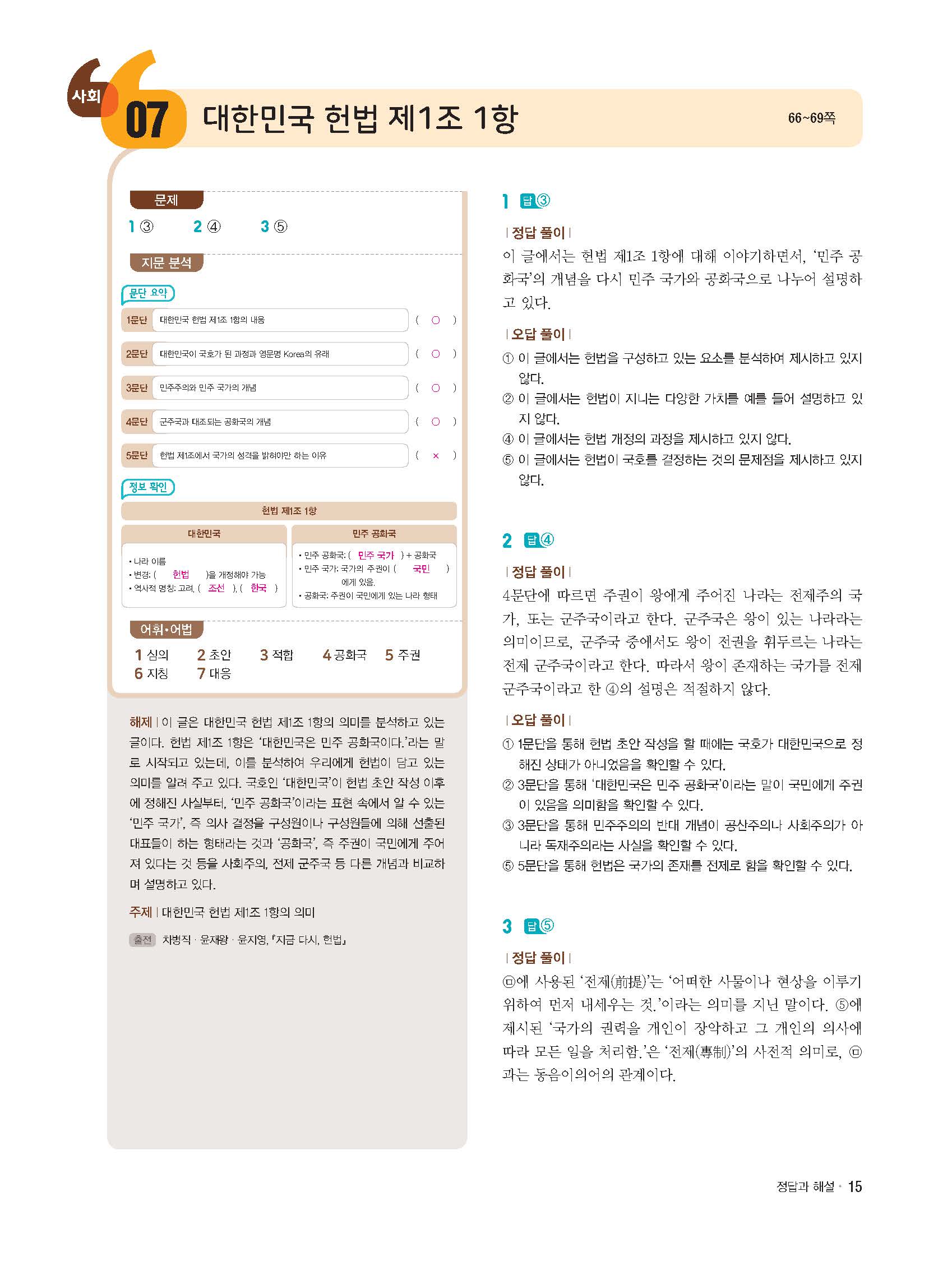 빠작중등 국어비문학 독해 1권 답지 해설지 사진답지 빠른답지 모바일최적화