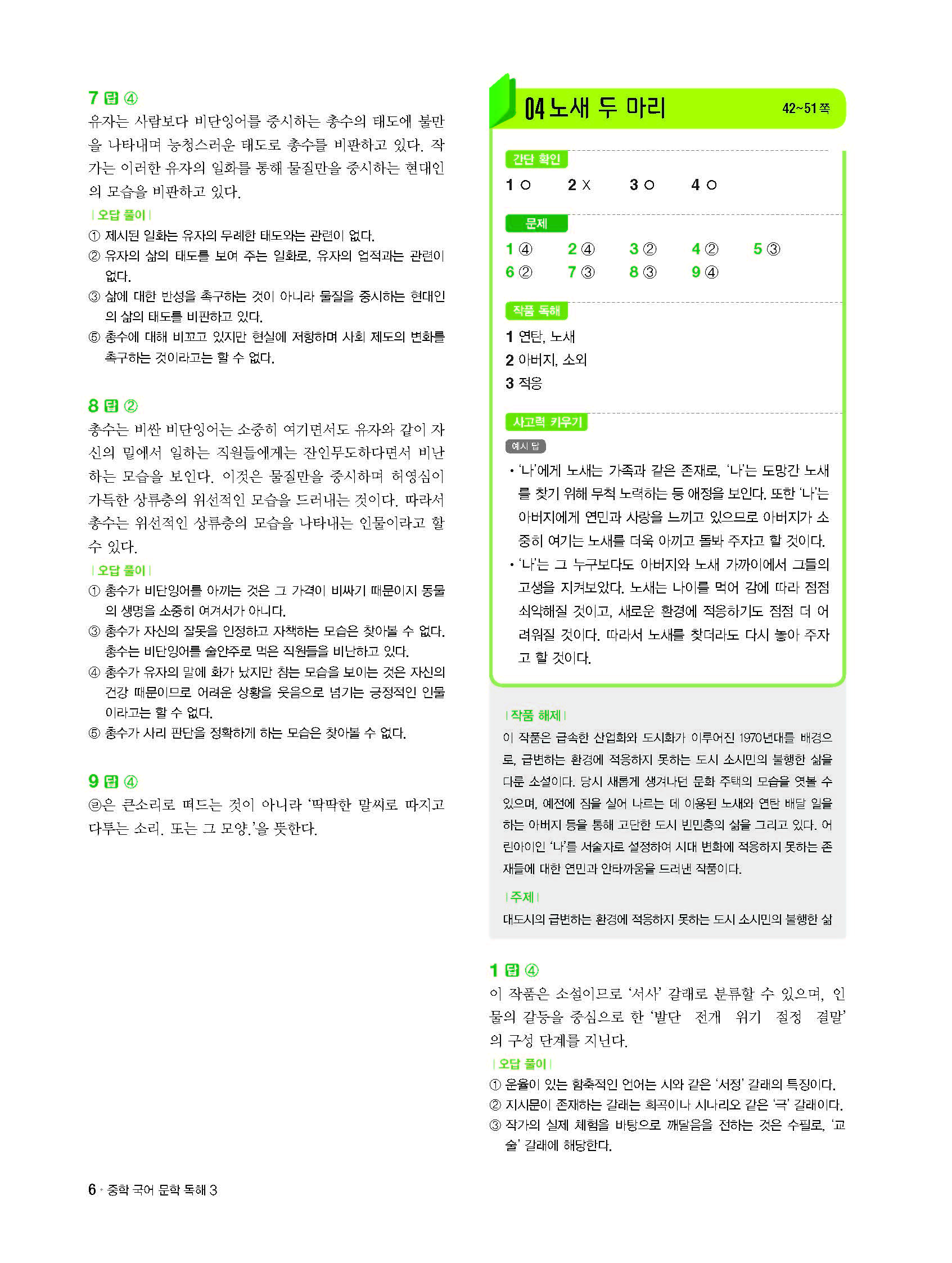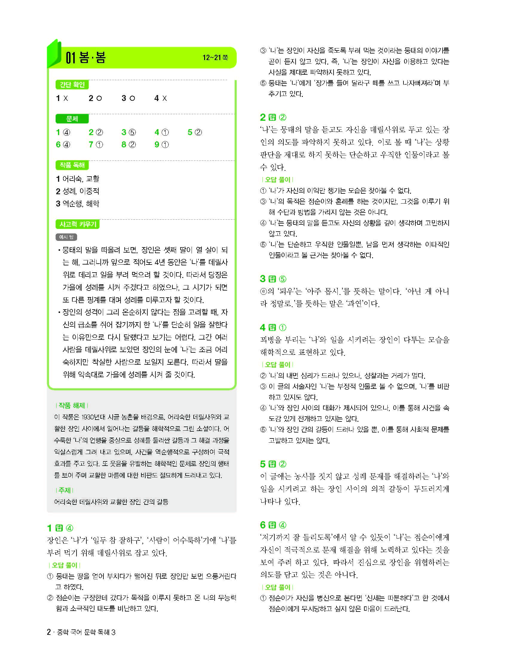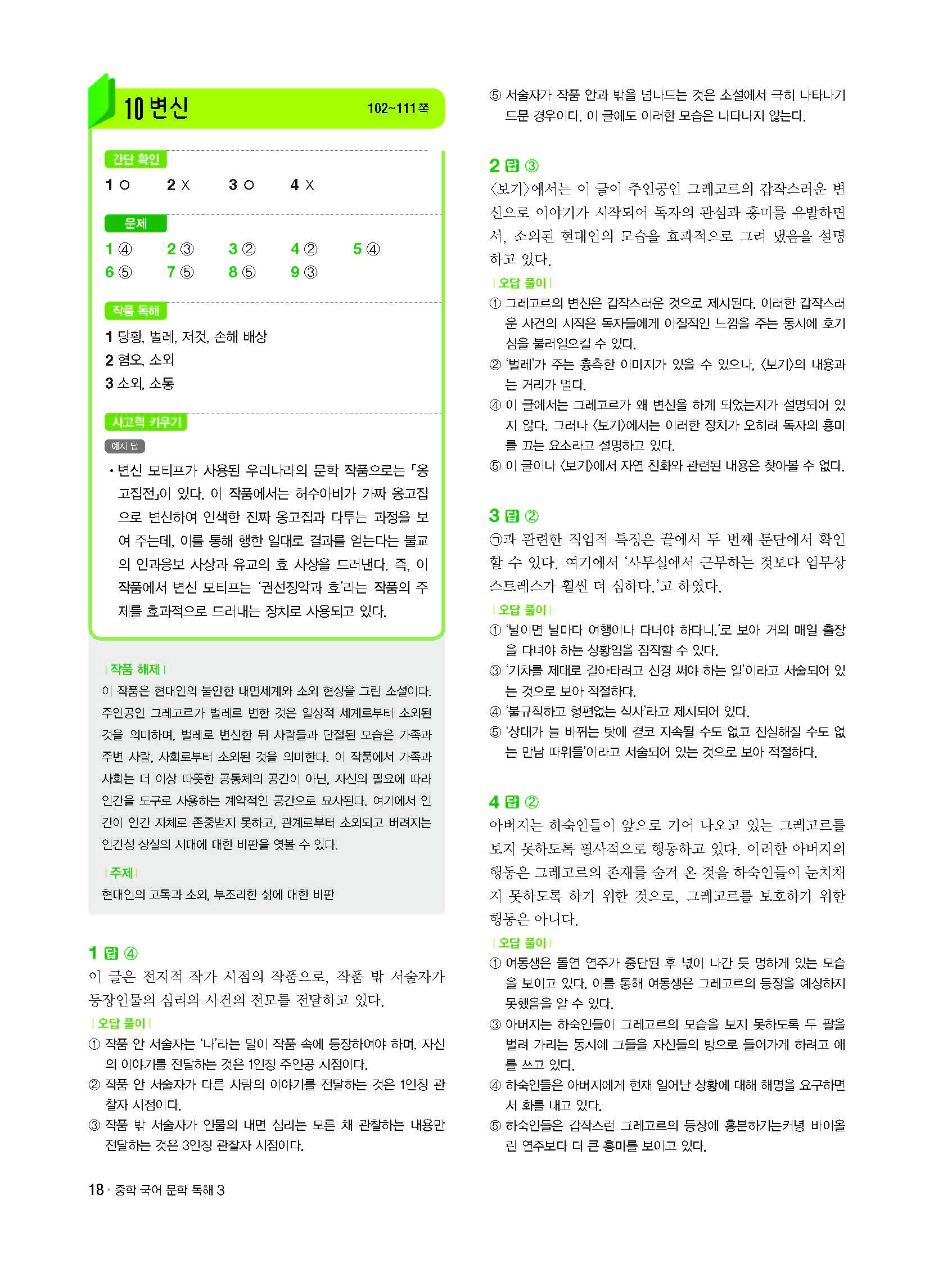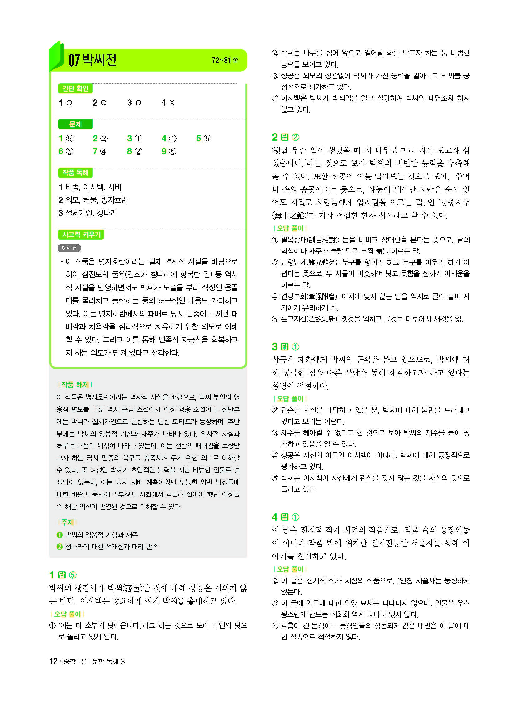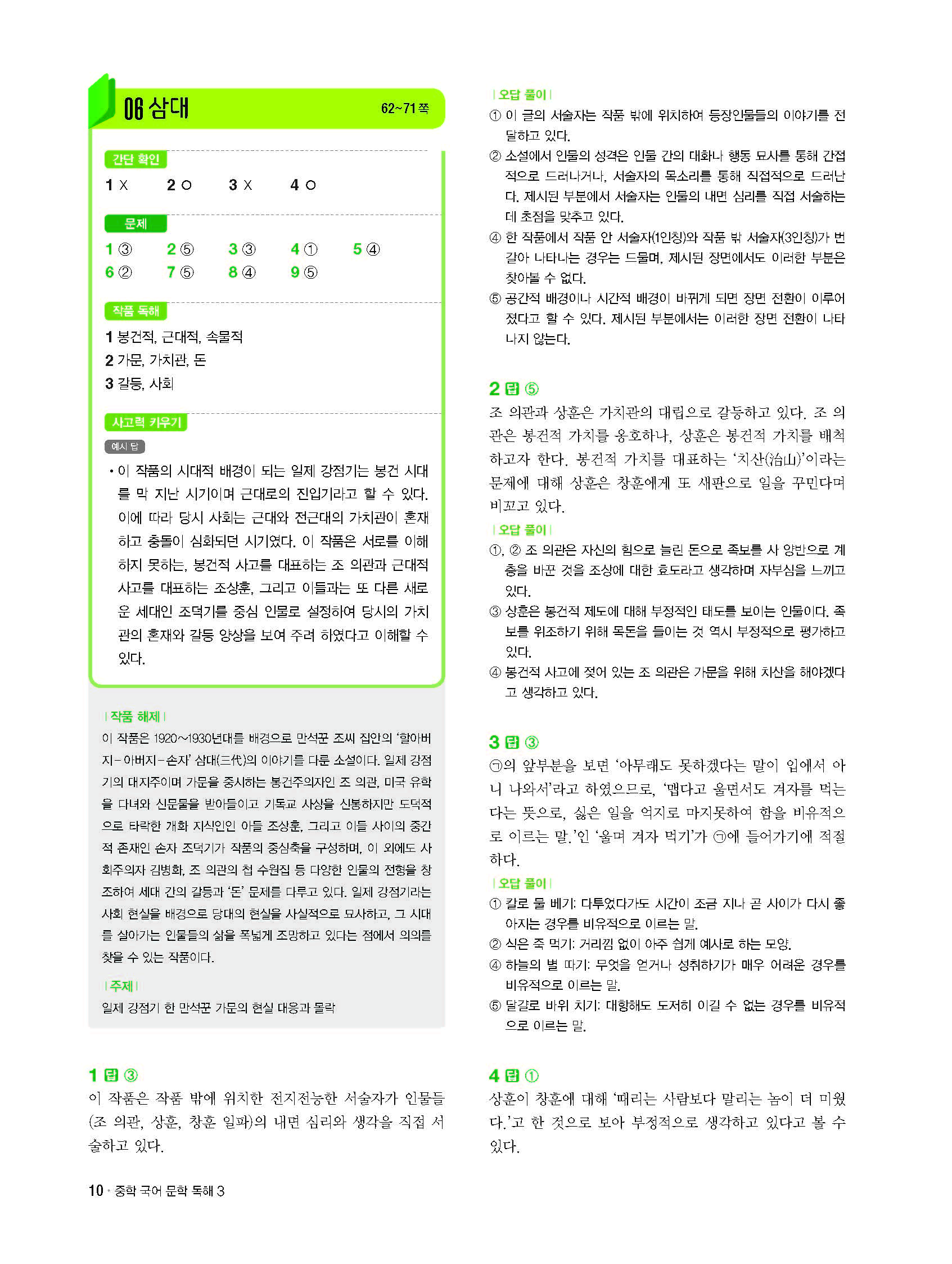 빠작중등 국어문학독해 3권 답지 해설지 사진답지 빠른답지 모바일최적화