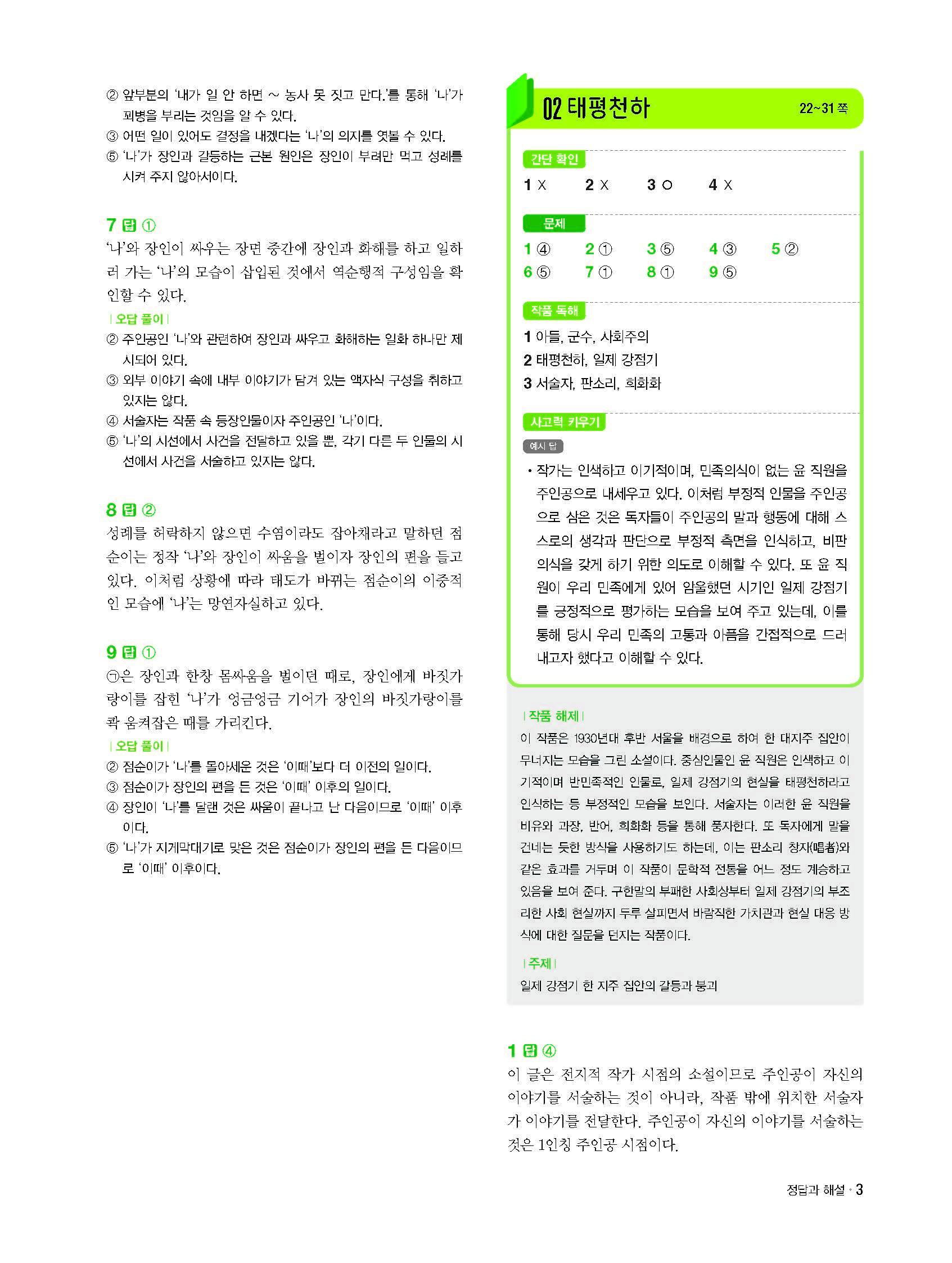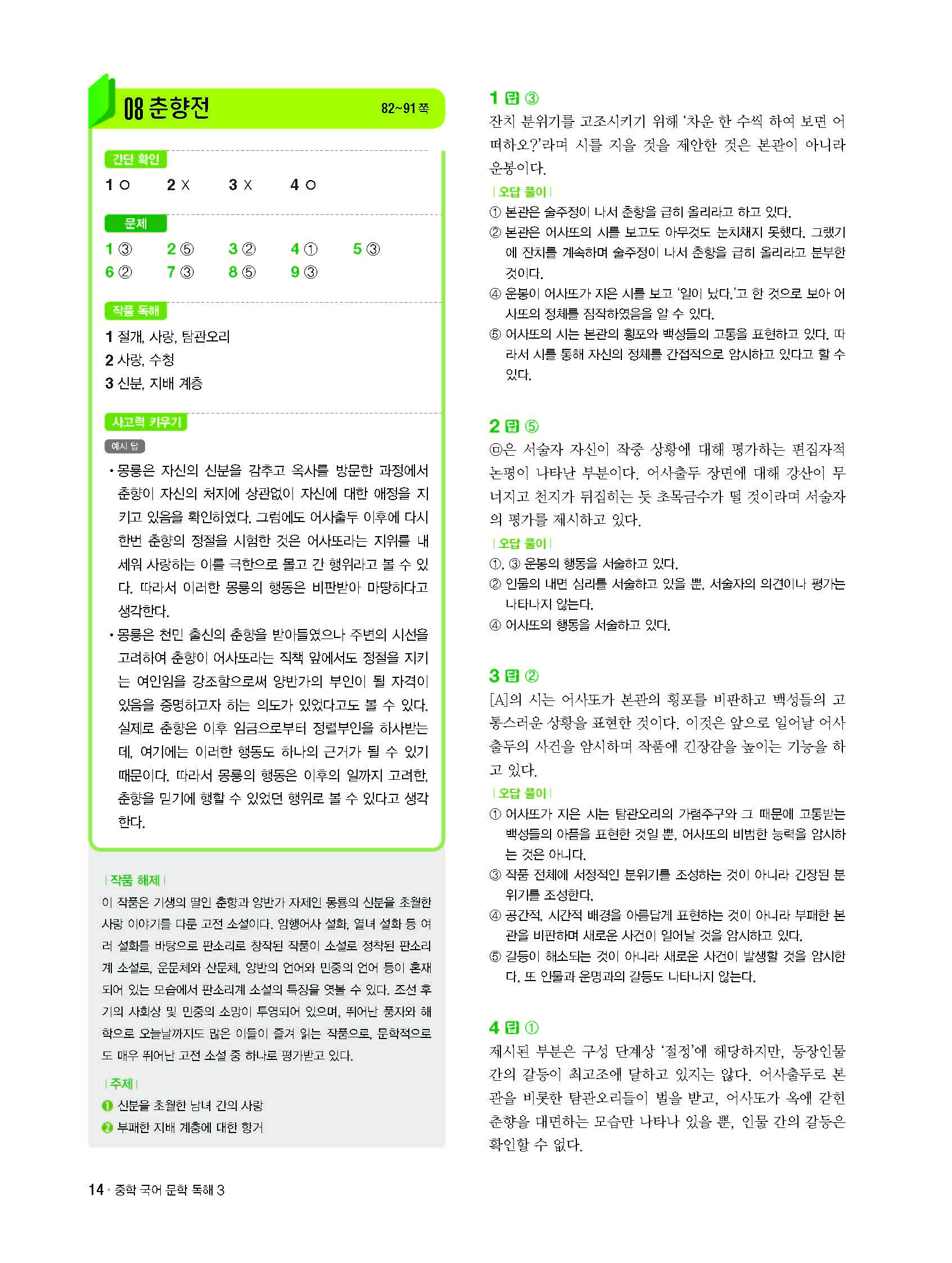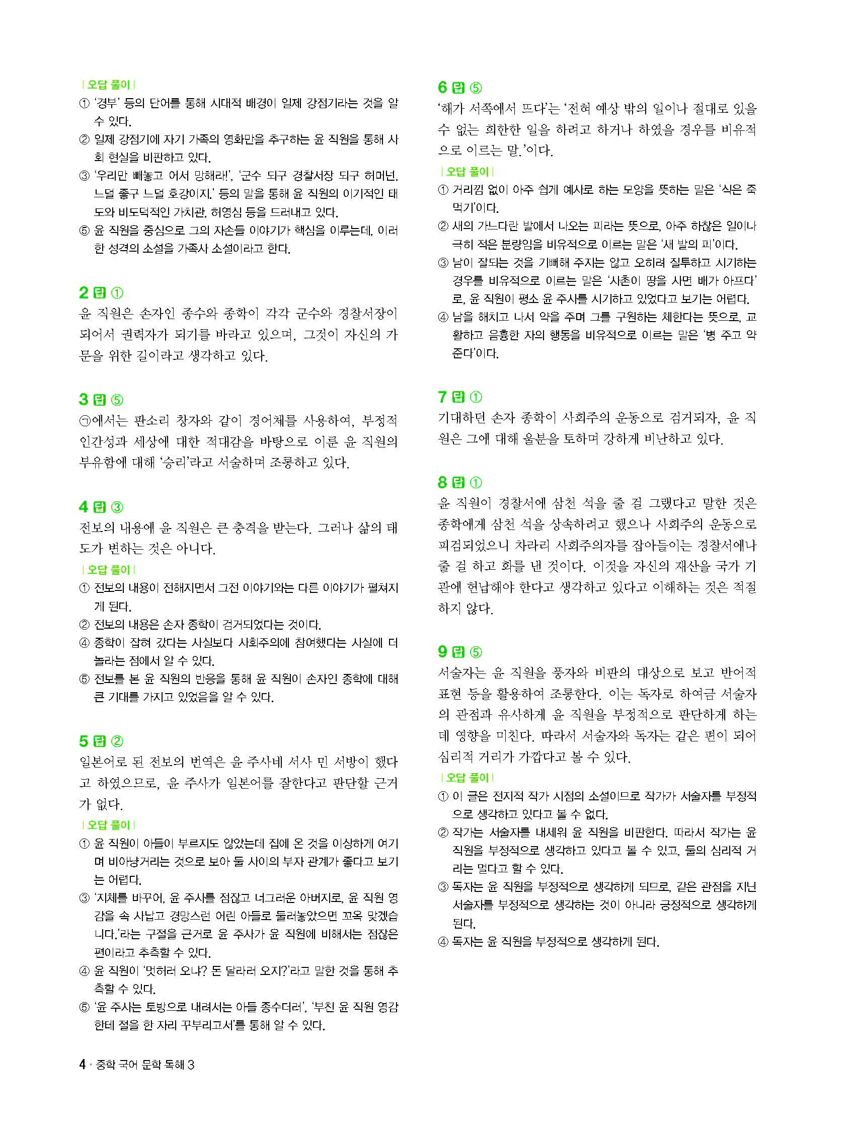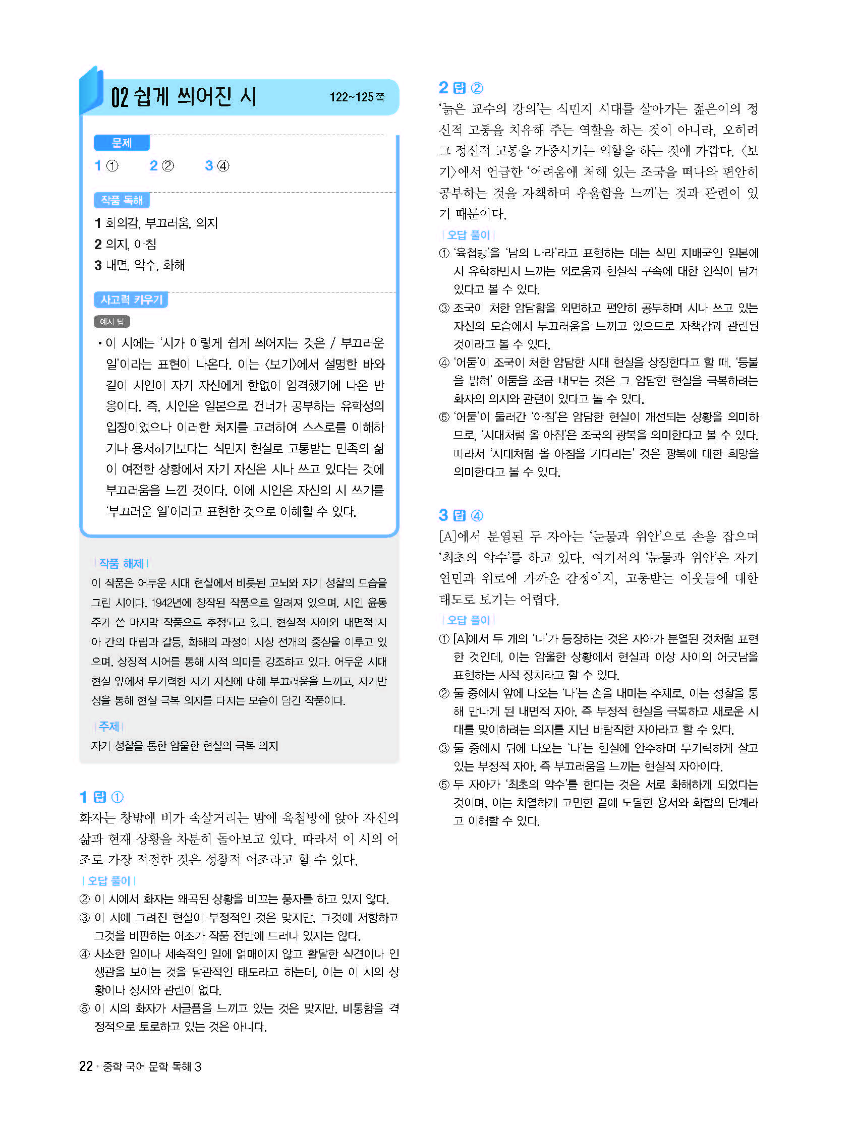 빠작중등 국어문학독해 3권 답지 해설지 사진답지 빠른답지 모바일최적화
