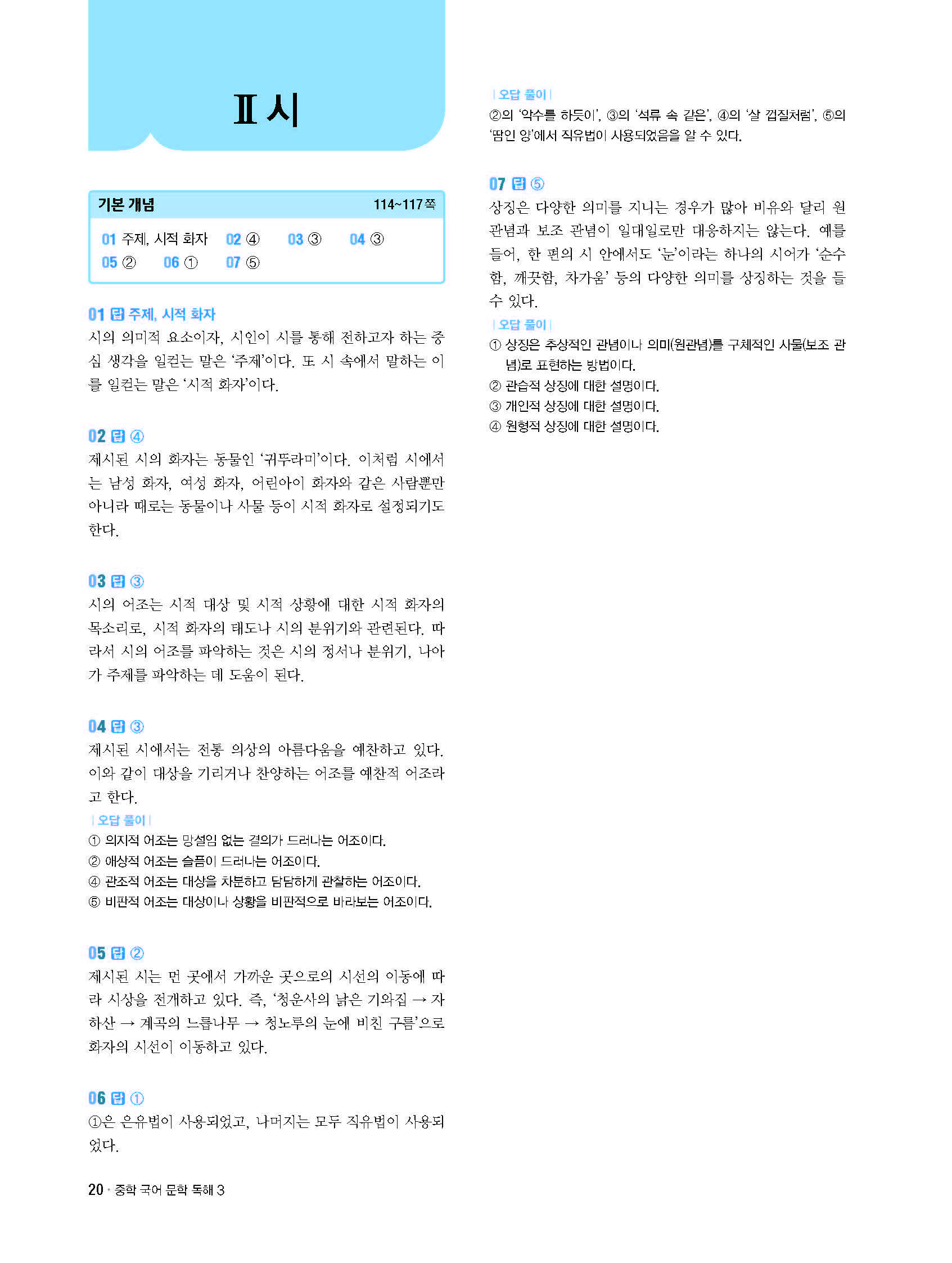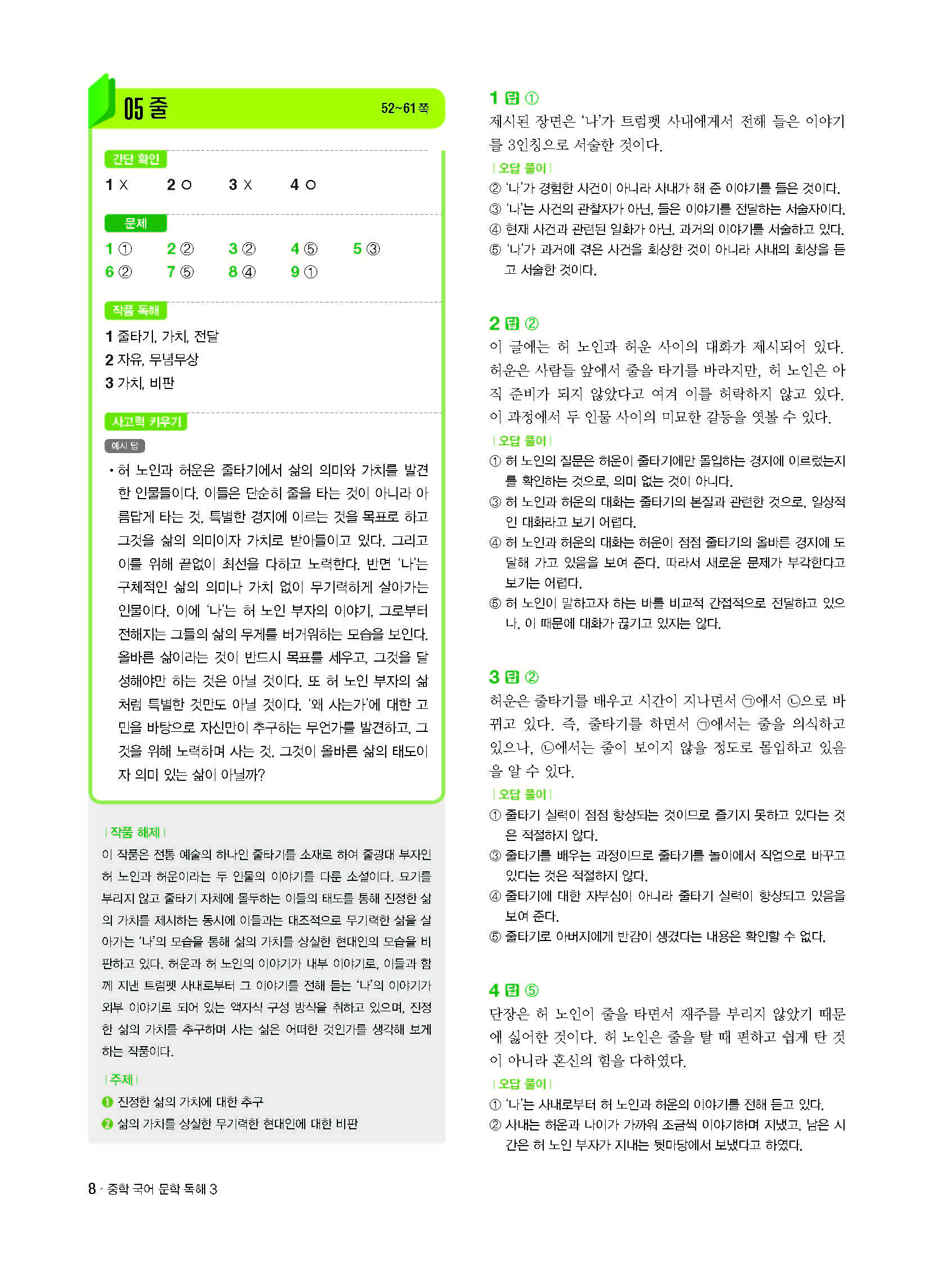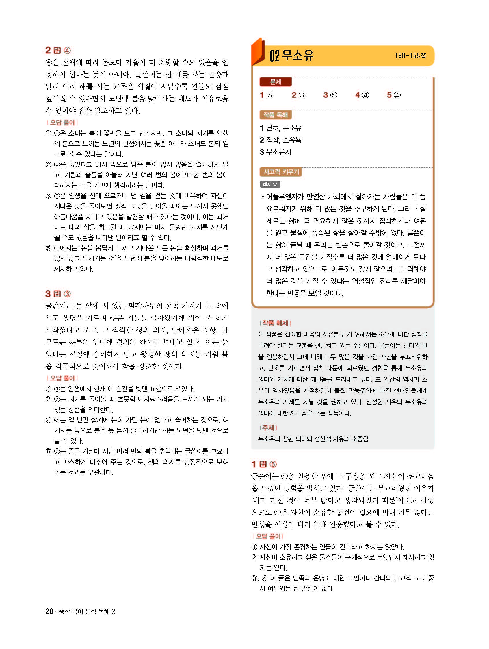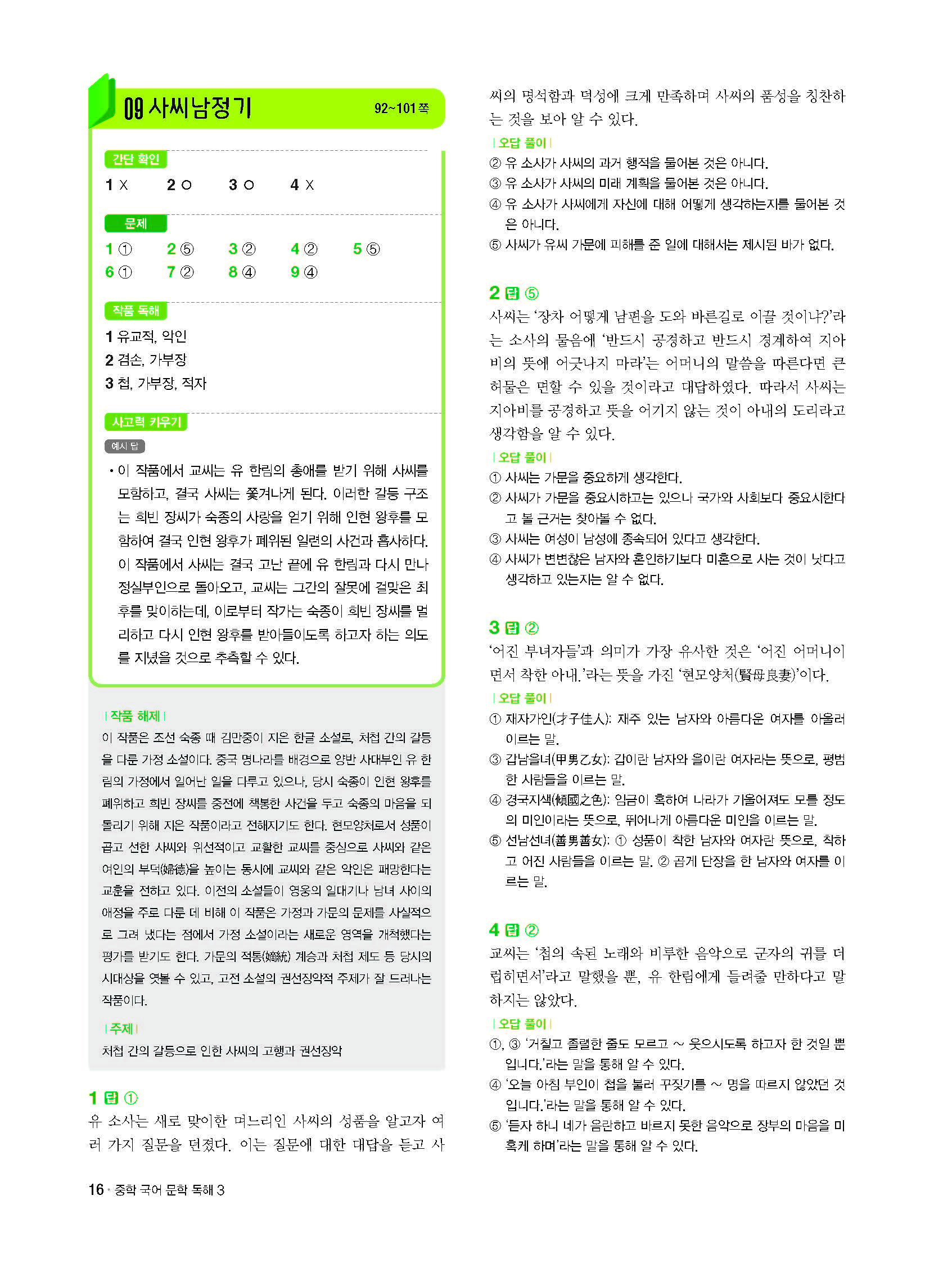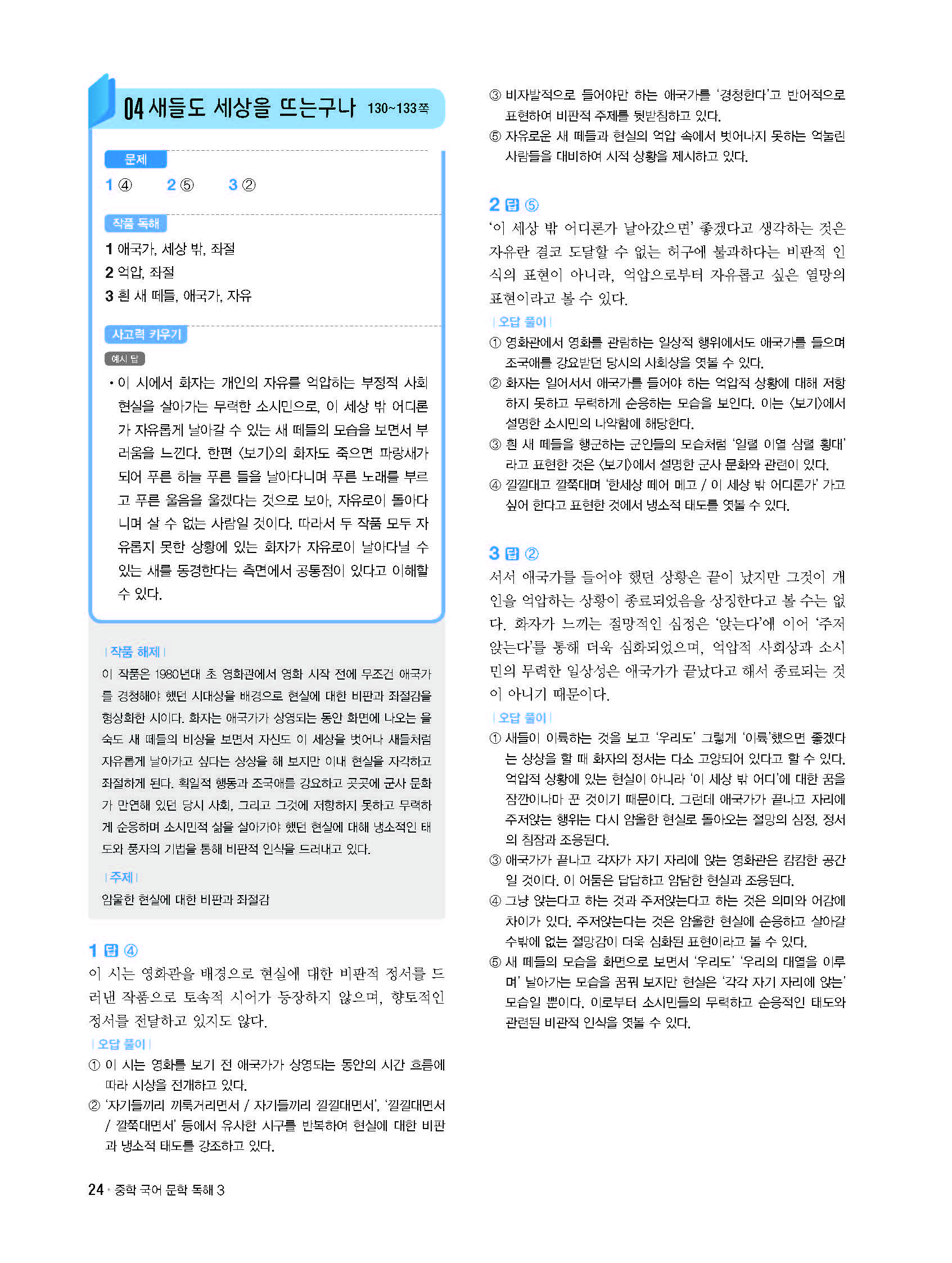 빠작중등 국어문학독해 3권 답지 해설지 사진답지 빠른답지 모바일최적화