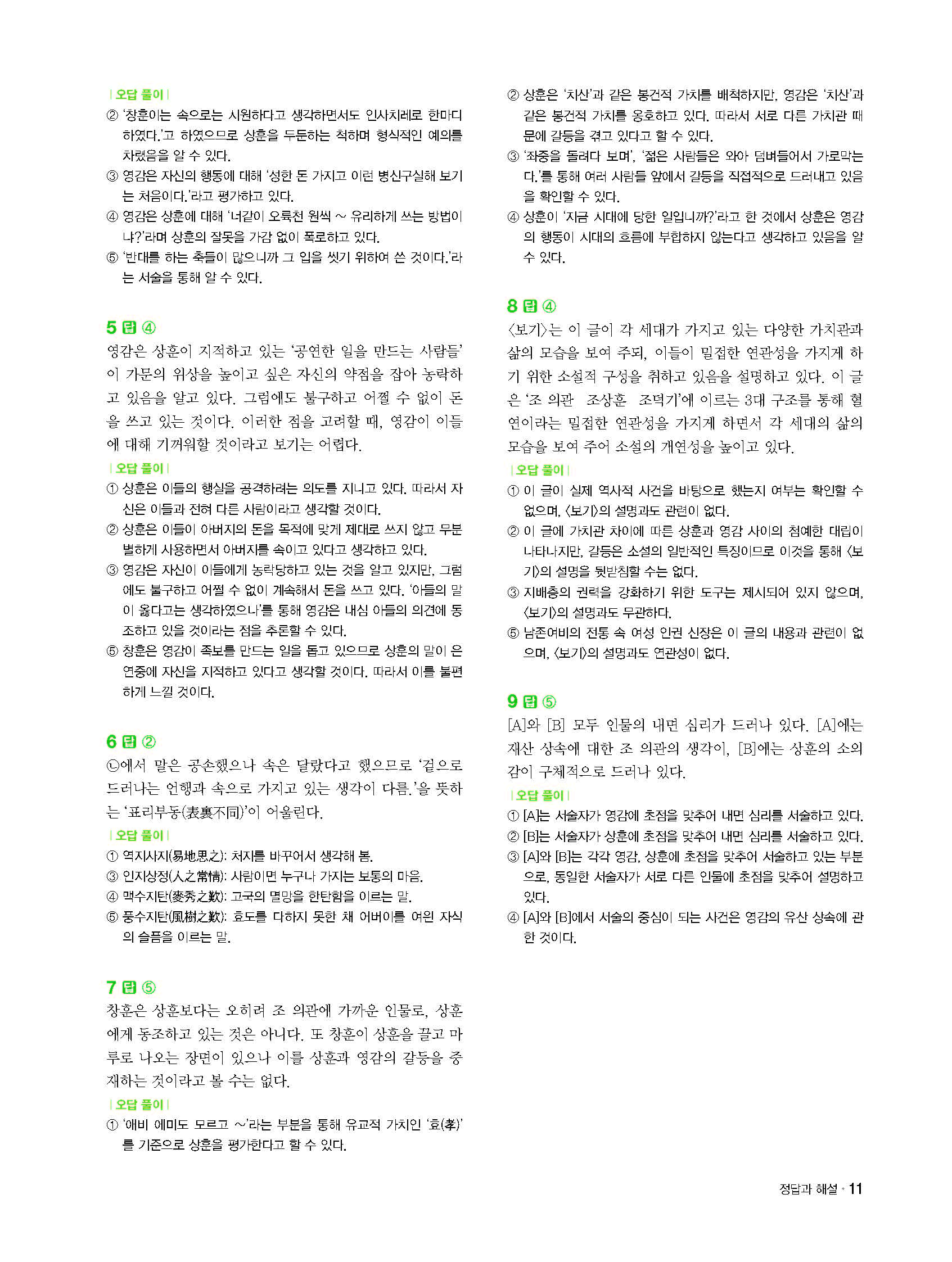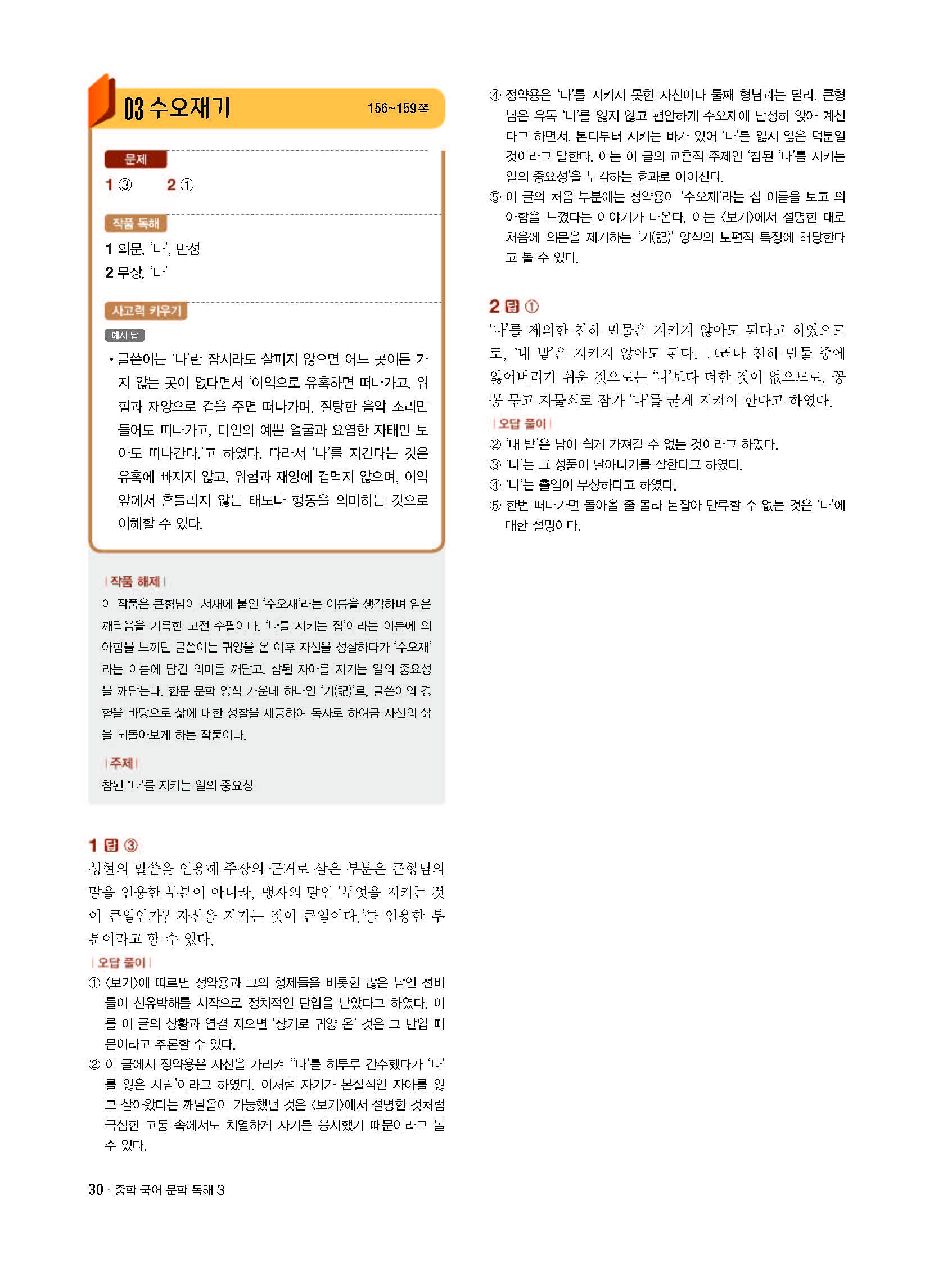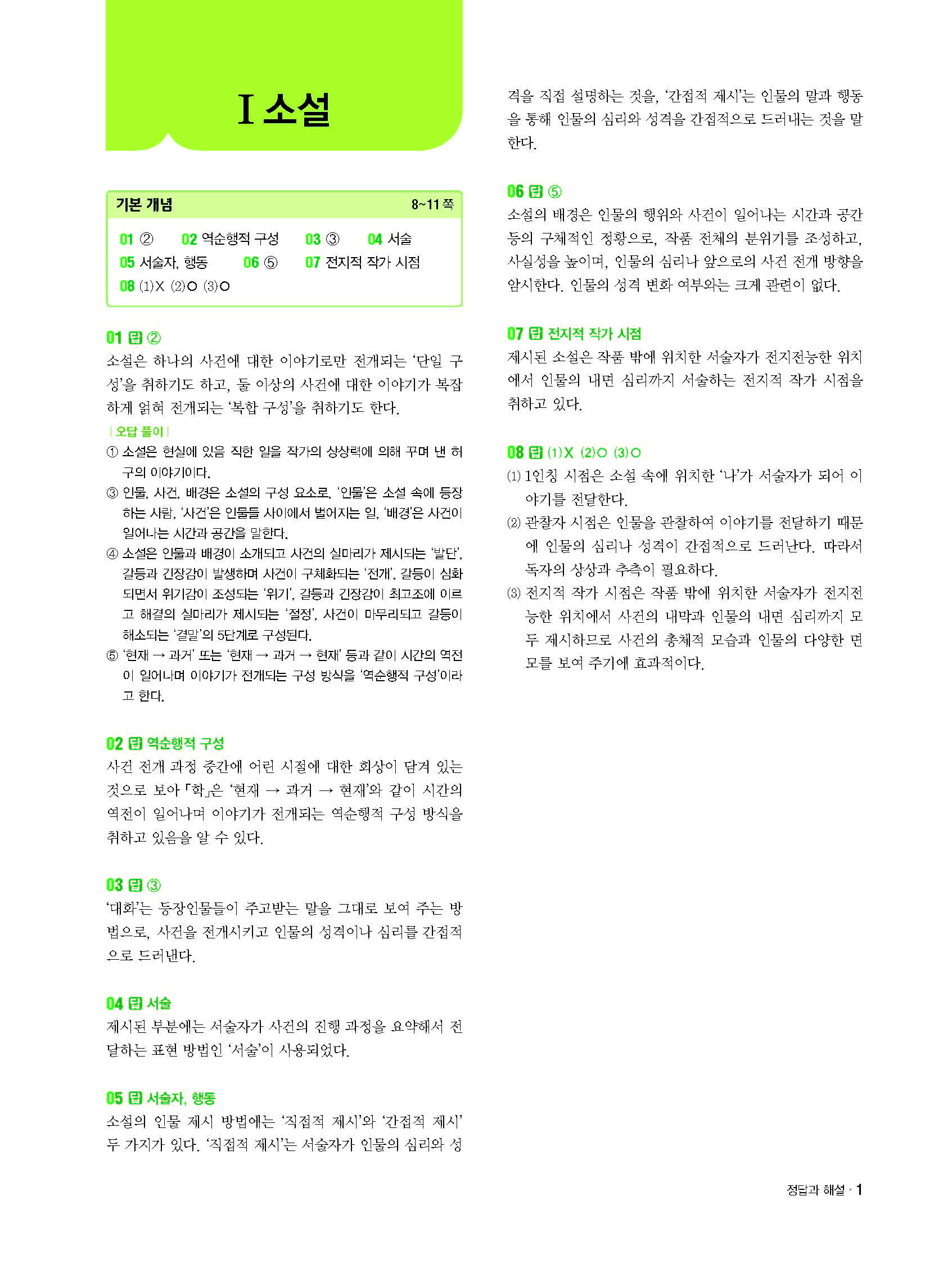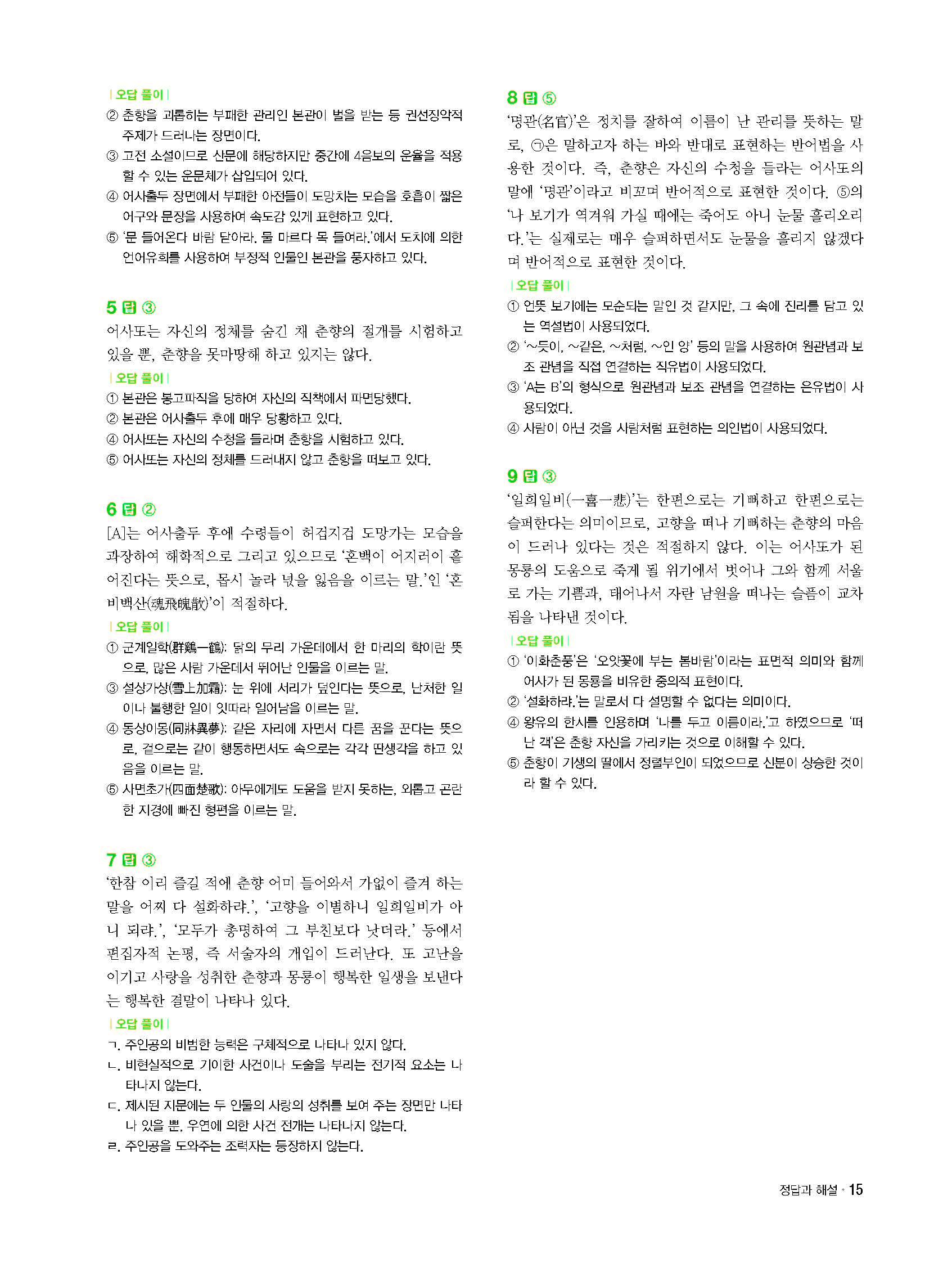 빠작중등 국어문학독해 3권 답지 해설지 사진답지 빠른답지 모바일최적화