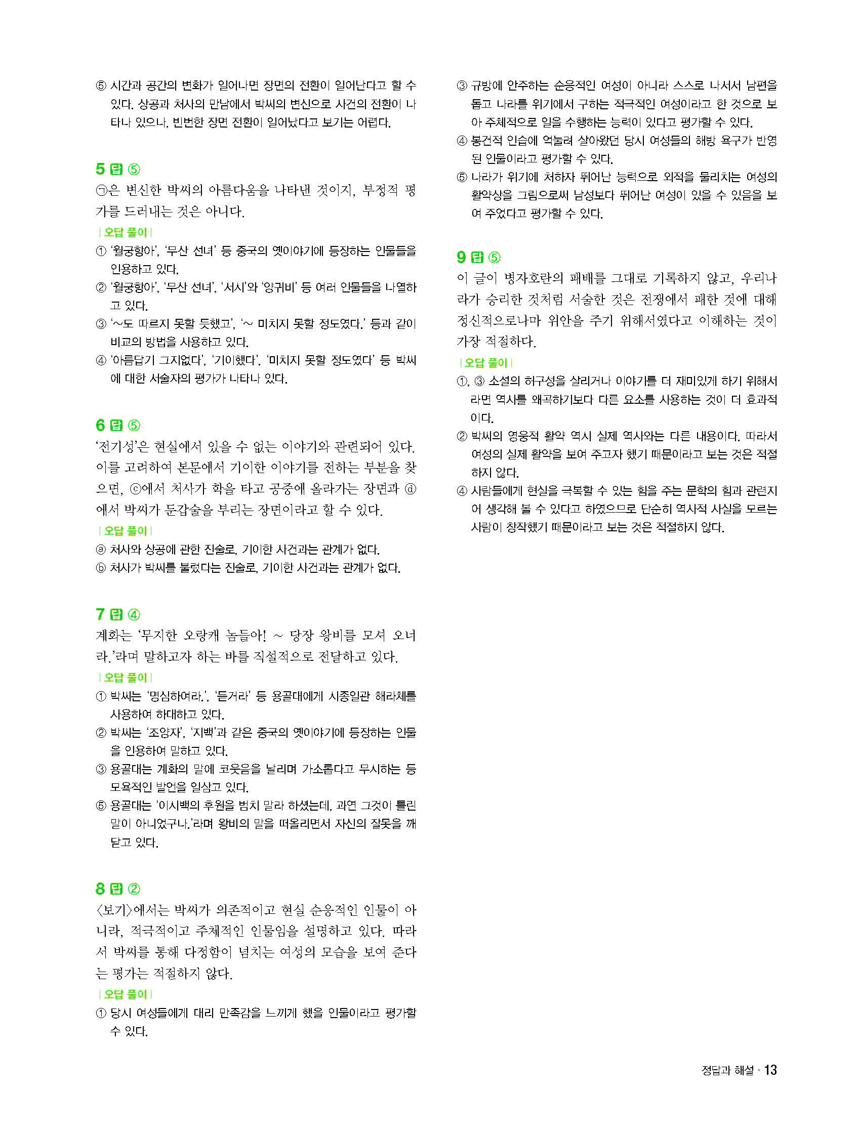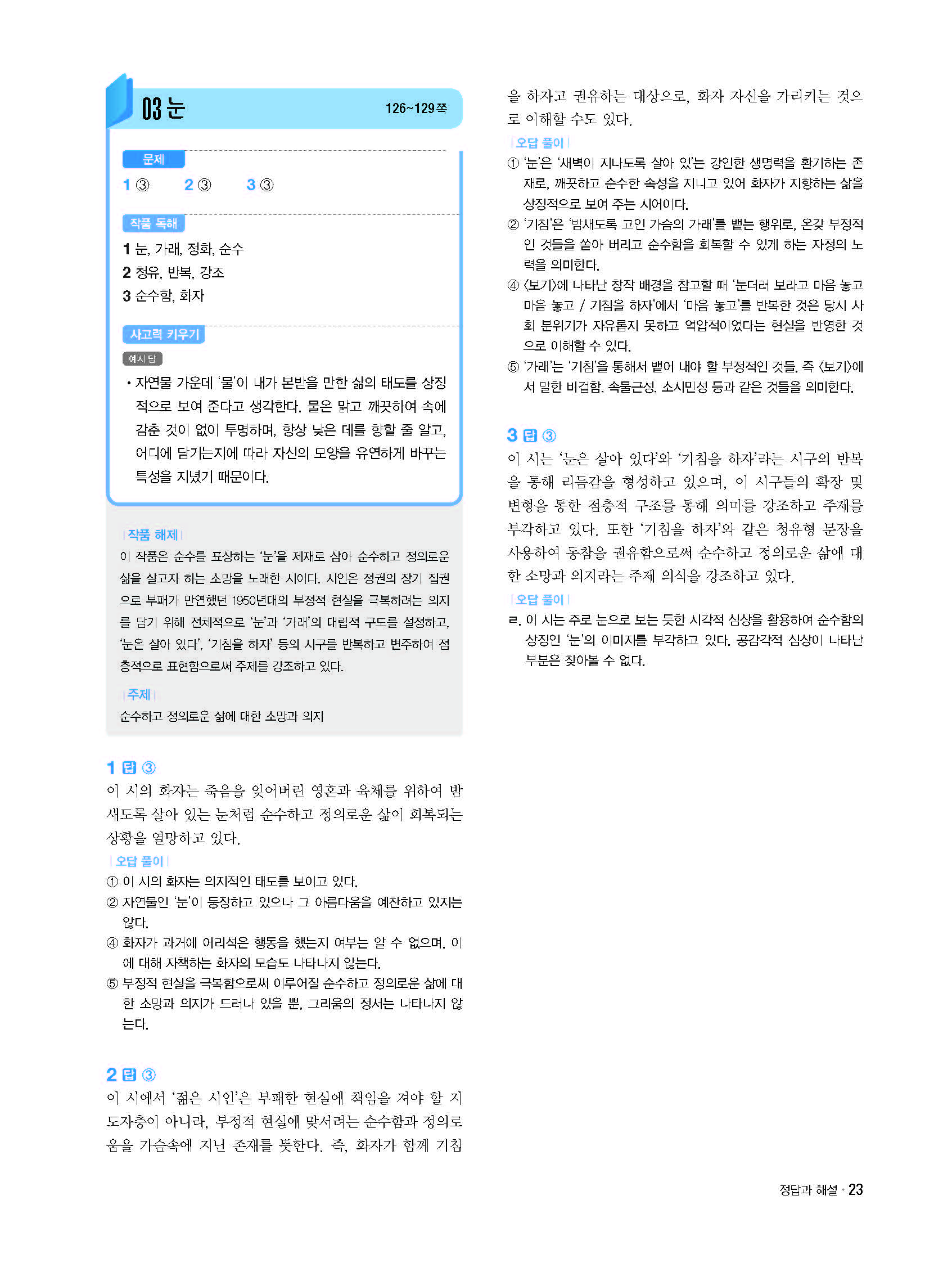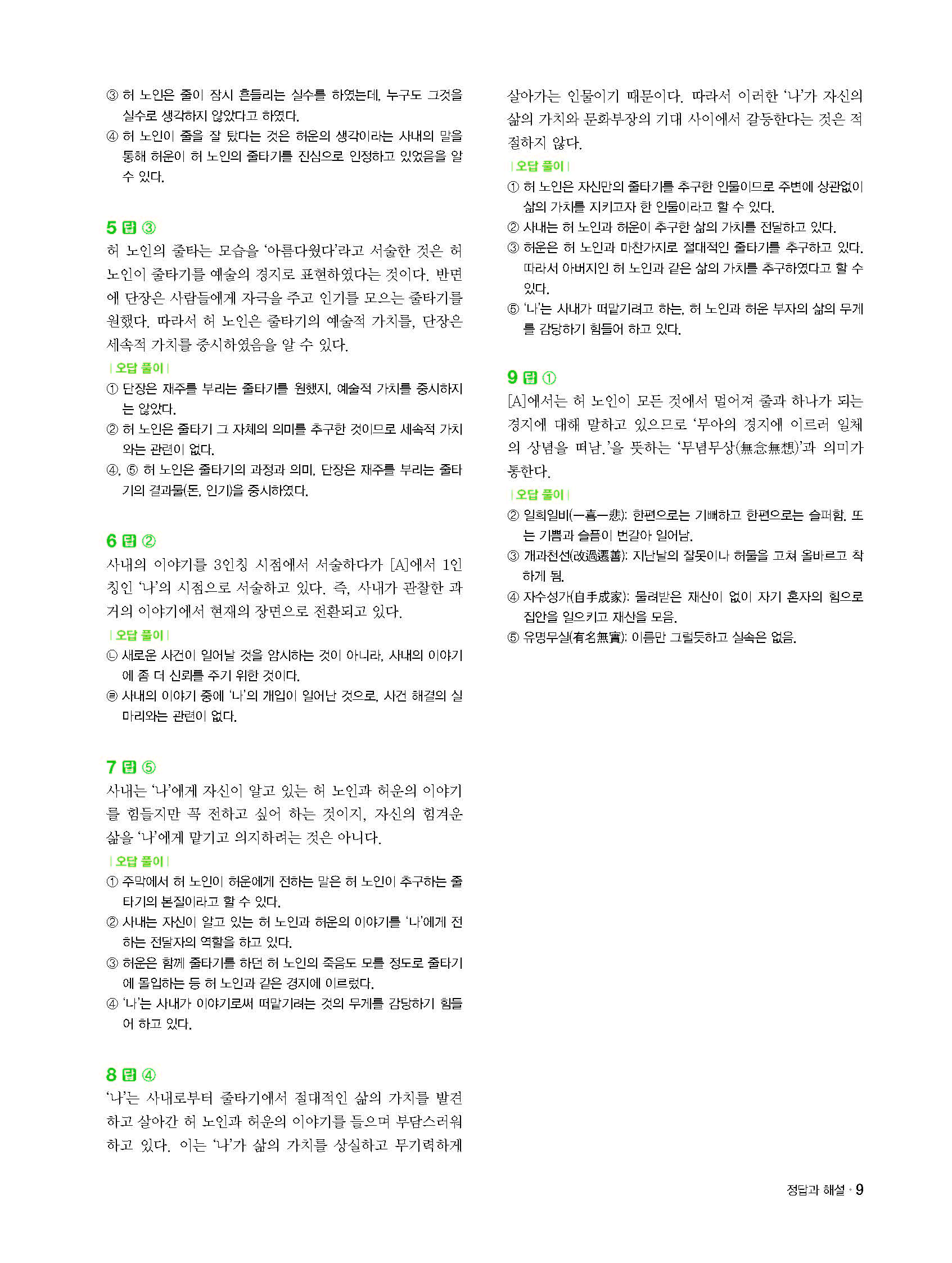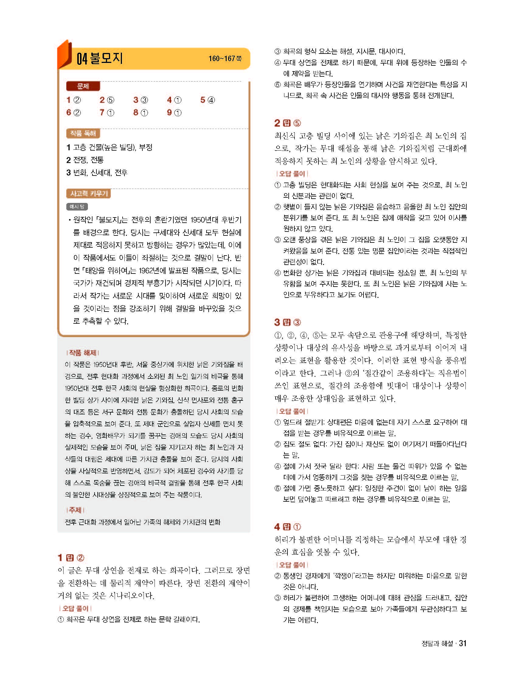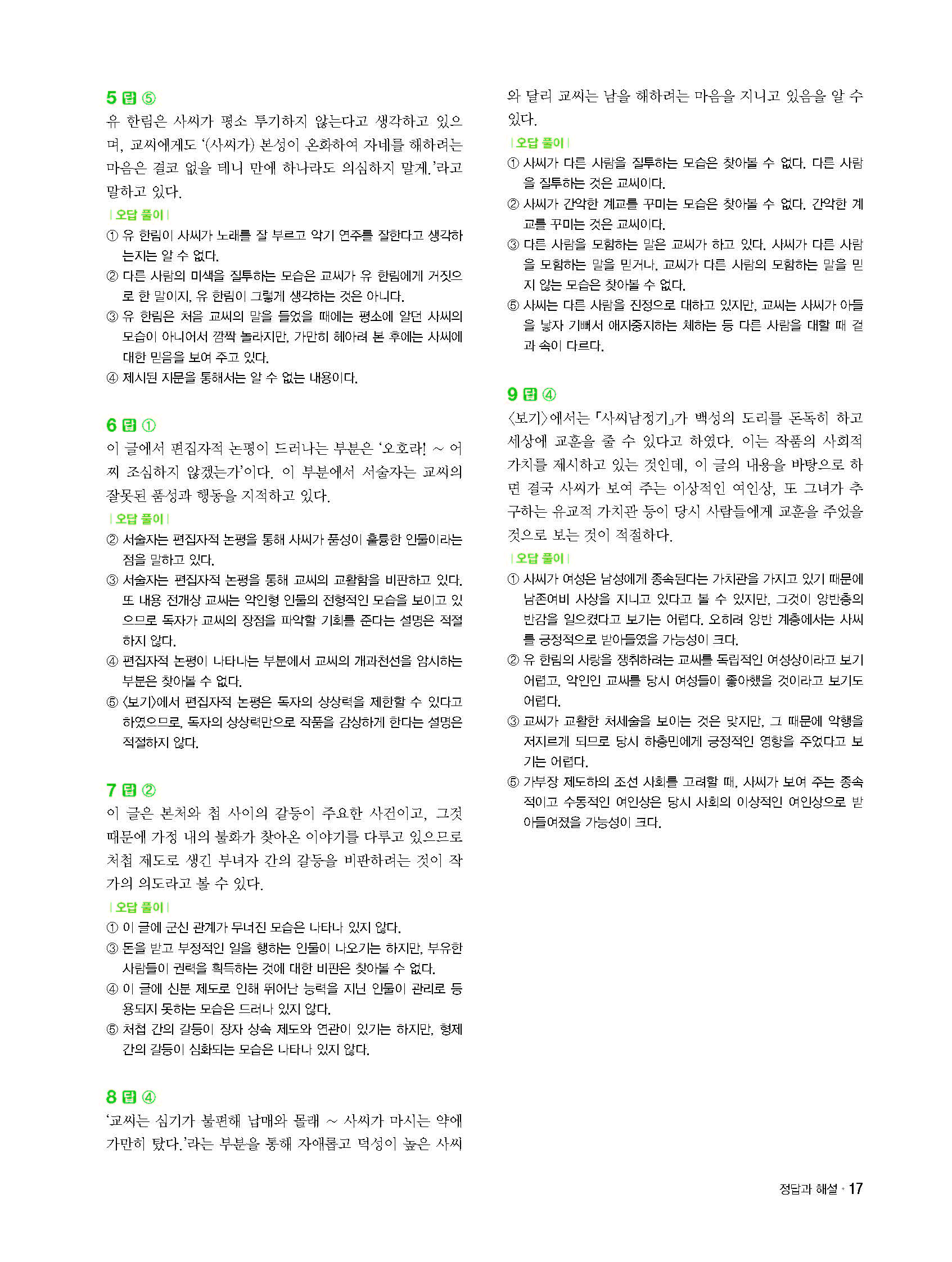 빠작중등 국어문학독해 3권 답지 해설지 사진답지 빠른답지 모바일최적화