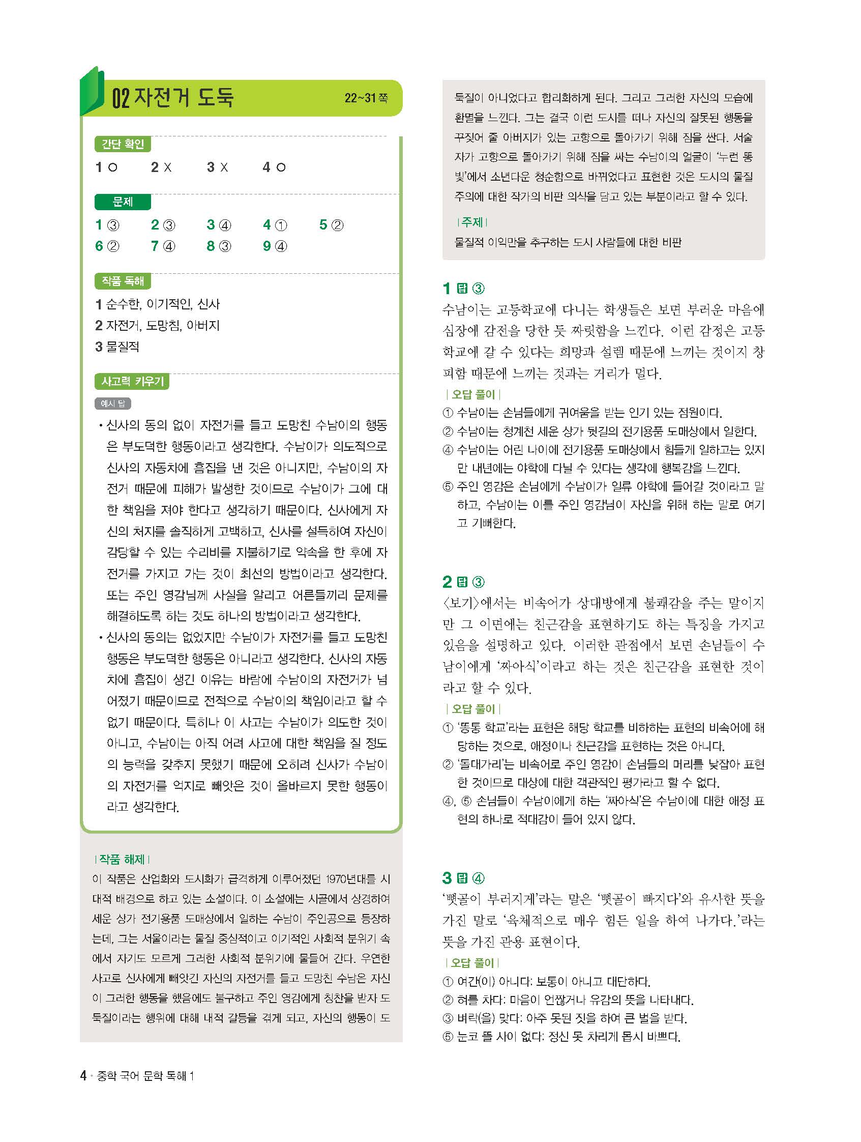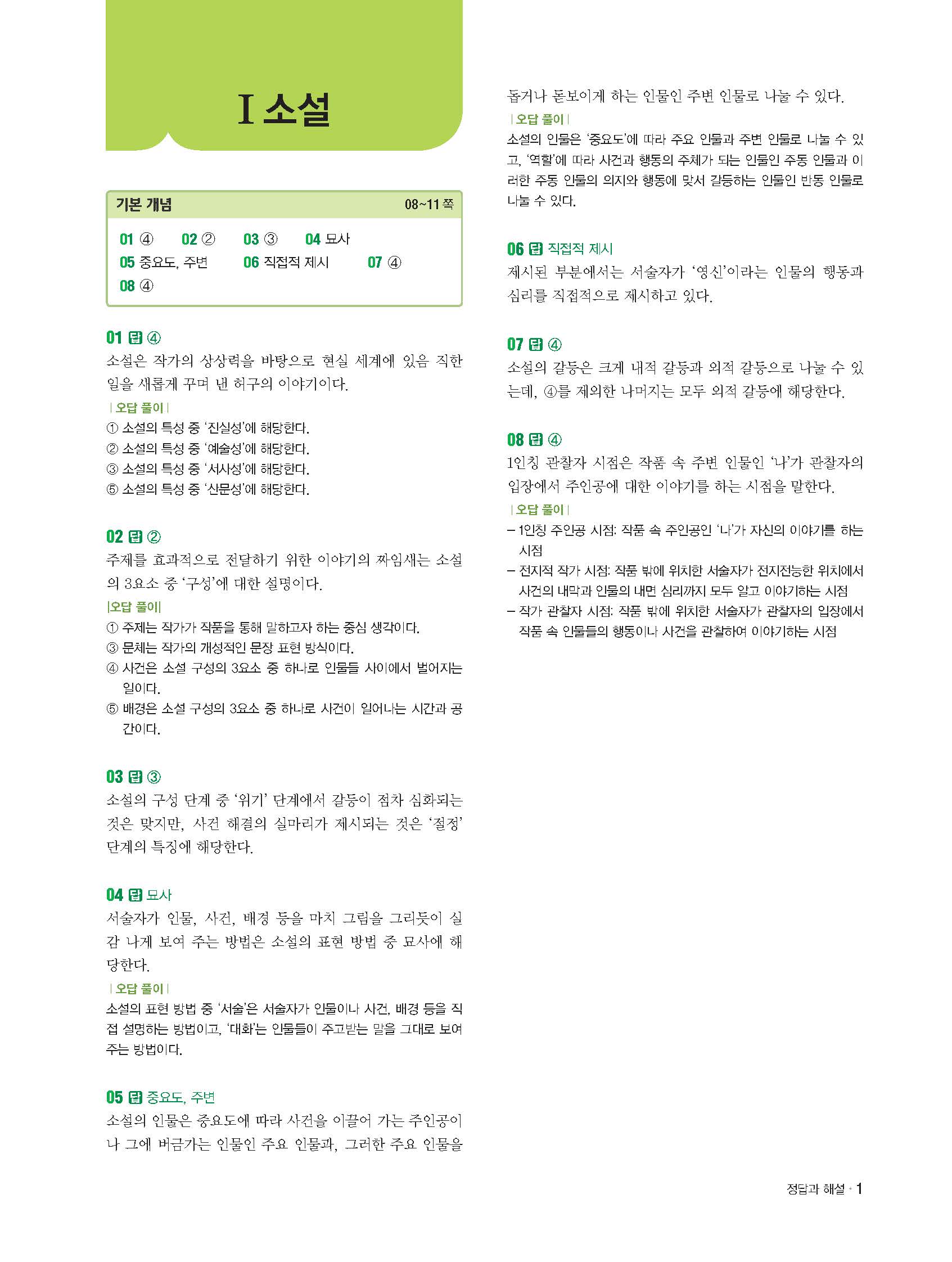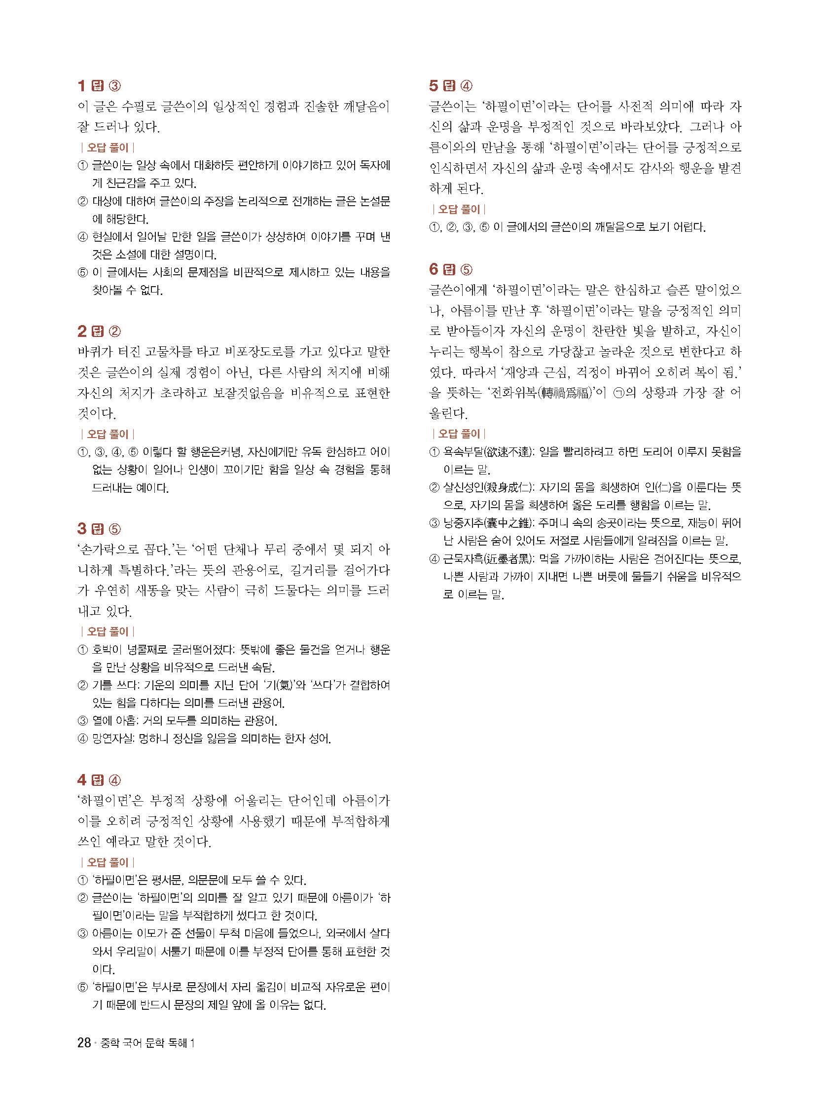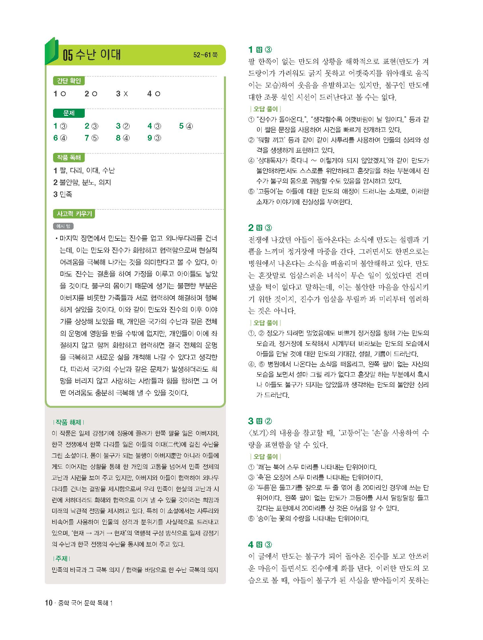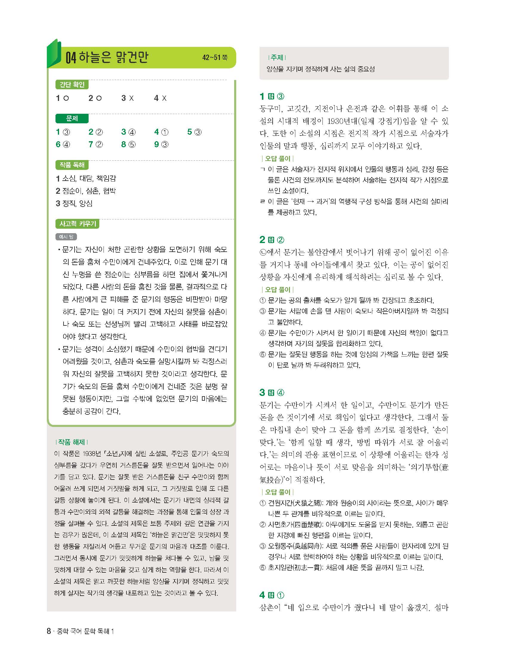 빠작 중등국어 문학독해 1권 답지 해설지 사진답지 빠른답지 모바일최적화