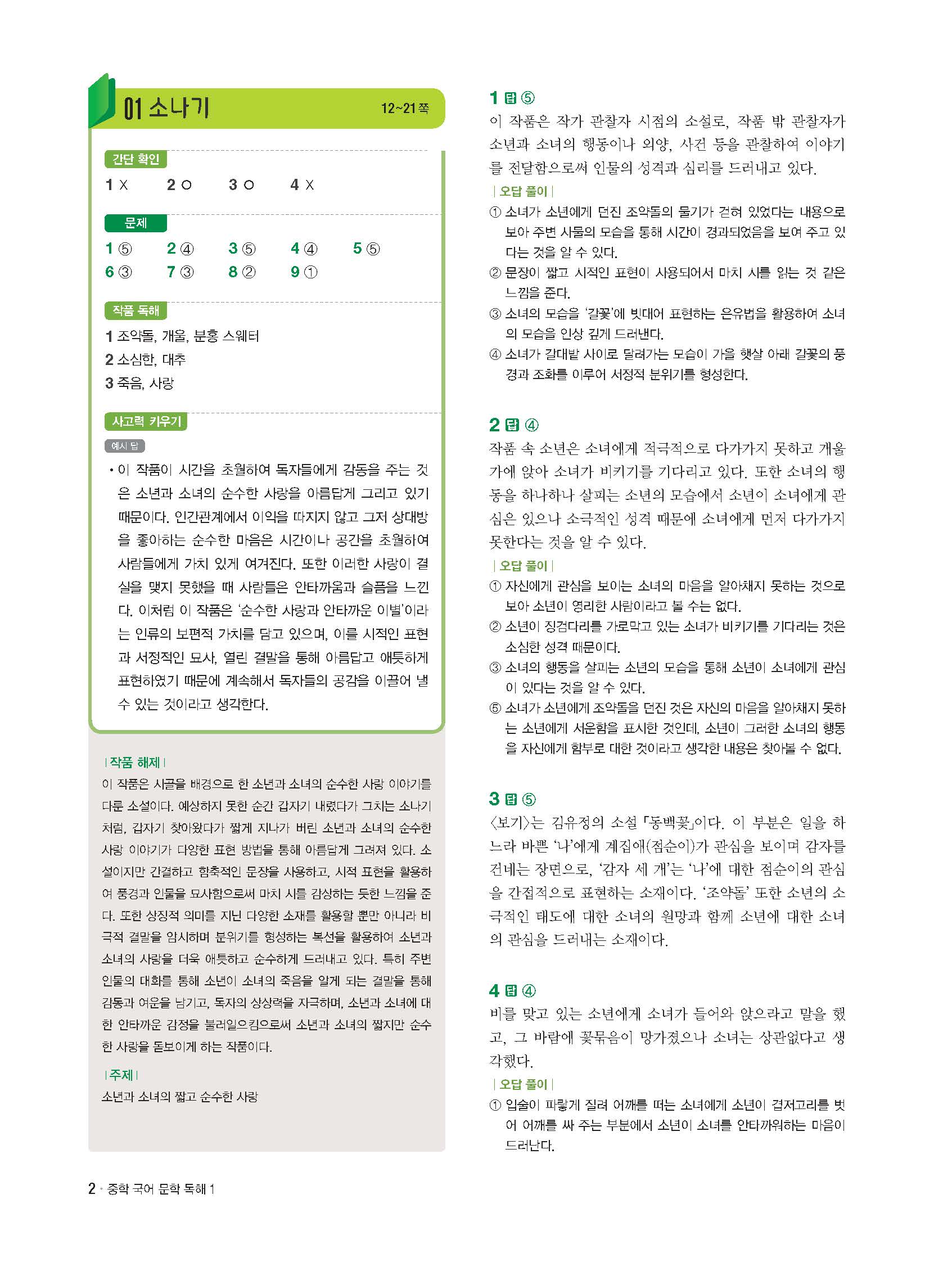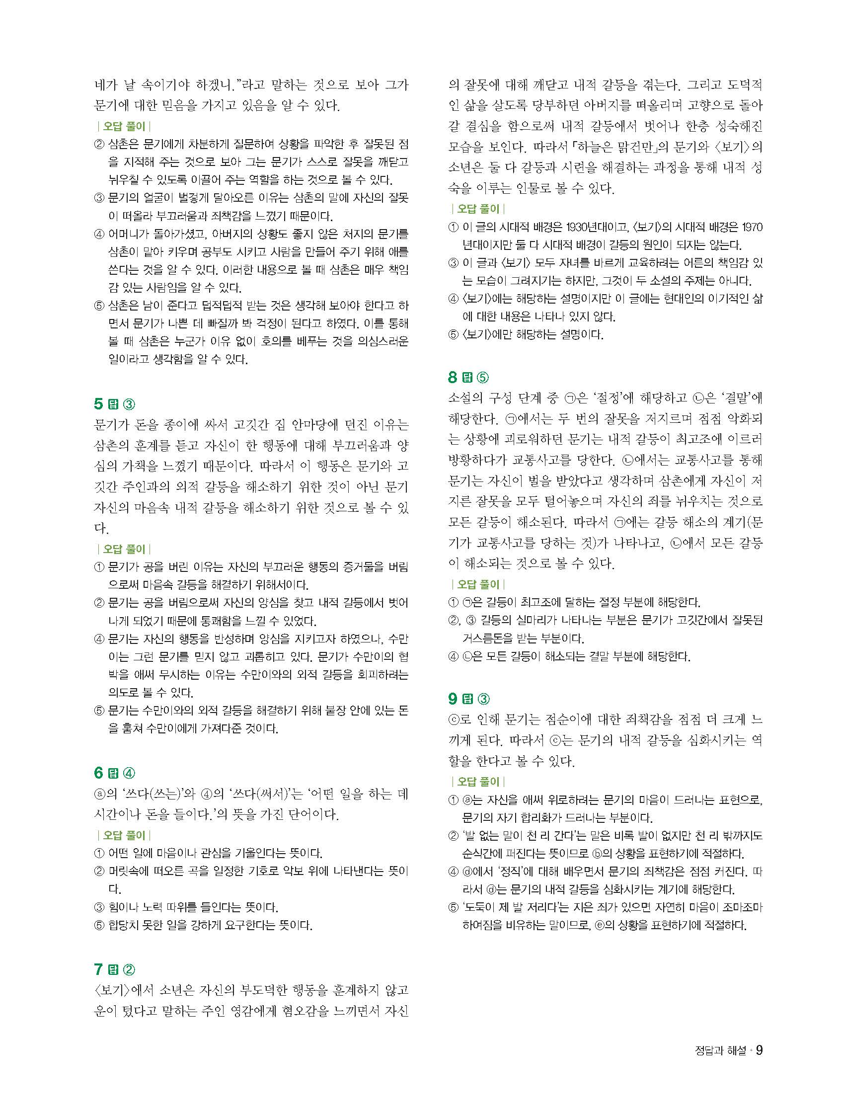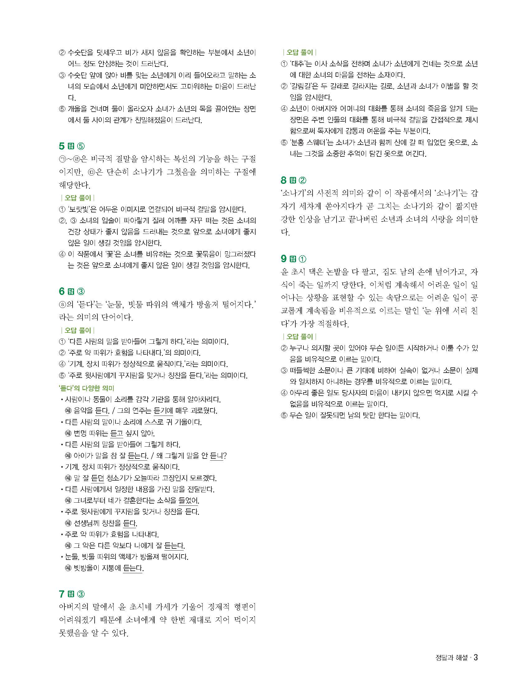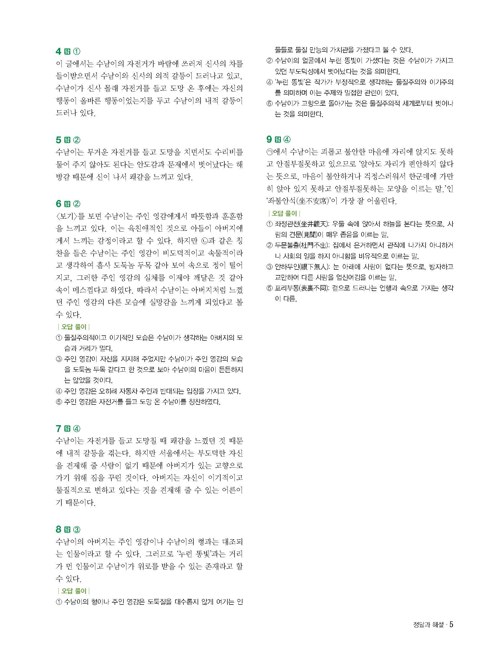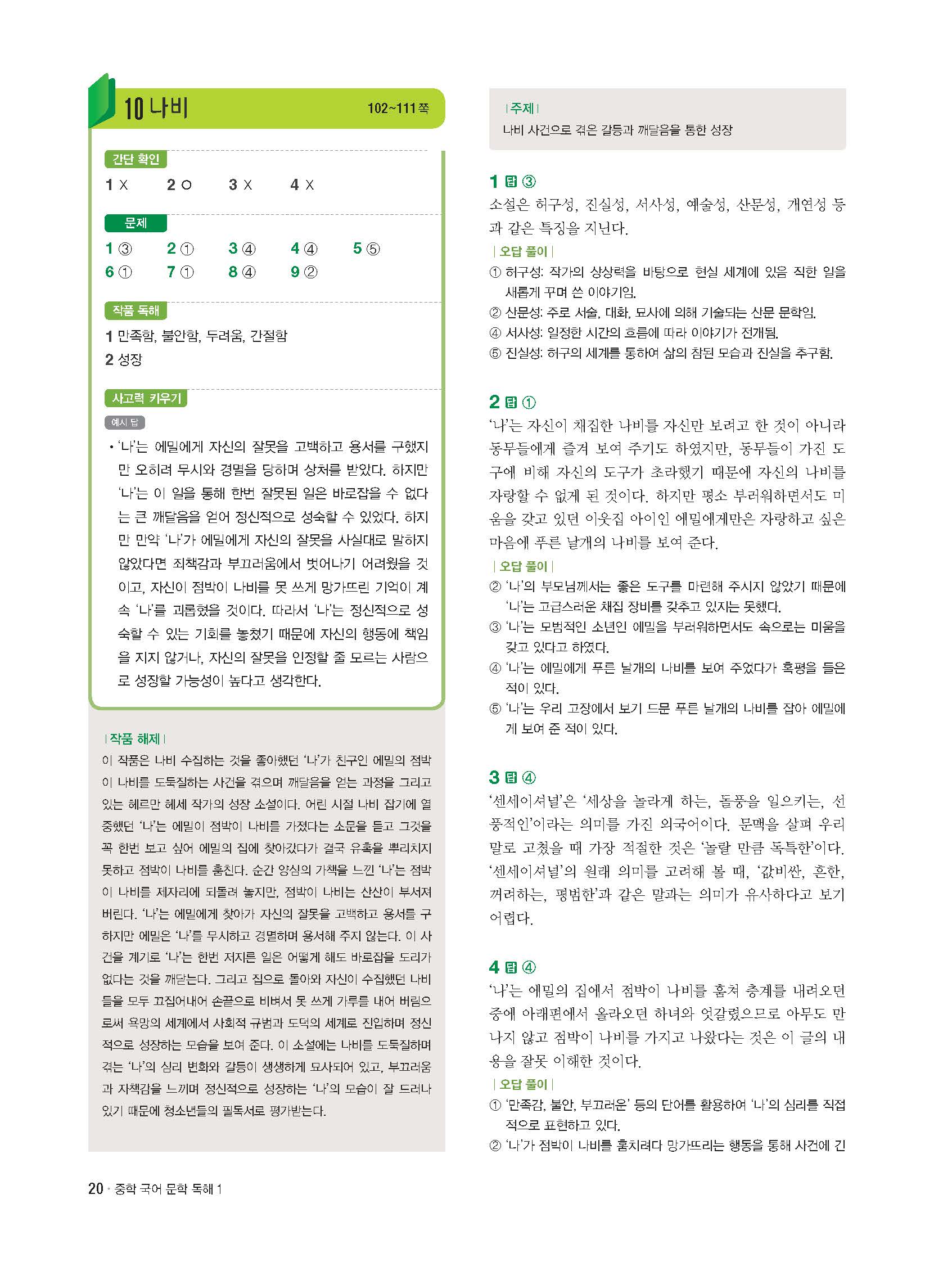 빠작 중등국어 문학독해 1권 답지 해설지 사진답지 빠른답지 모바일최적화