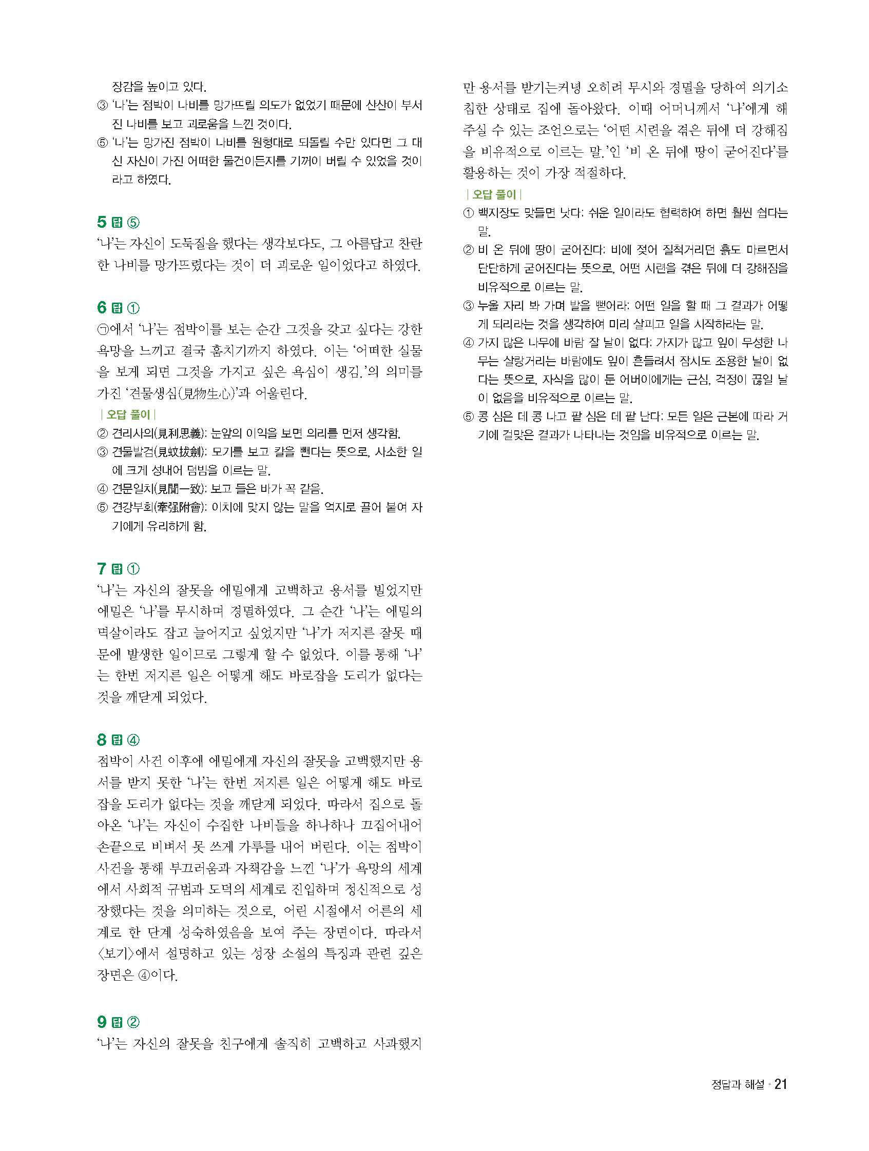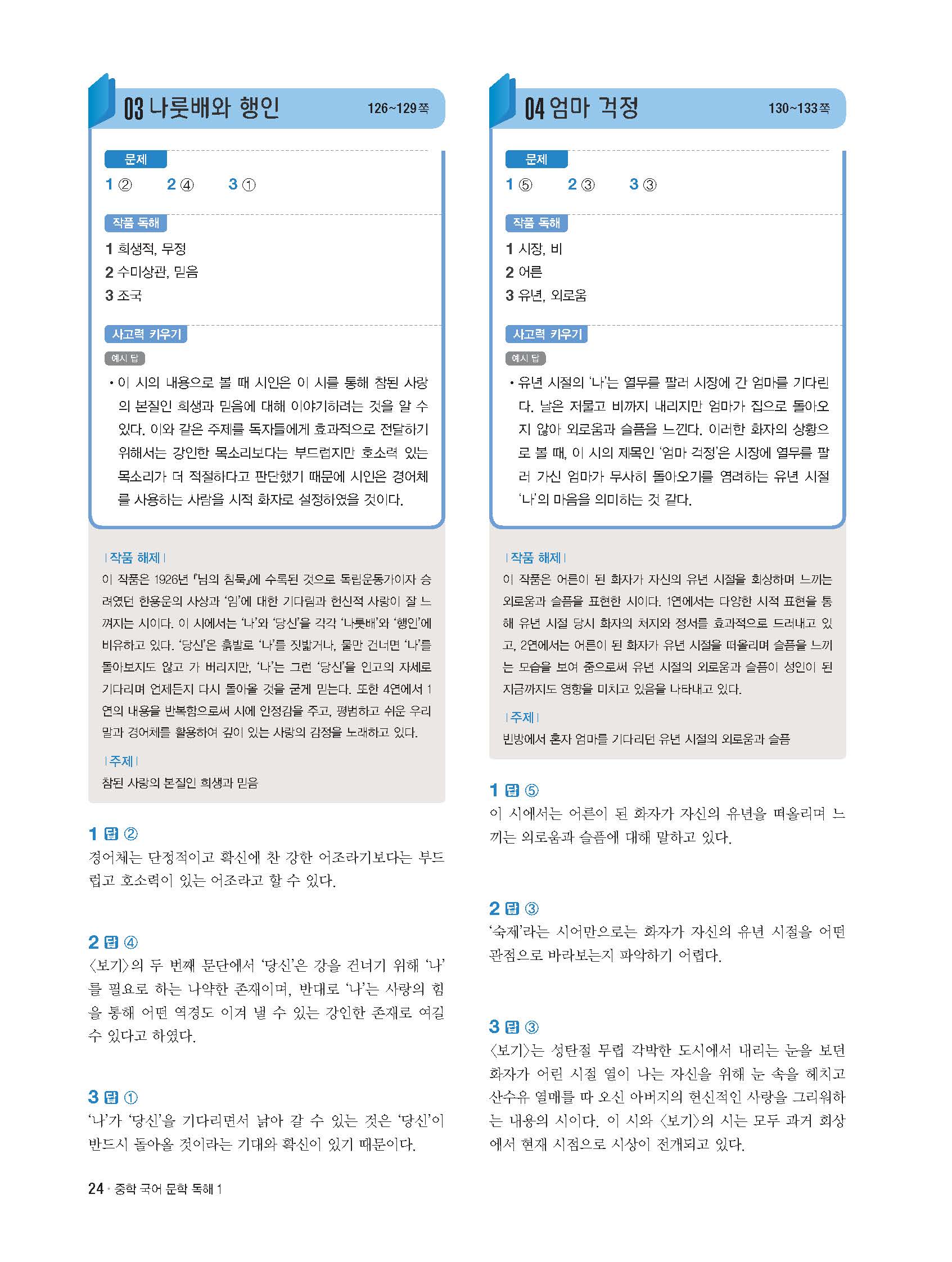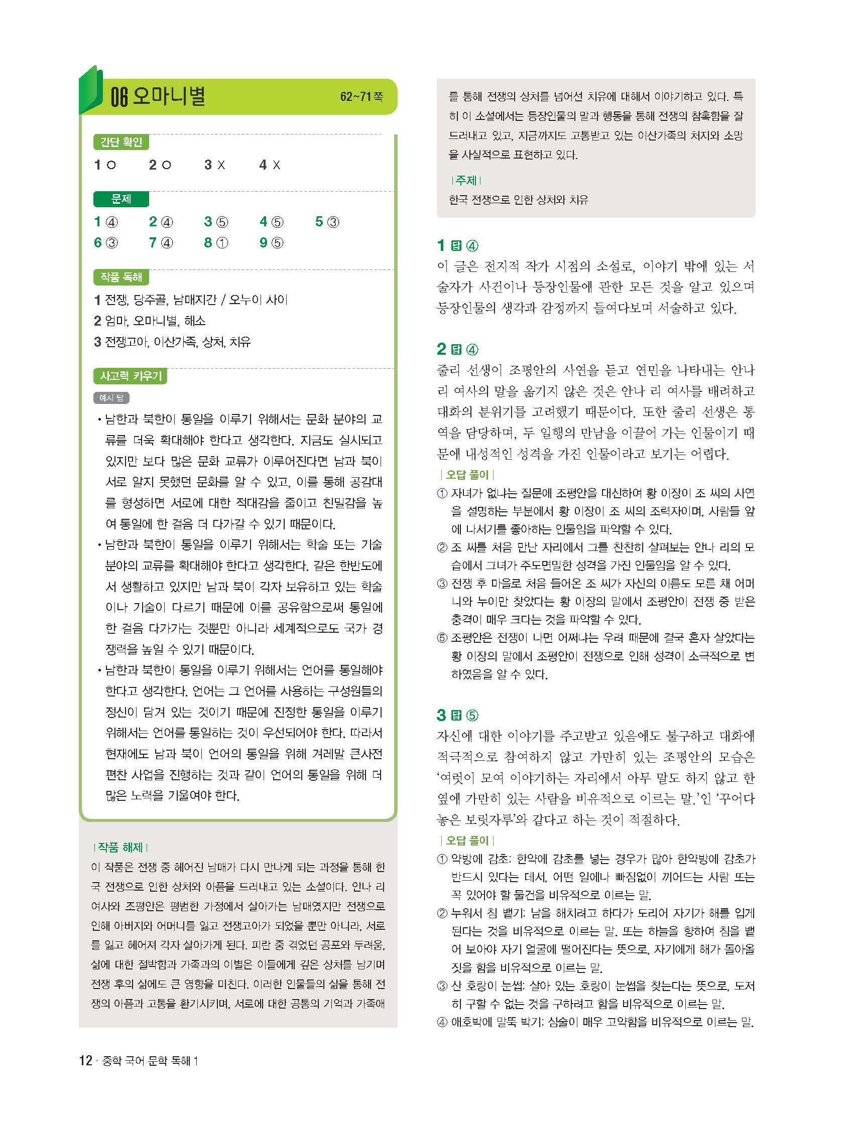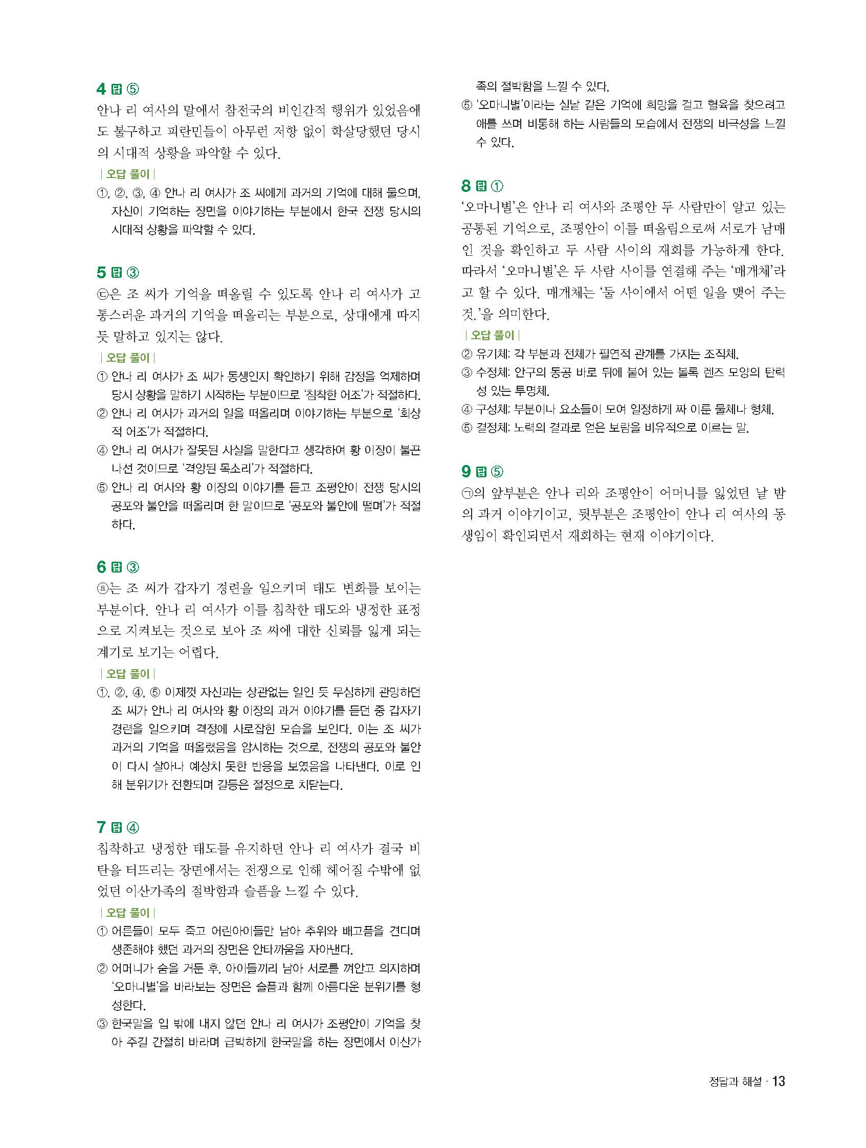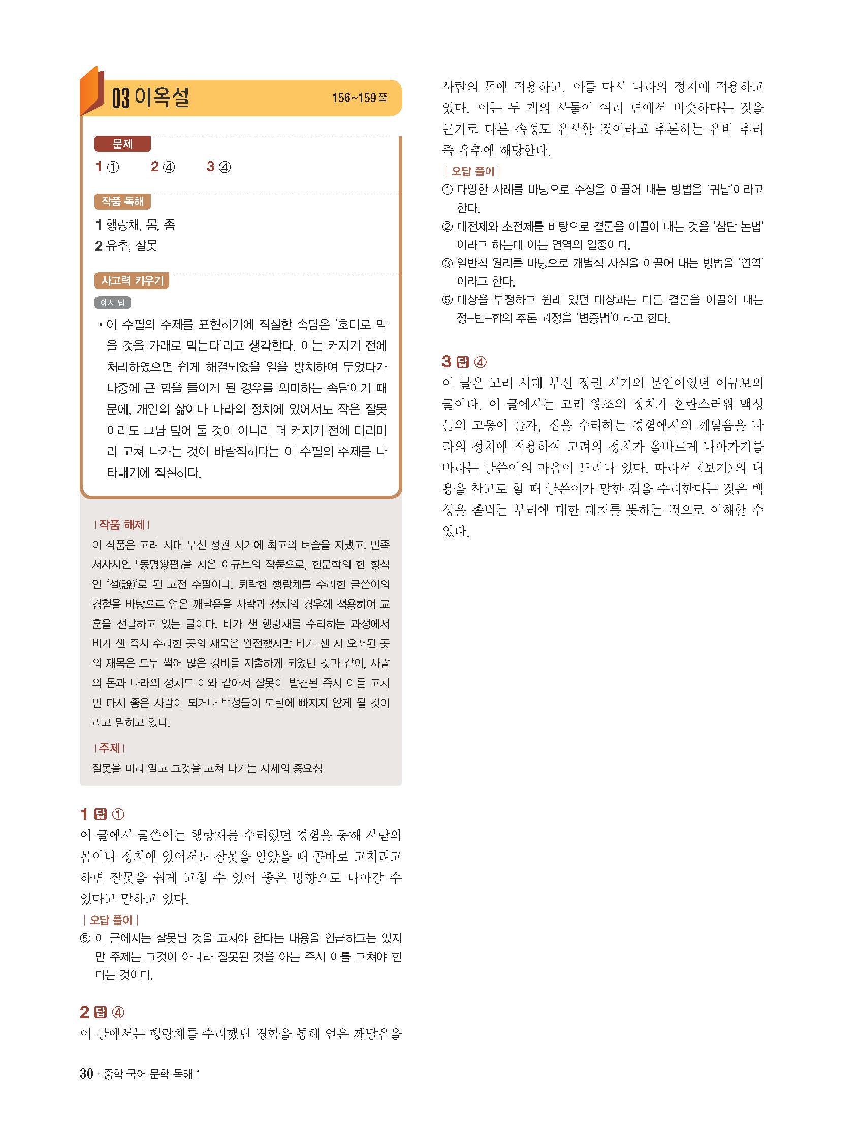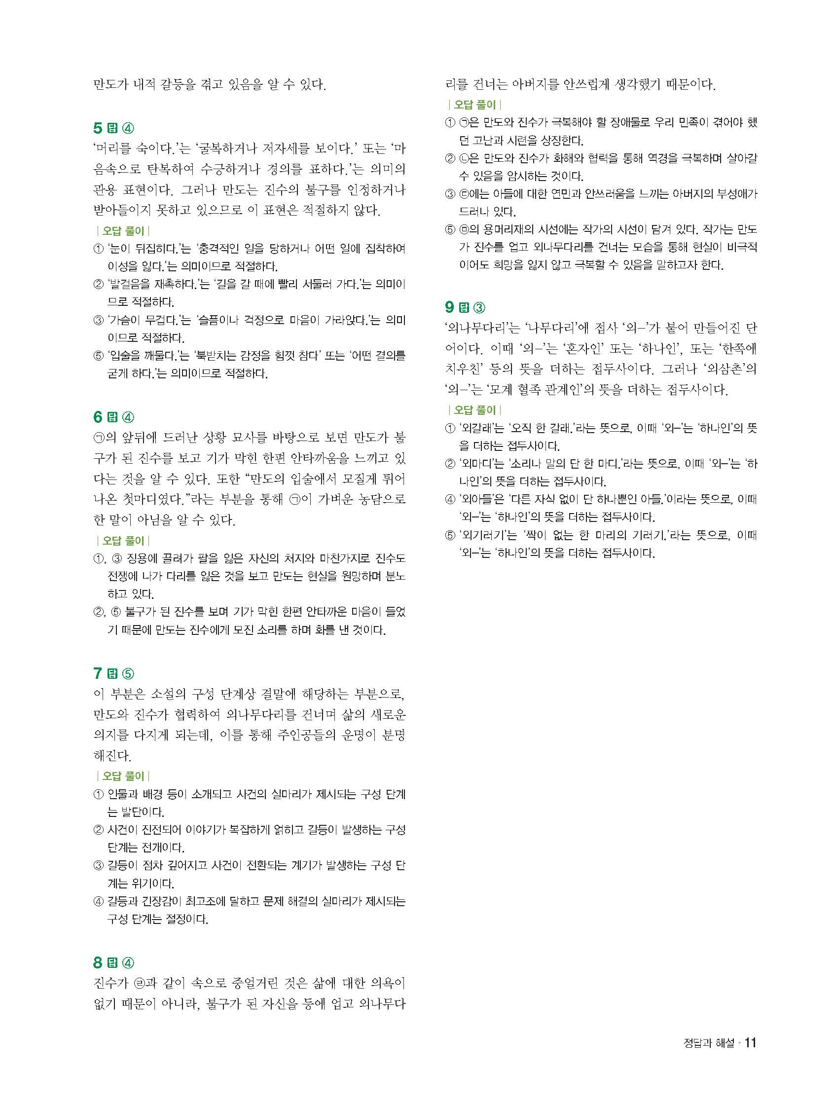 빠작 중등국어 문학독해 1권 답지 해설지 사진답지 빠른답지 모바일최적화