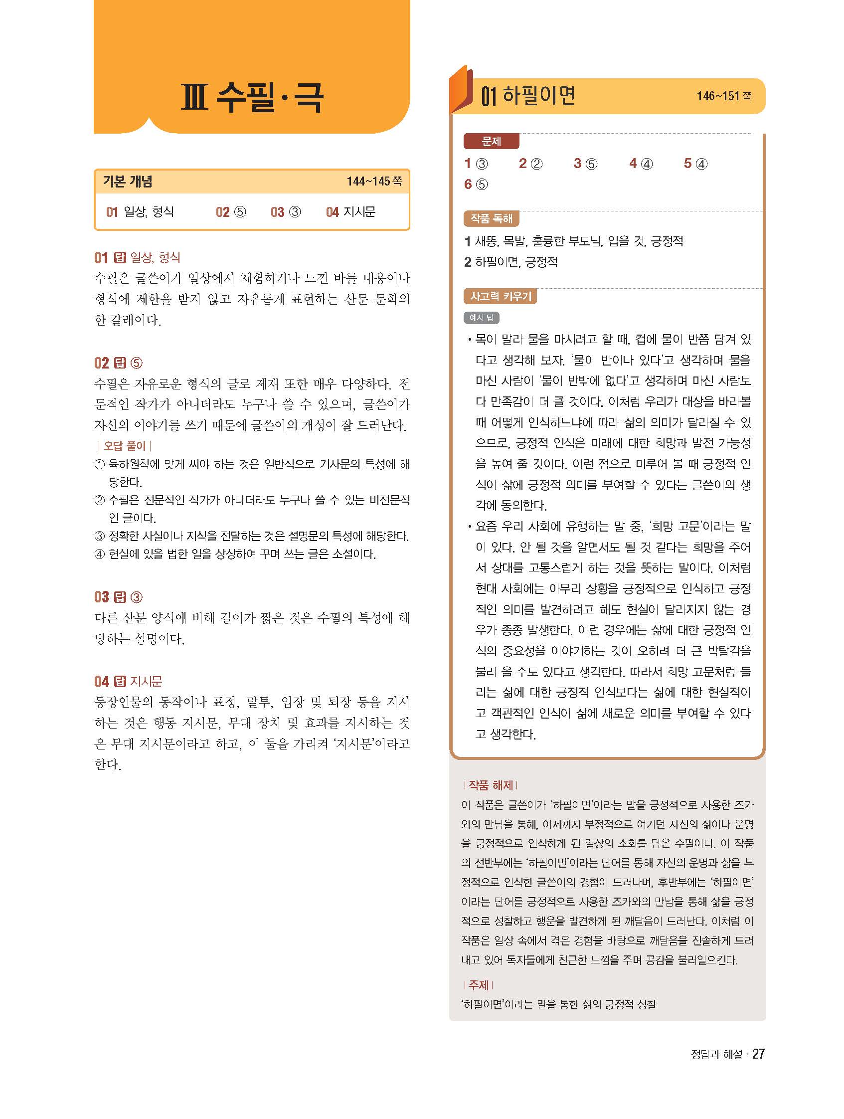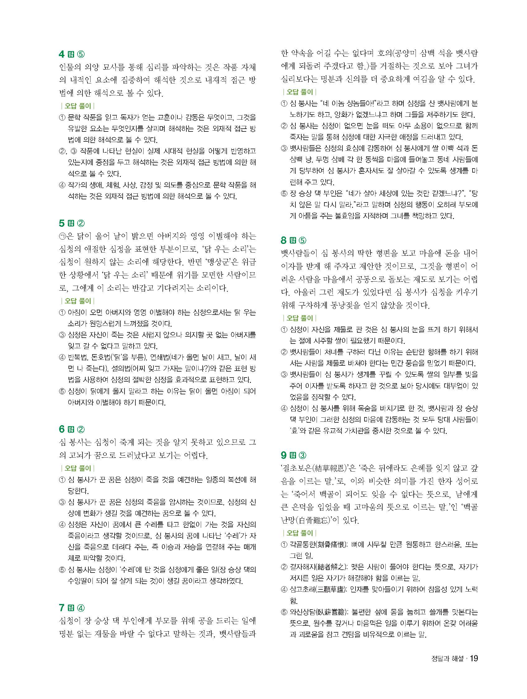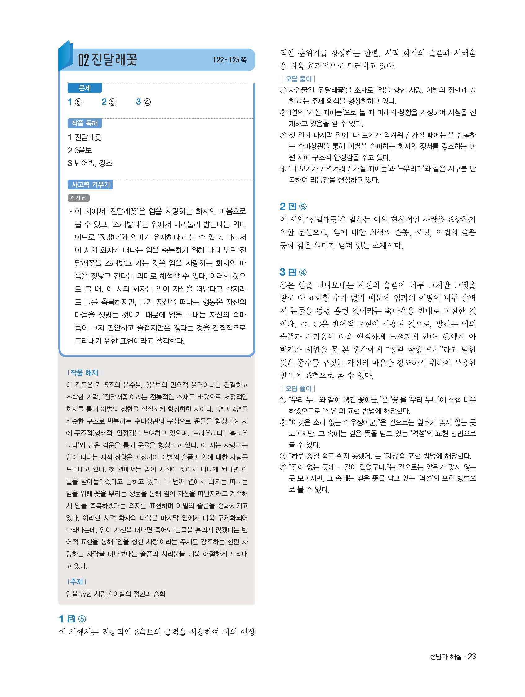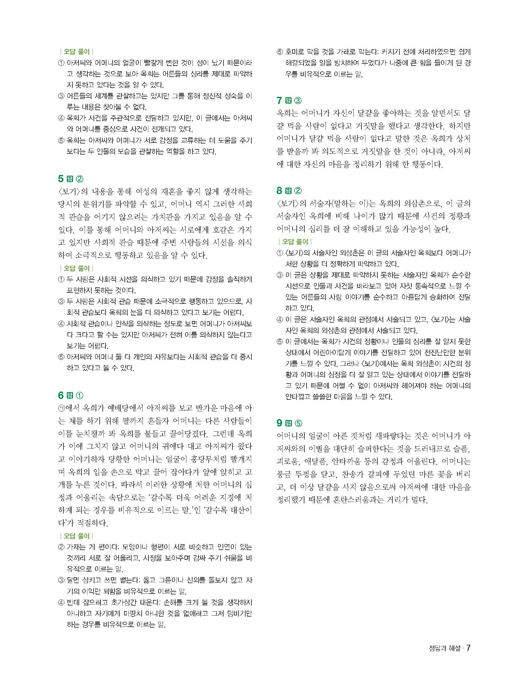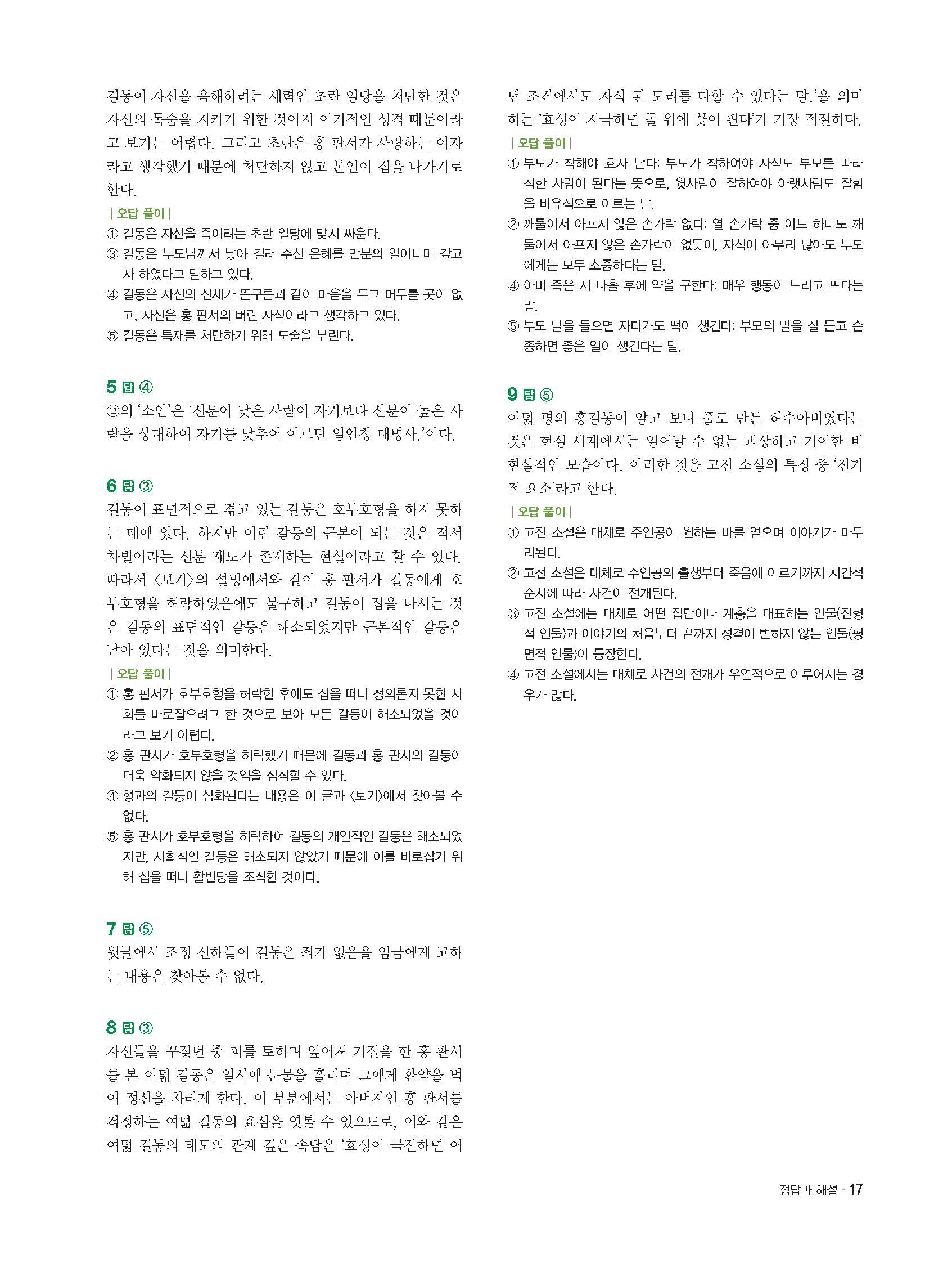 빠작 중등국어 문학독해 1권 답지 해설지 사진답지 빠른답지 모바일최적화