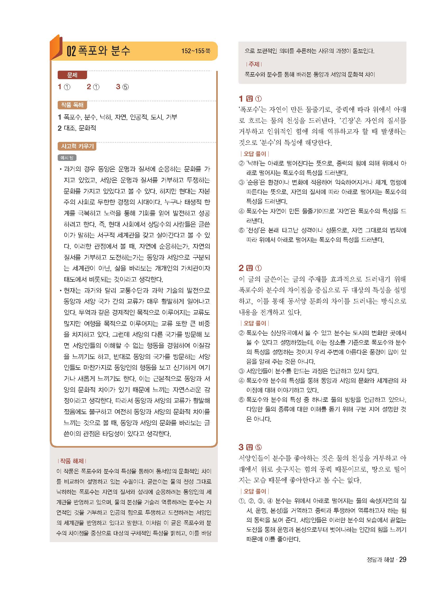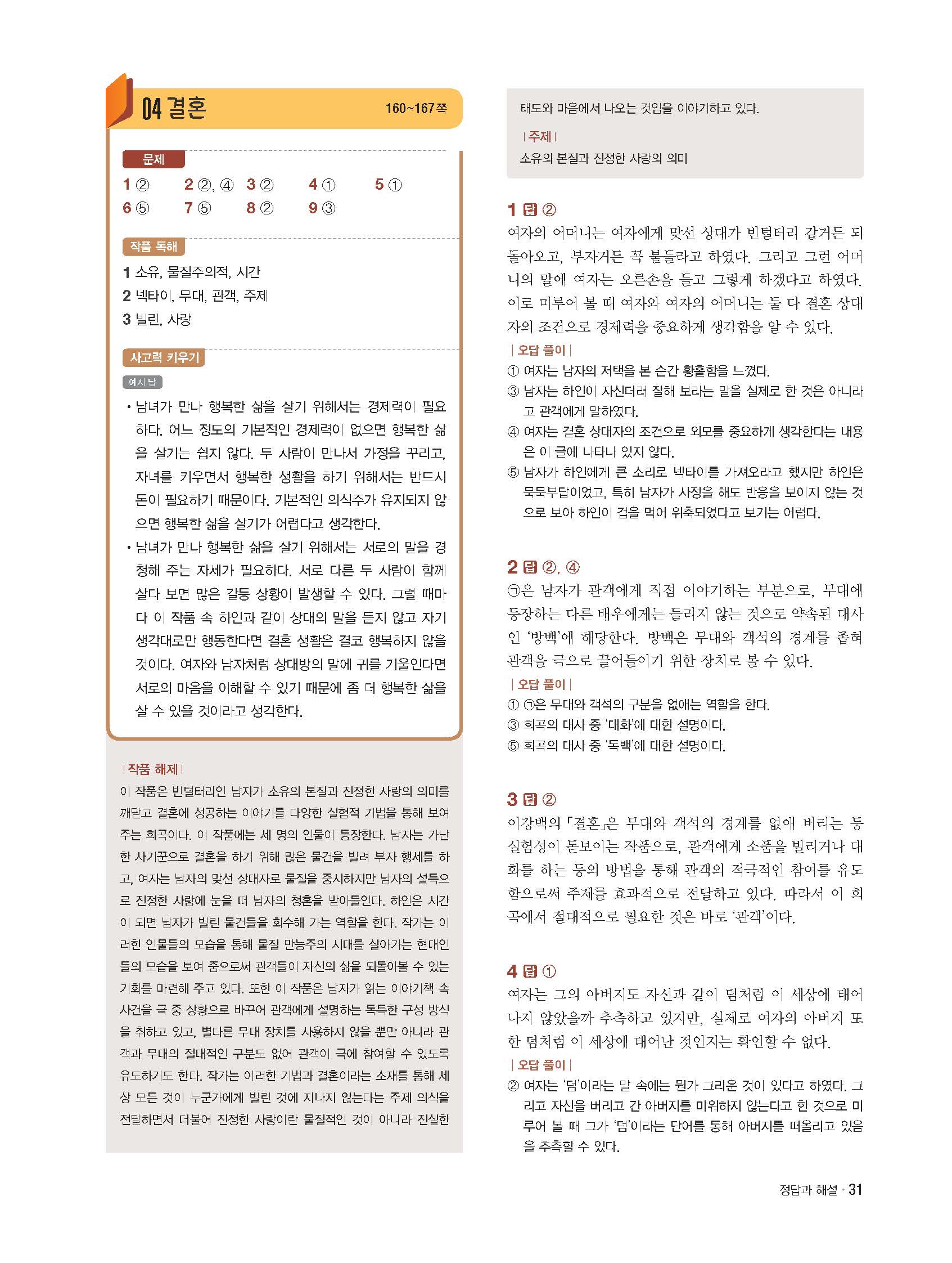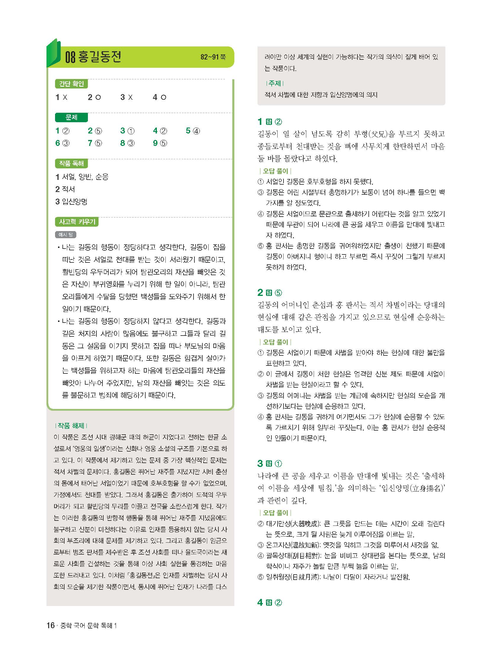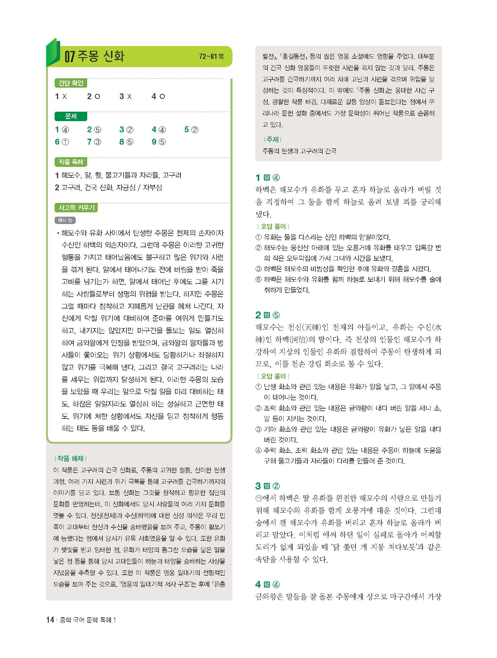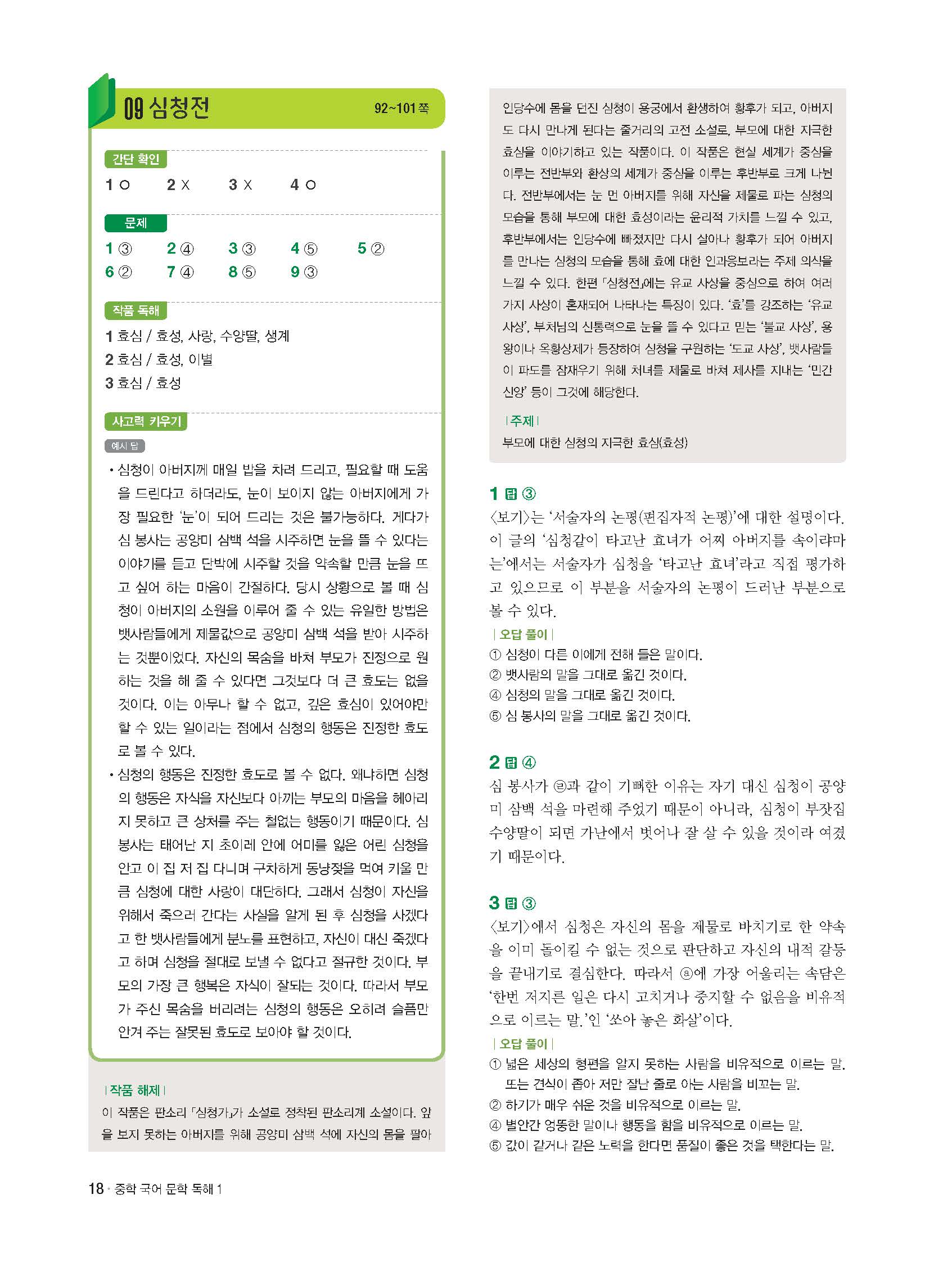 빠작 중등국어 문학독해 1권 답지 해설지 사진답지 빠른답지 모바일최적화