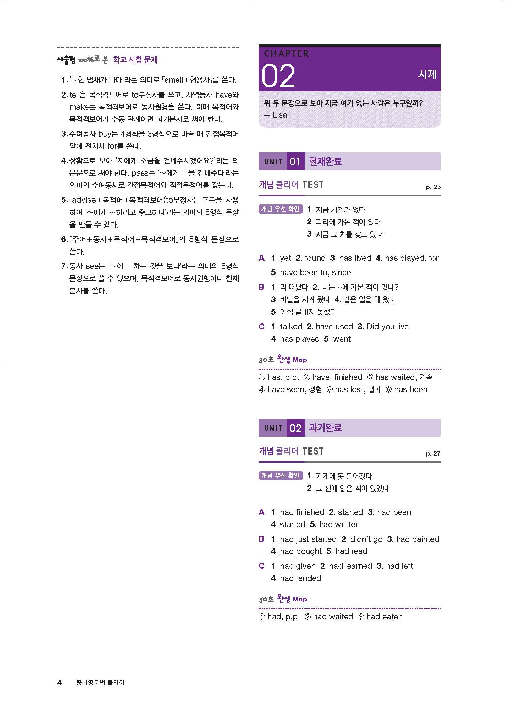 중학영문법 클리어 레벨3 답지 해설지 사진답지 빠른답지 모바일최적화