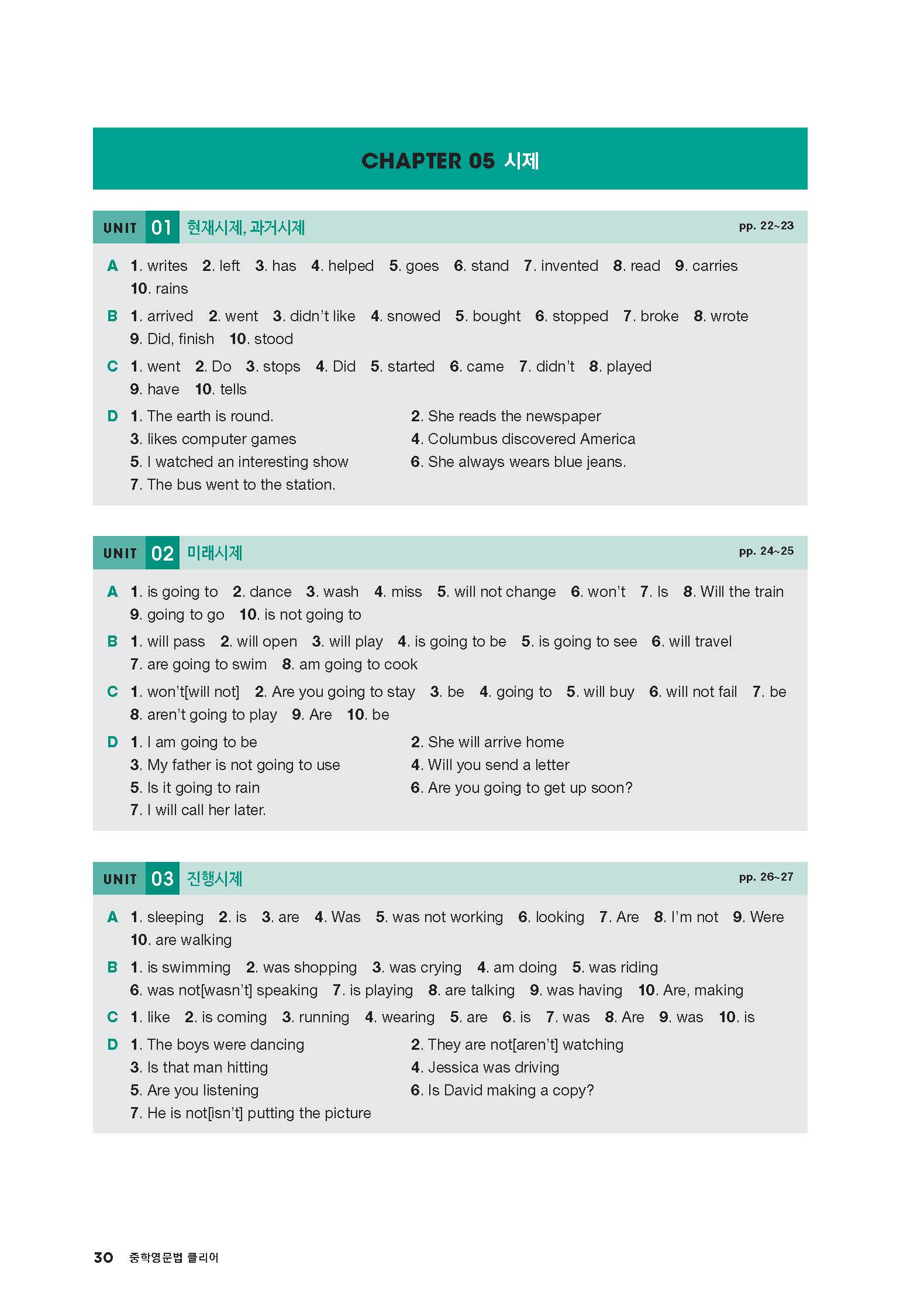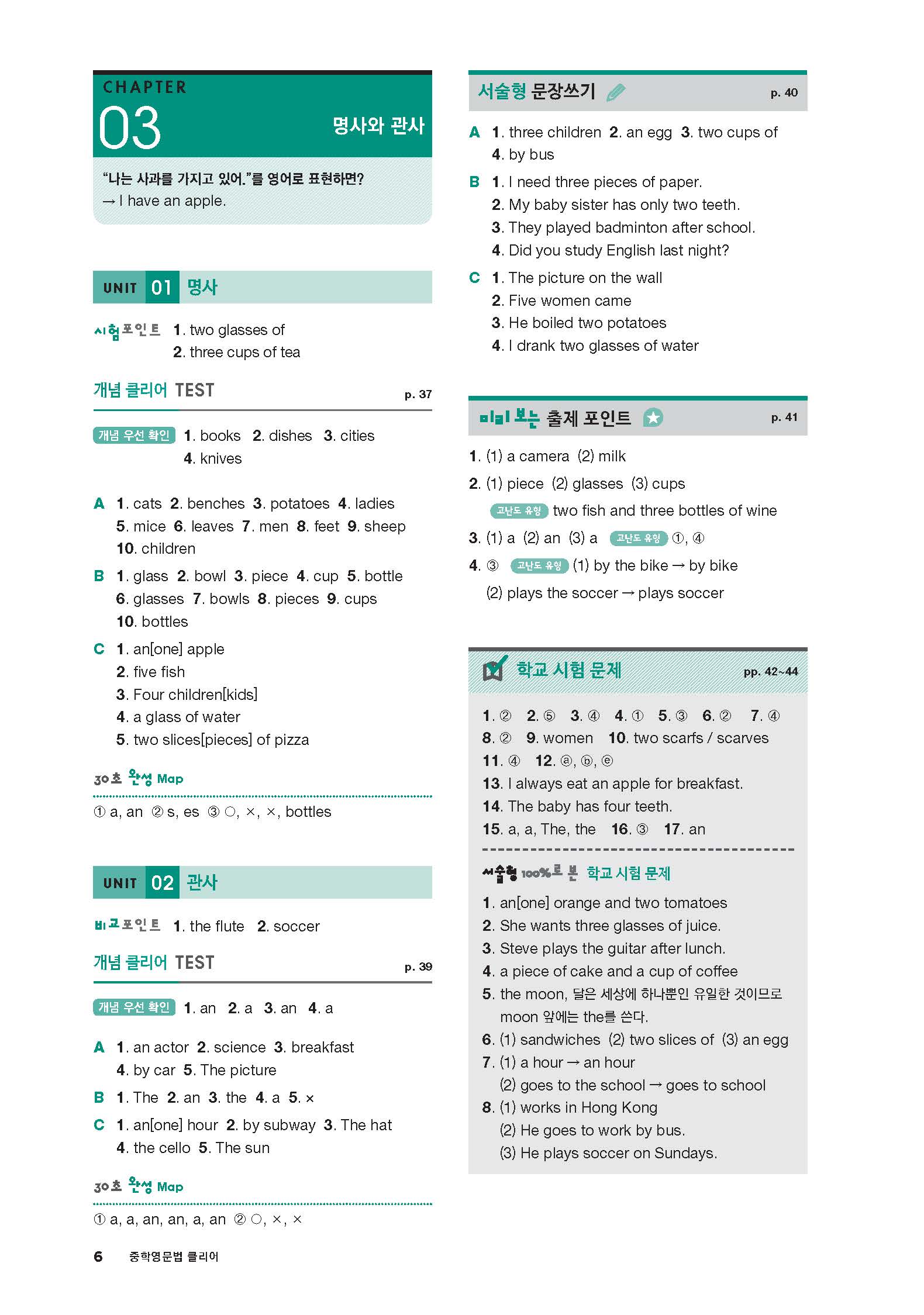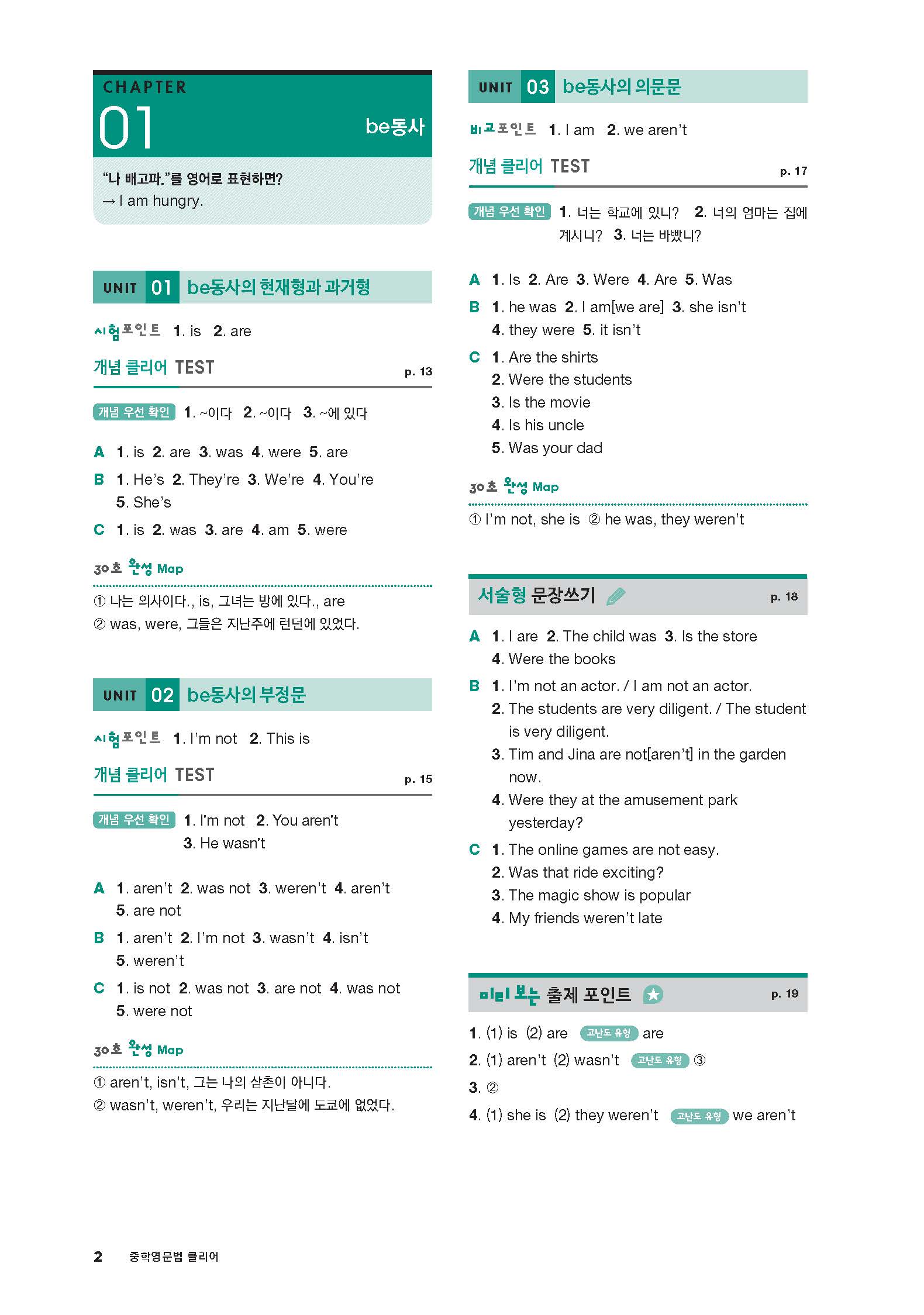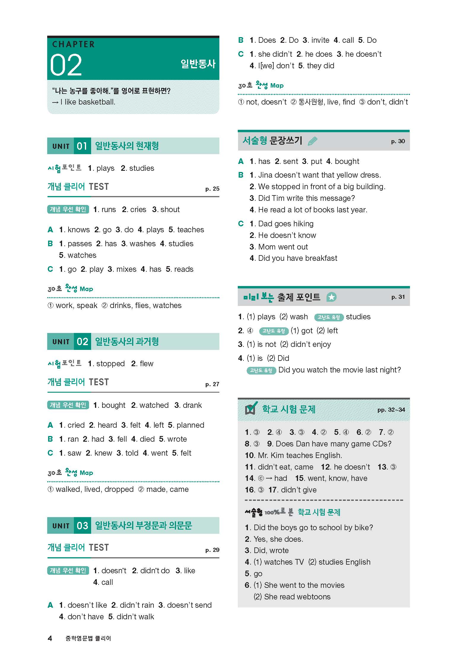중학영문법 클리어 레벨1 답지 해설지 사진답지 빠른답지 모바일최적화