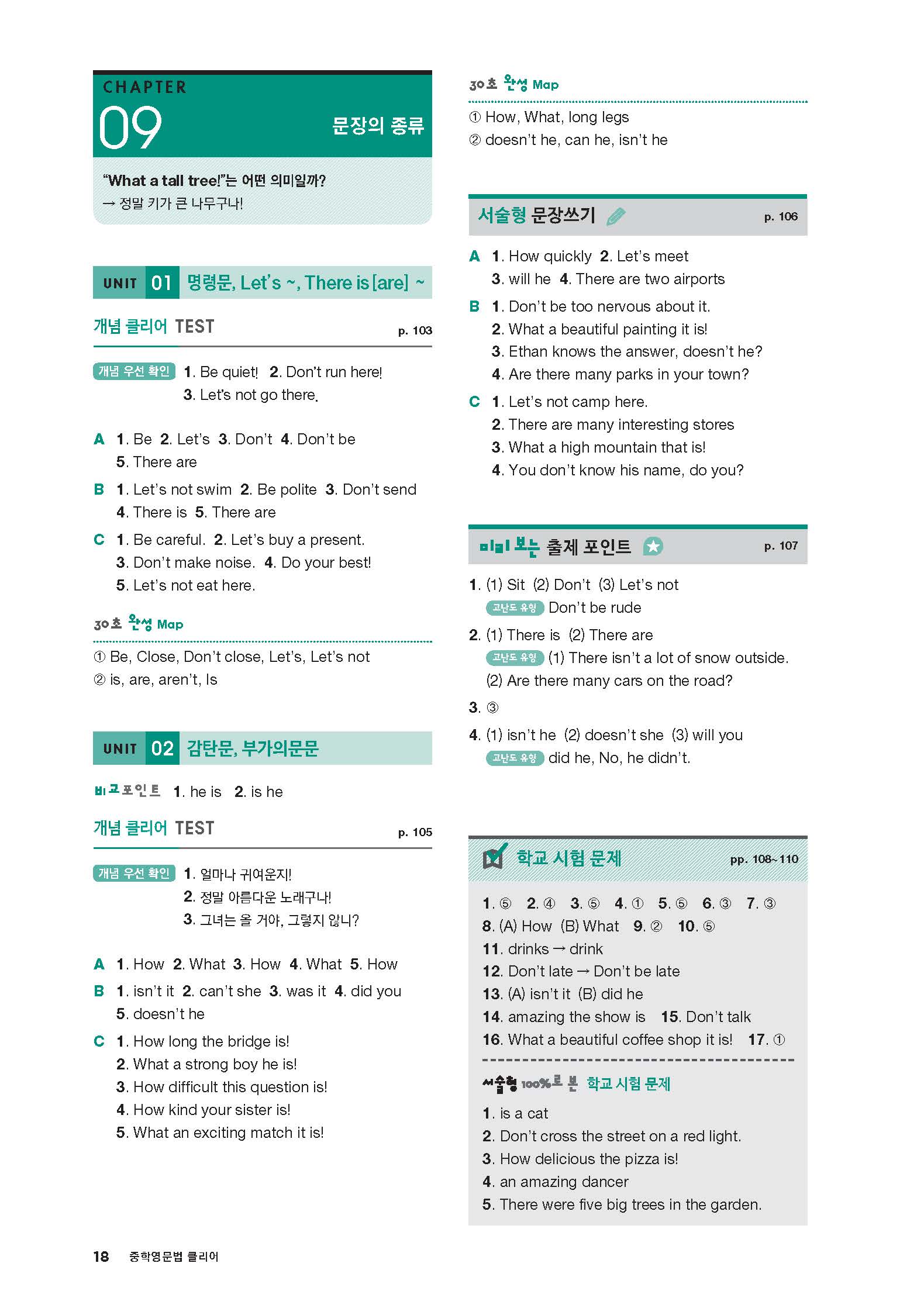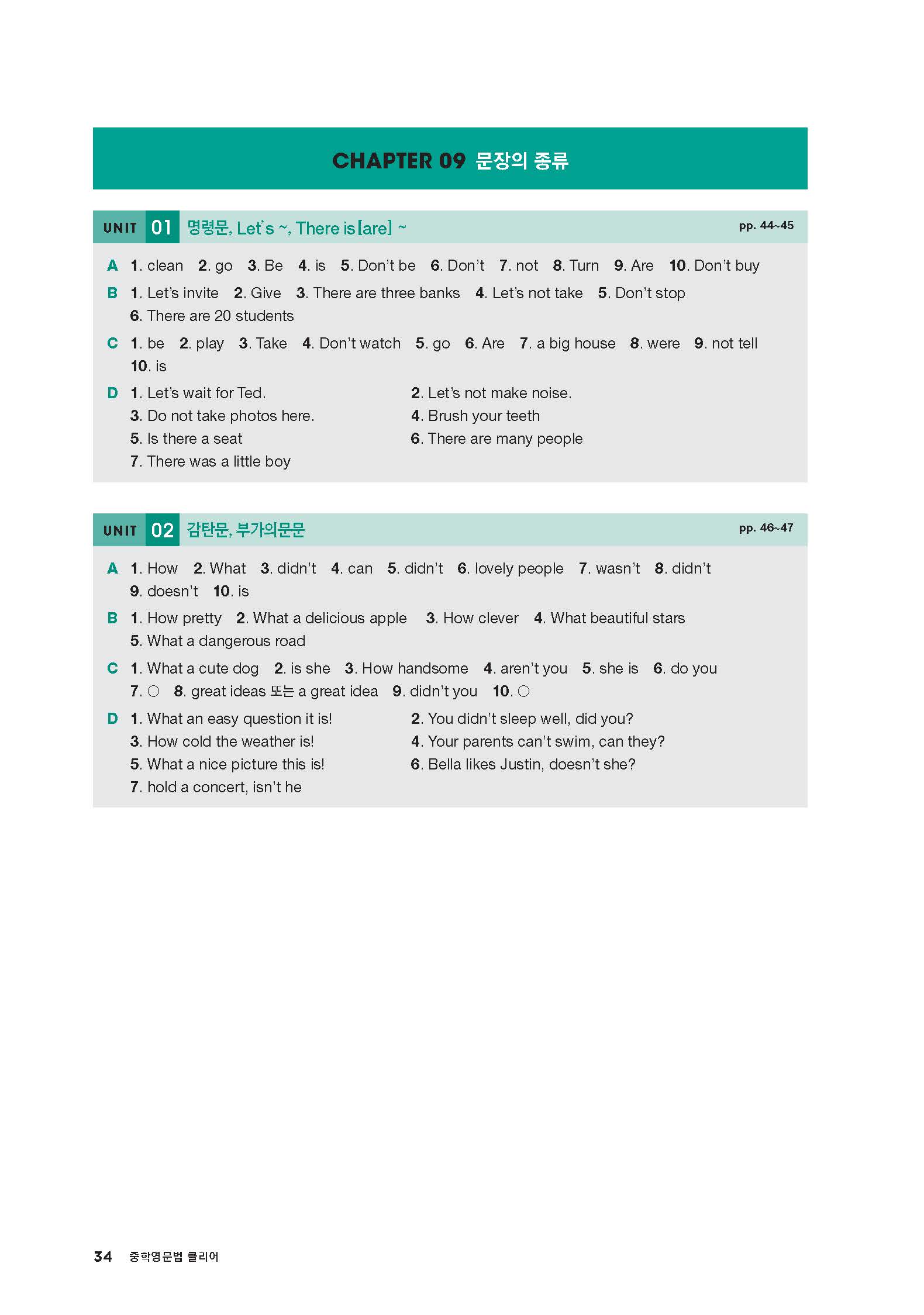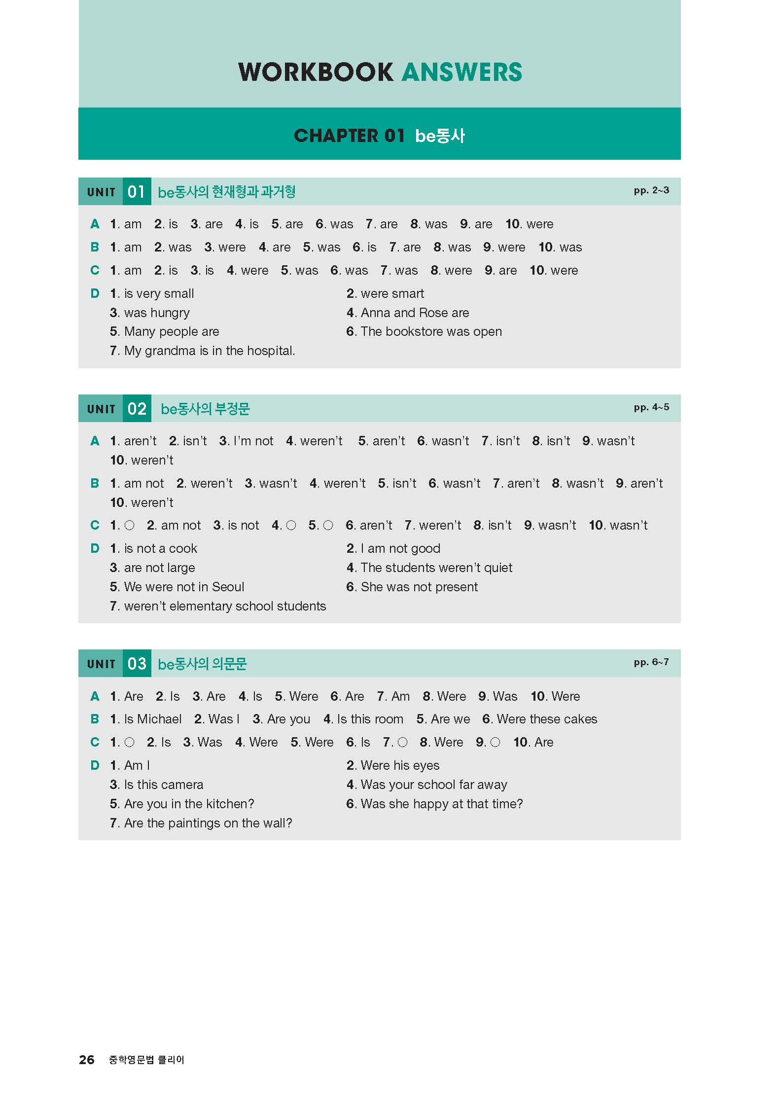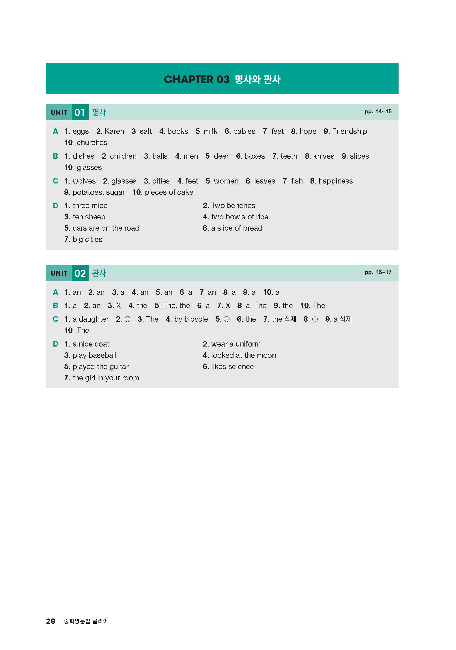 중학영문법 클리어 레벨1 답지 해설지 사진답지 빠른답지 모바일최적화