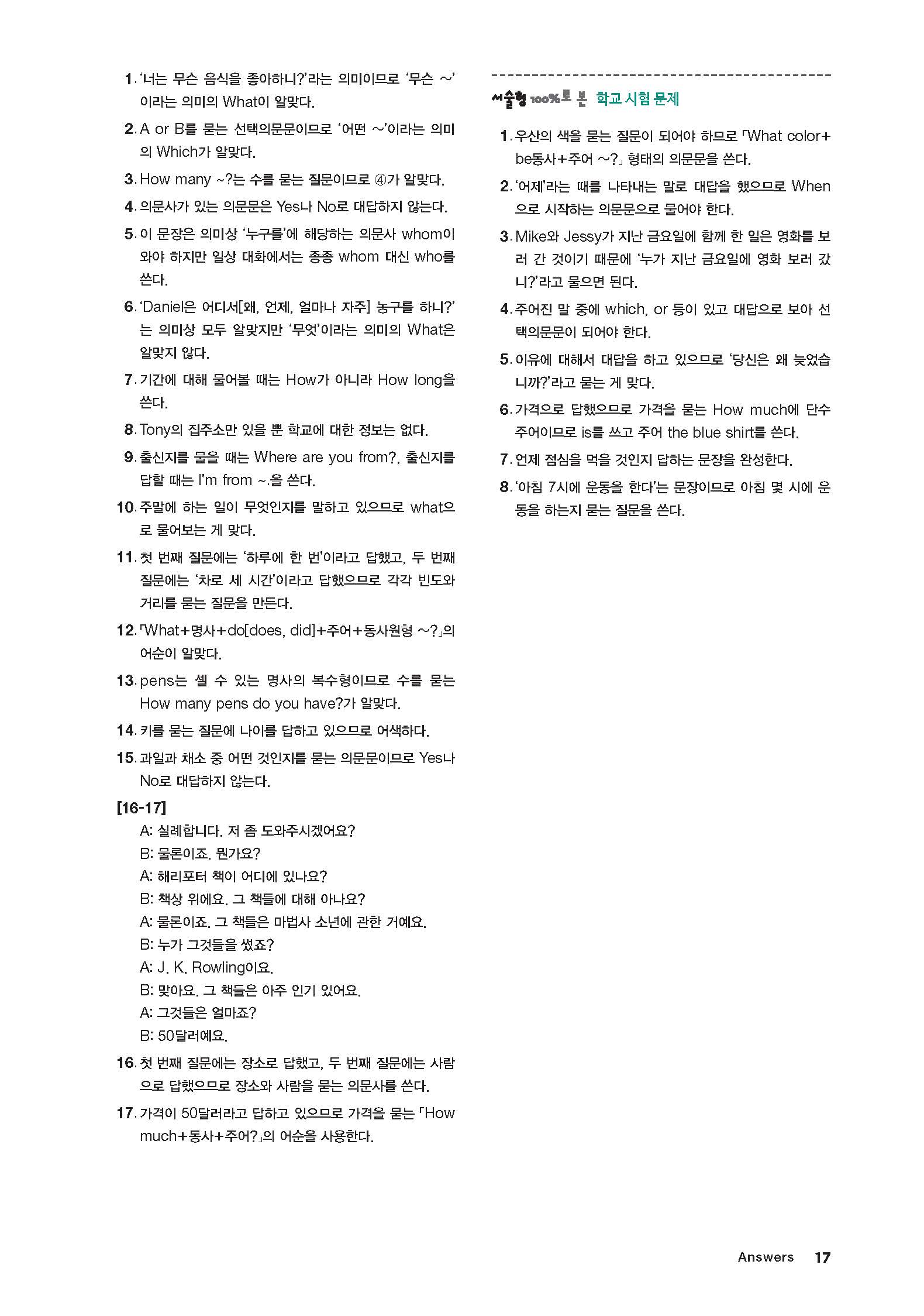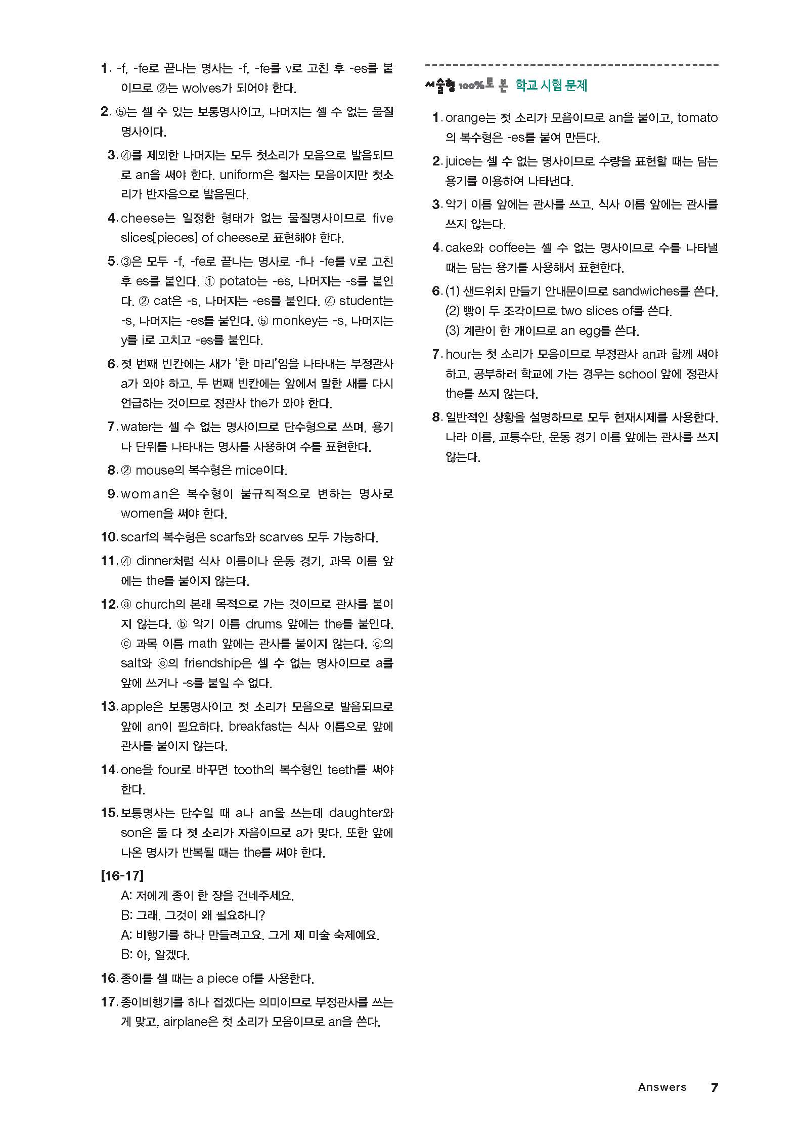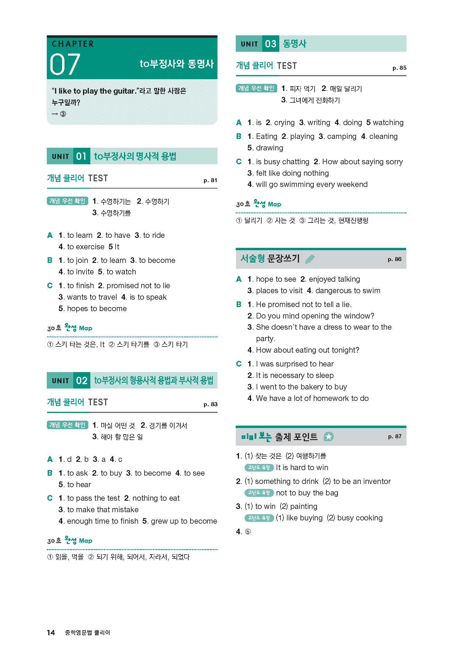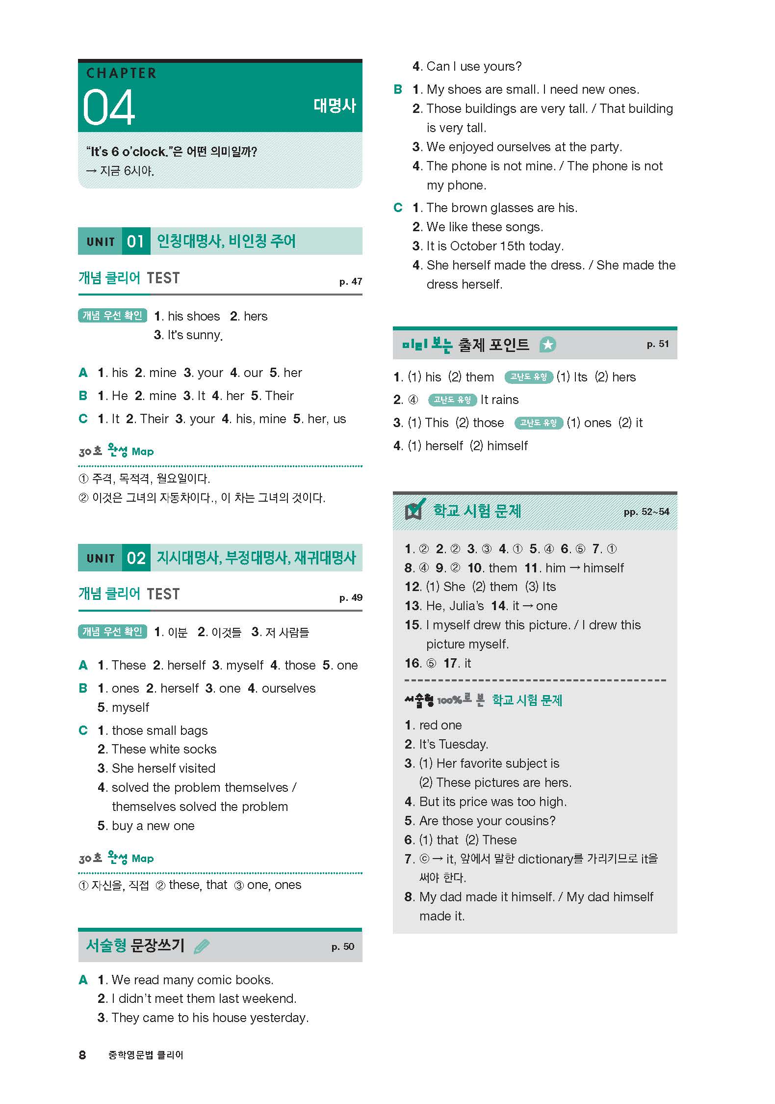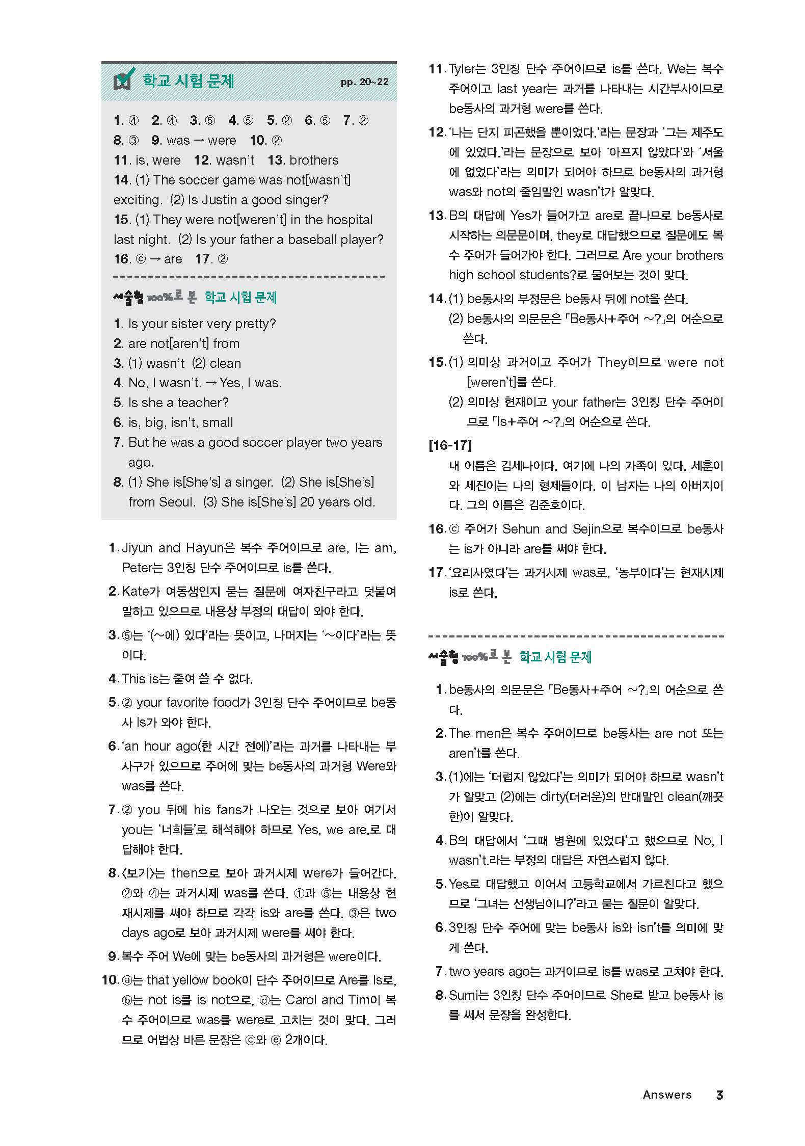 중학영문법 클리어 레벨1 답지 해설지 사진답지 빠른답지 모바일최적화