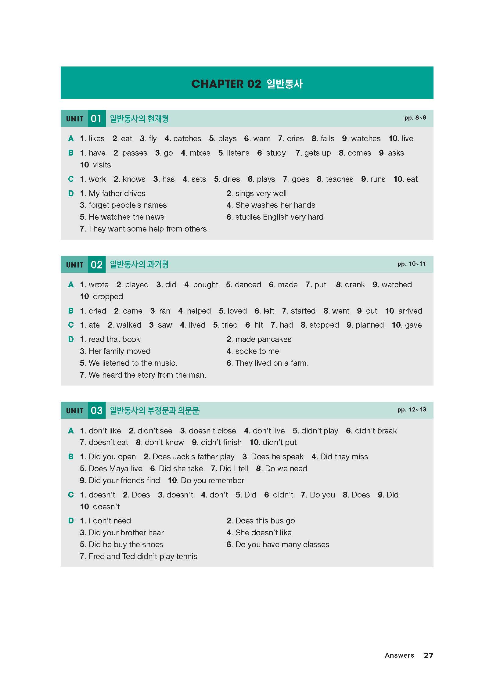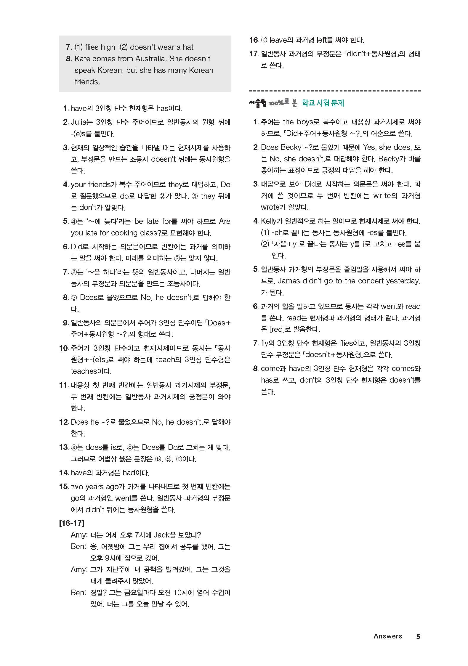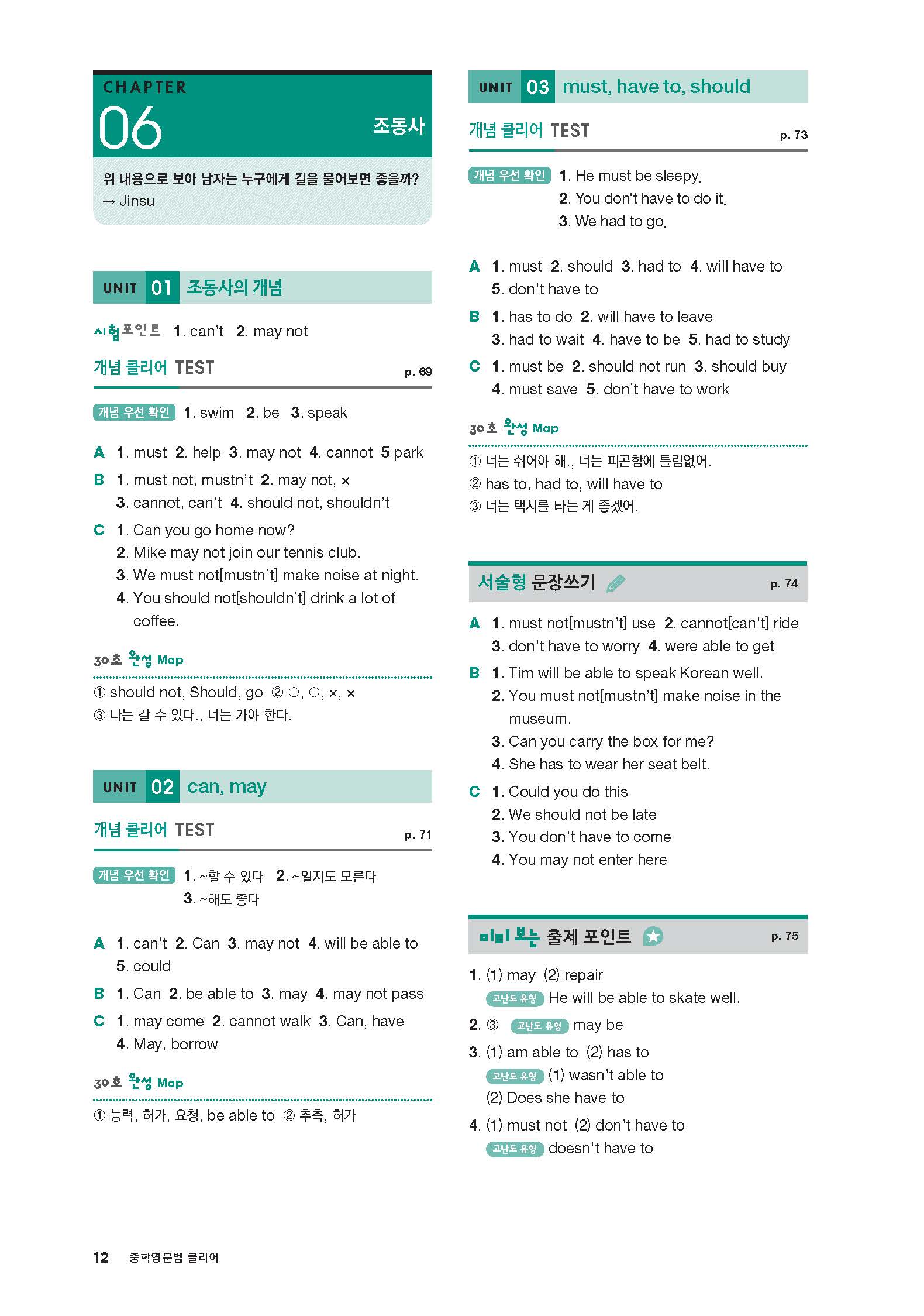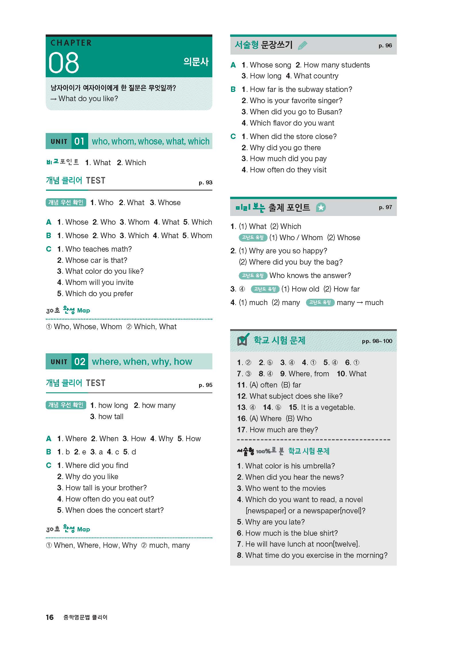중학영문법 클리어 레벨1 답지 해설지 사진답지 빠른답지 모바일최적화