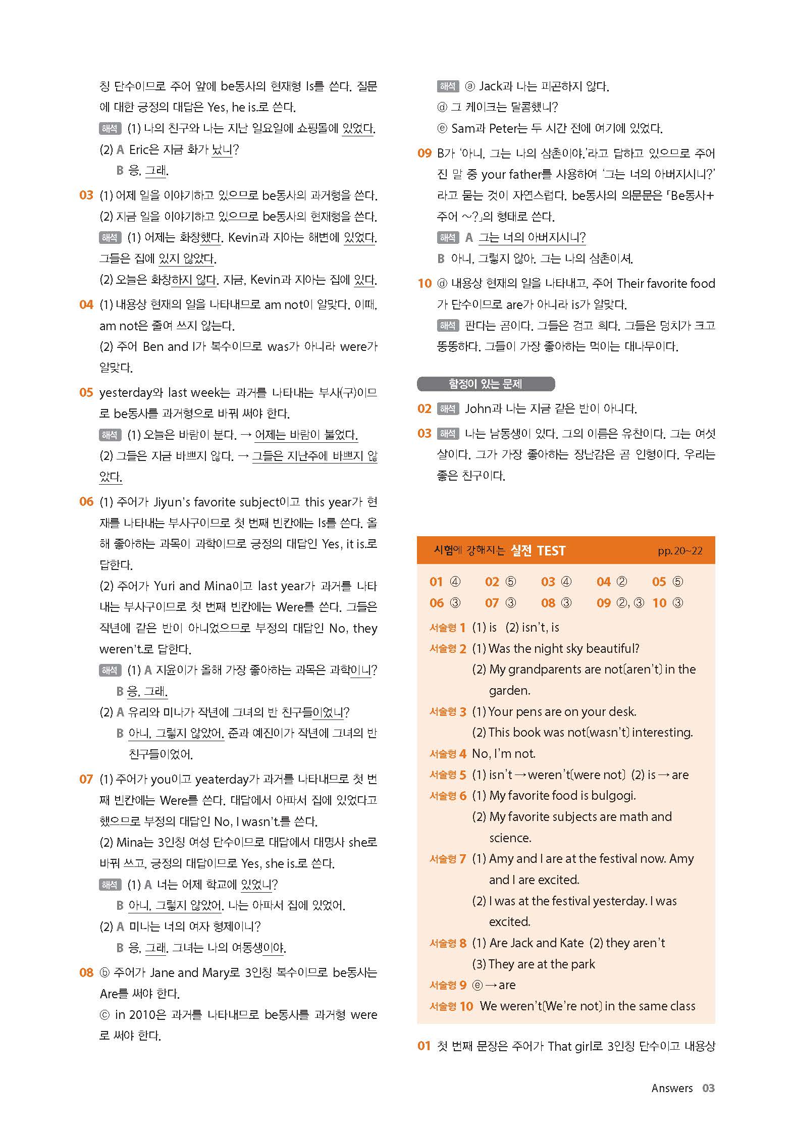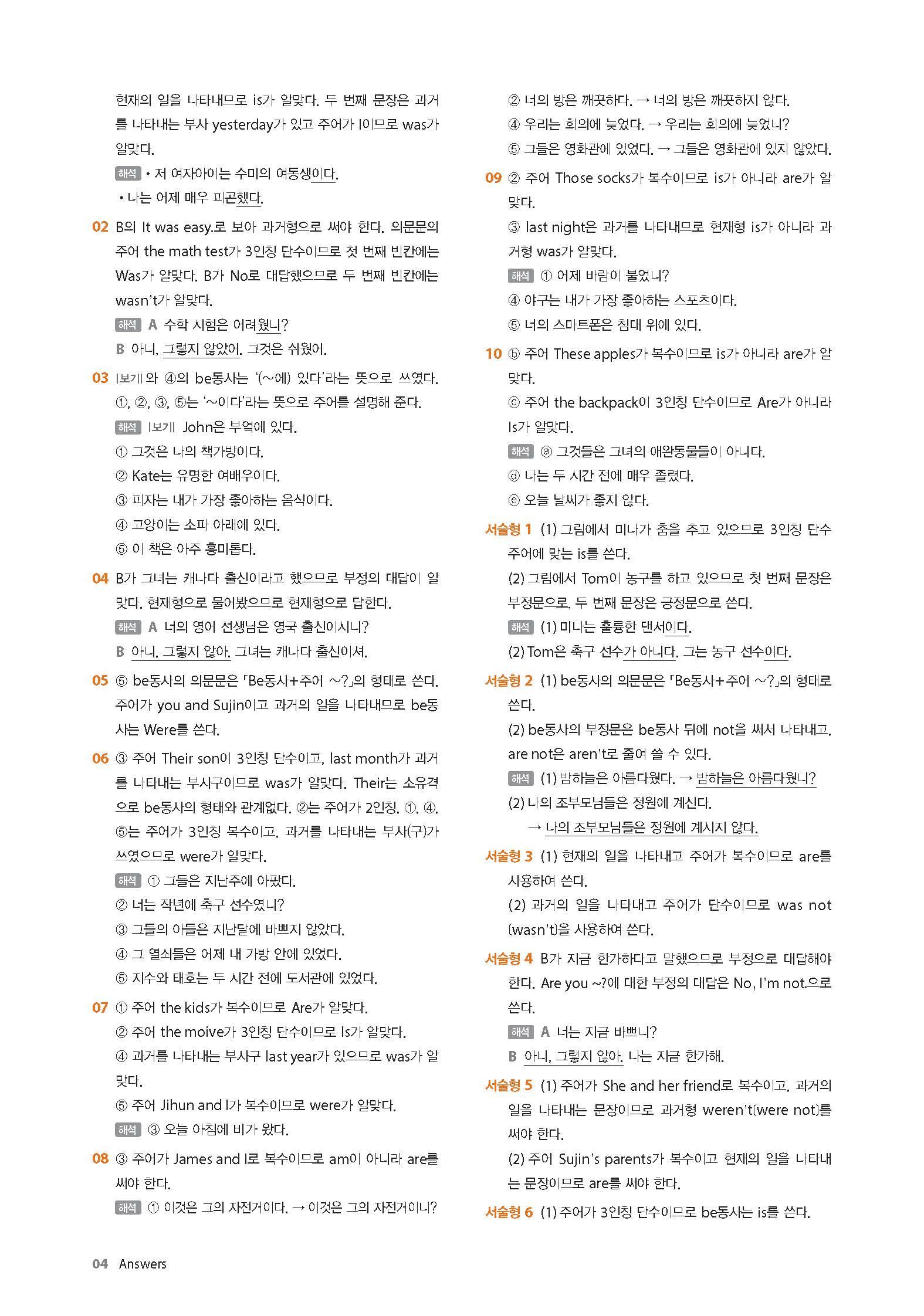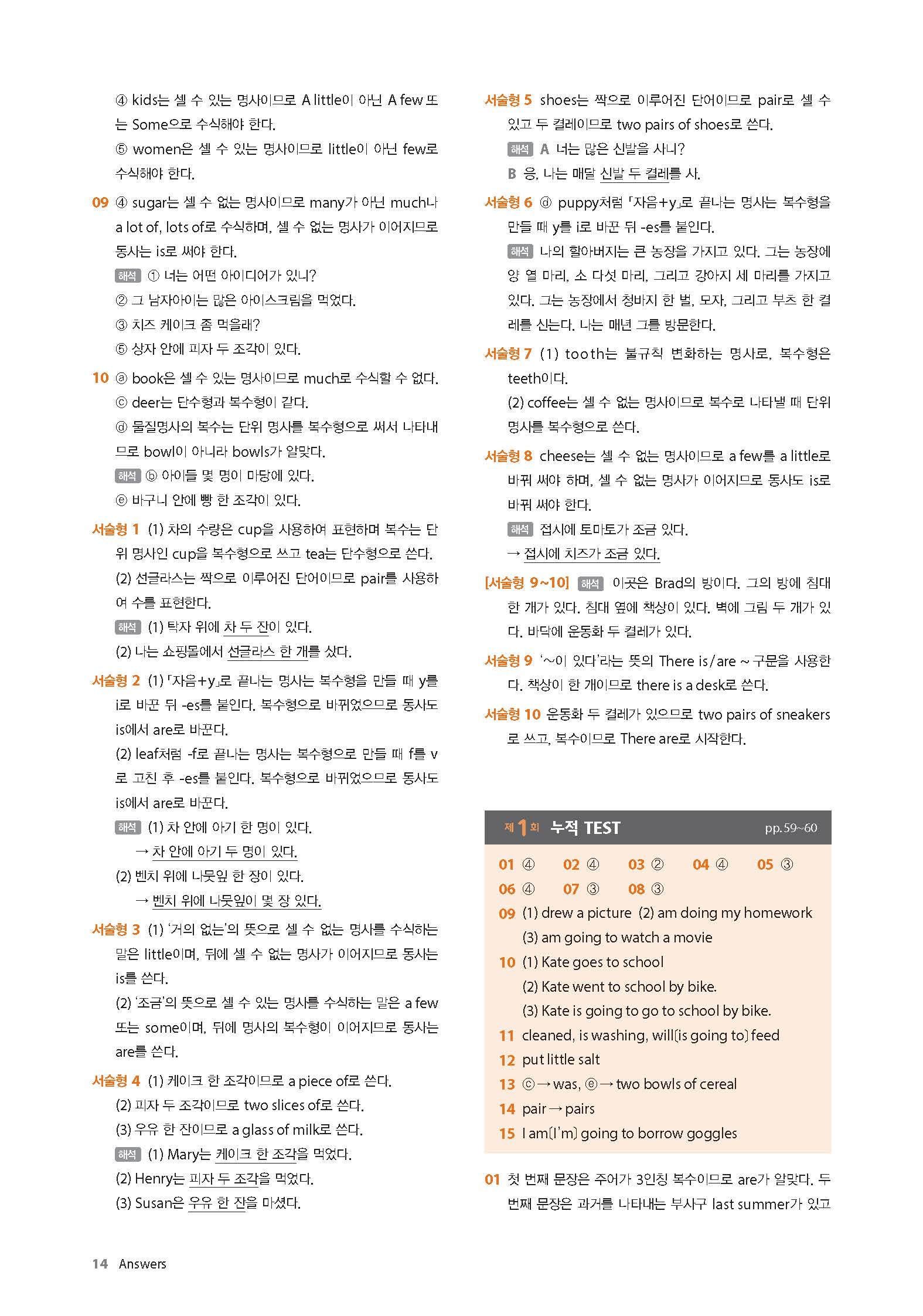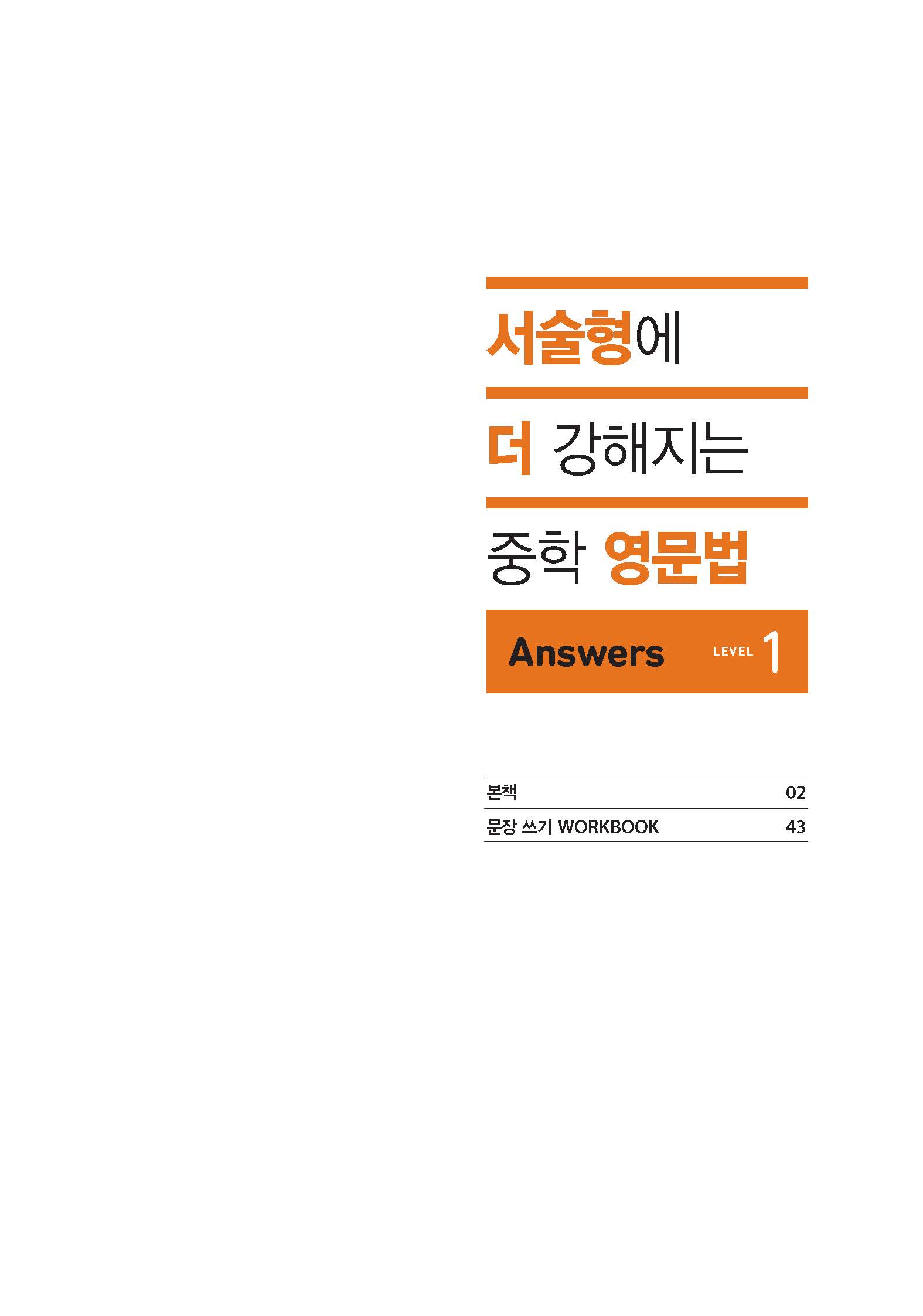 서술형에더강해지는 중학영문법 레벨1 답지 해설지 사진답지 빠른답지 모바일최적화
