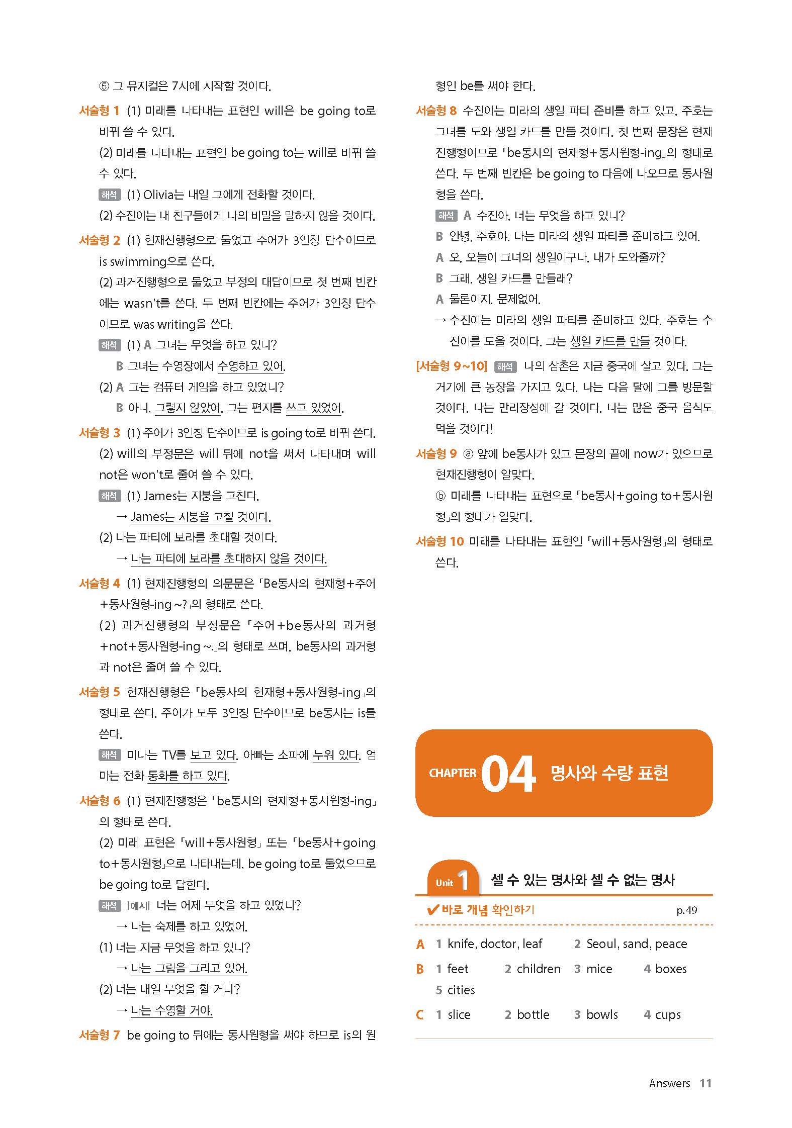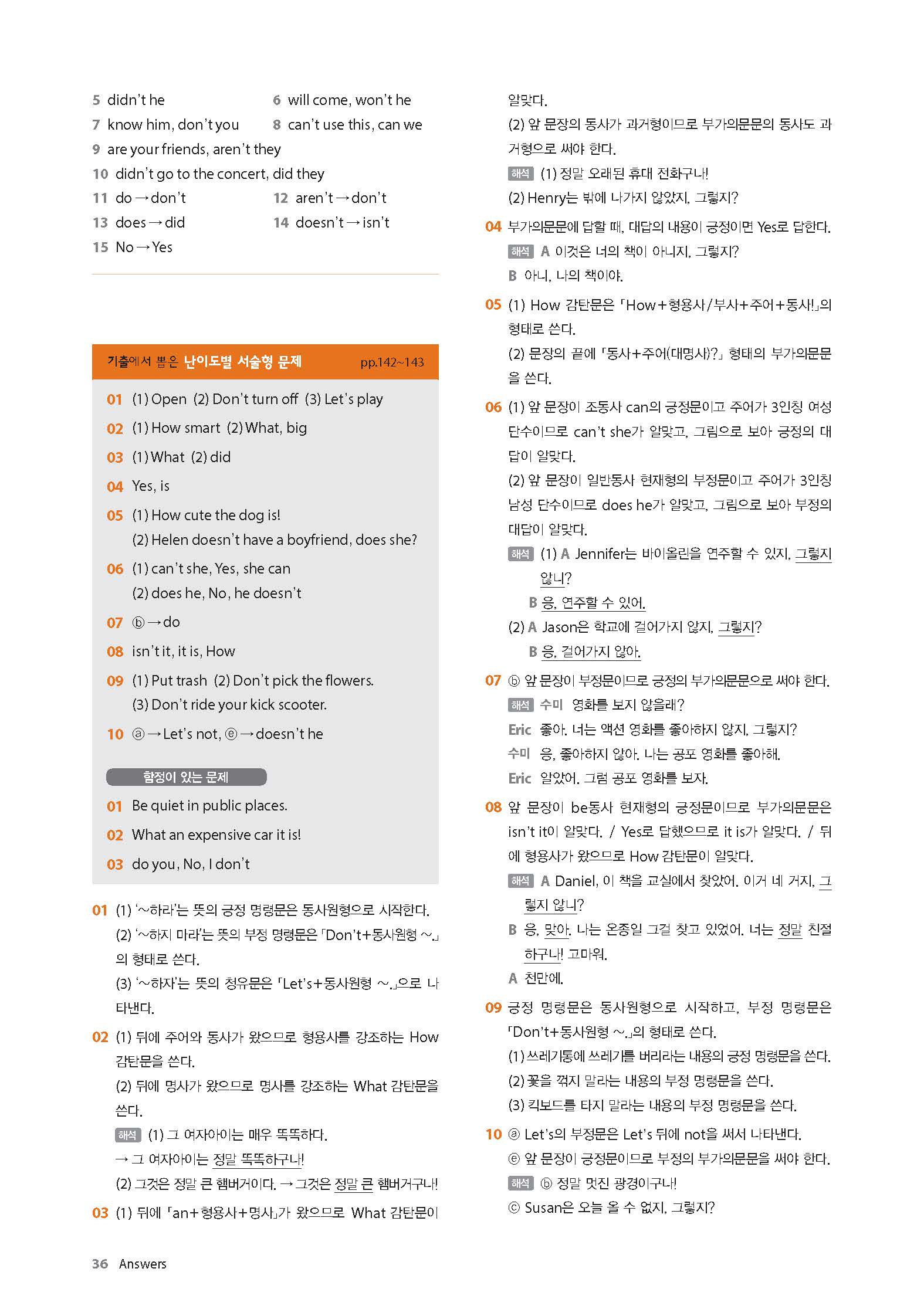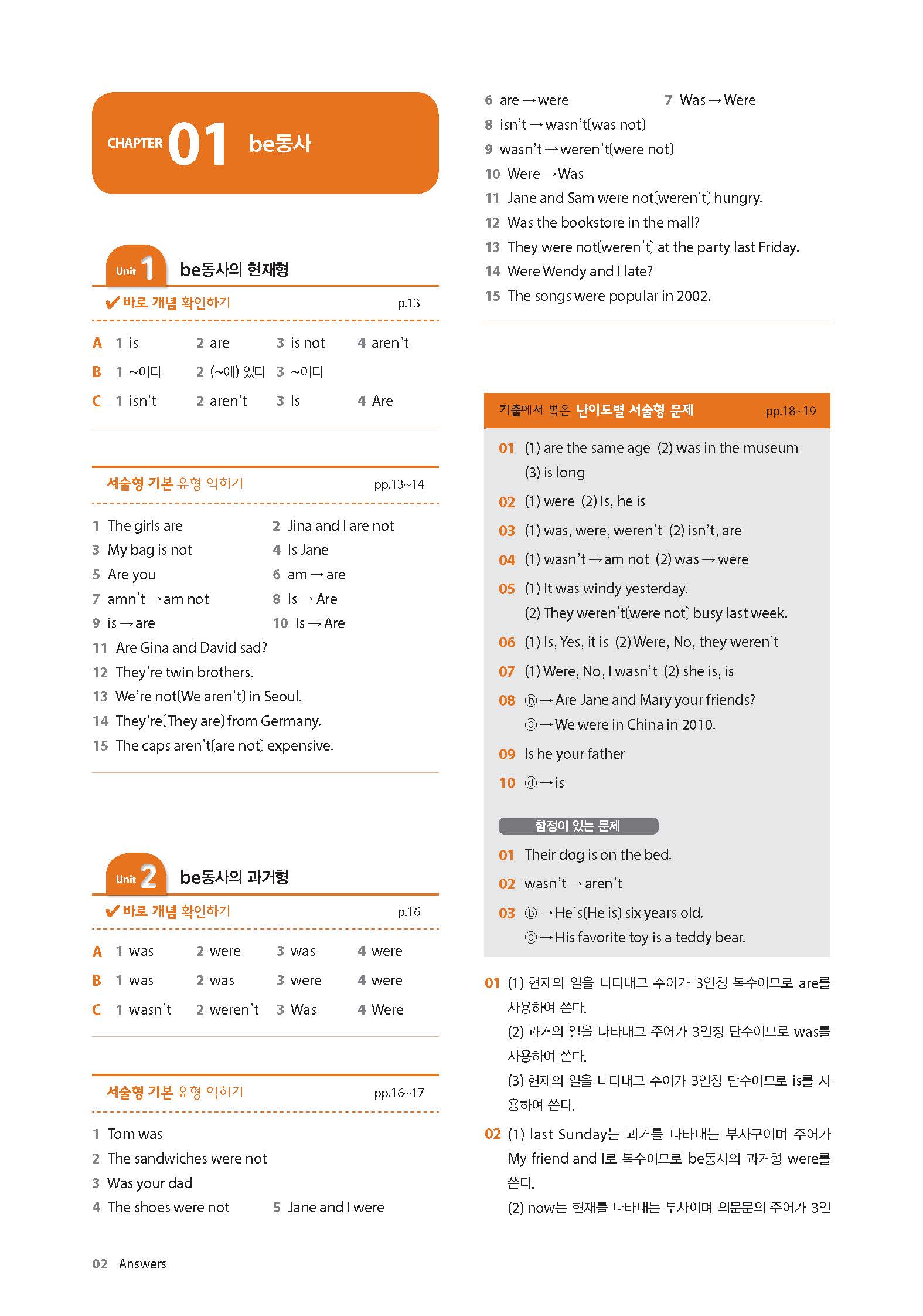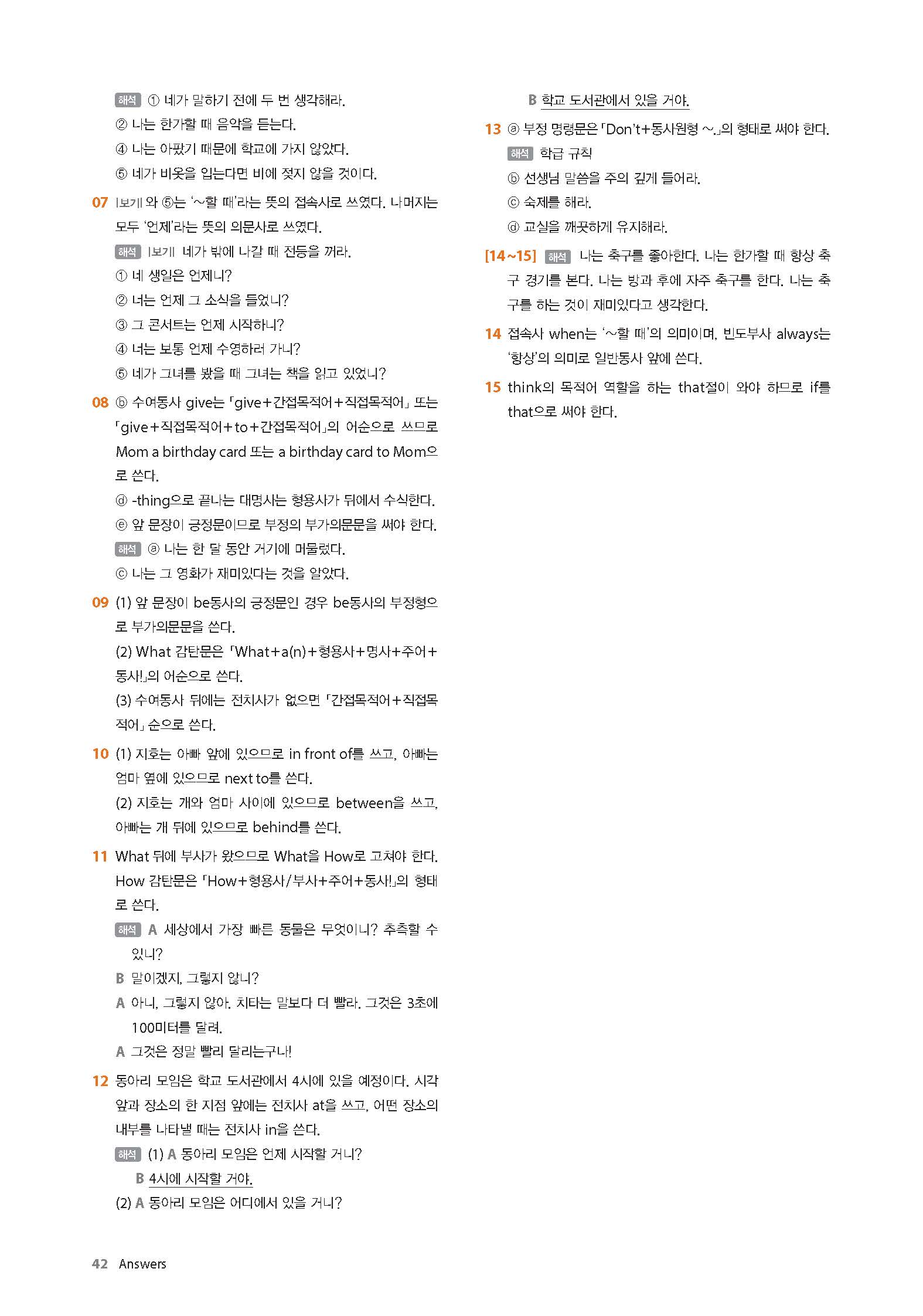 서술형에더강해지는 중학영문법 레벨1 답지 해설지 사진답지 빠른답지 모바일최적화