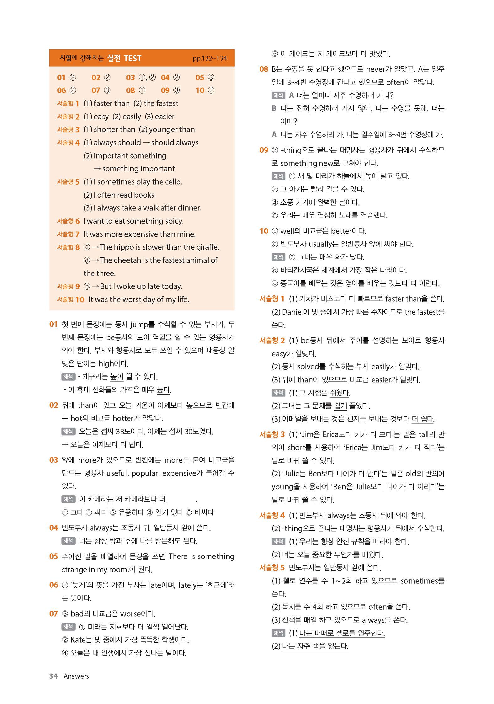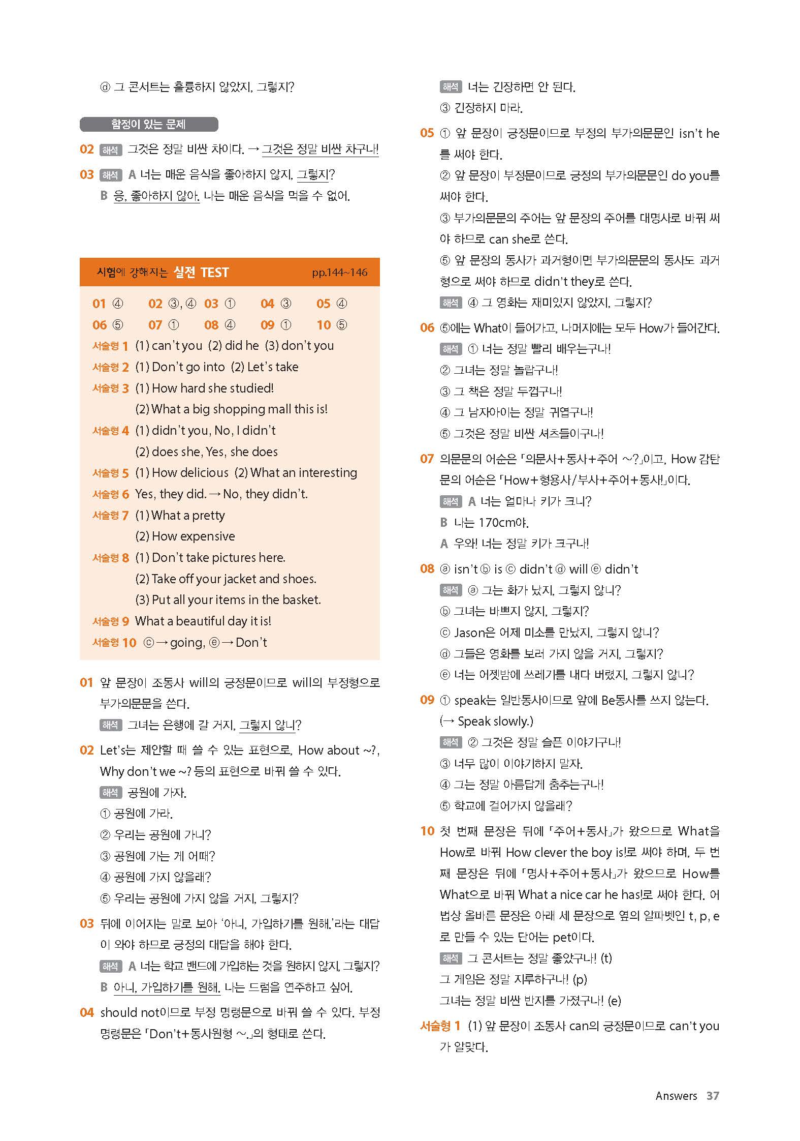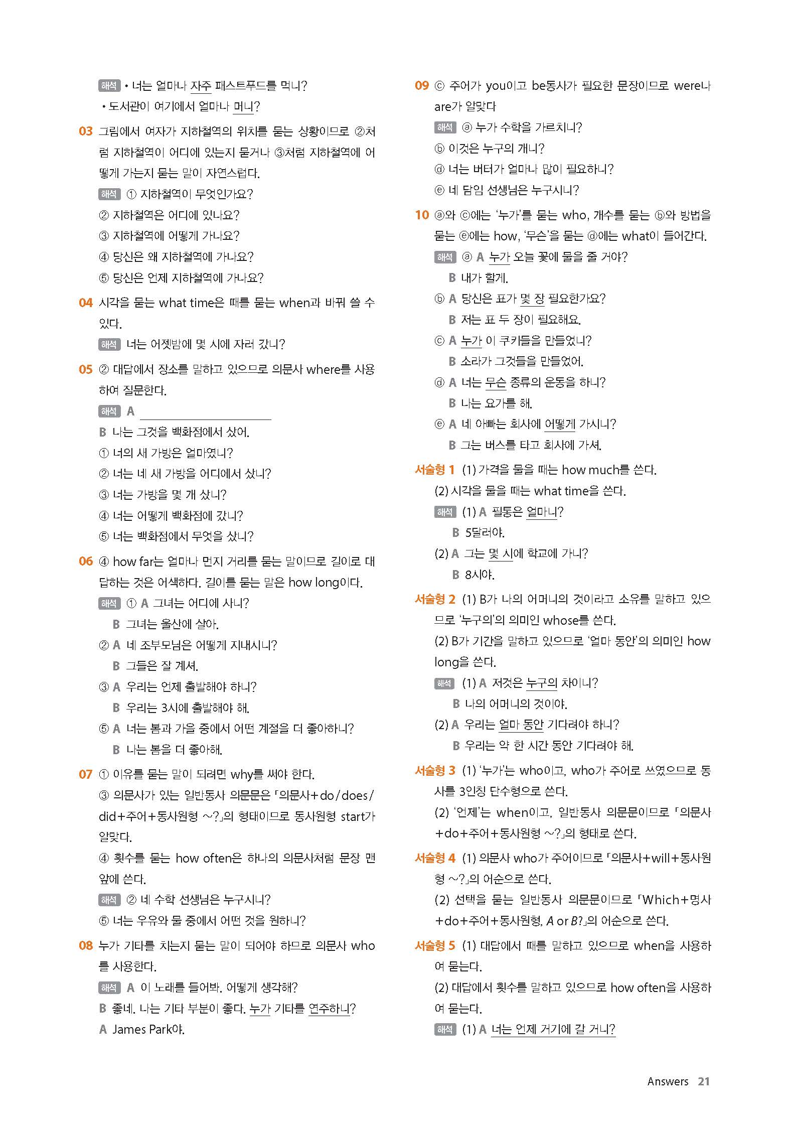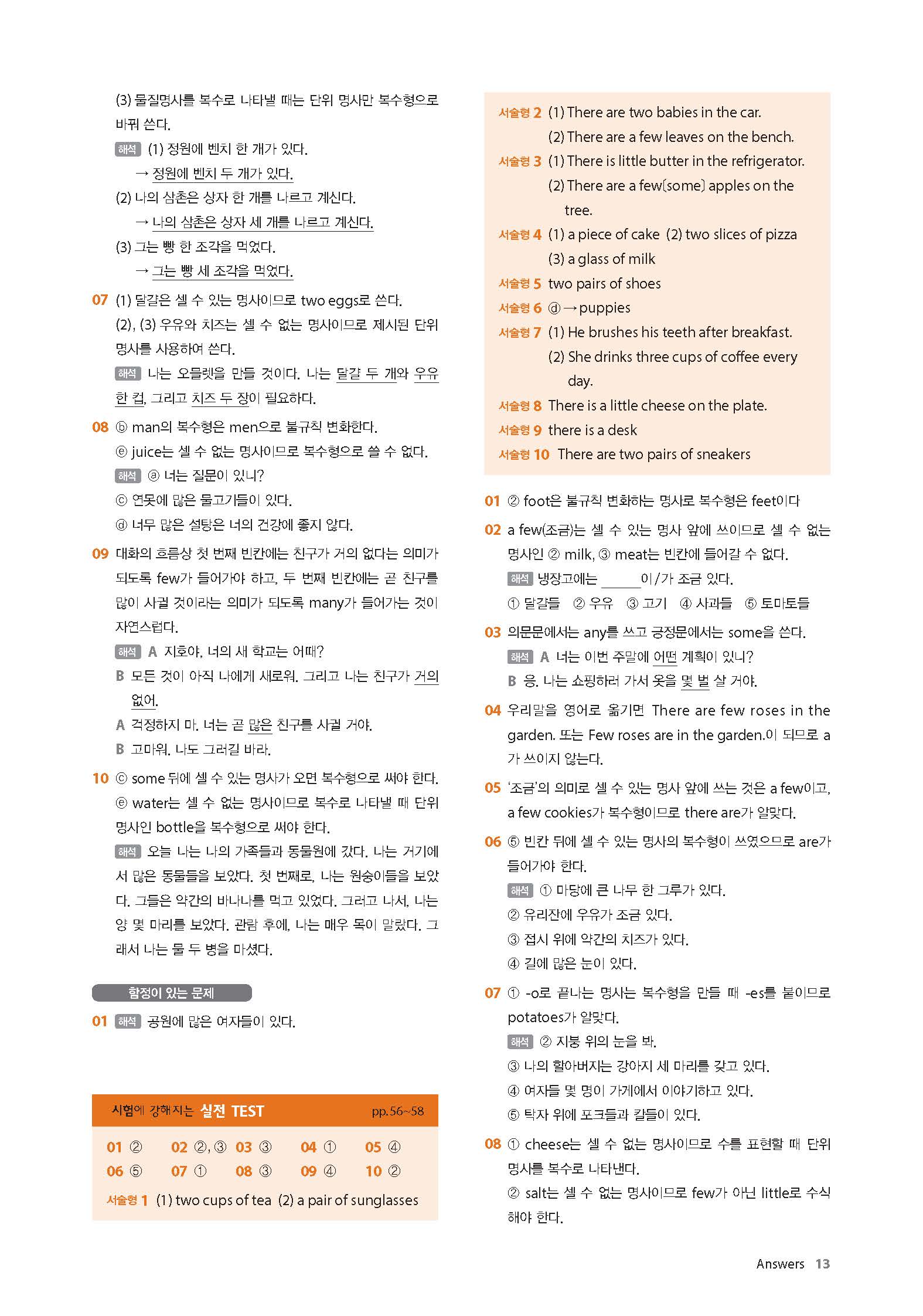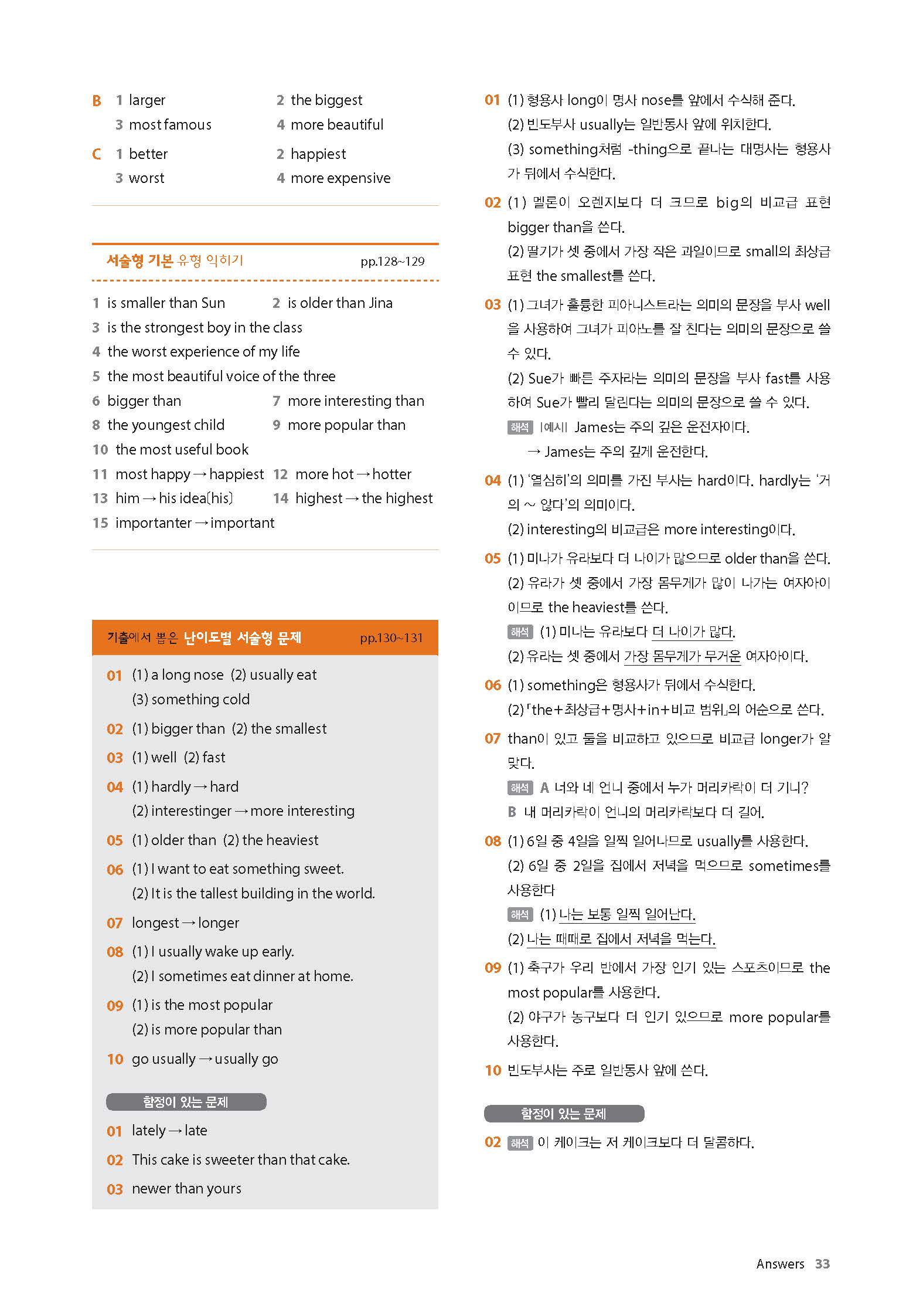 서술형에더강해지는 중학영문법 레벨1 답지 해설지 사진답지 빠른답지 모바일최적화