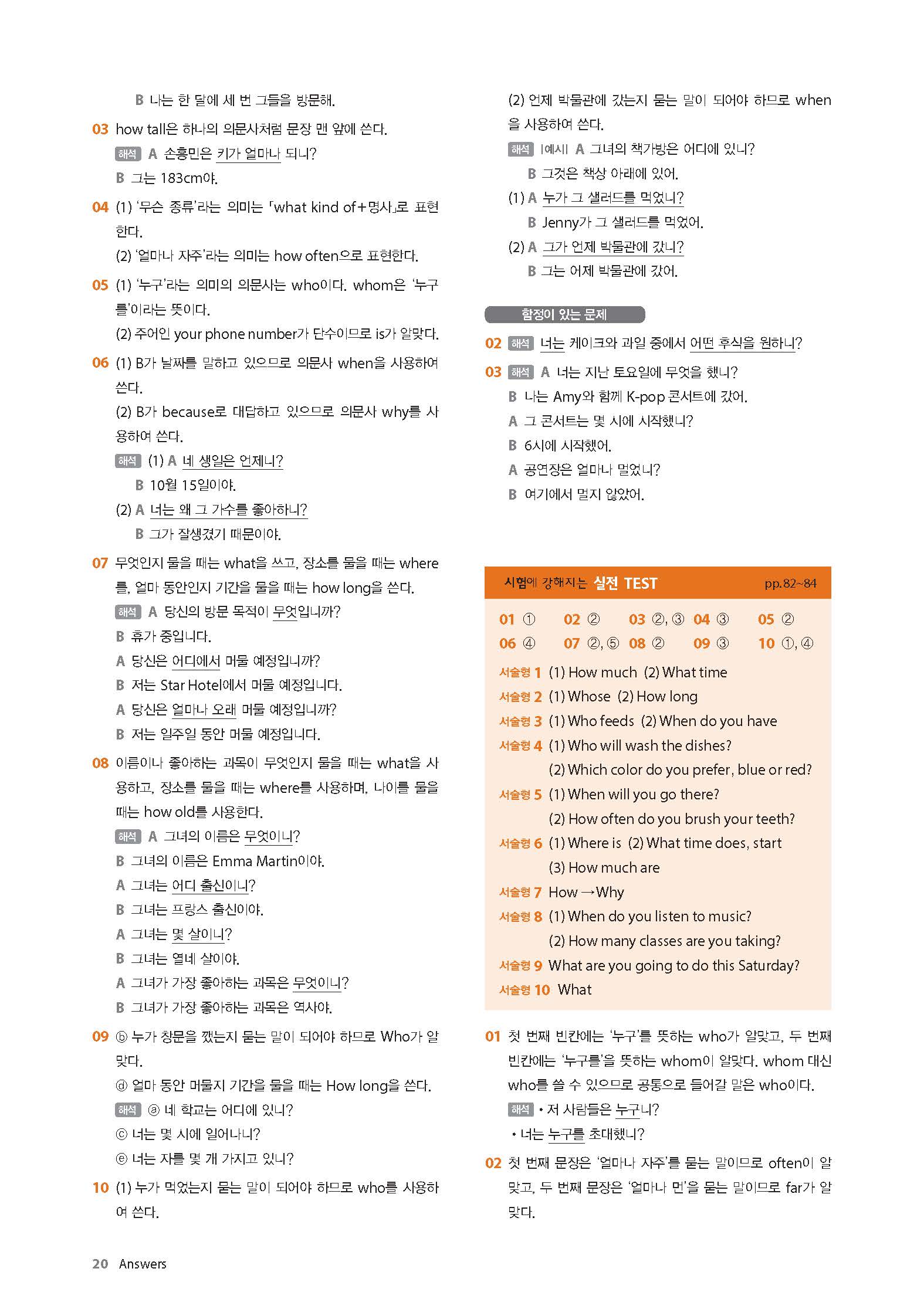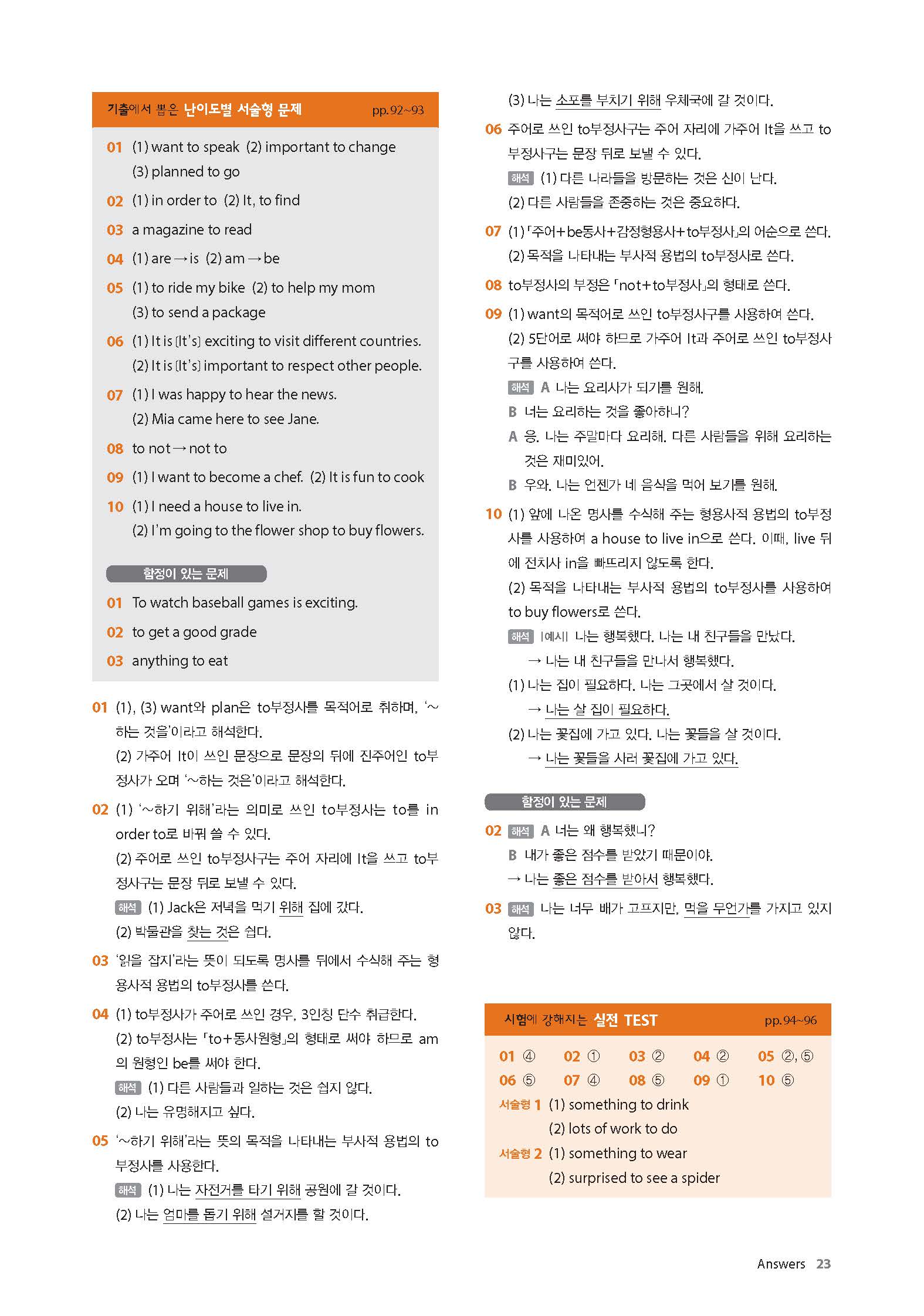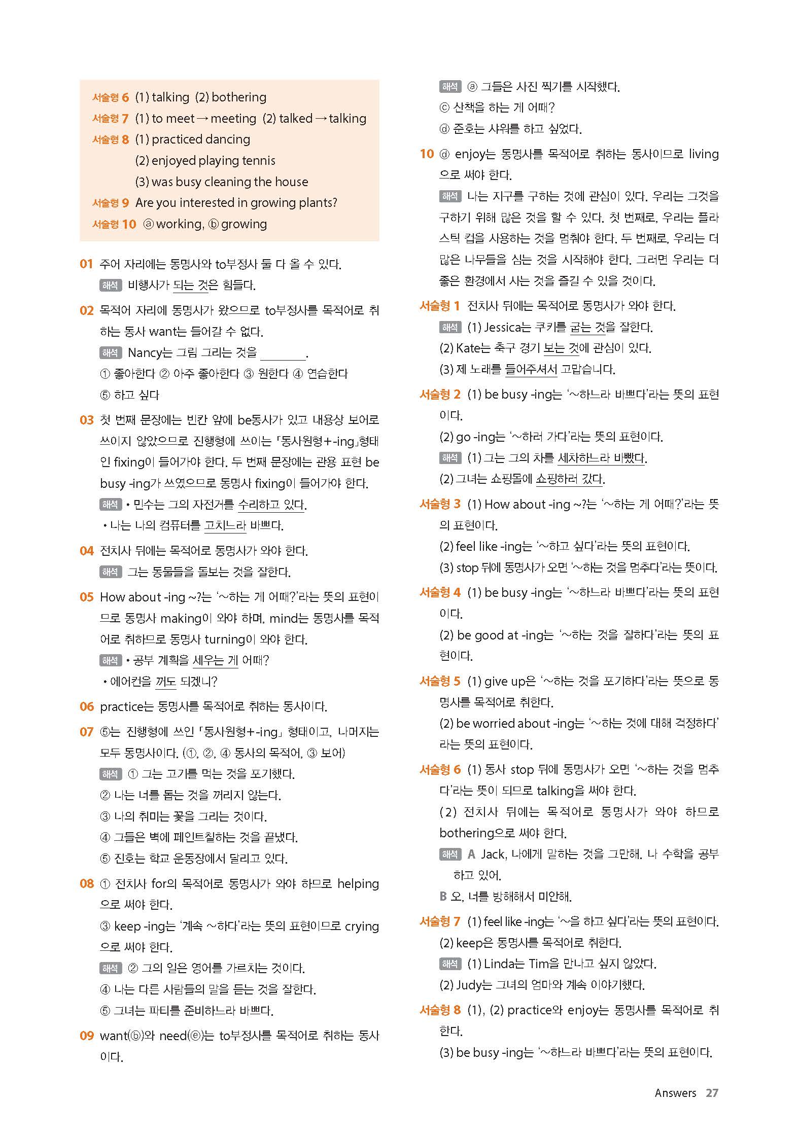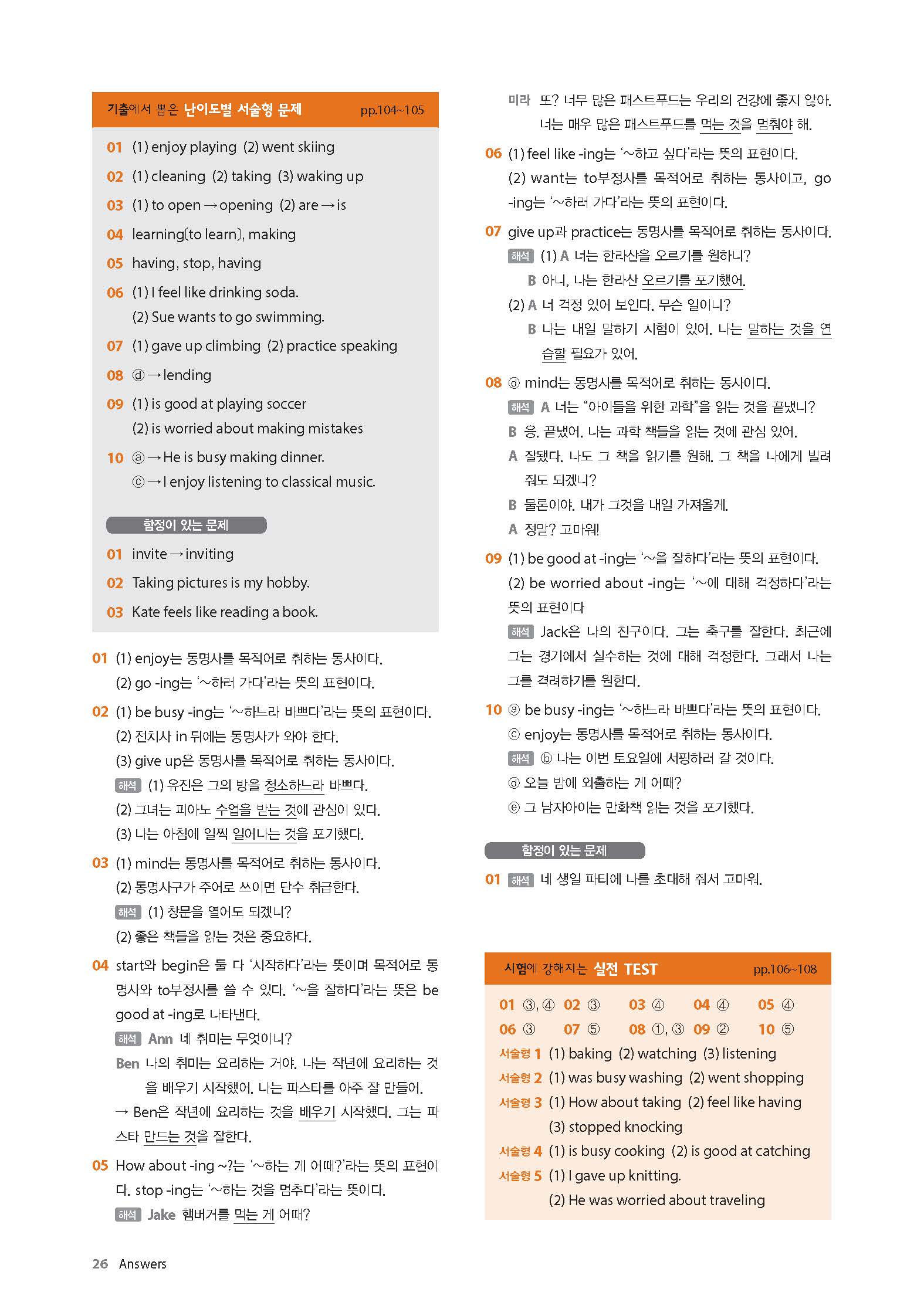 서술형에더강해지는 중학영문법 레벨1 답지 해설지 사진답지 빠른답지 모바일최적화