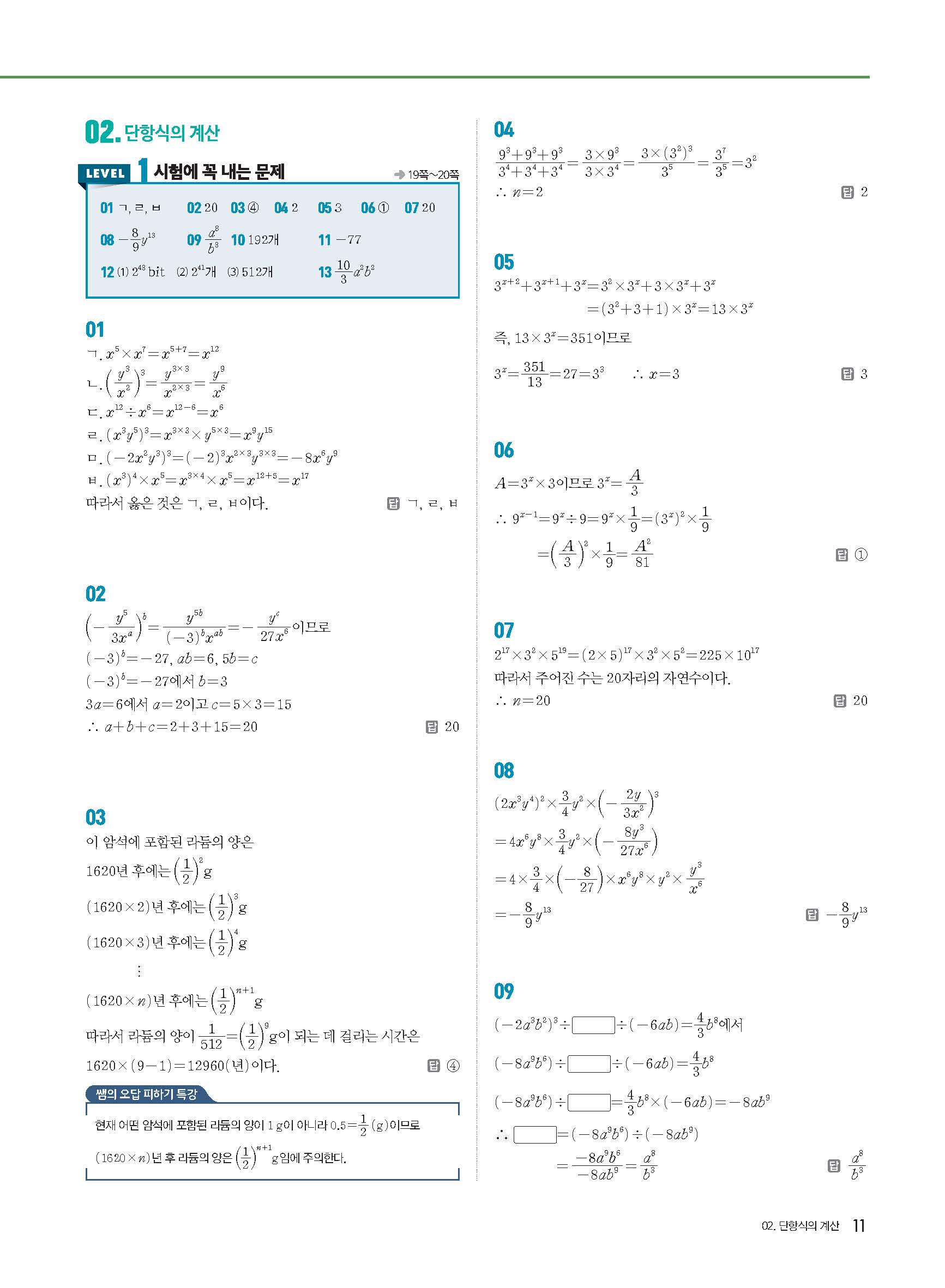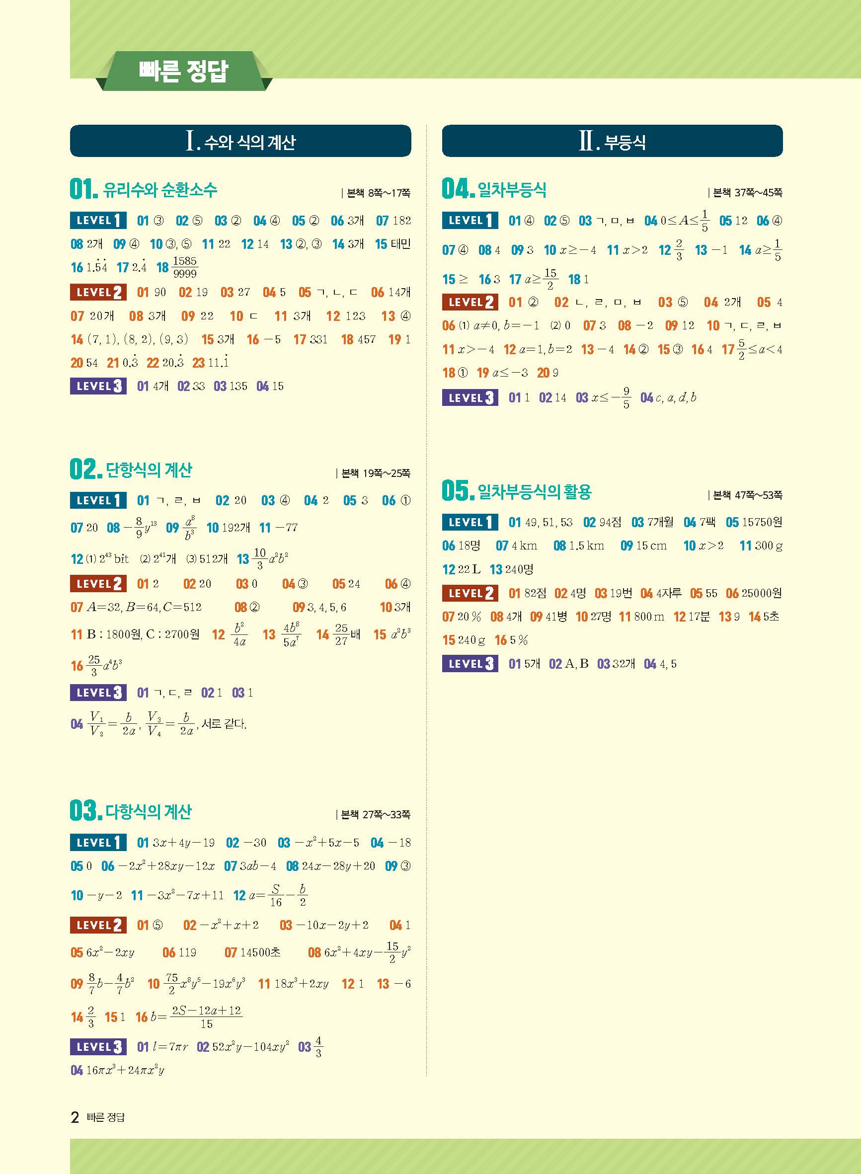 절대등급 중학수학 2-1 중2상 답지 해설지 사진답지 빠른답지 모바일최적화