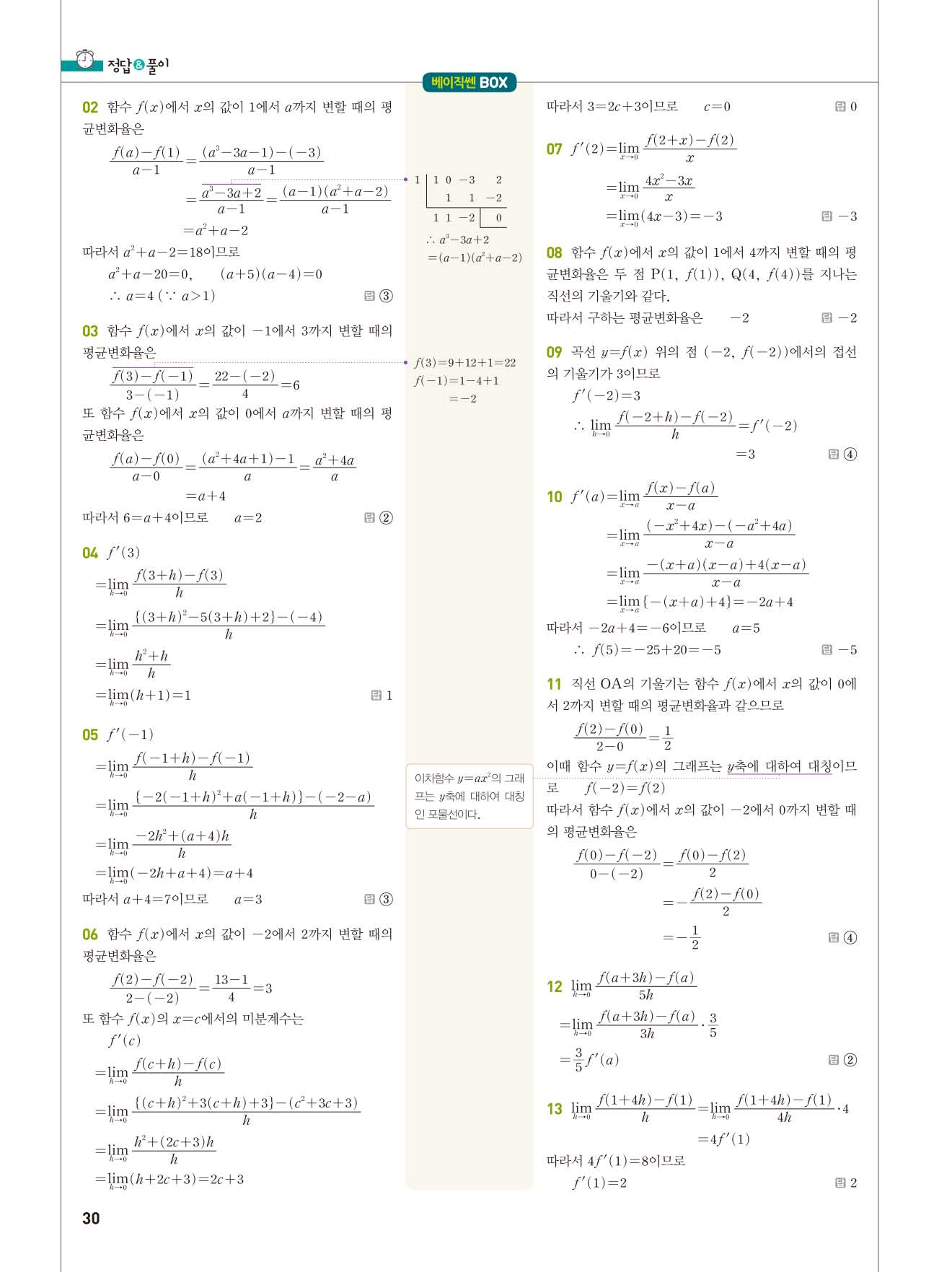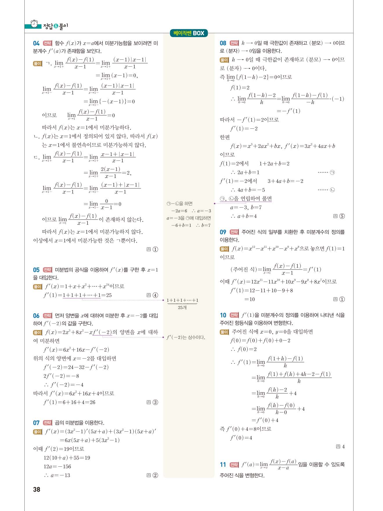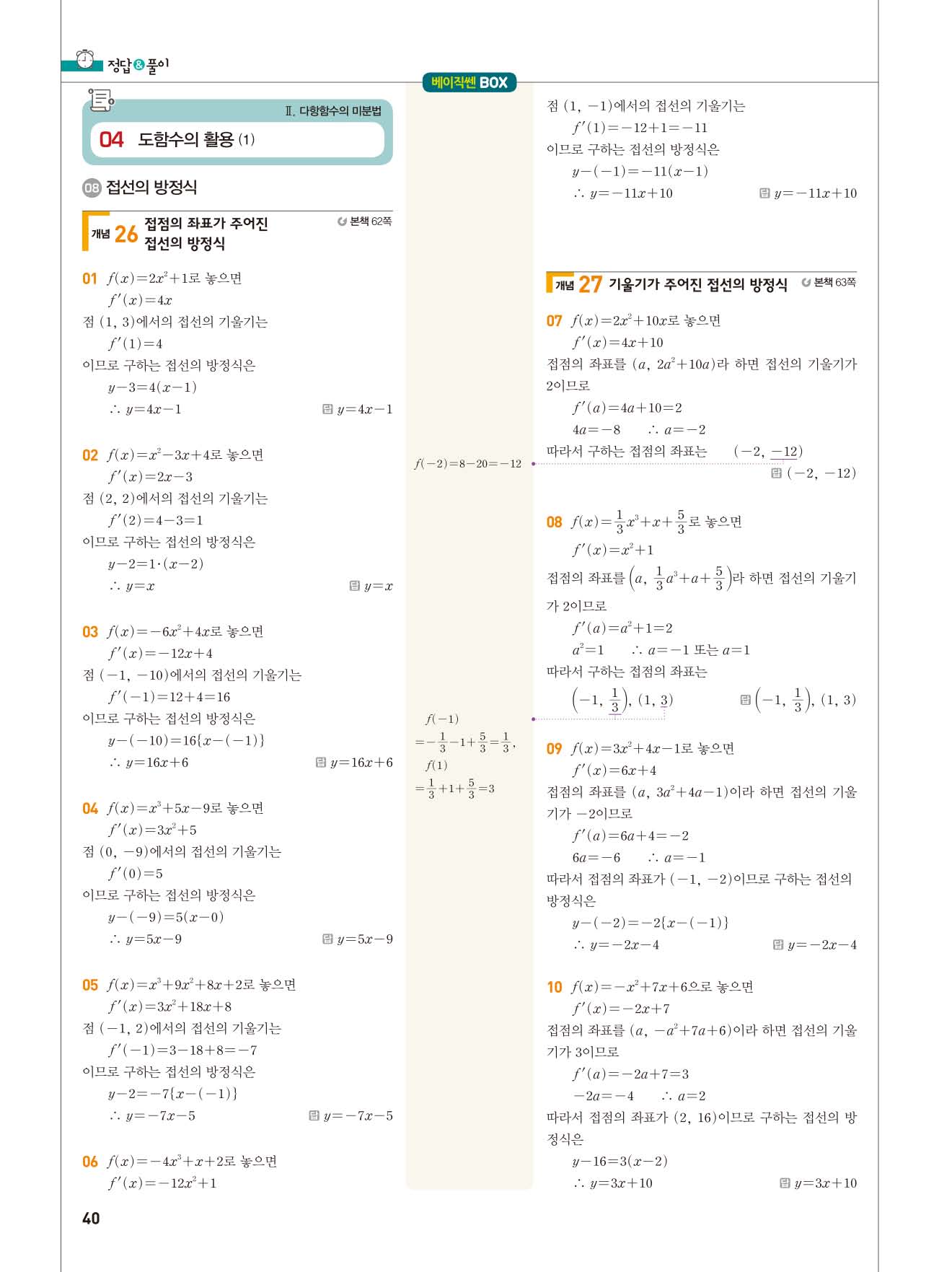 베이직쎈 고등수학2 답지 해설지 사진답지 빠른답지 모바일최적화