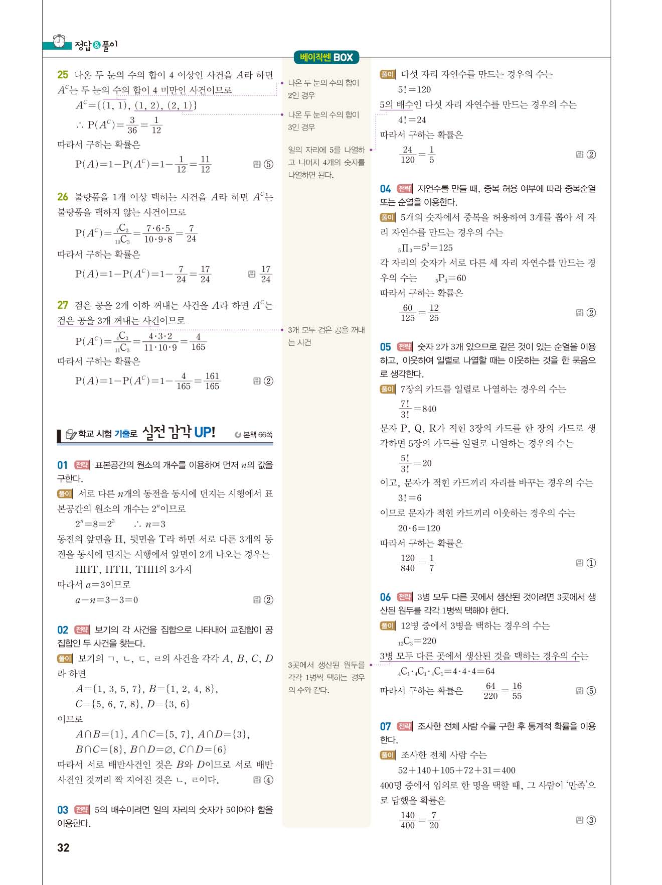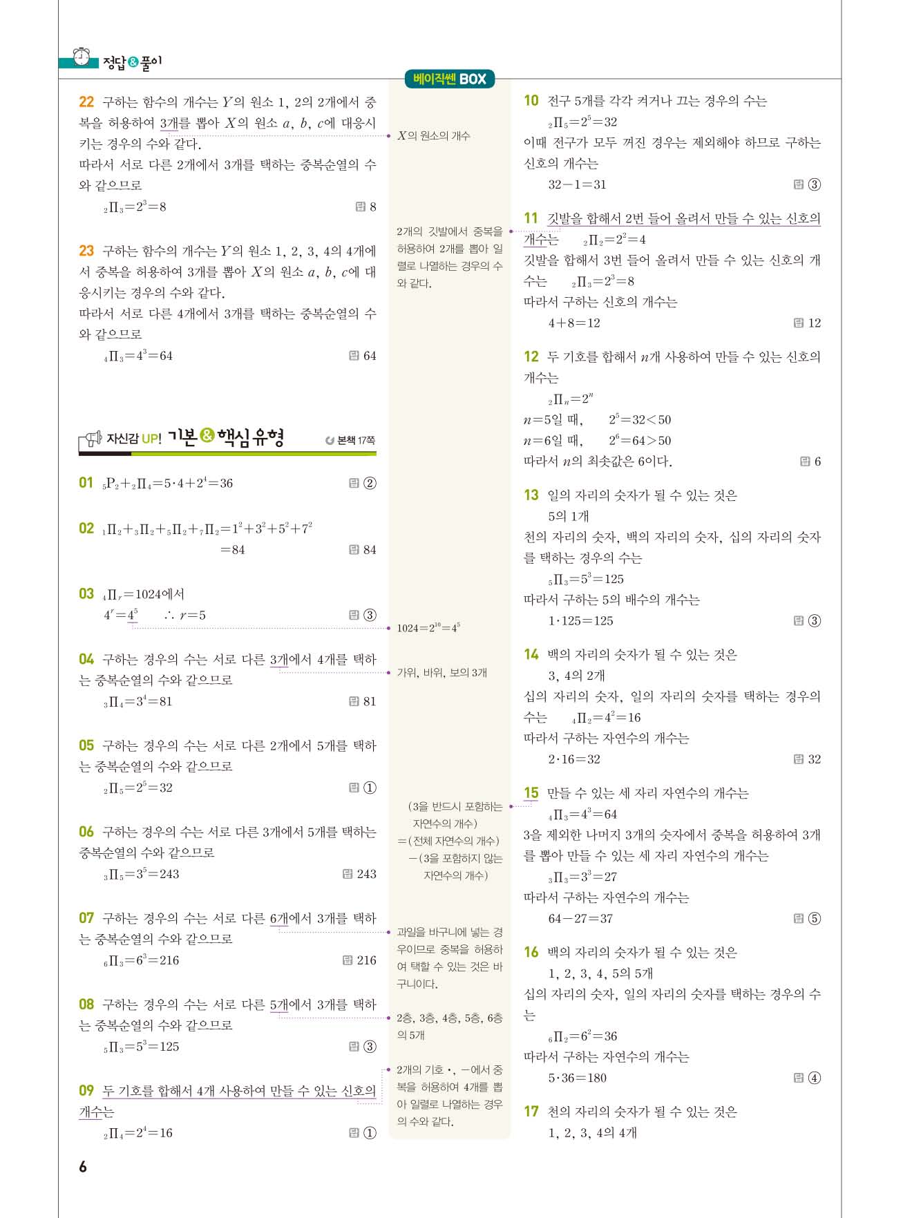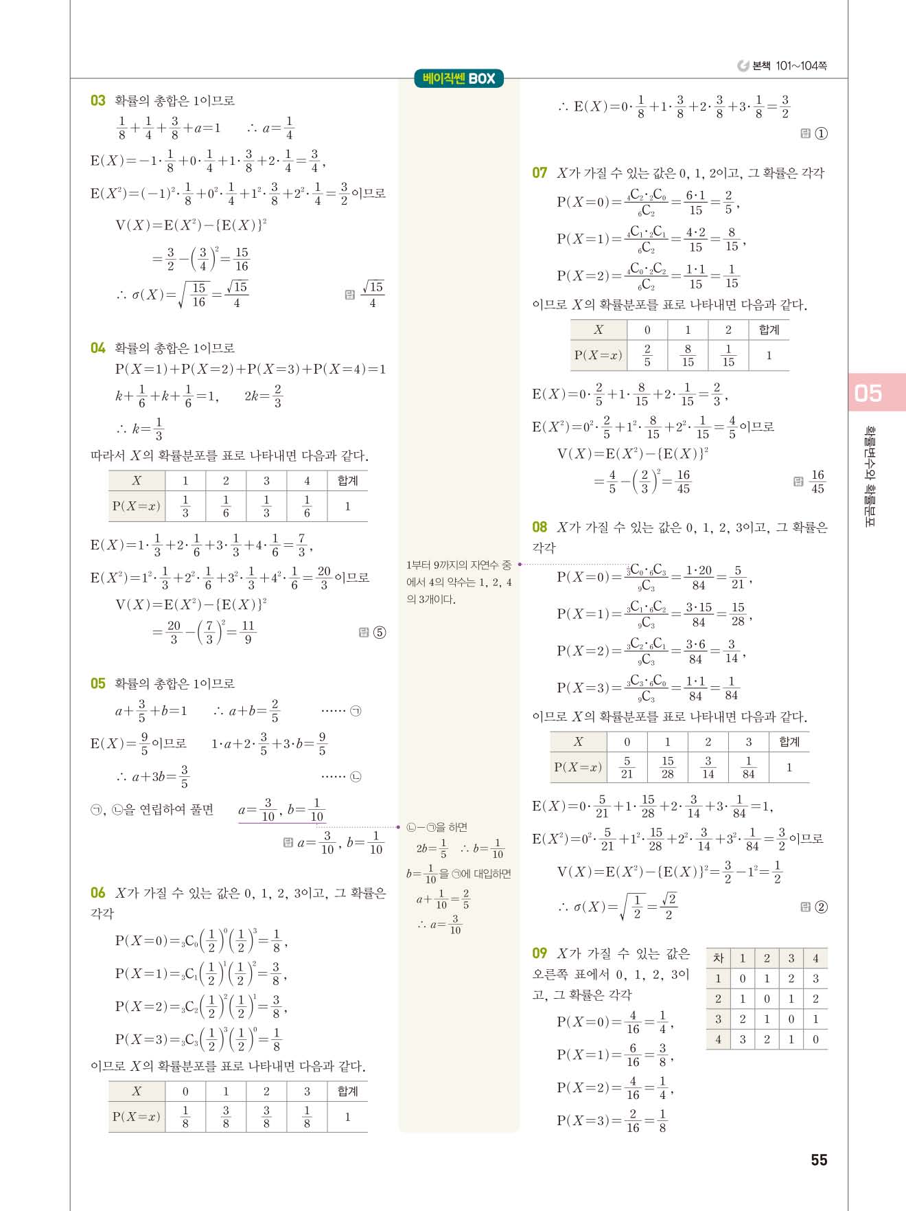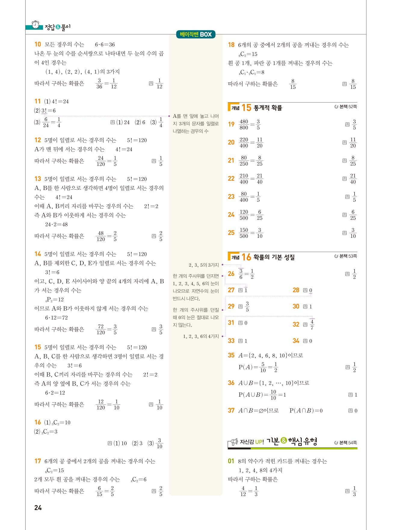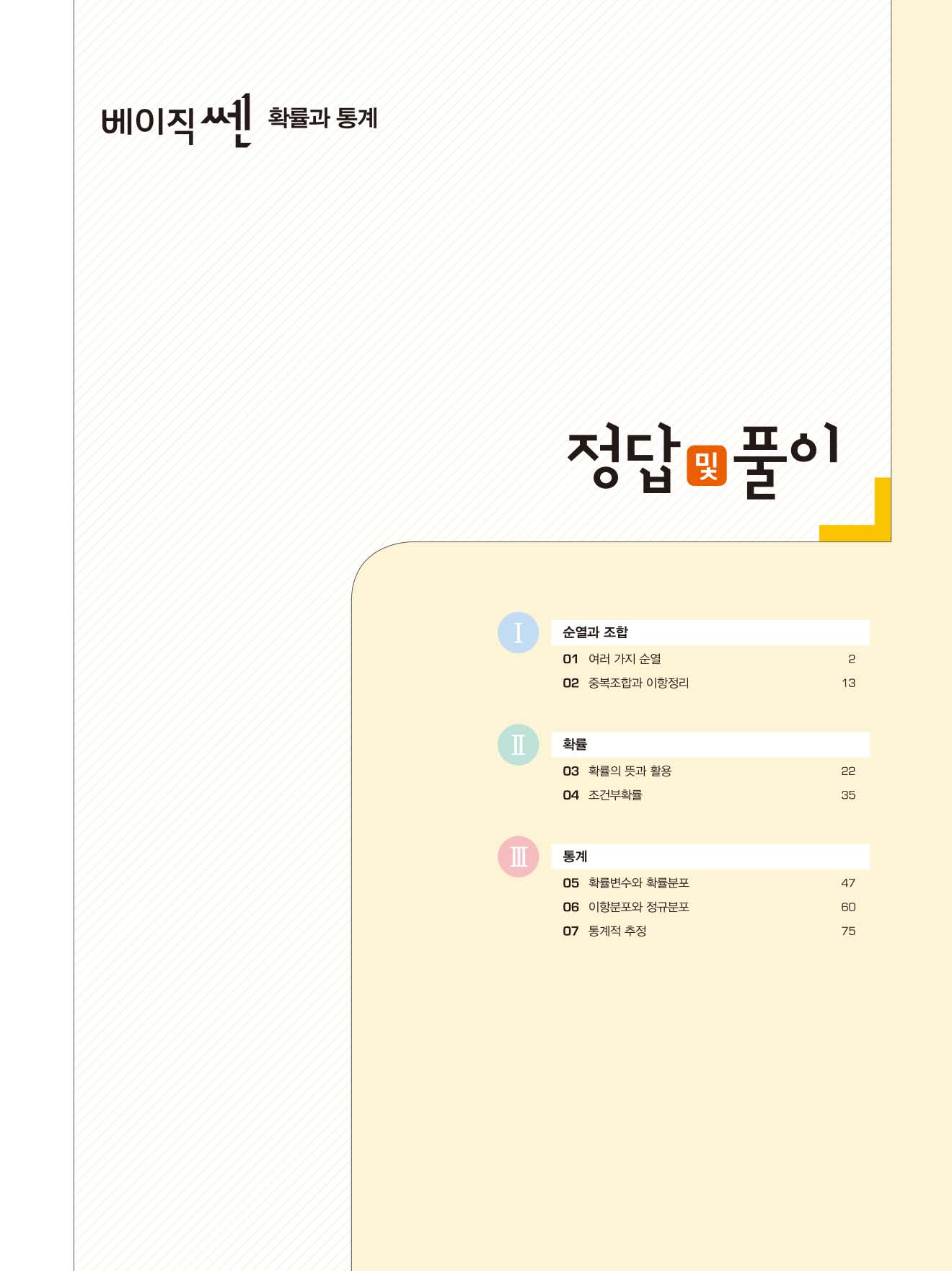 베이직쎈 확률과통계 답지 해설지 사진답지 빠른답지 모바일최적화