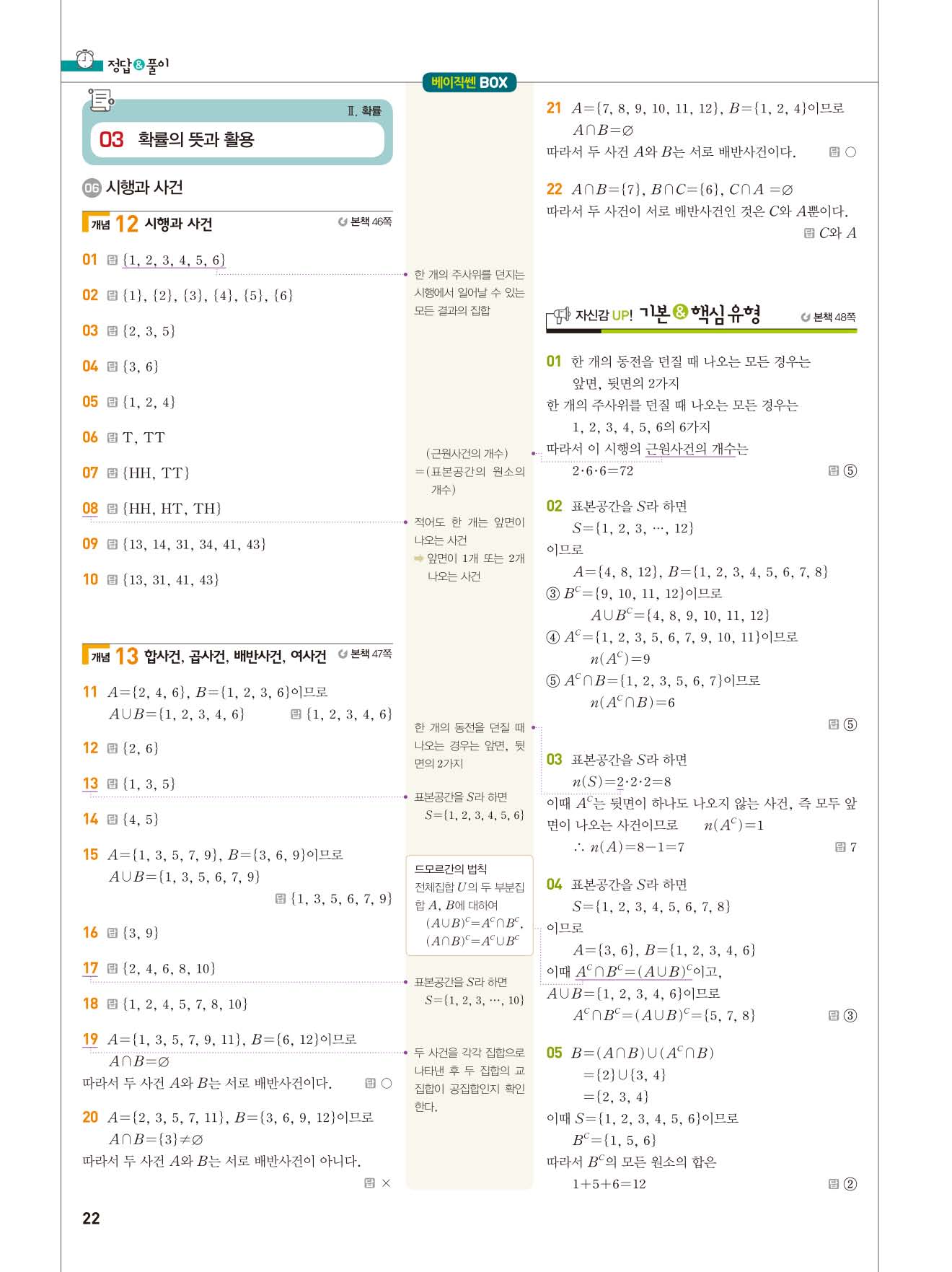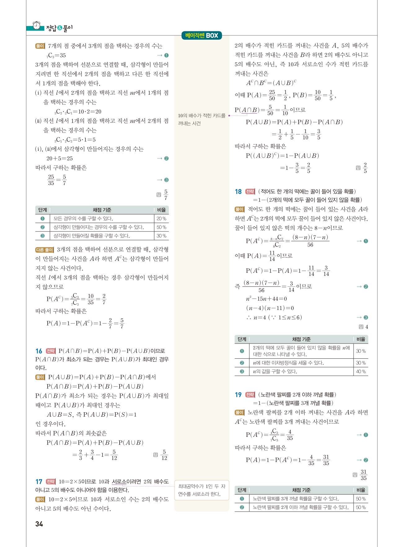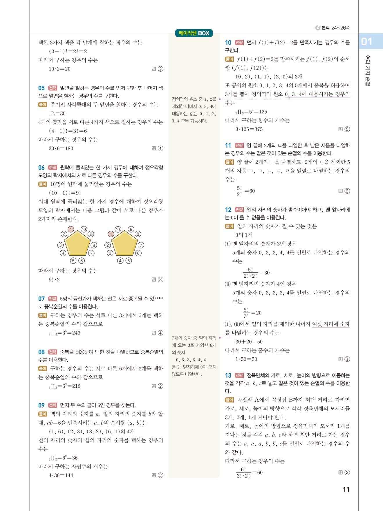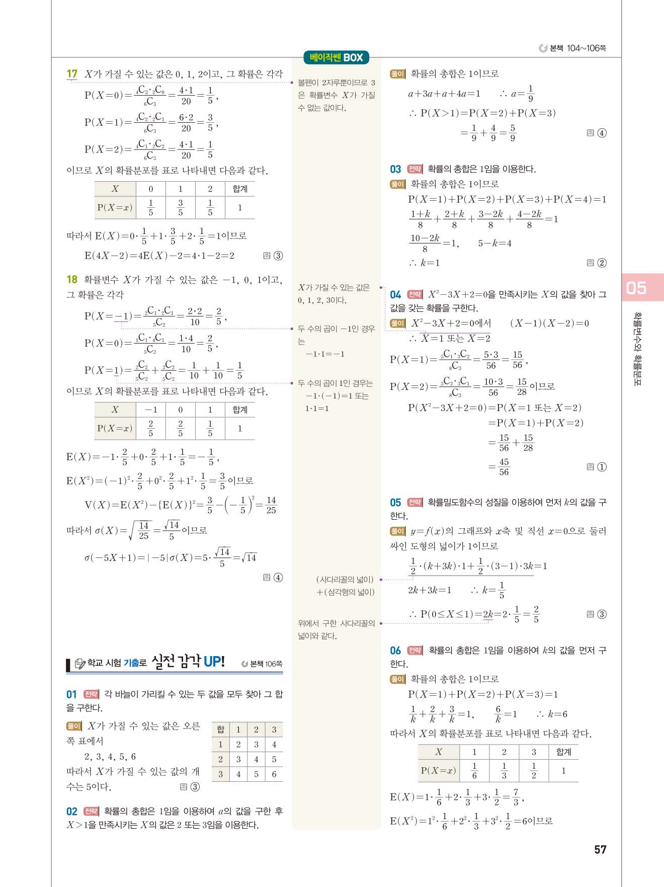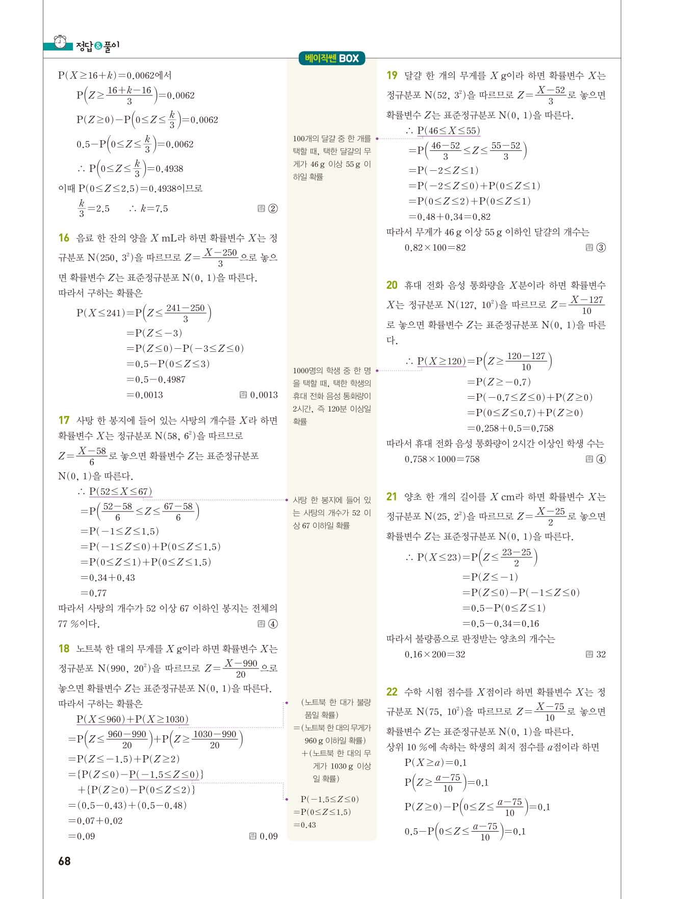 베이직쎈 확률과통계 답지 해설지 사진답지 빠른답지 모바일최적화