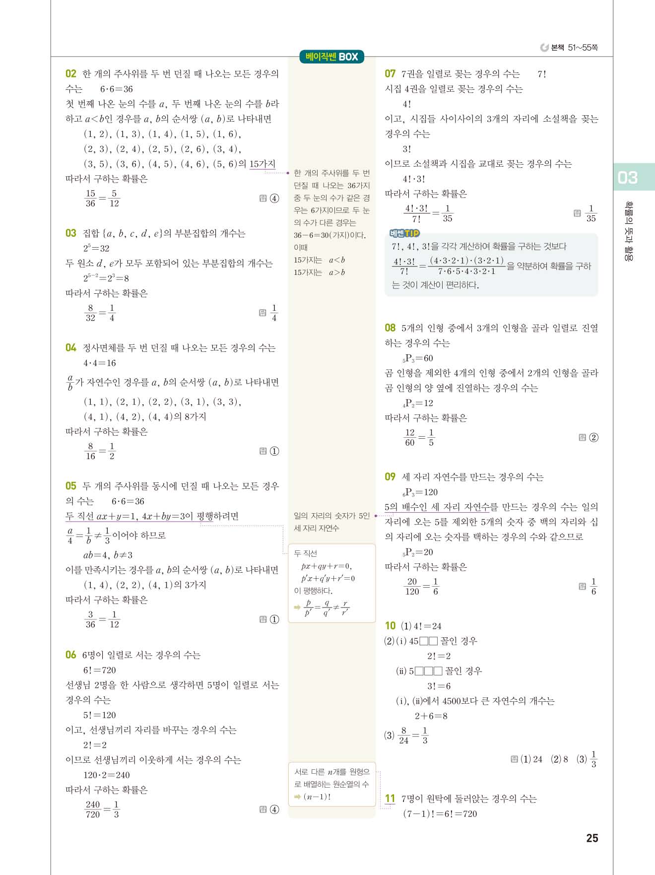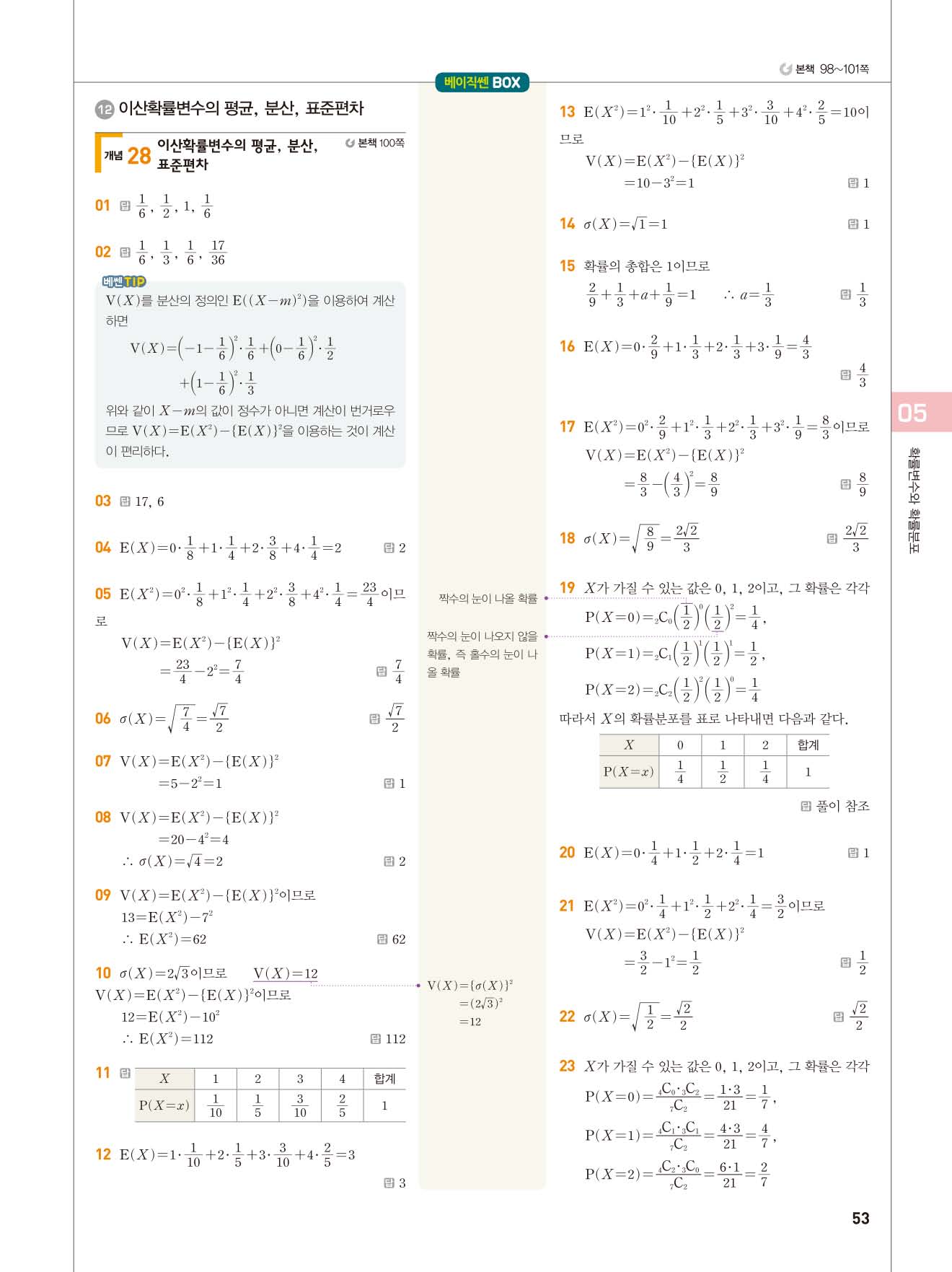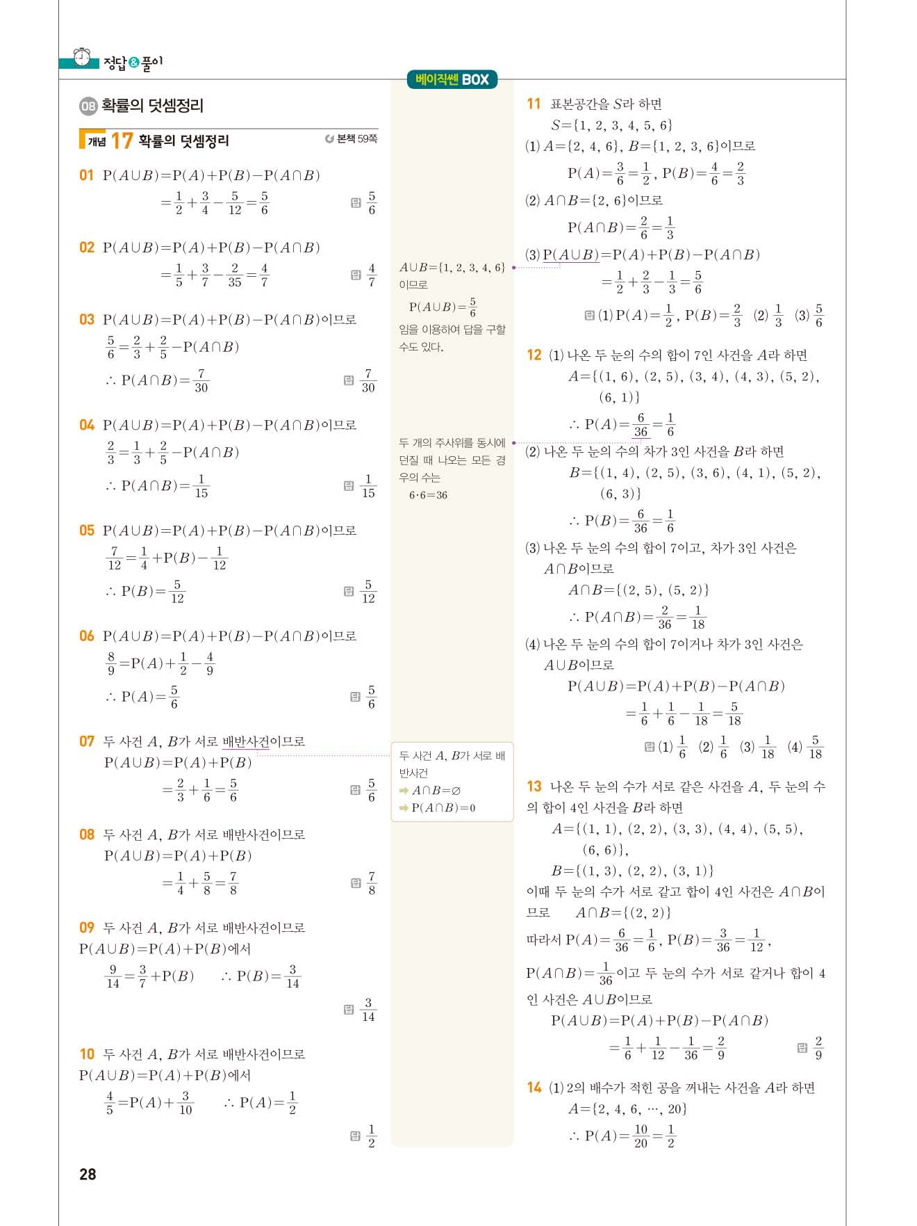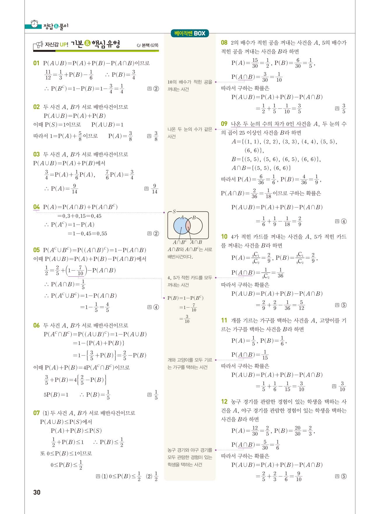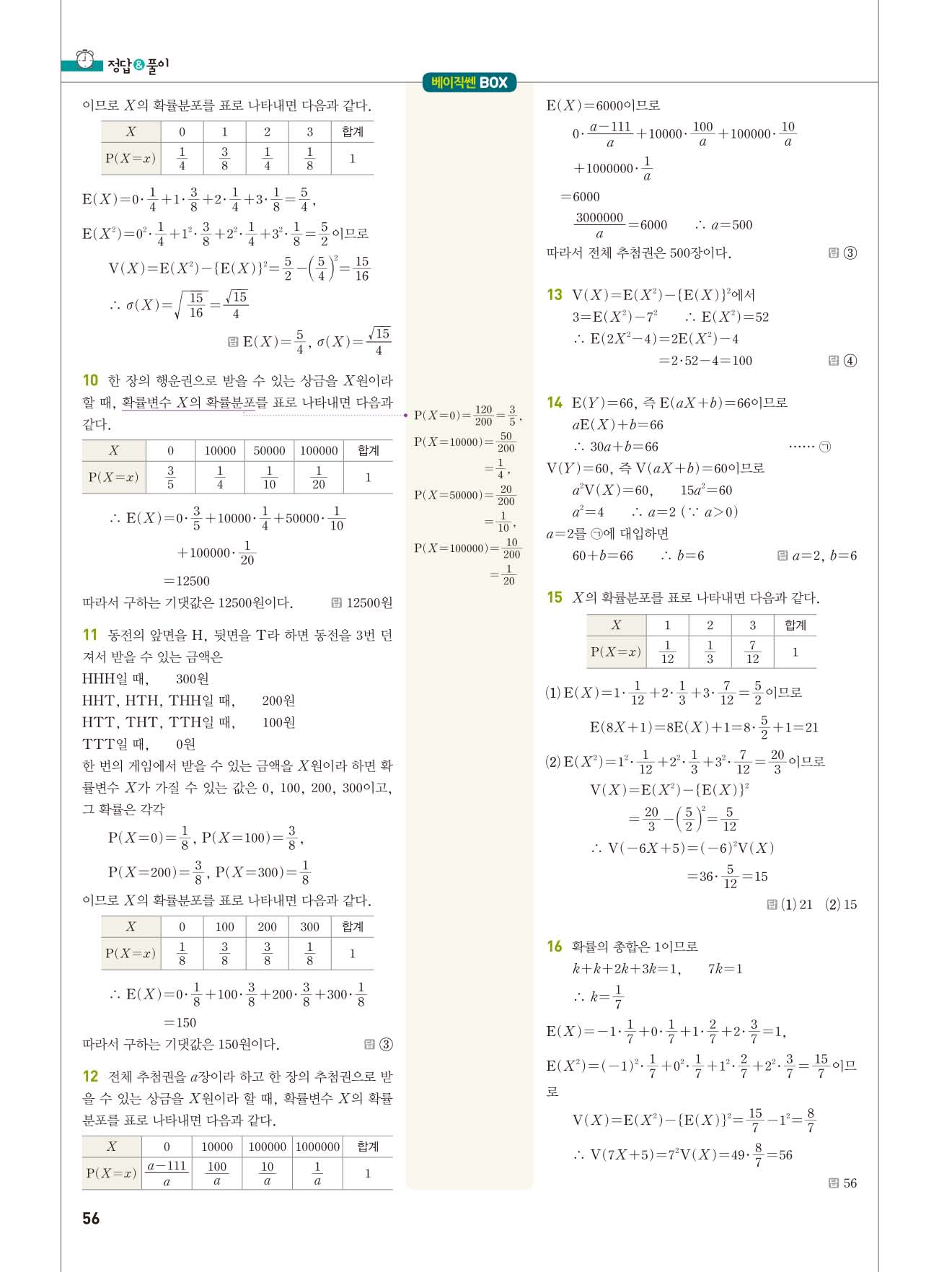 베이직쎈 확률과통계 답지 해설지 사진답지 빠른답지 모바일최적화