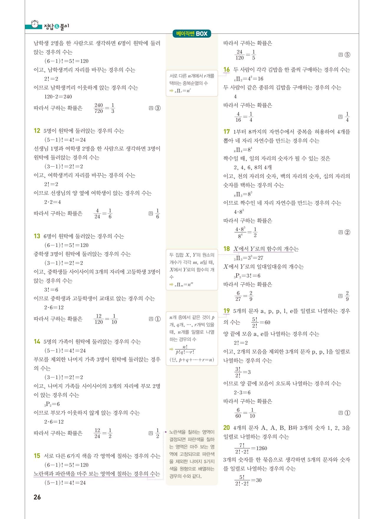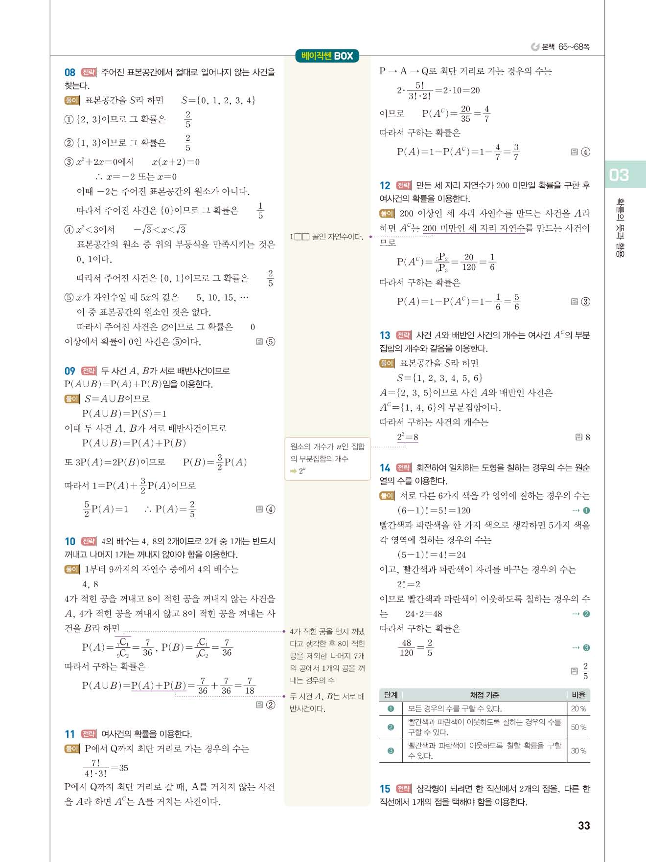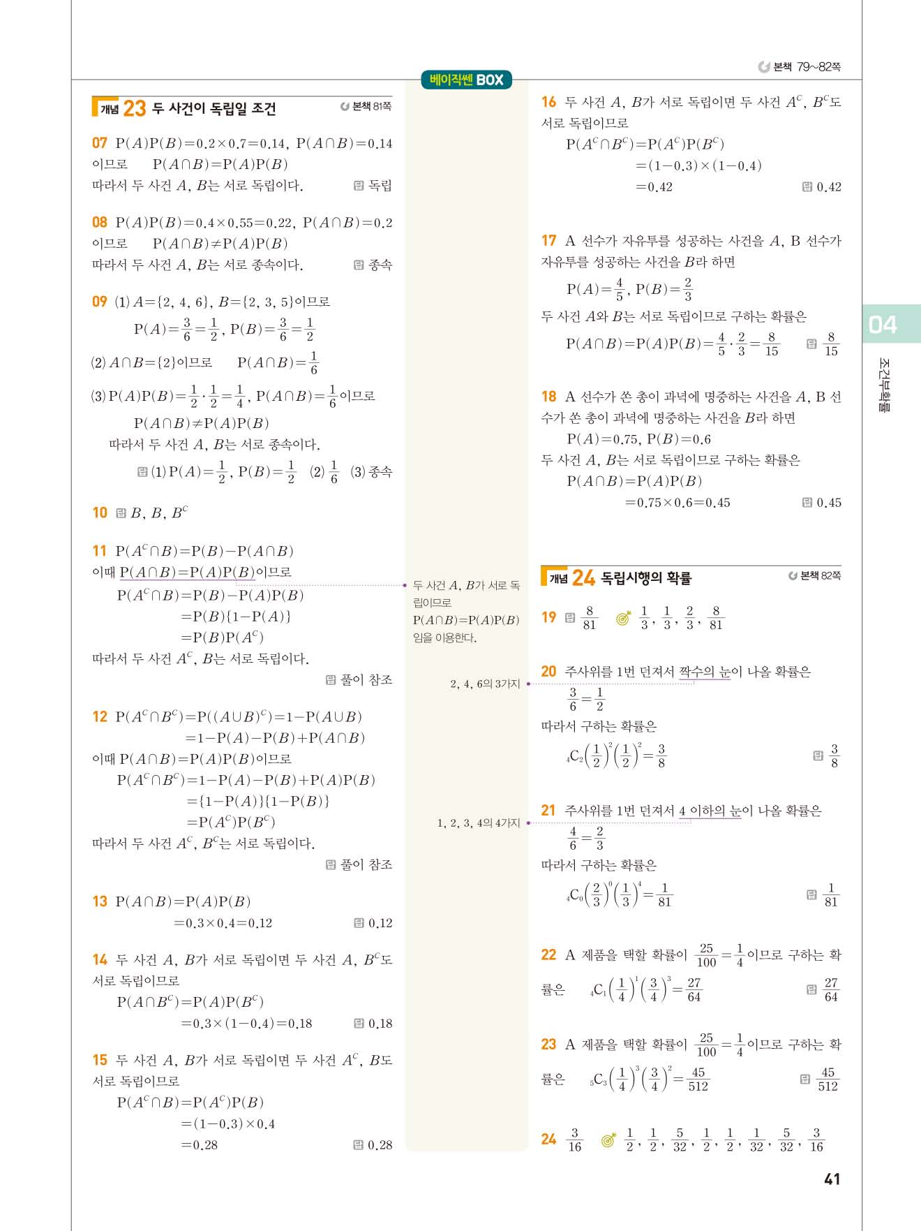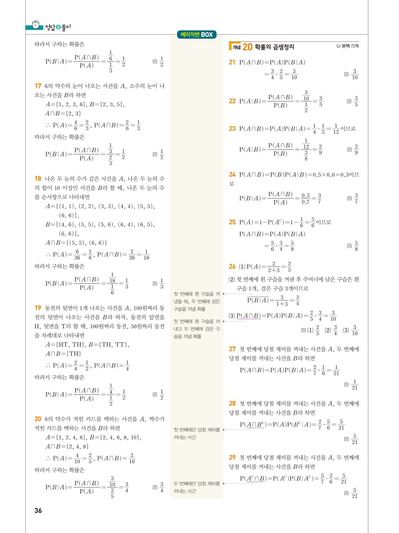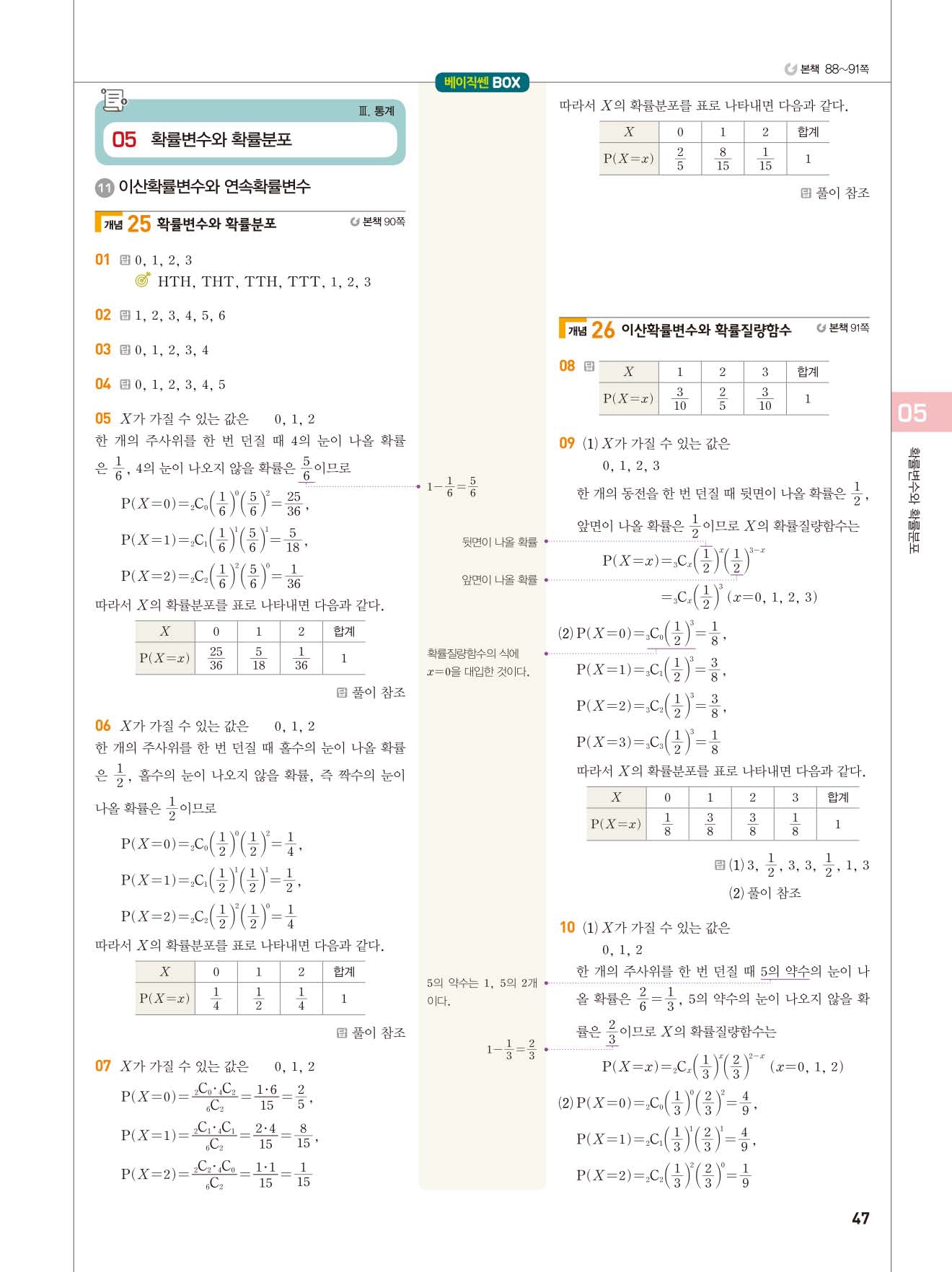 베이직쎈 확률과통계 답지 해설지 사진답지 빠른답지 모바일최적화