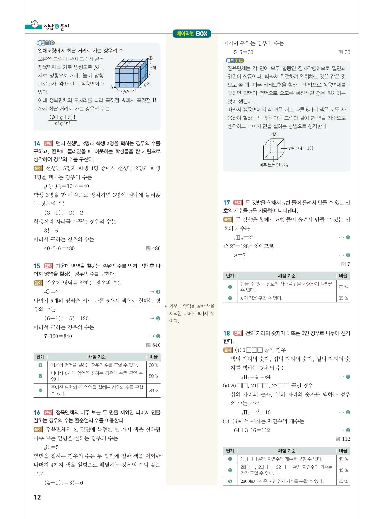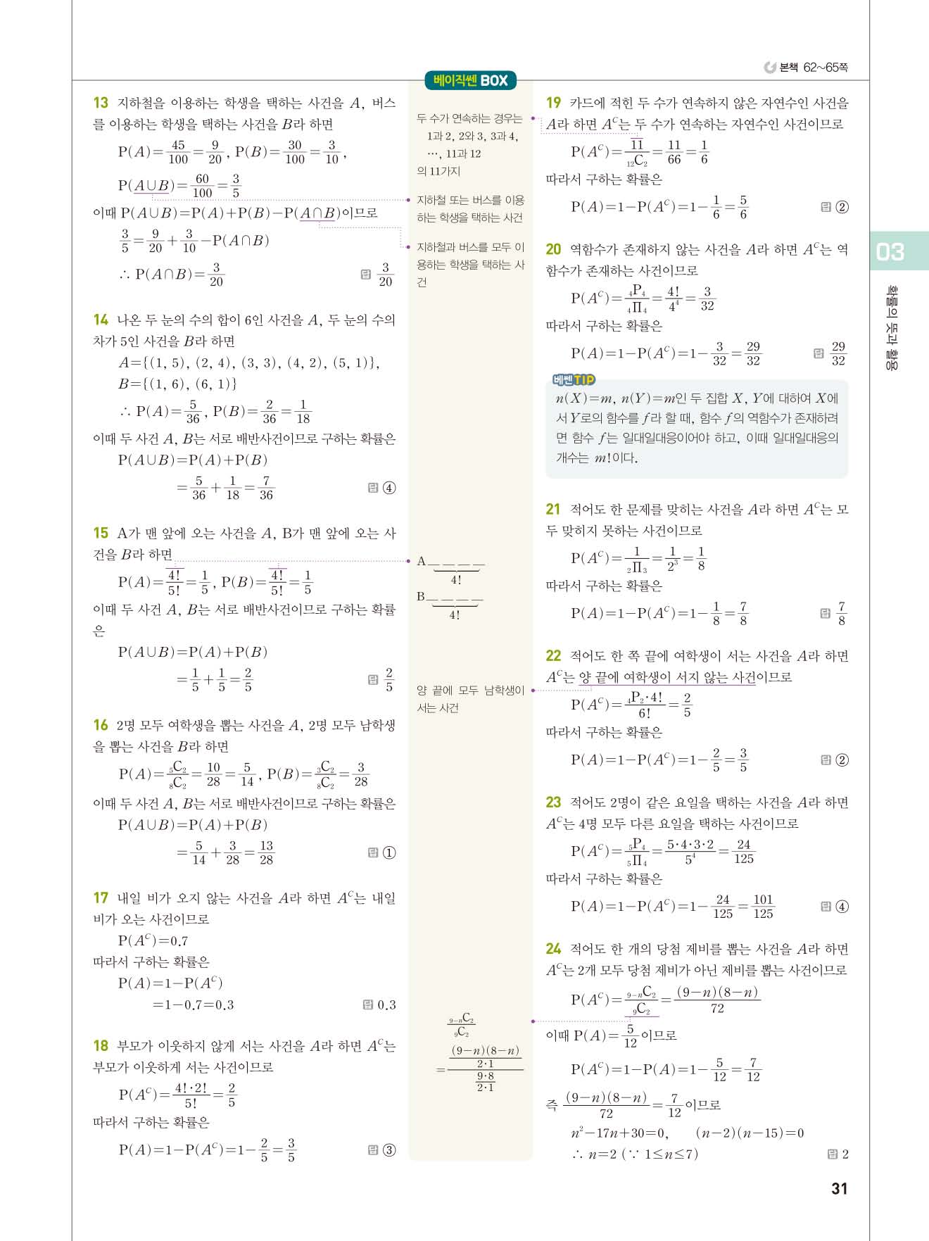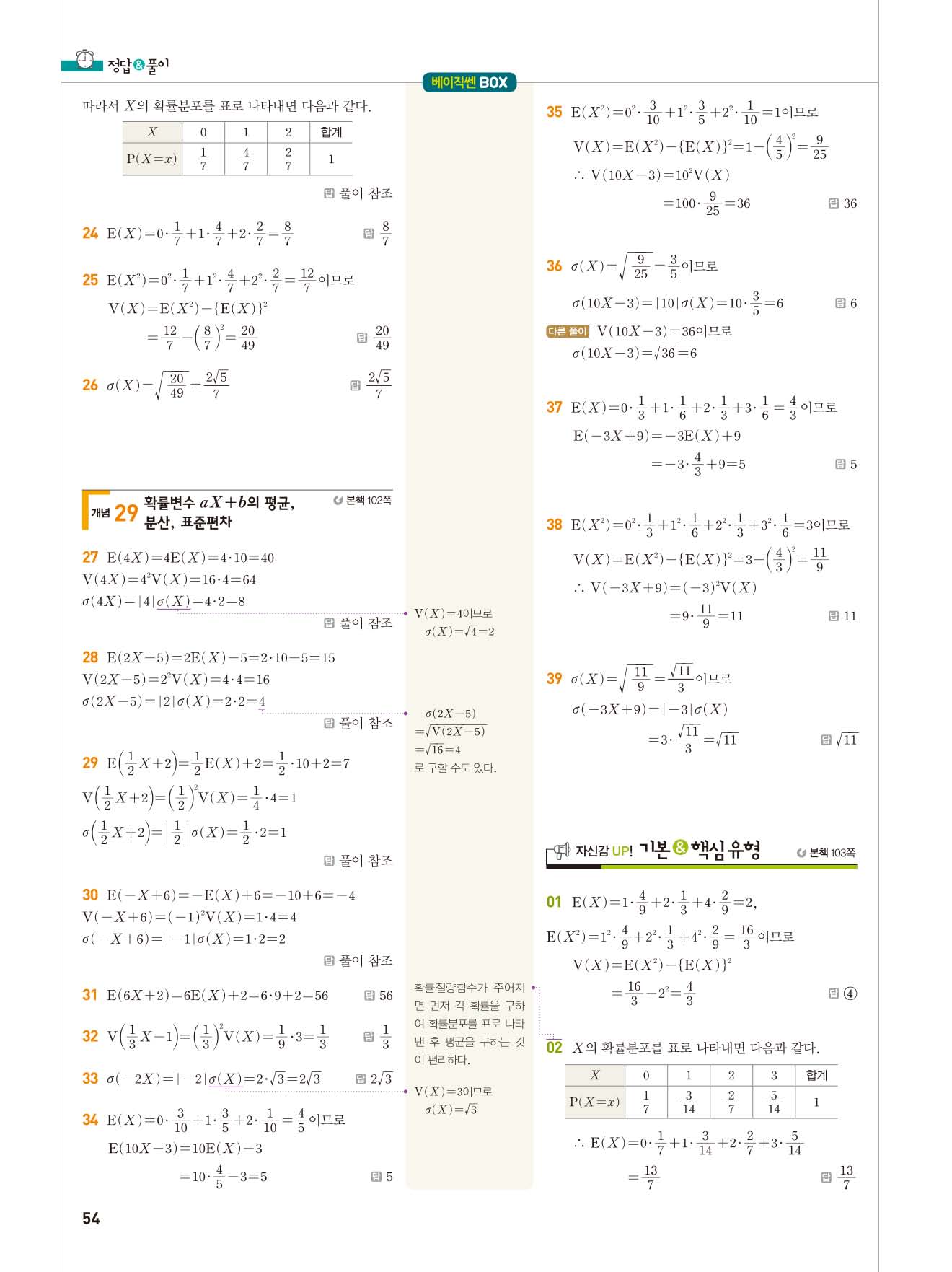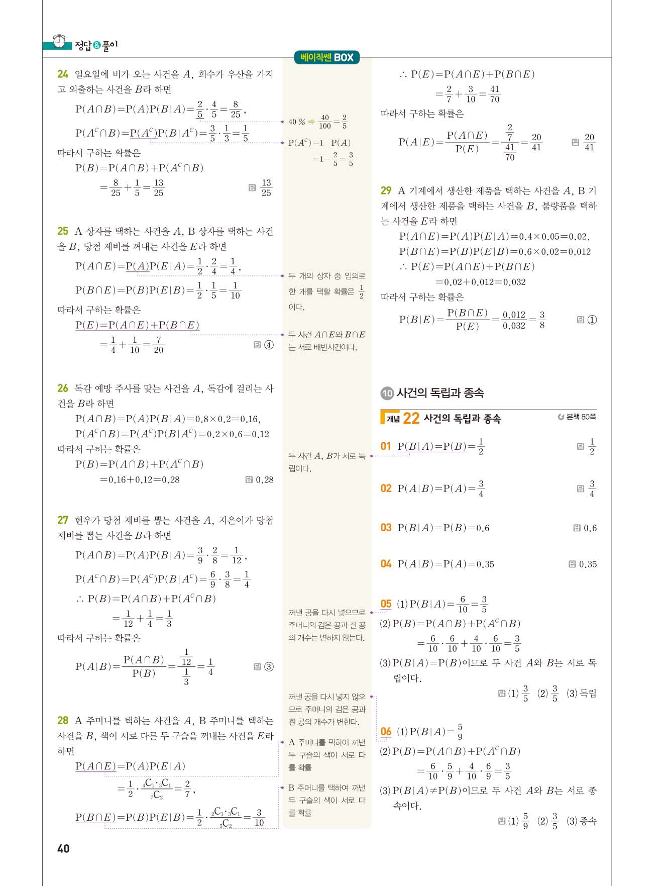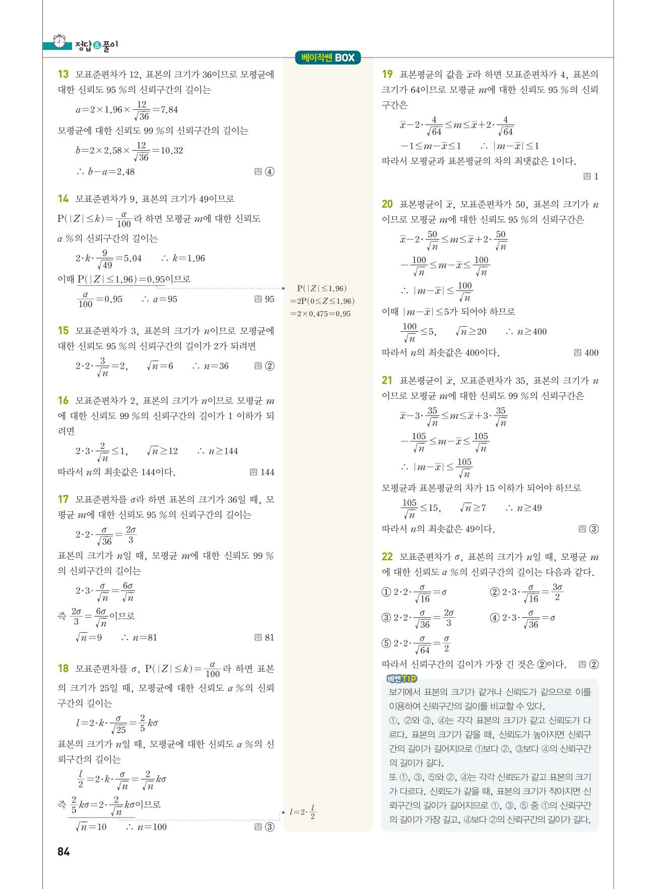 베이직쎈 확률과통계 답지 해설지 사진답지 빠른답지 모바일최적화