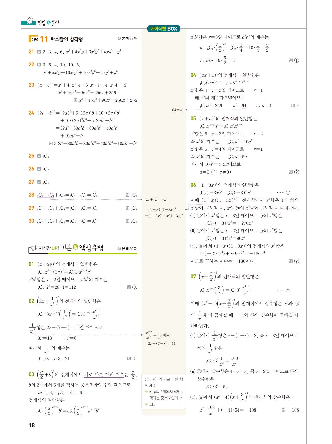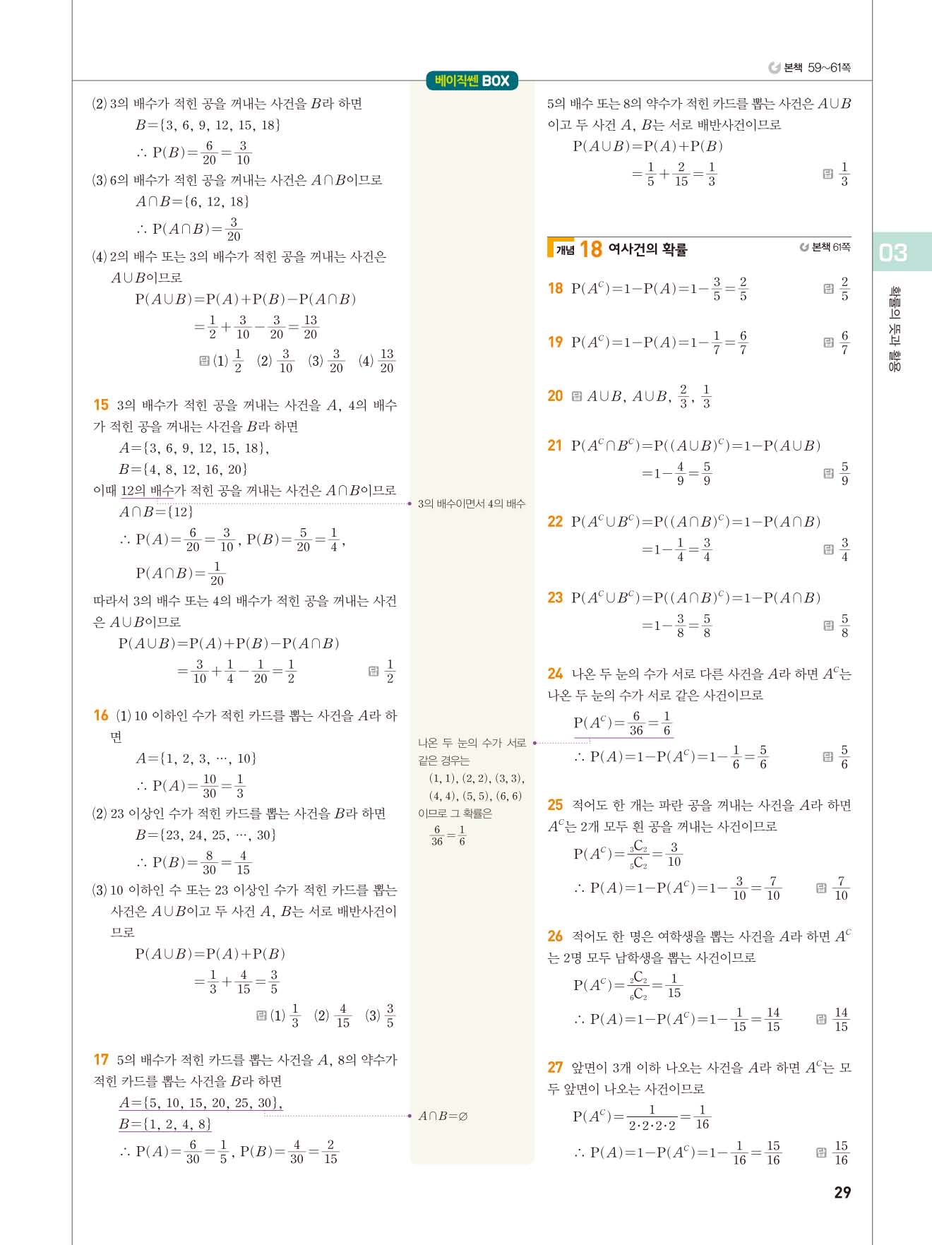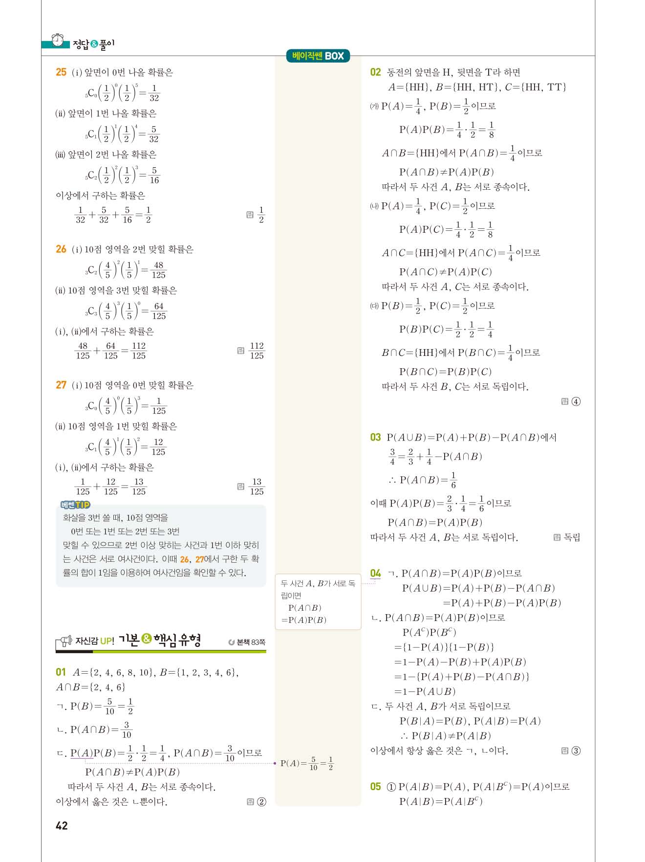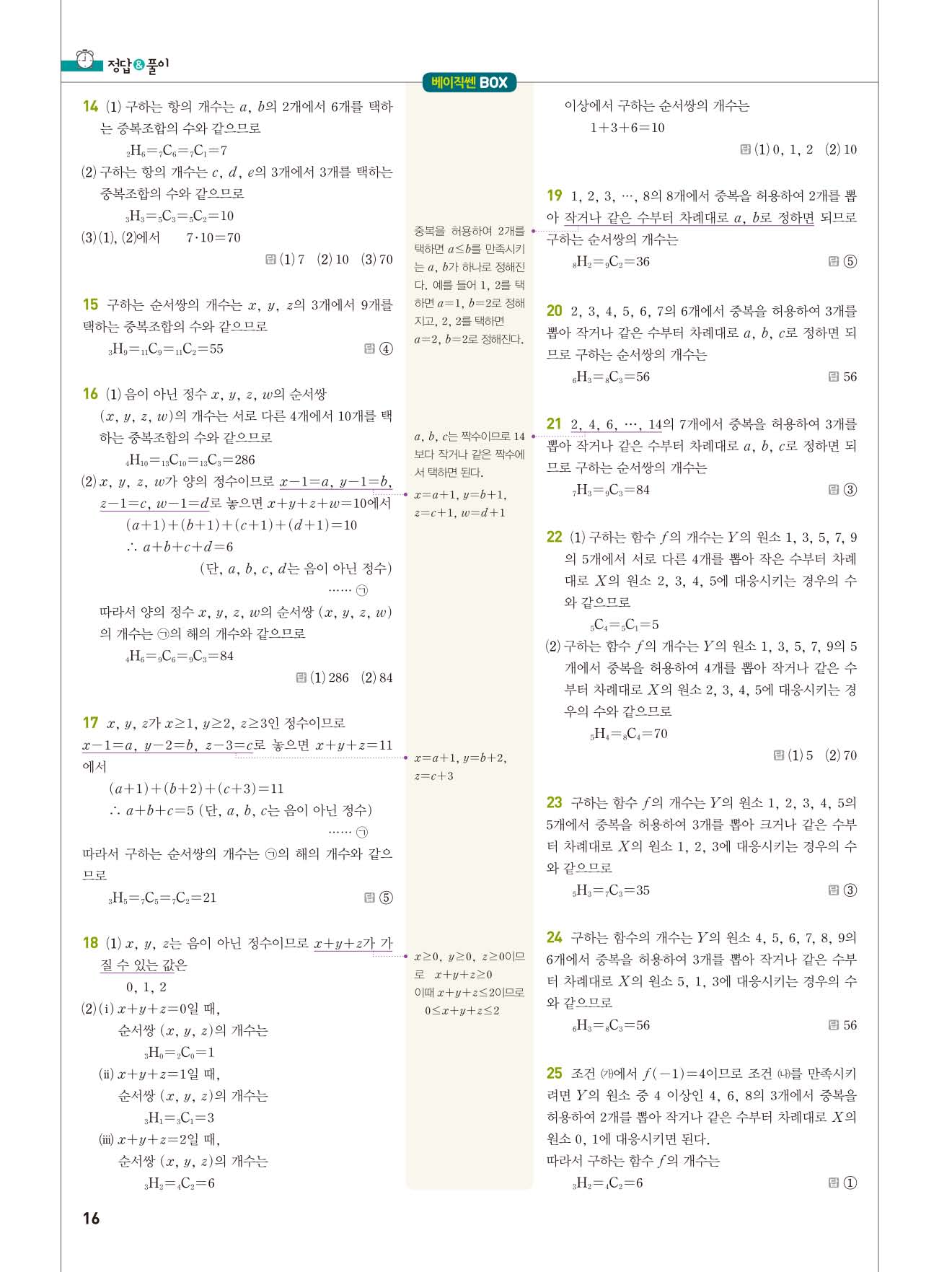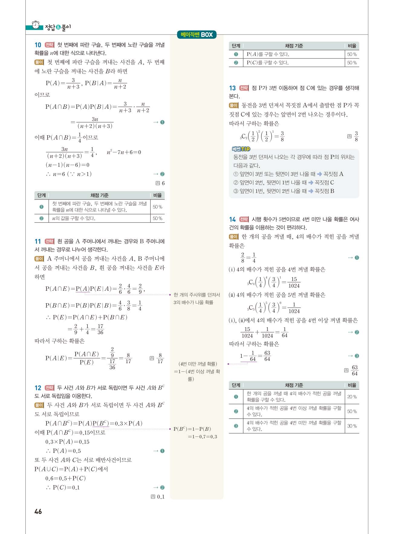 베이직쎈 확률과통계 답지 해설지 사진답지 빠른답지 모바일최적화