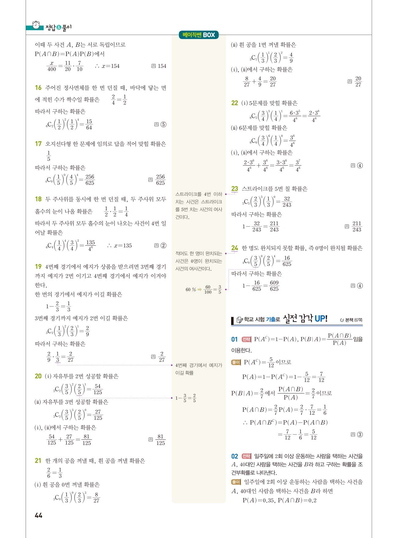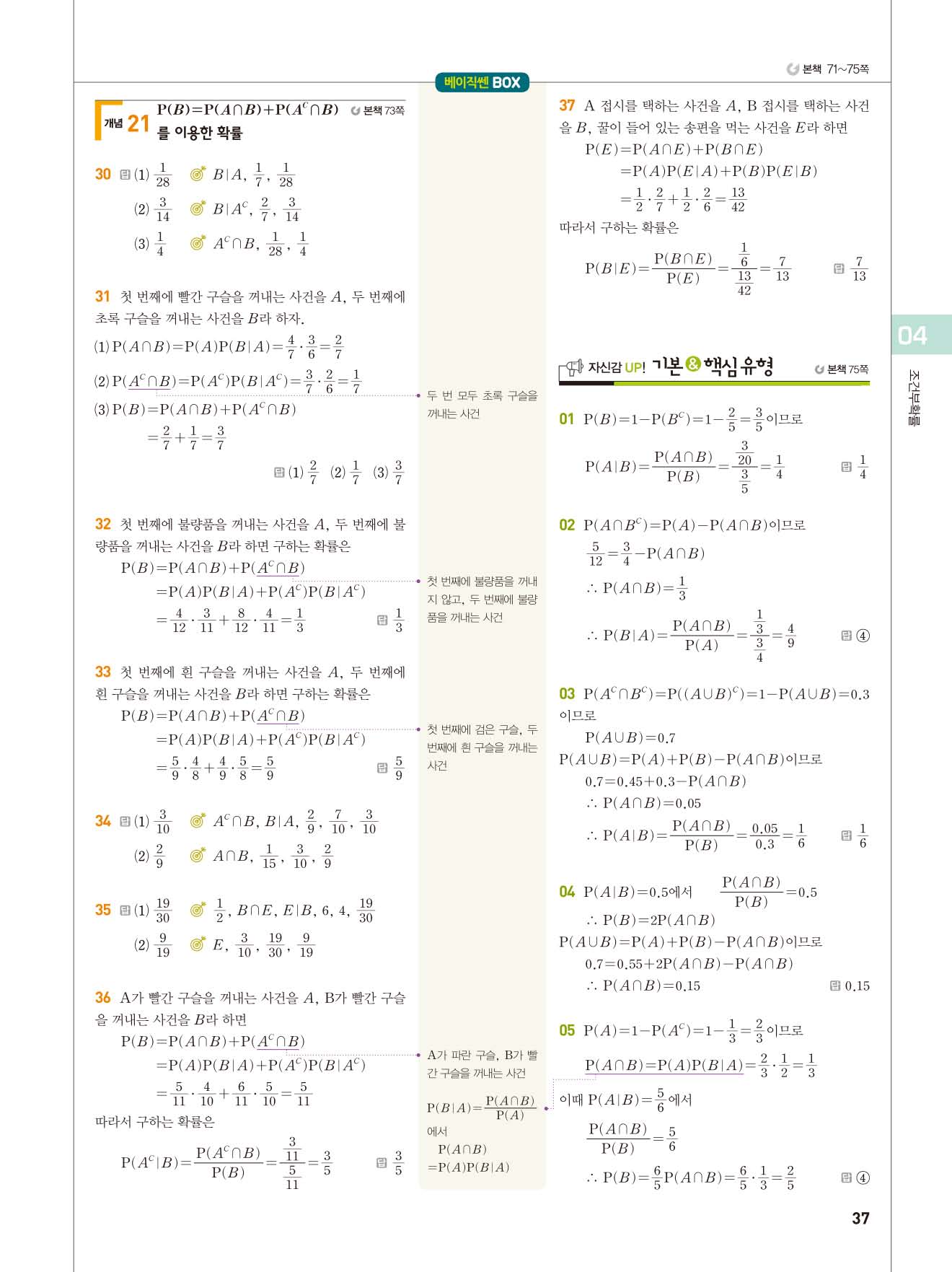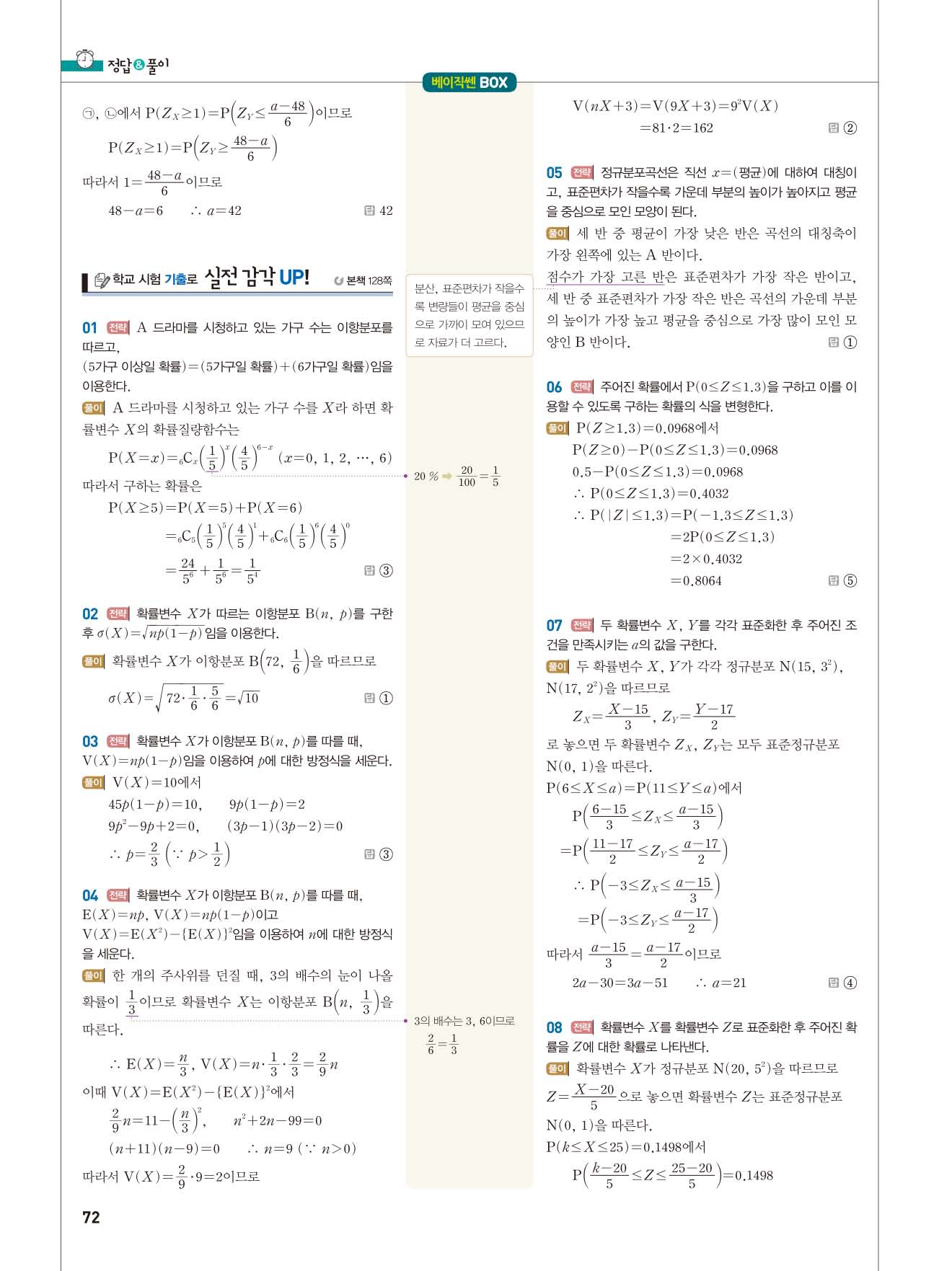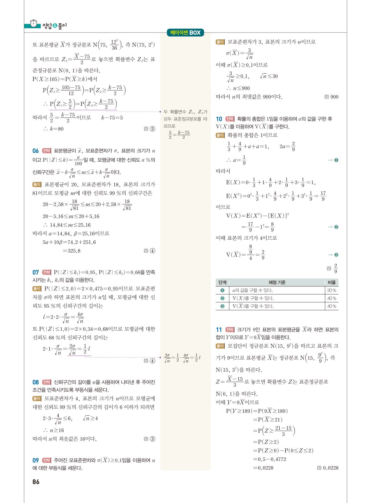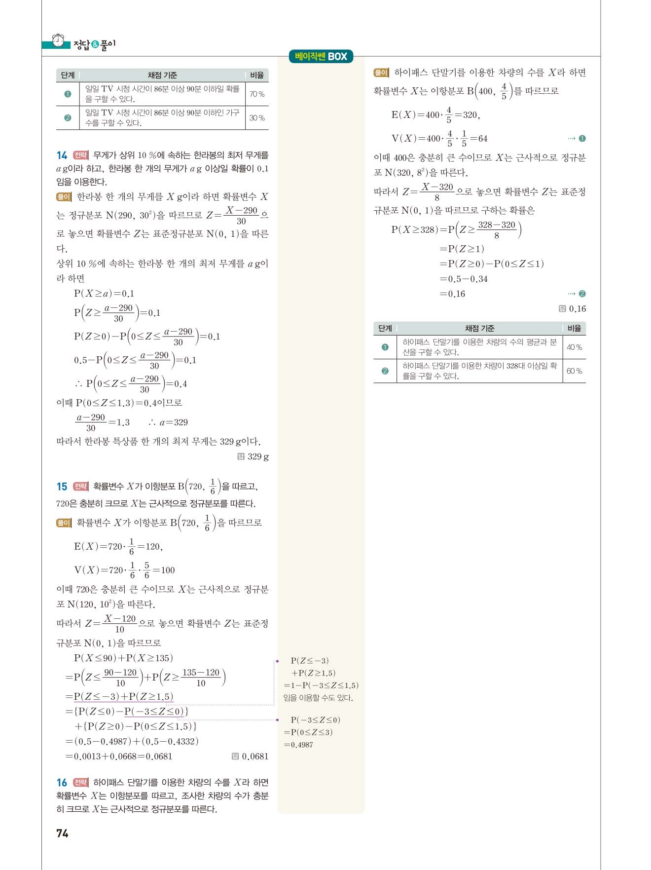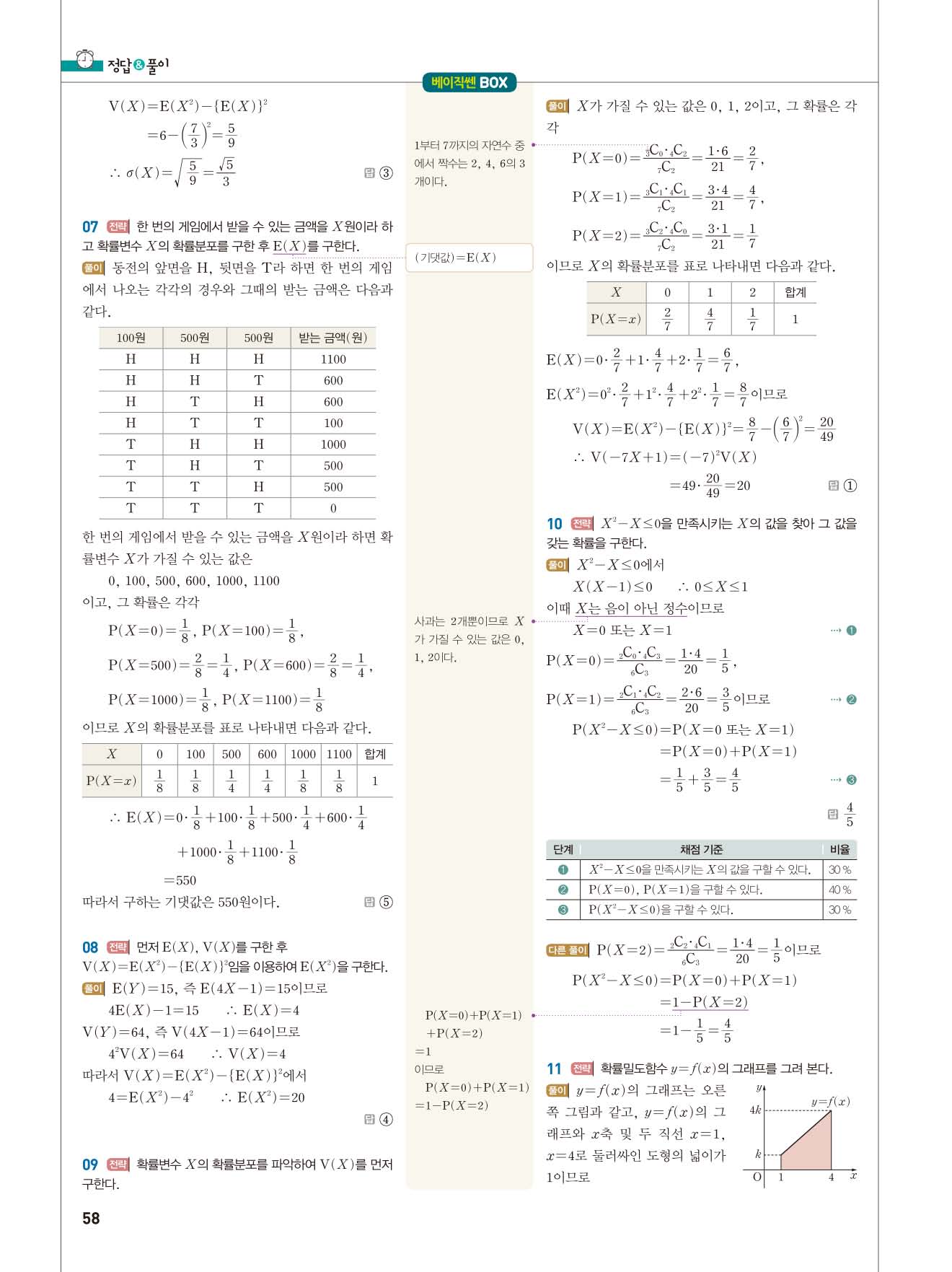 베이직쎈 확률과통계 답지 해설지 사진답지 빠른답지 모바일최적화
