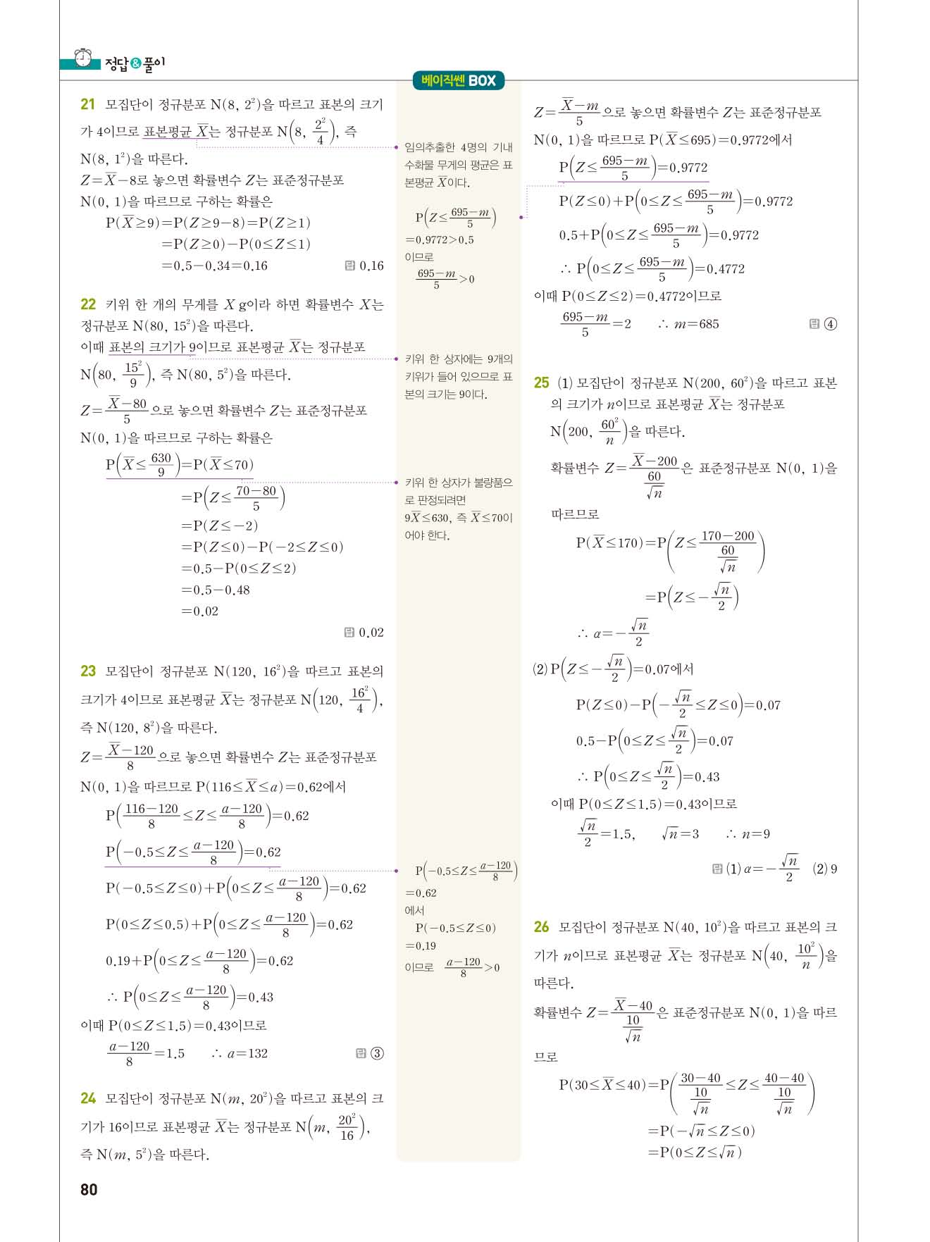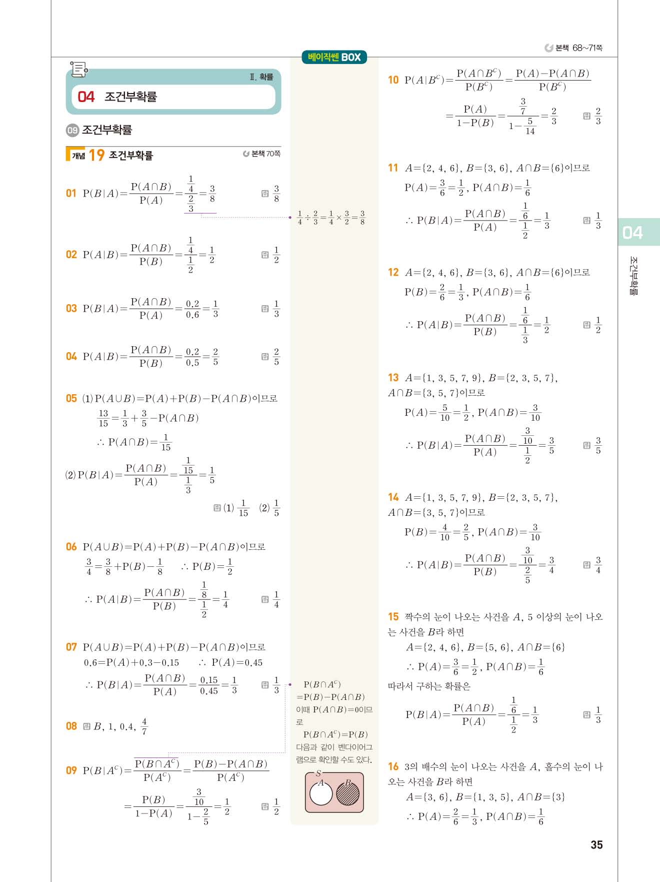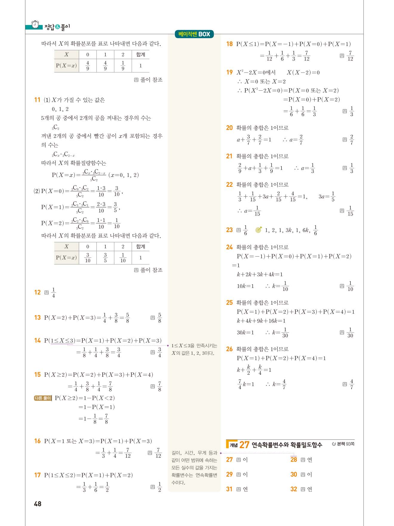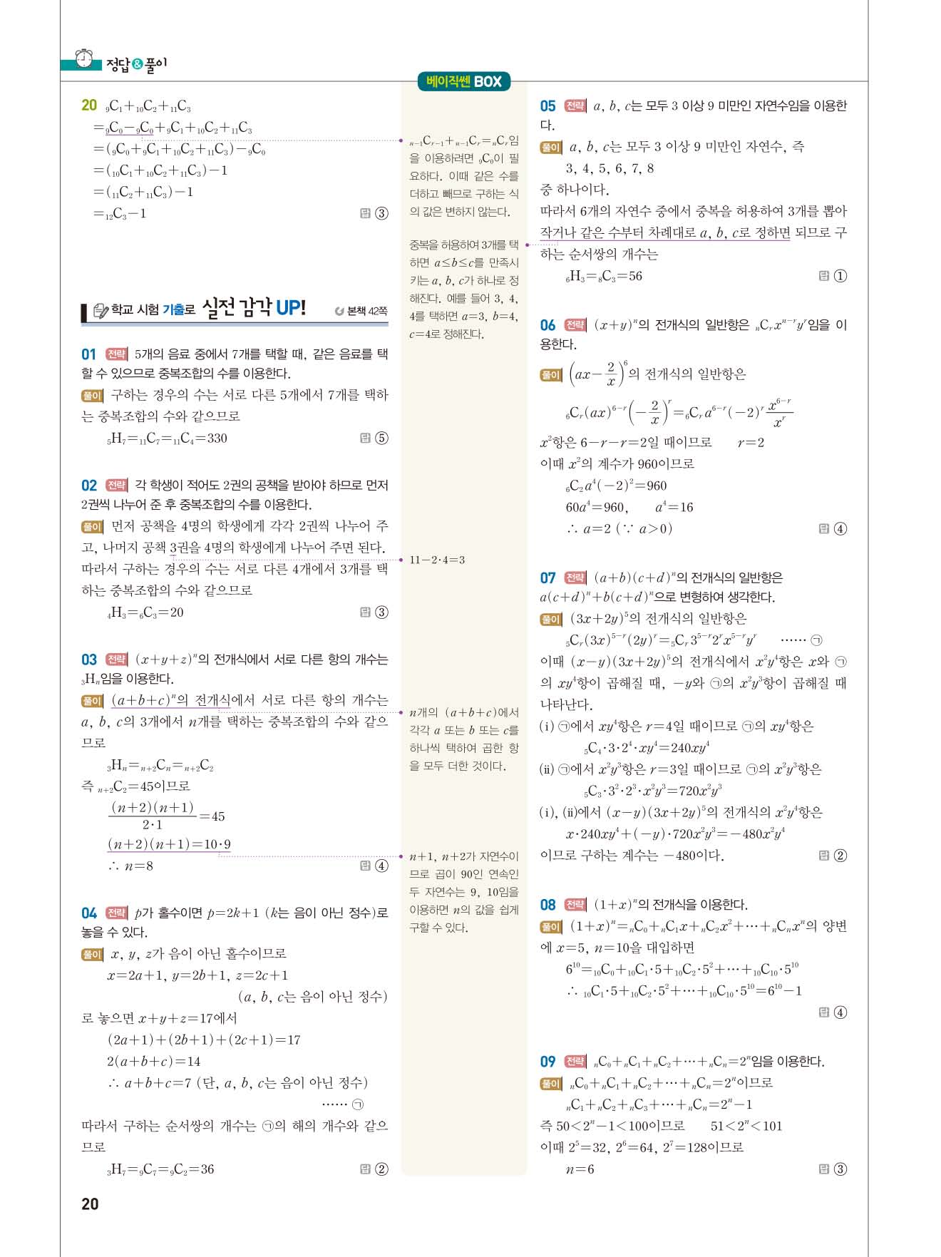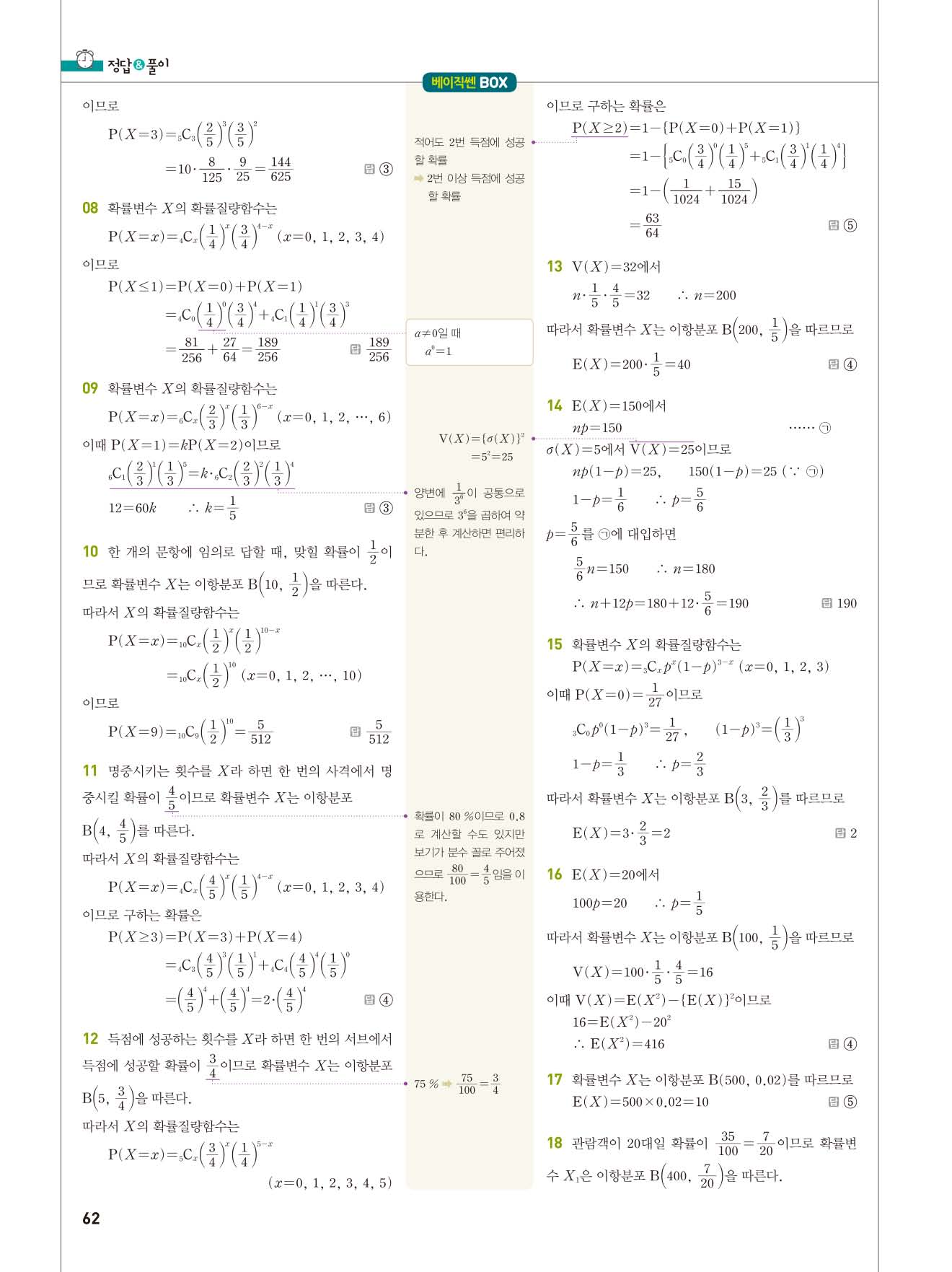 베이직쎈 확률과통계 답지 해설지 사진답지 빠른답지 모바일최적화