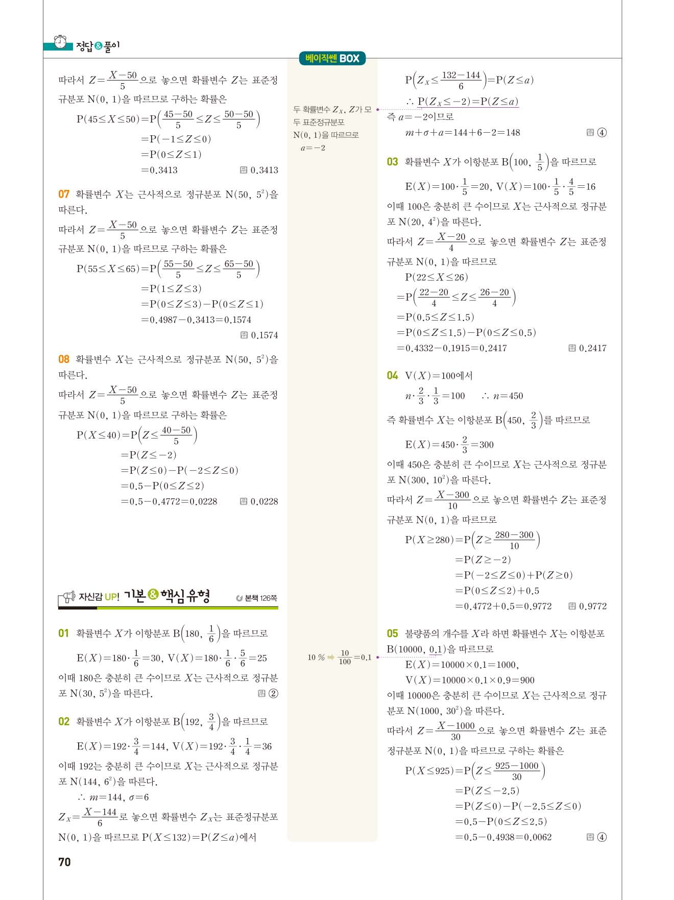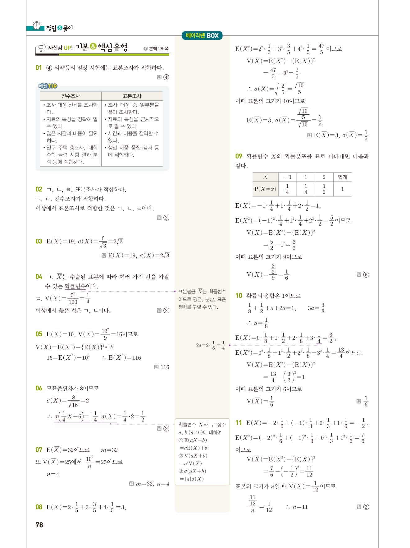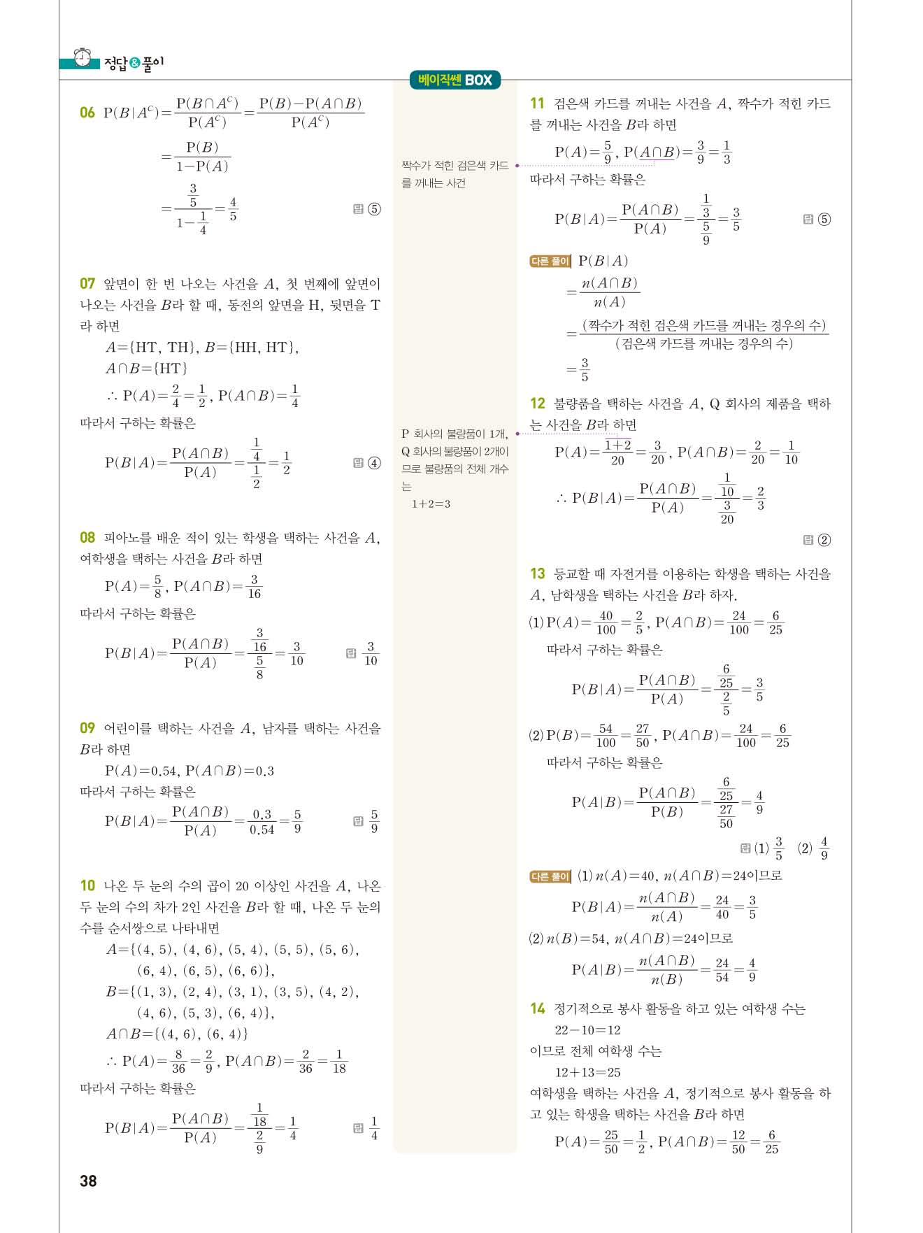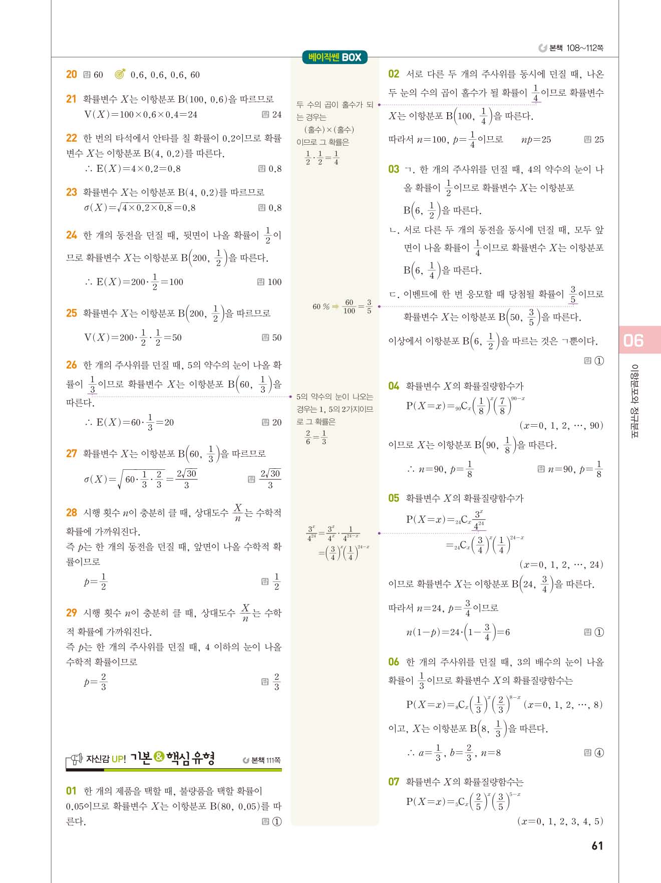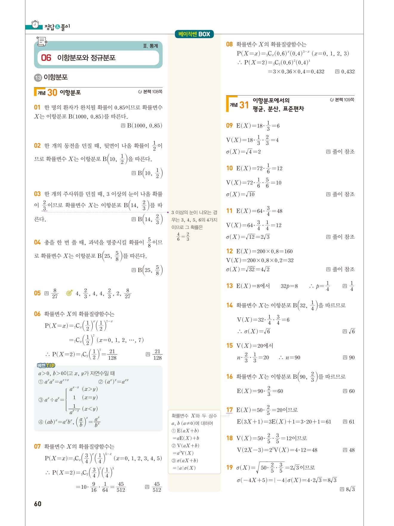베이직쎈 확률과통계 답지 해설지 사진답지 빠른답지 모바일최적화