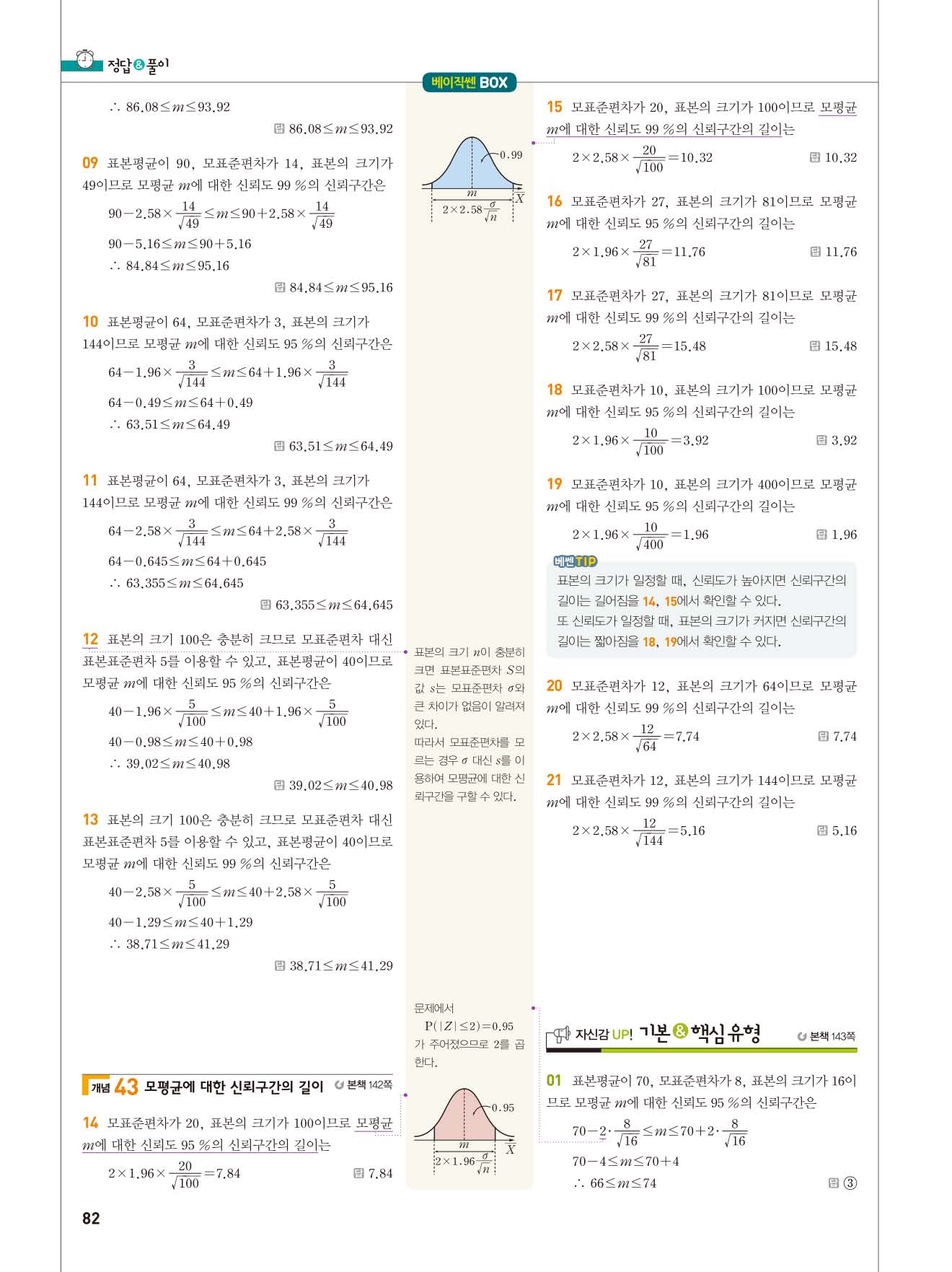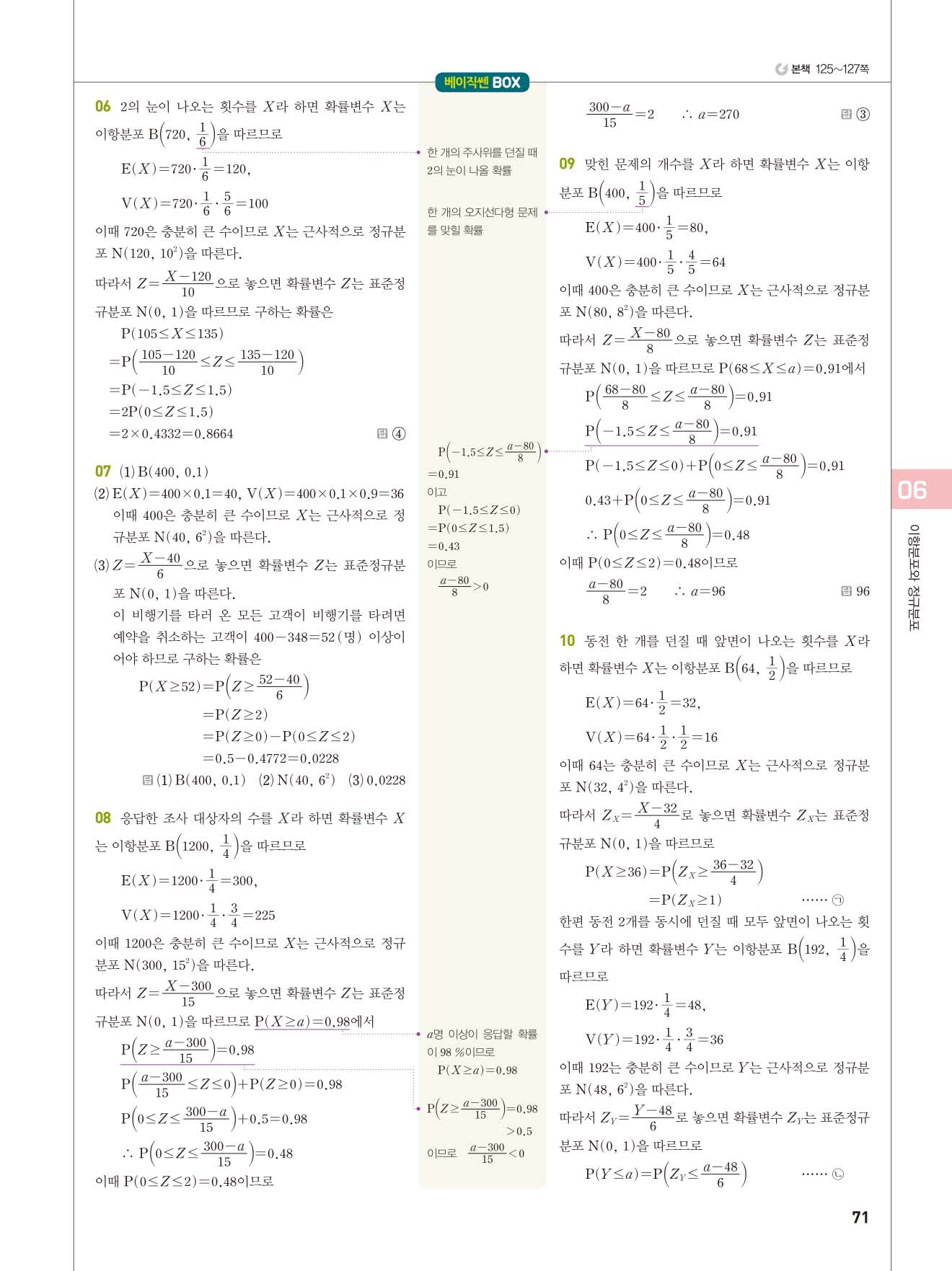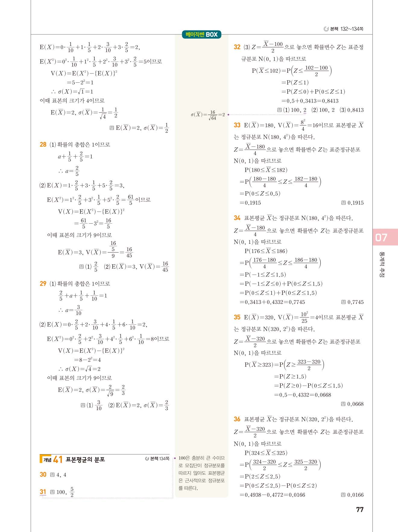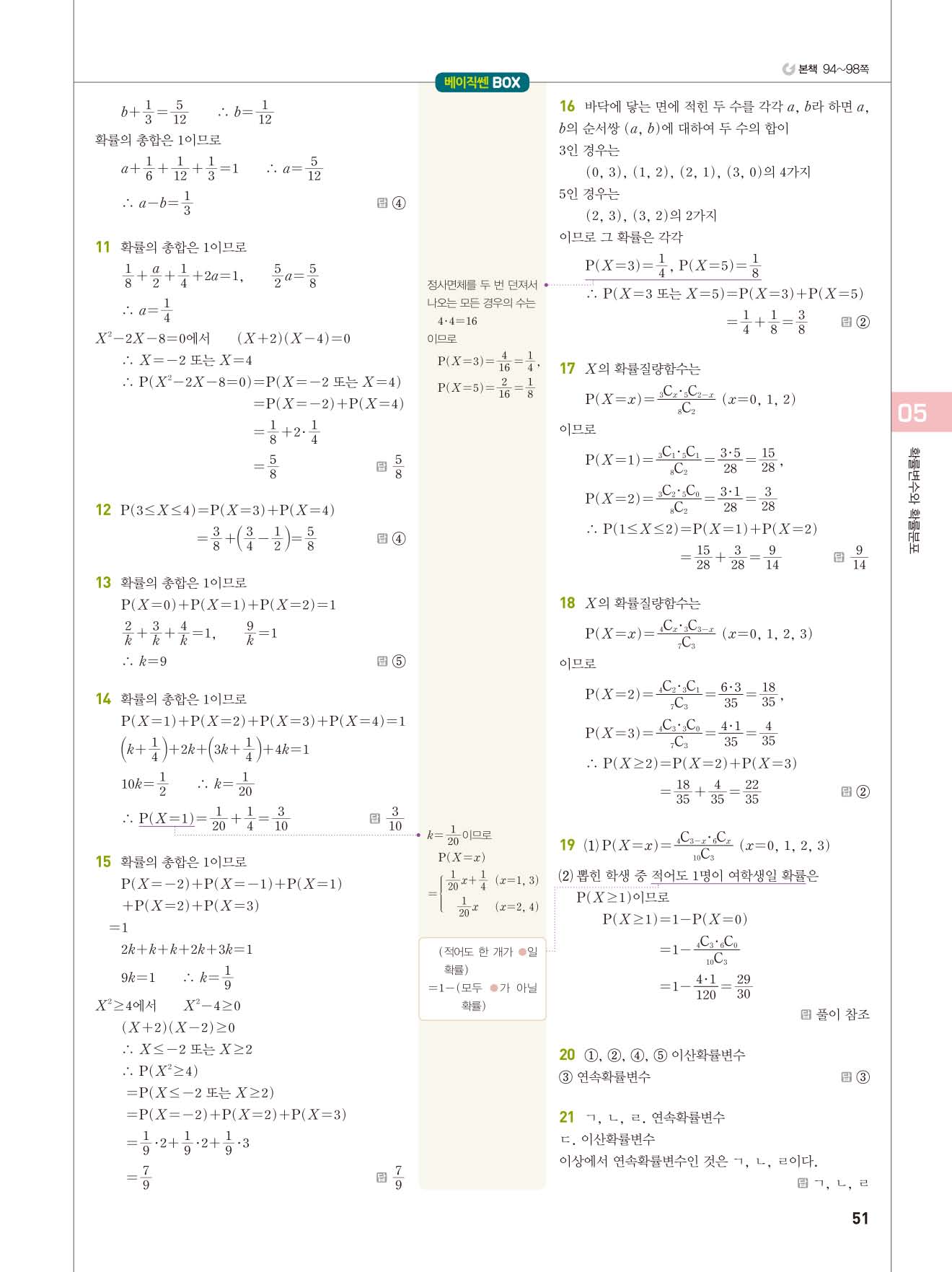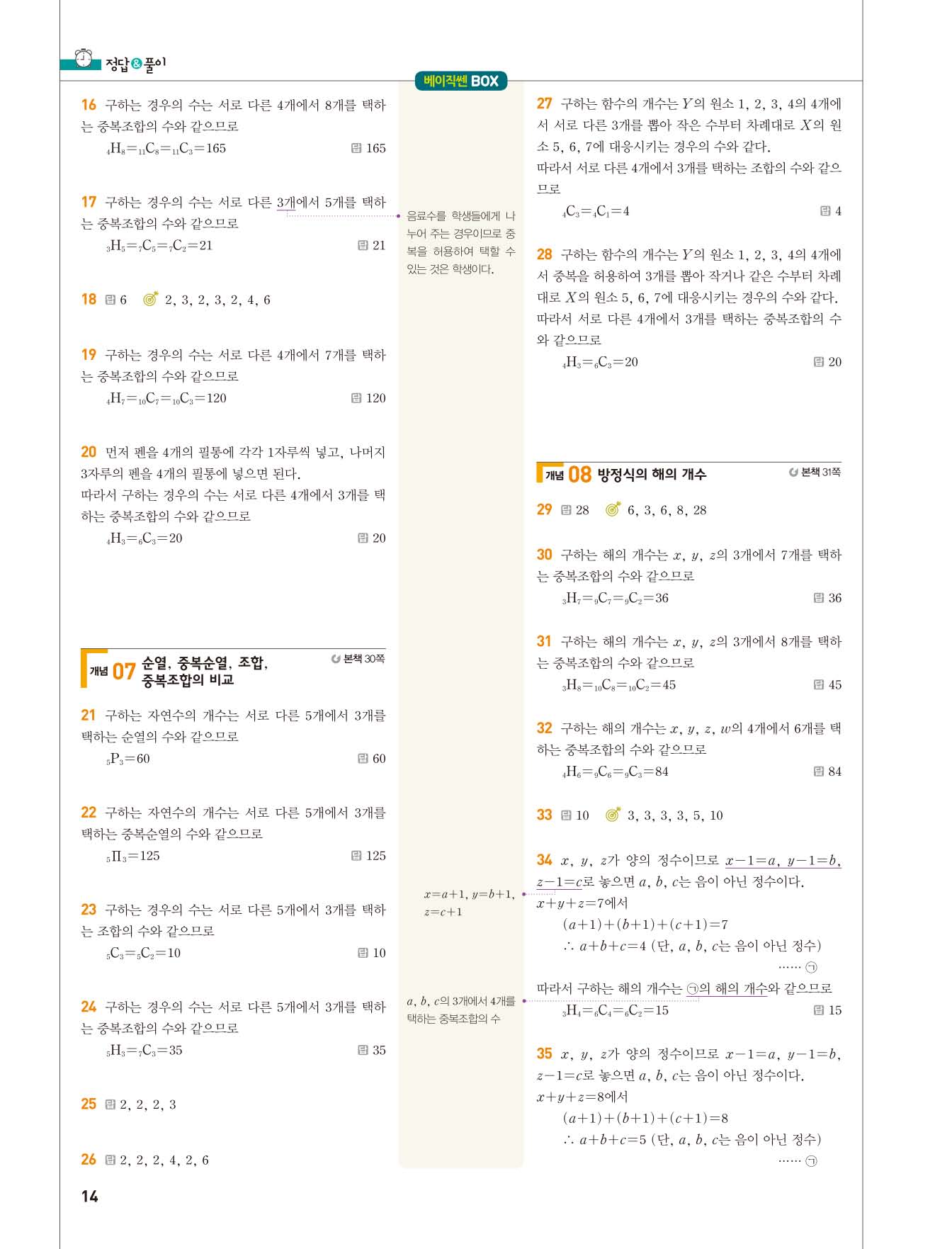 베이직쎈 확률과통계 답지 해설지 사진답지 빠른답지 모바일최적화