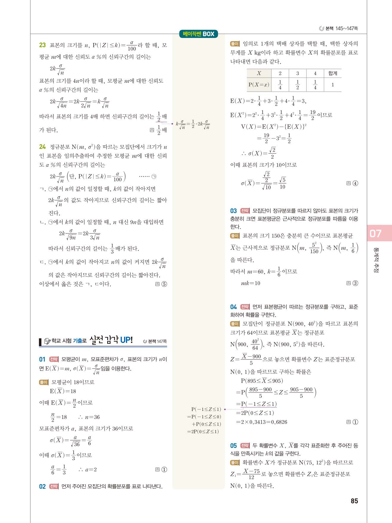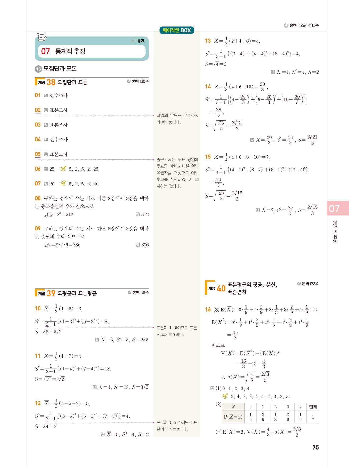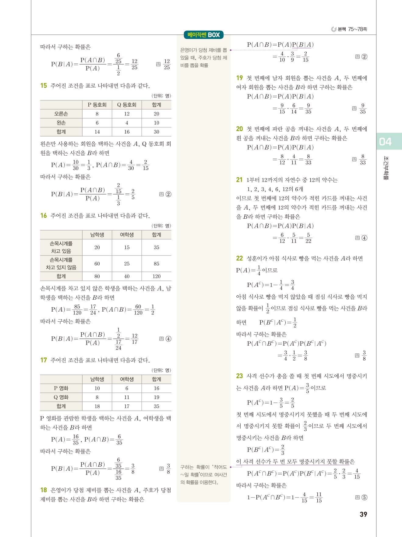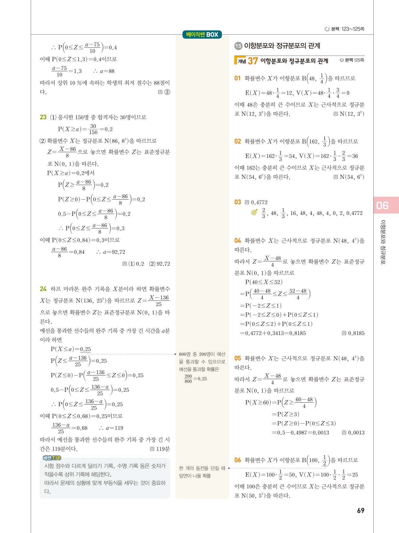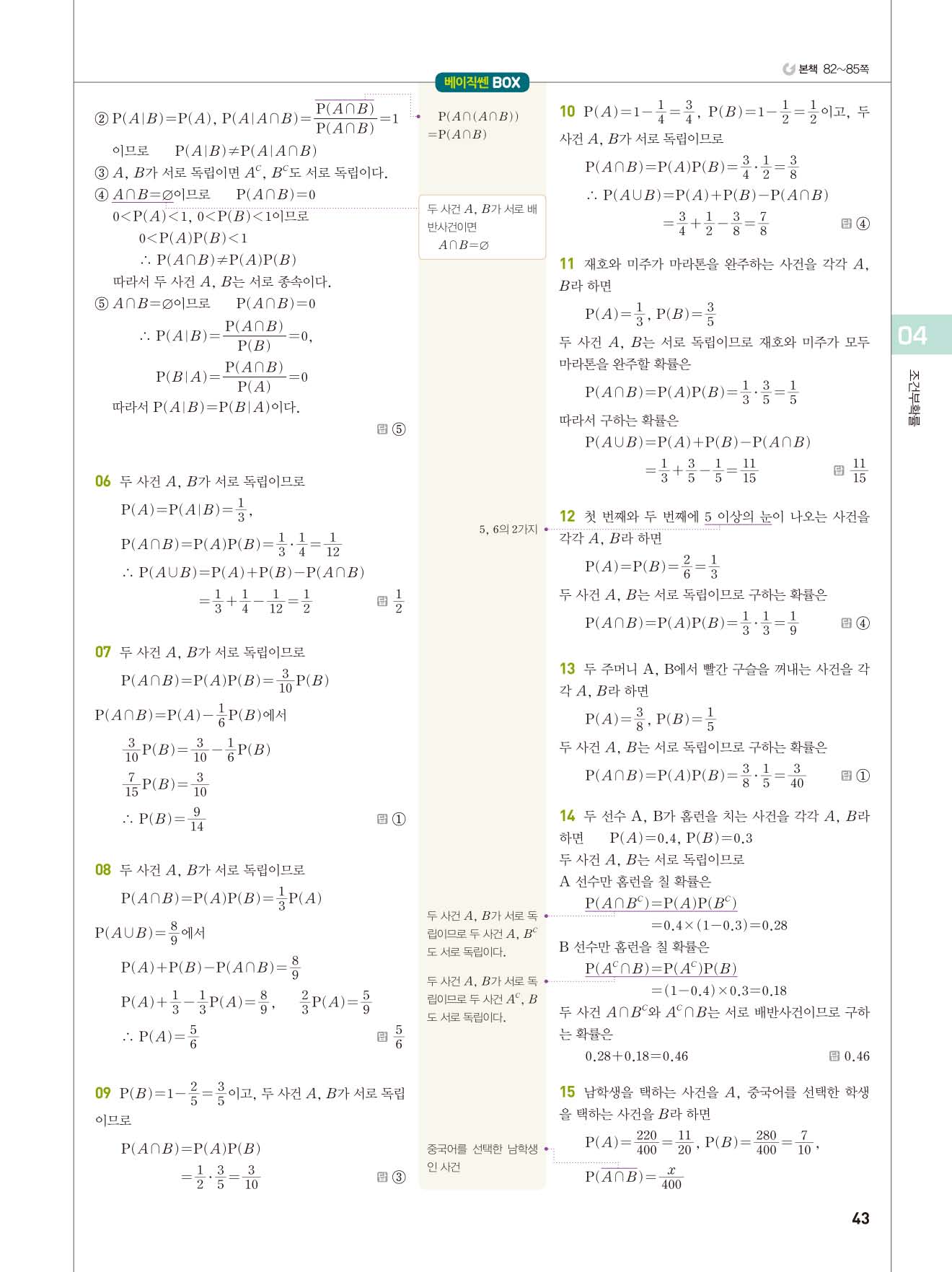 베이직쎈 확률과통계 답지 해설지 사진답지 빠른답지 모바일최적화