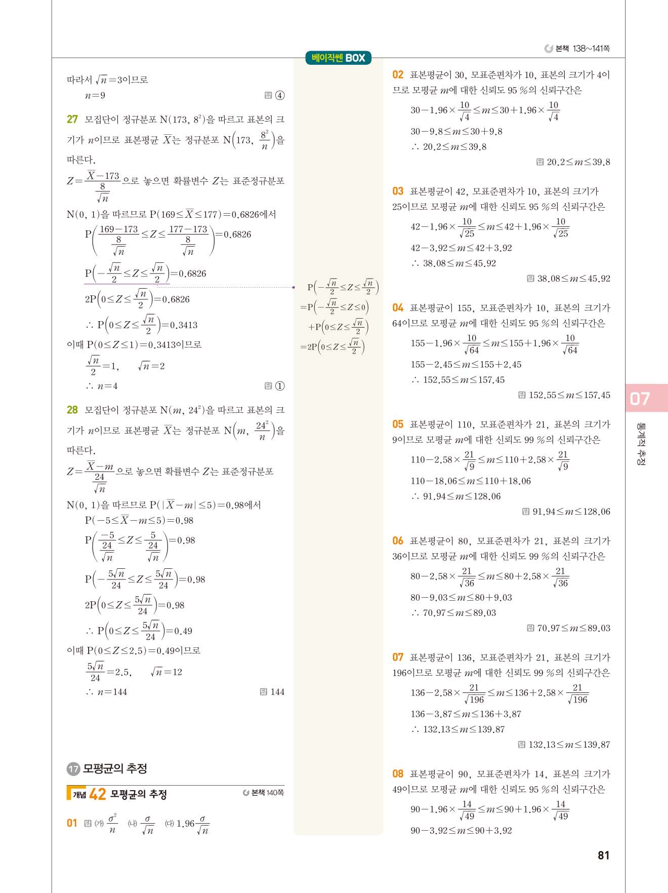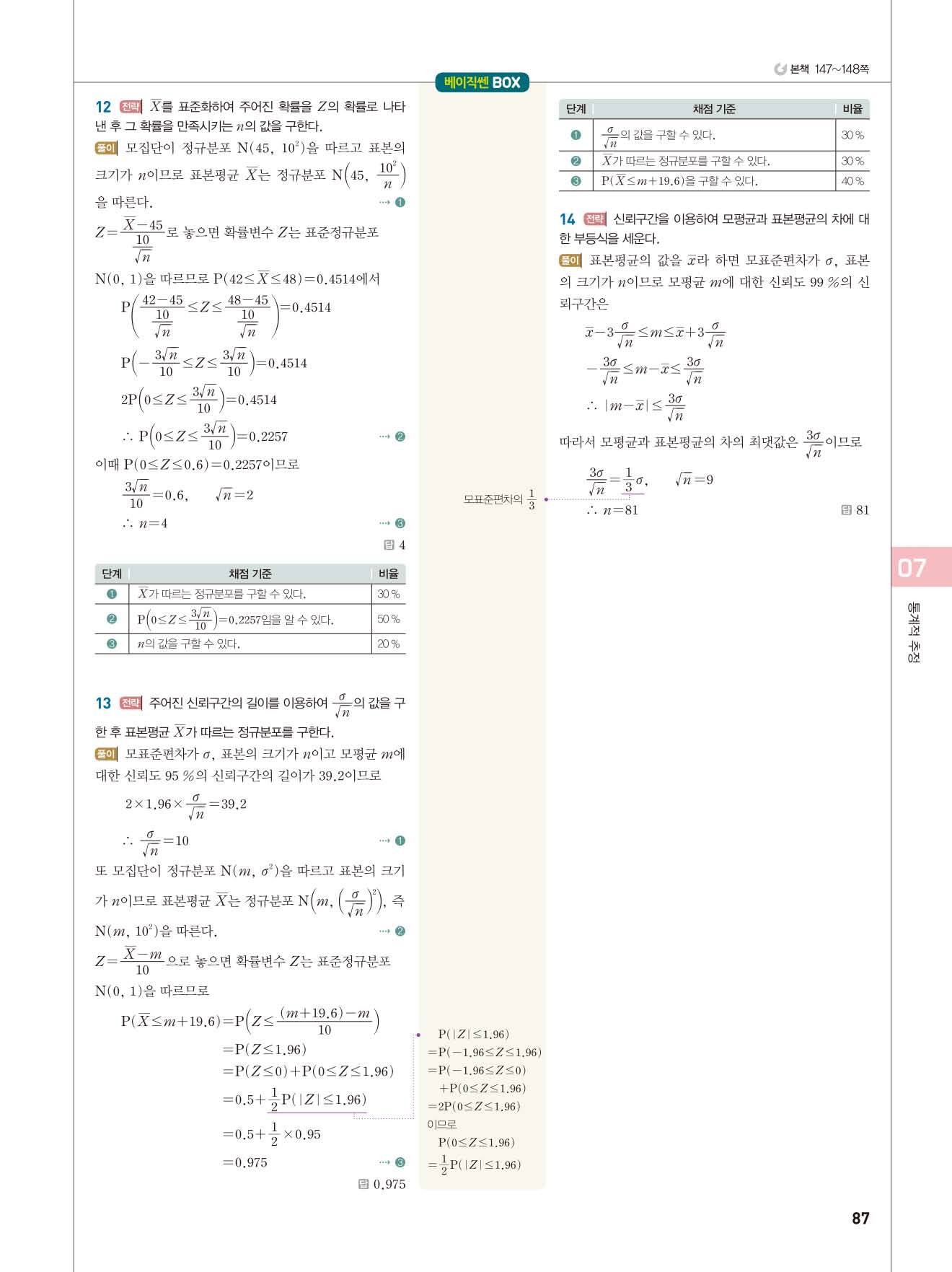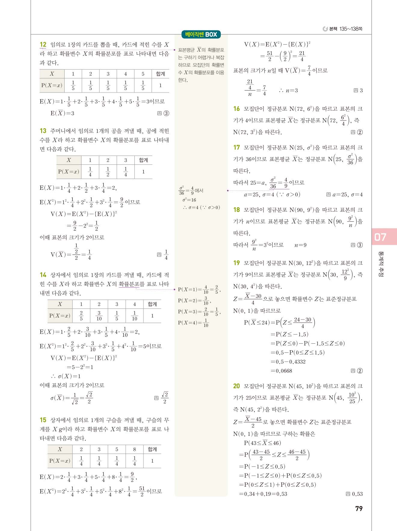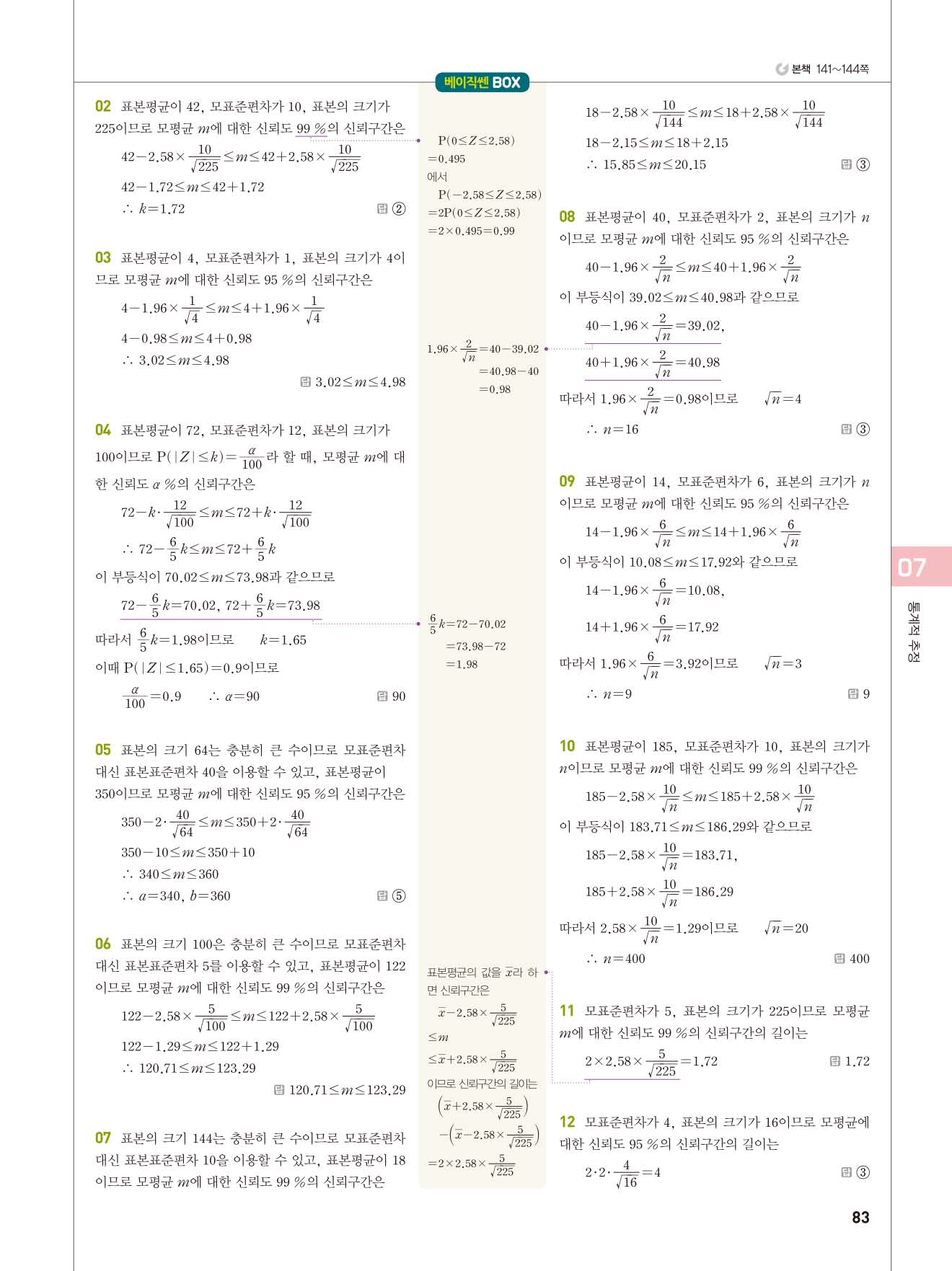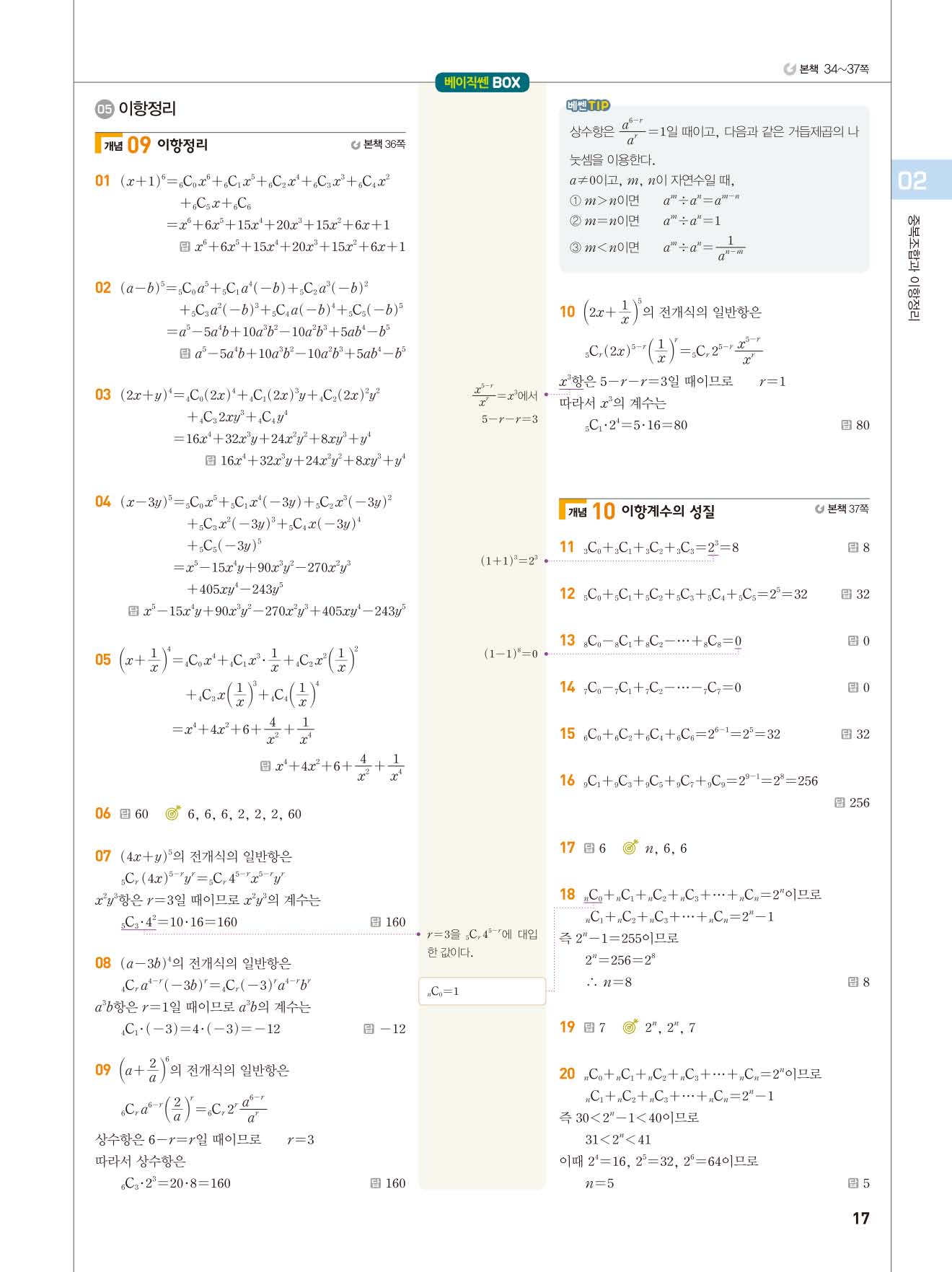 베이직쎈 확률과통계 답지 해설지 사진답지 빠른답지 모바일최적화