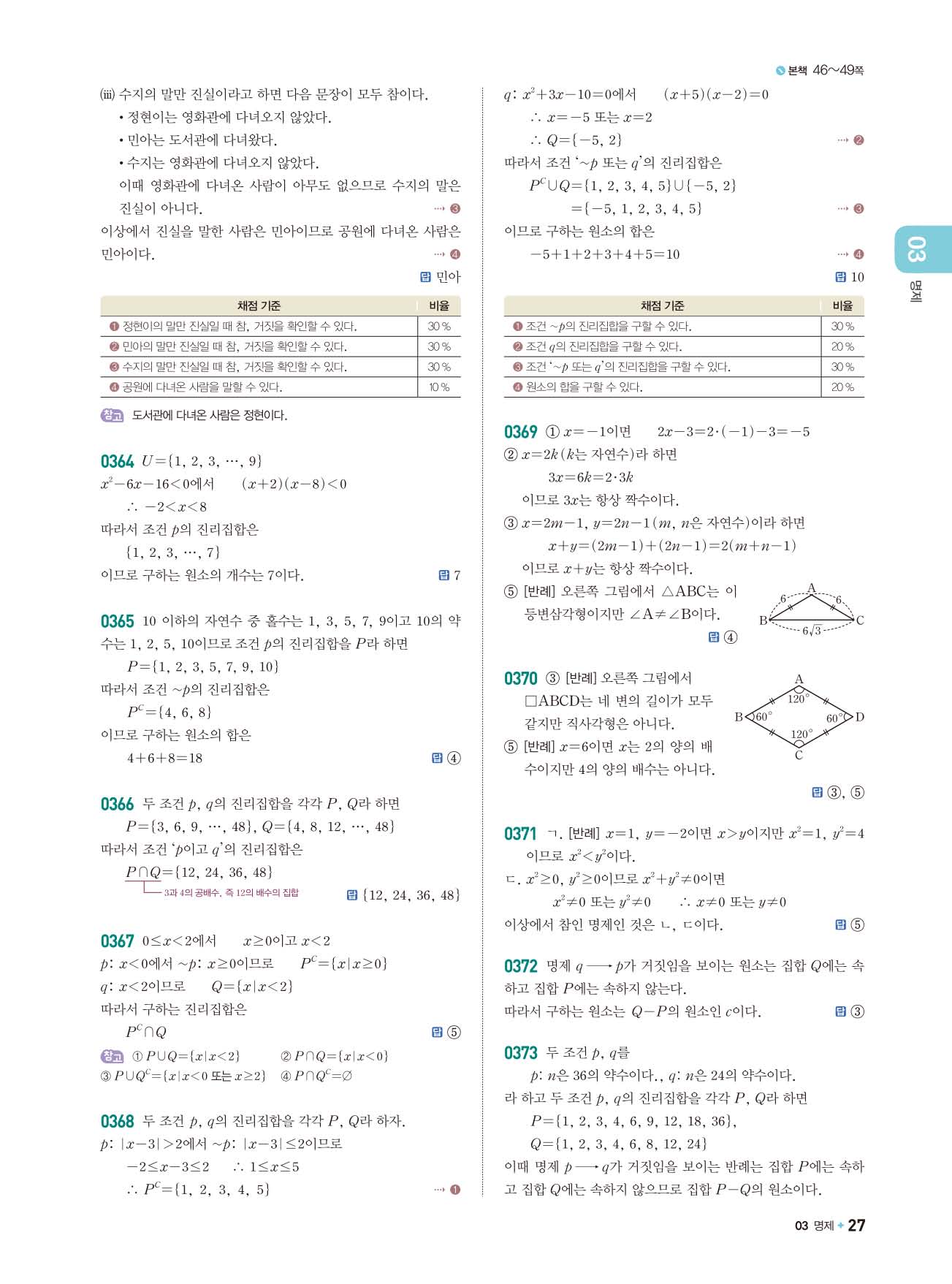 라이트쎈 고등수학하 답지 해설지 사진답지 빠른답지 모바일최적화