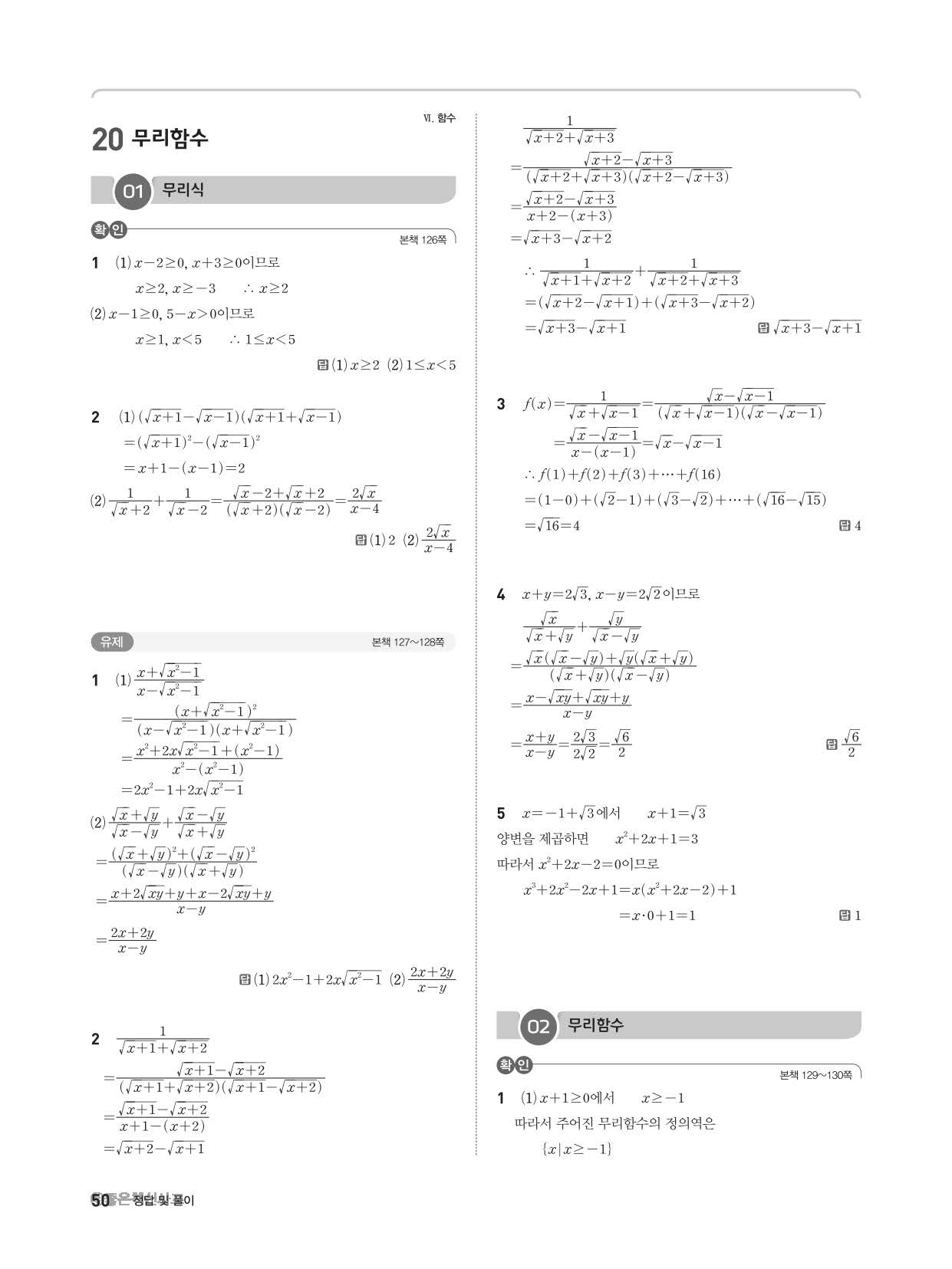 개념쎈라이트 고등수학하 답지 해설지 사진답지 빠른답지 모바일최적화