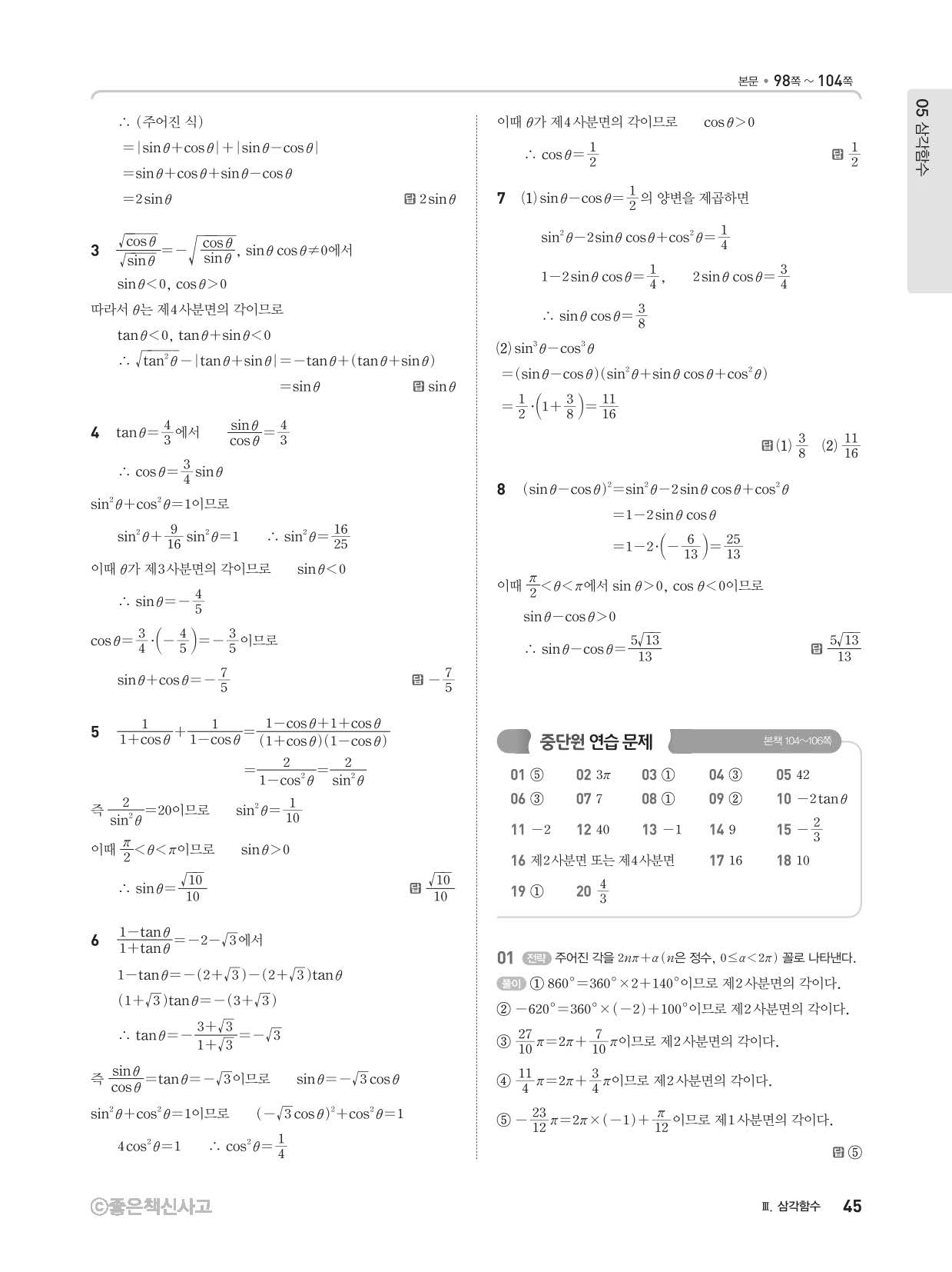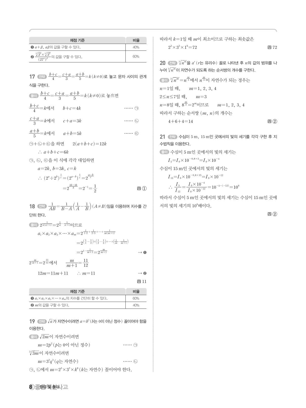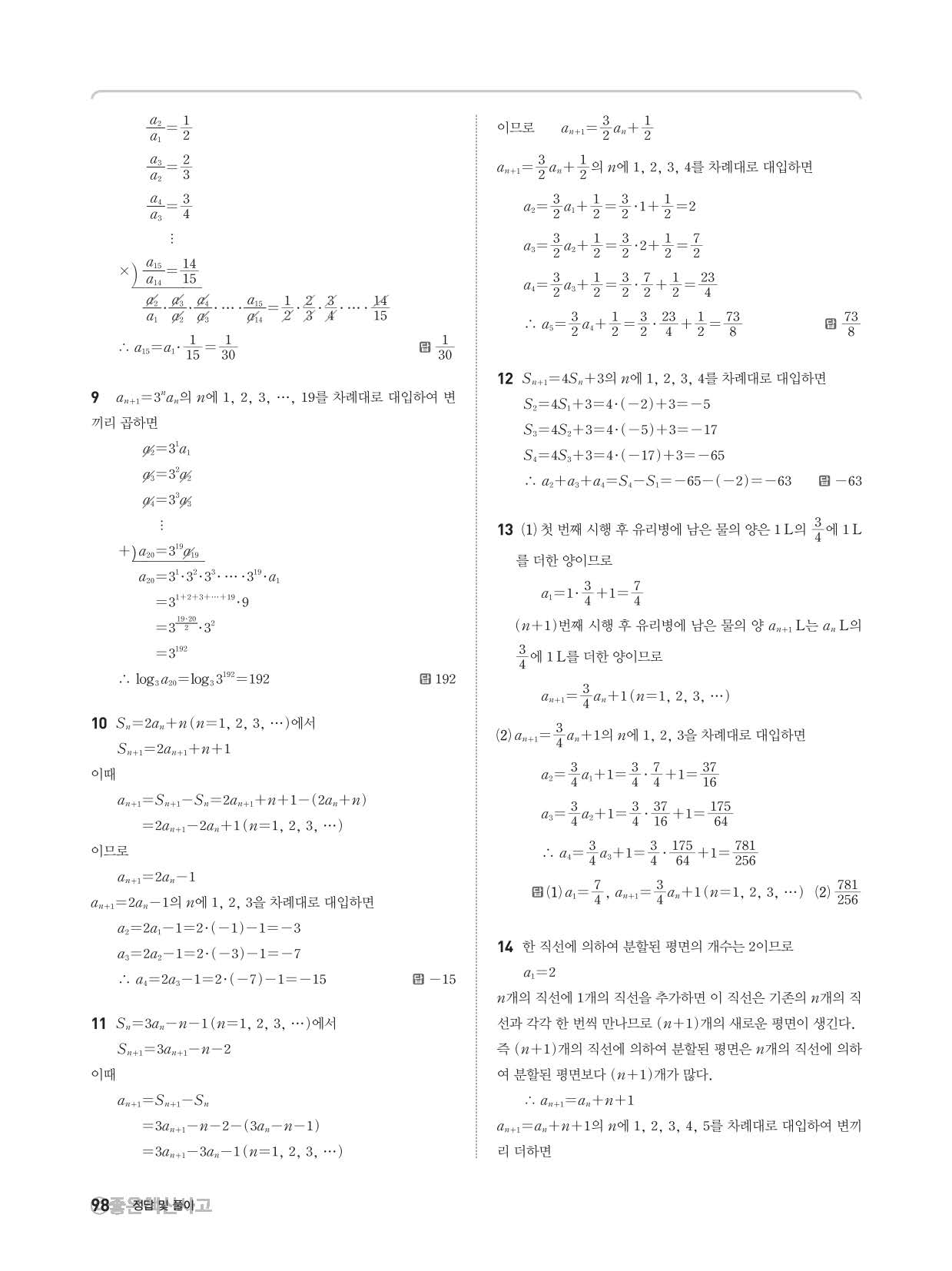 개념쎈라이트 고등수학1 답지 해설지 사진답지 빠른답지 모바일최적화