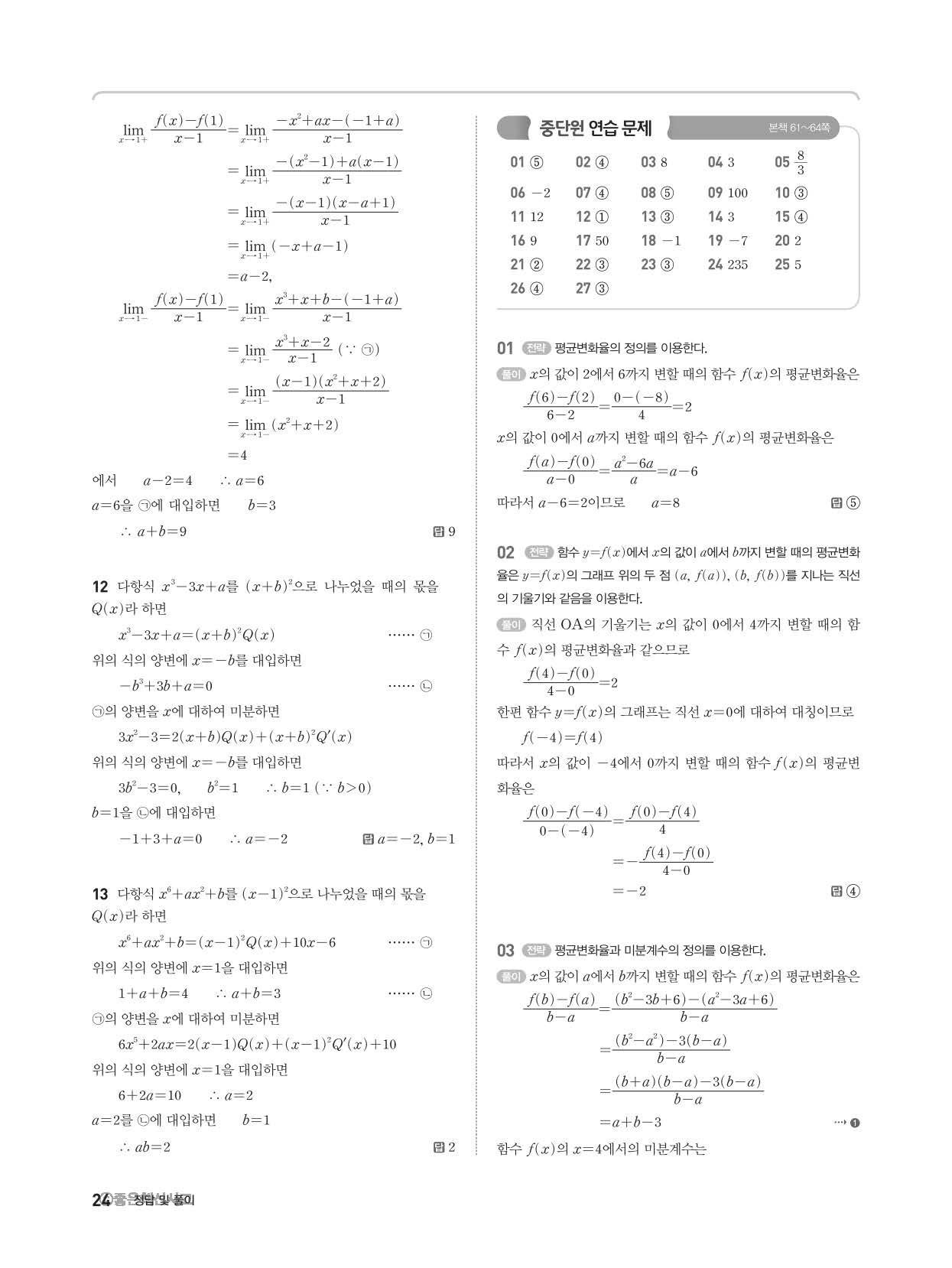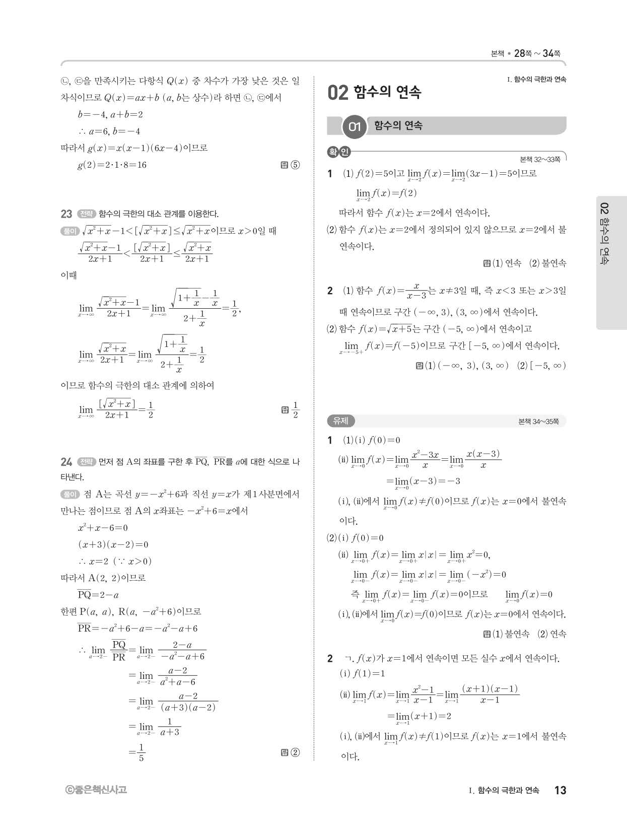 개념쎈라이트 고등수학2 답지 해설지 사진답지 빠른답지 모바일최적화