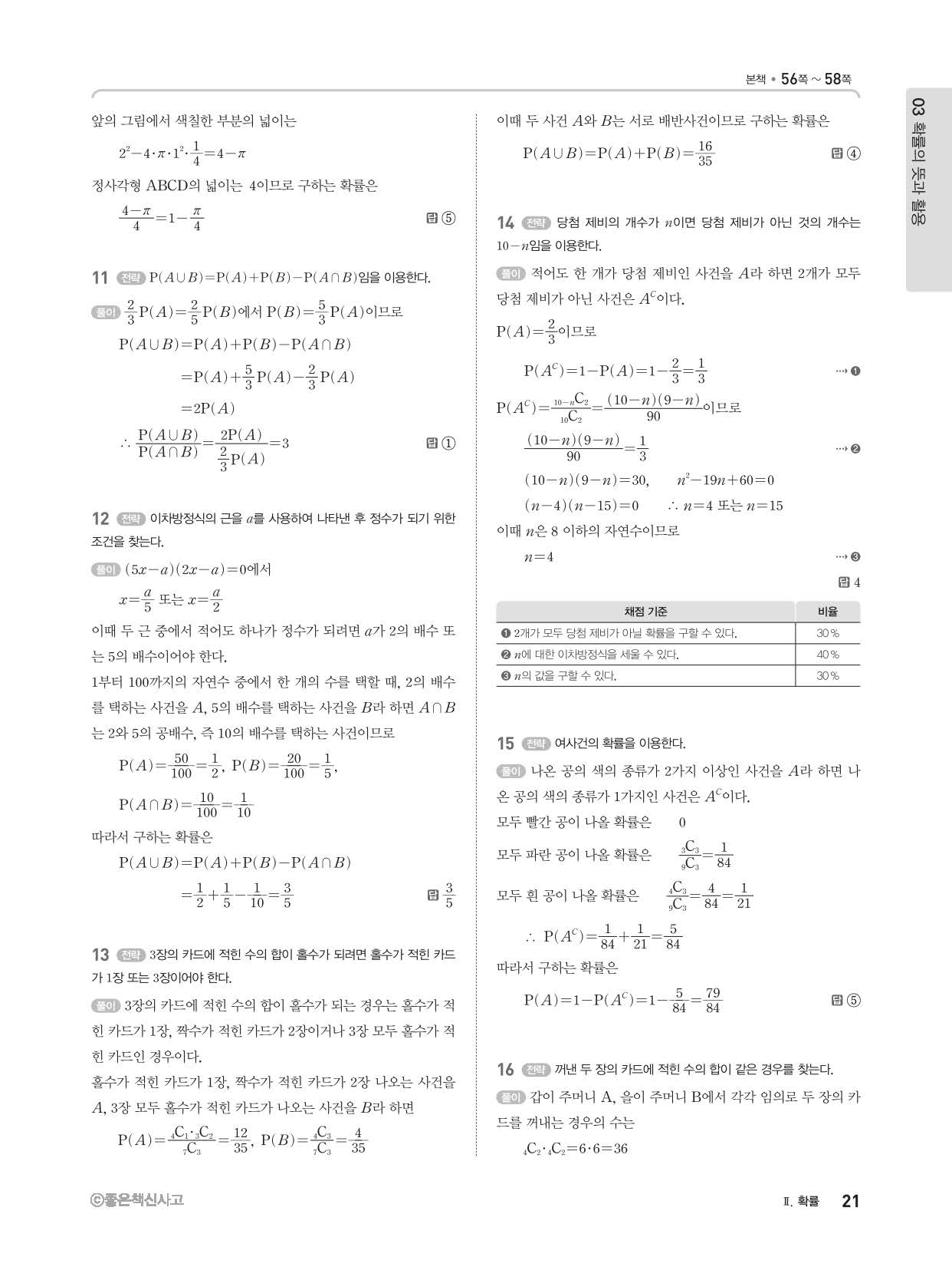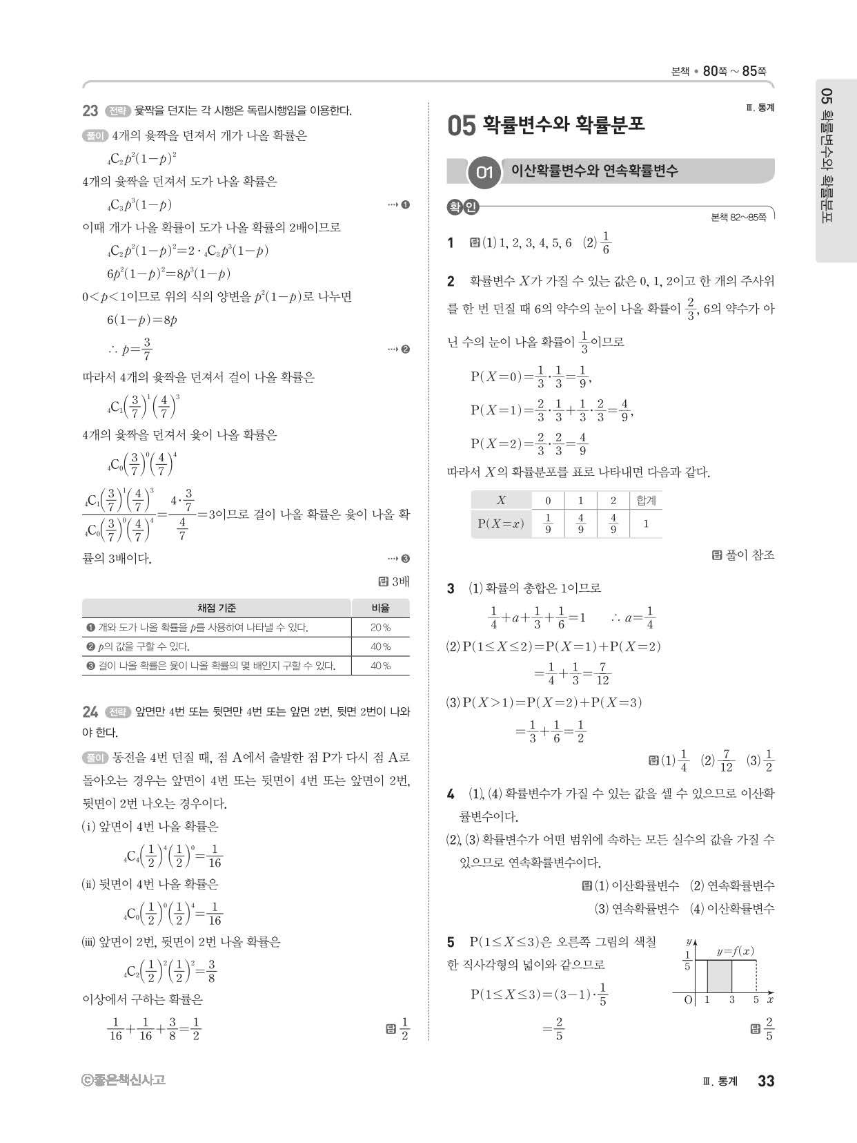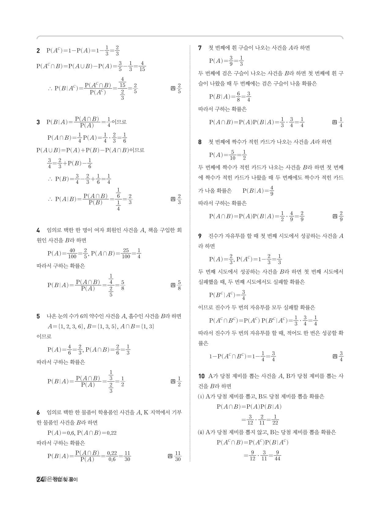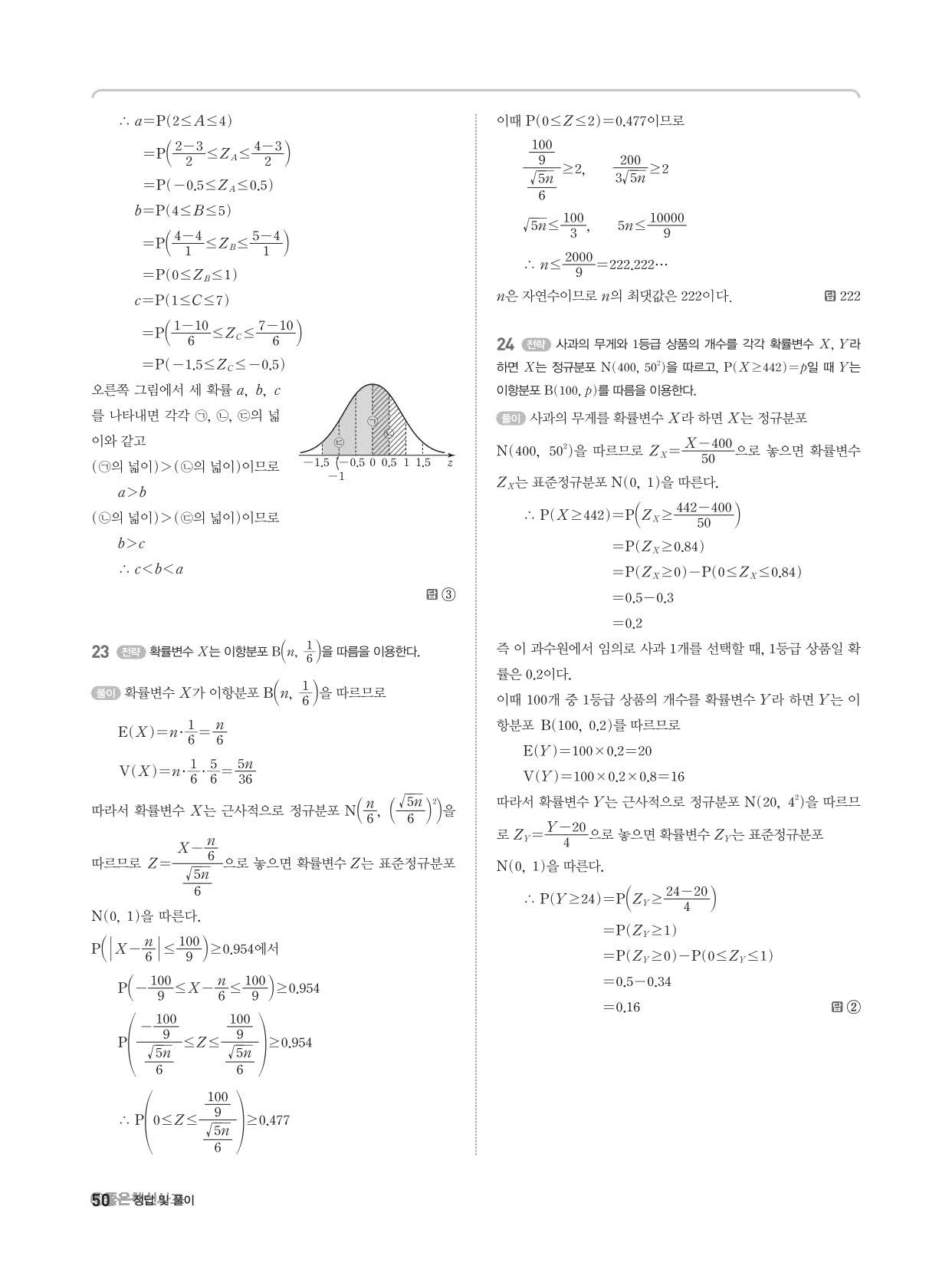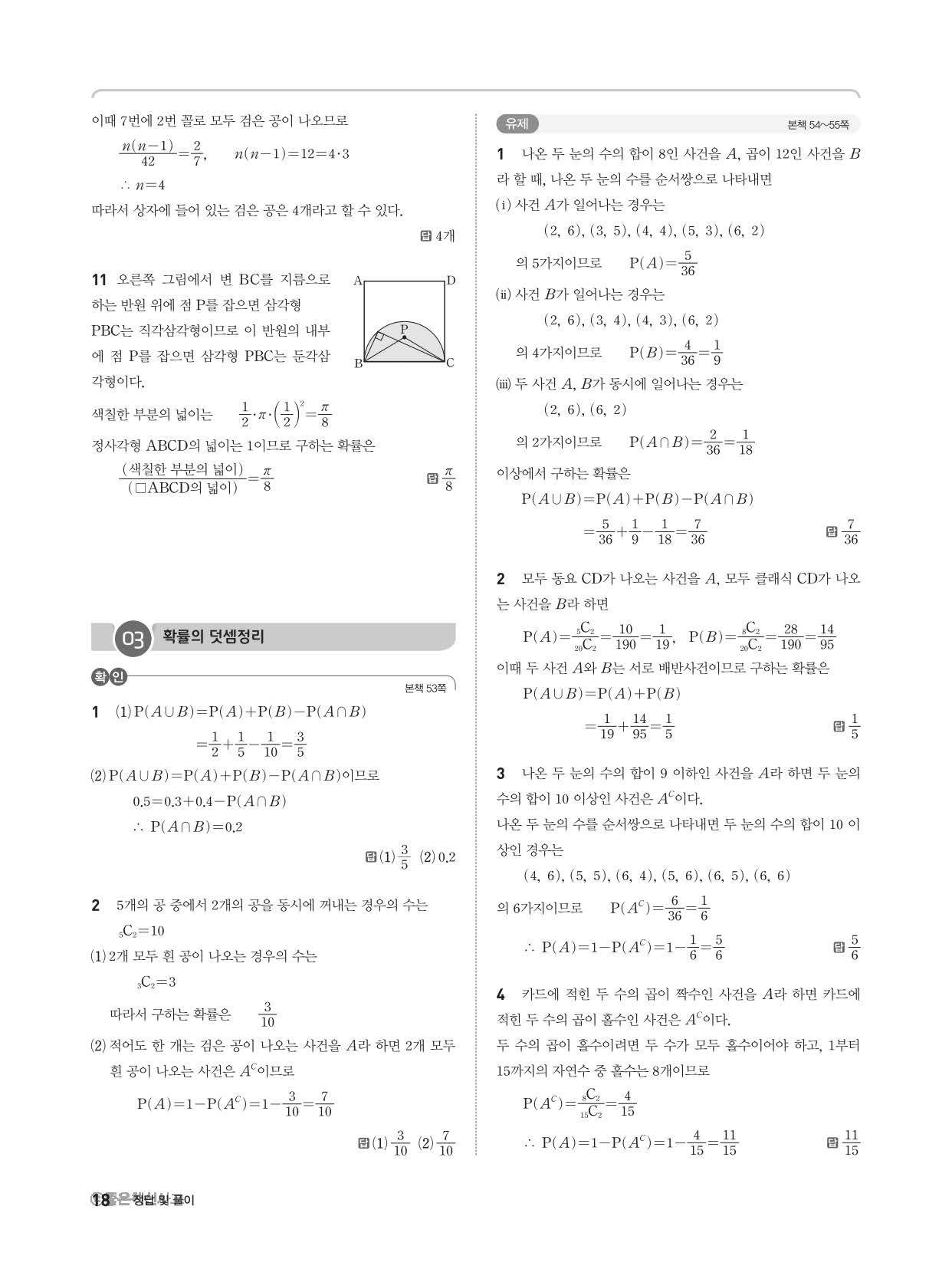 개념쎈라이트 확률과통계 답지 해설지 사진답지 빠른답지 모바일최적화